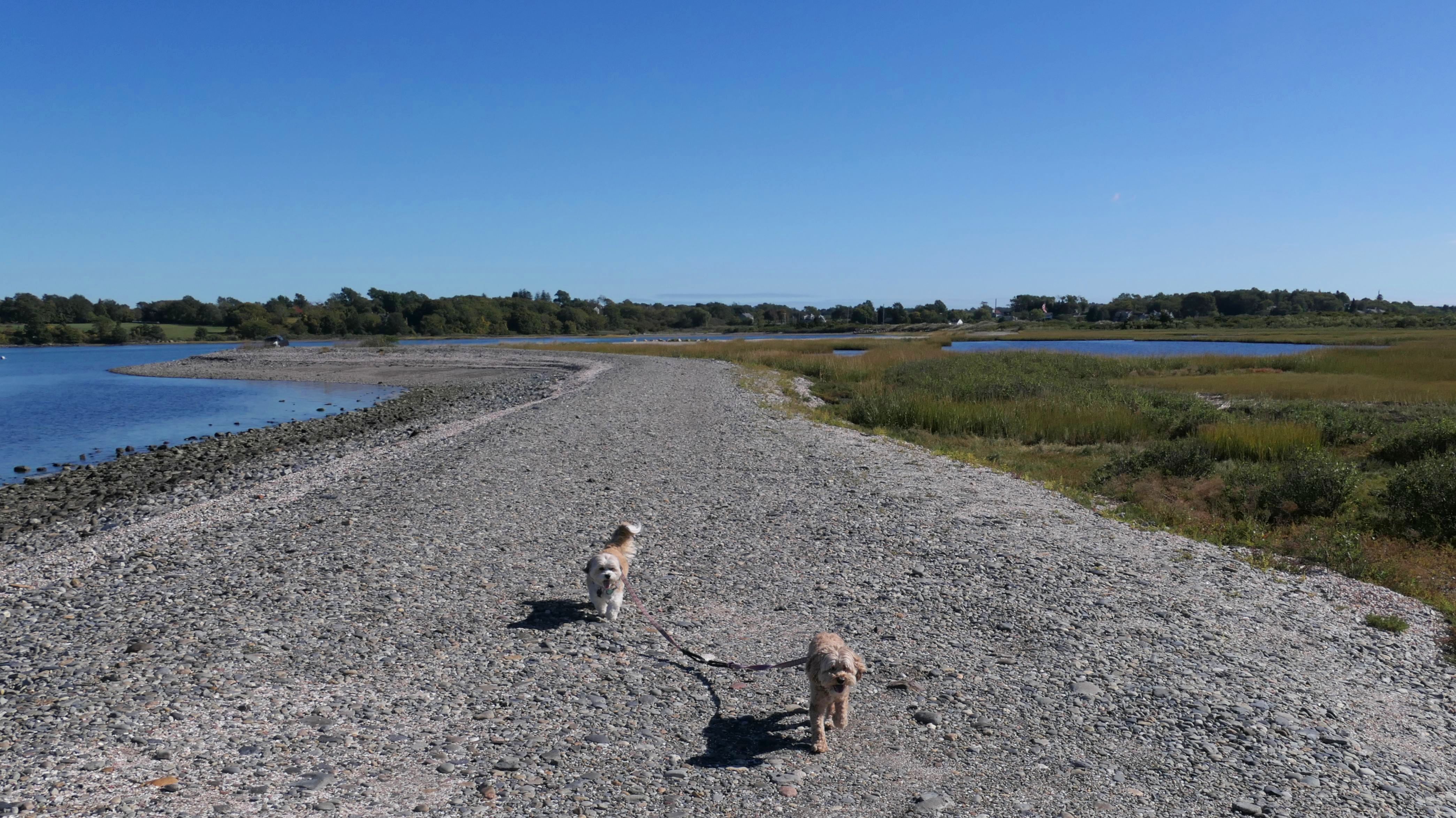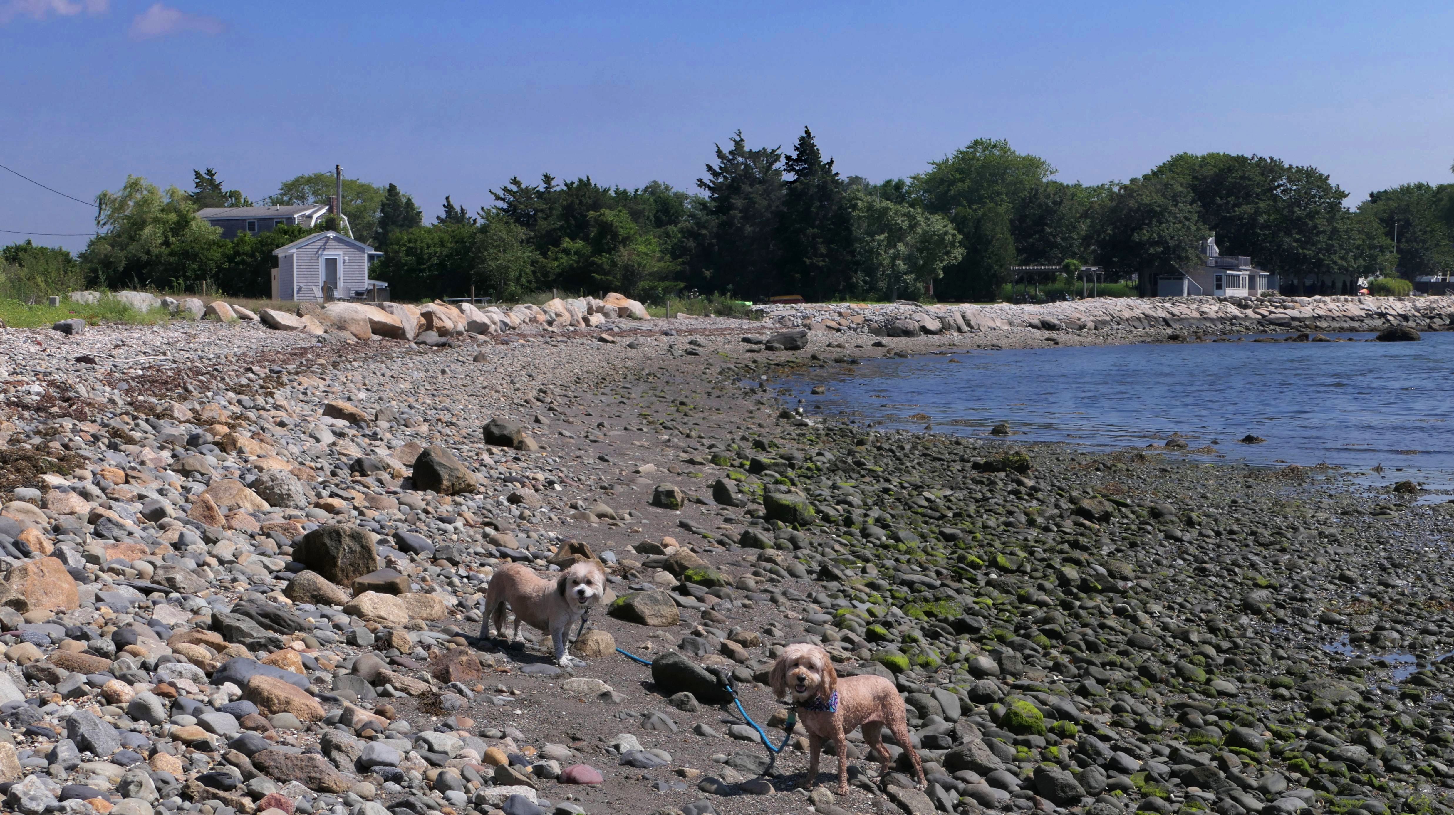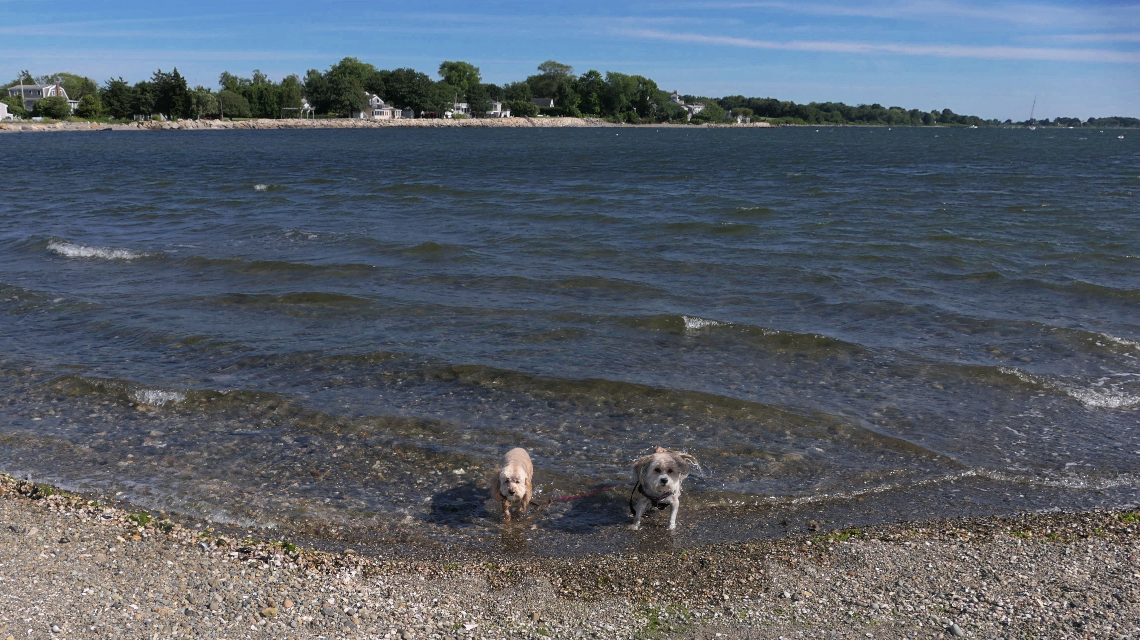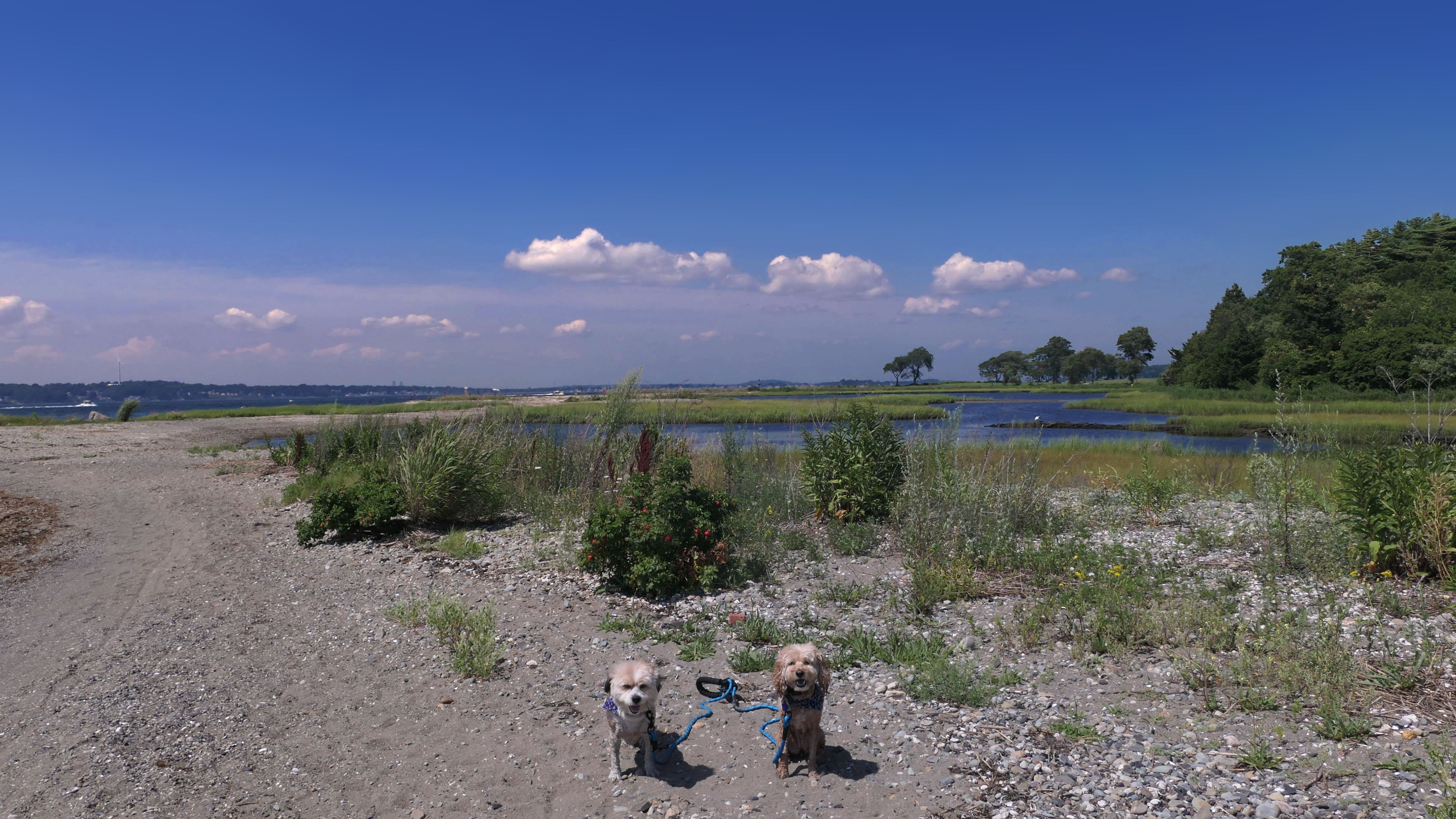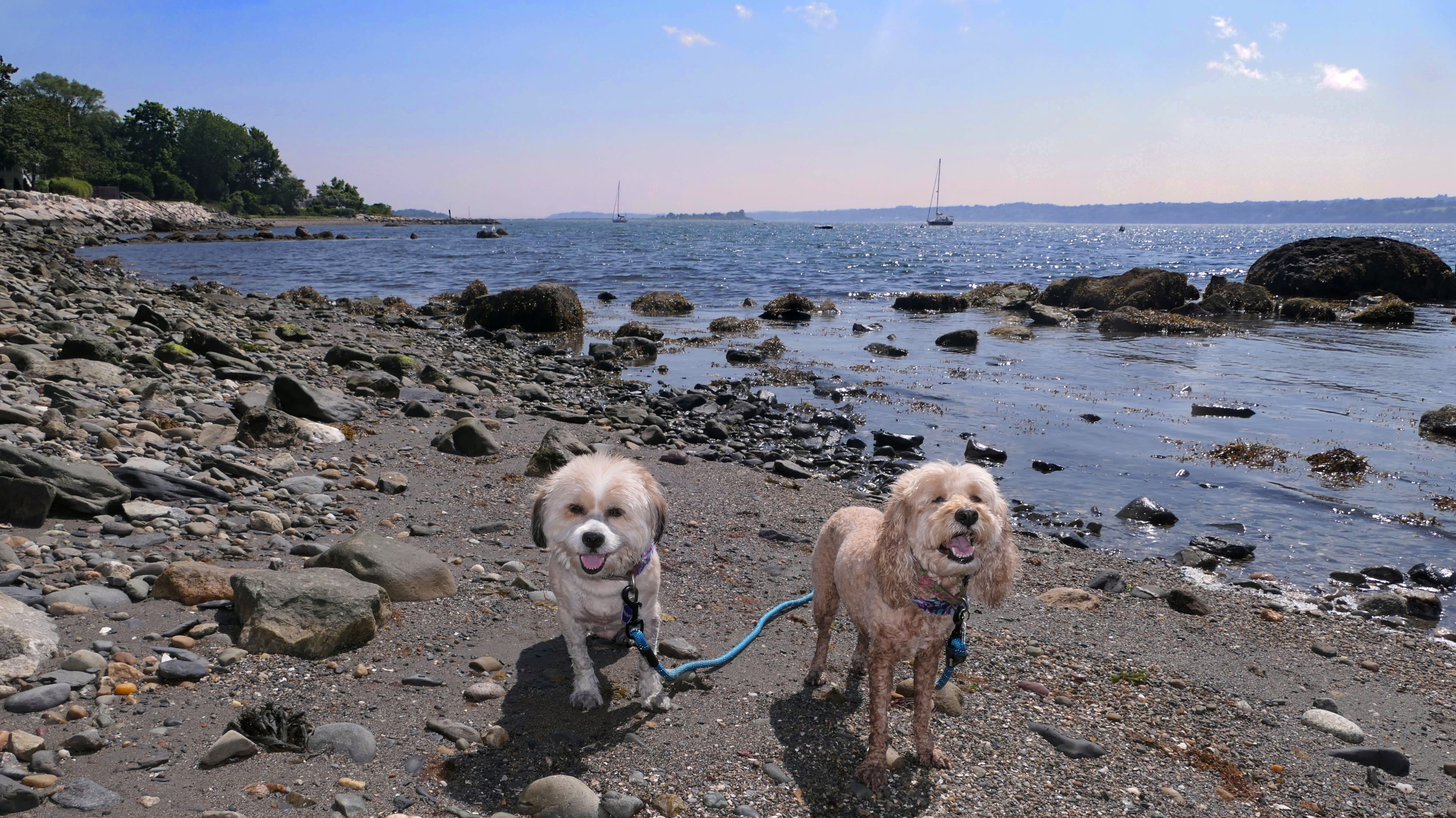 First of all, the rules for dogs here are quite confusing. The town of Tiverton's website indicates that leashed dogs are allowed off-season, but it isn't specific as to what time of the year constitutes "off-season". They charge for parking between Memorial and Labor Day, but based on the signage at the actual beach, dogs aren't allowed until Columbus Day and only allowed on off-beach areas. But this wasn't the actual beach. I believe we were at the conservation area, but the whole thing is quite confusing. There were five other dogs here when we arrived, so we just went with it! At any rate, we walked the 1.2 mile trail outlined in the All-Trails app, but it really wasn't a trail. It was more of a path along a rocky road at first, and then just along side the shore. It was okay, but this is far from the best "beachy" area we visited in Rhode Island. Still, it was a nice day, and the dogs enjoyed wading into the water.