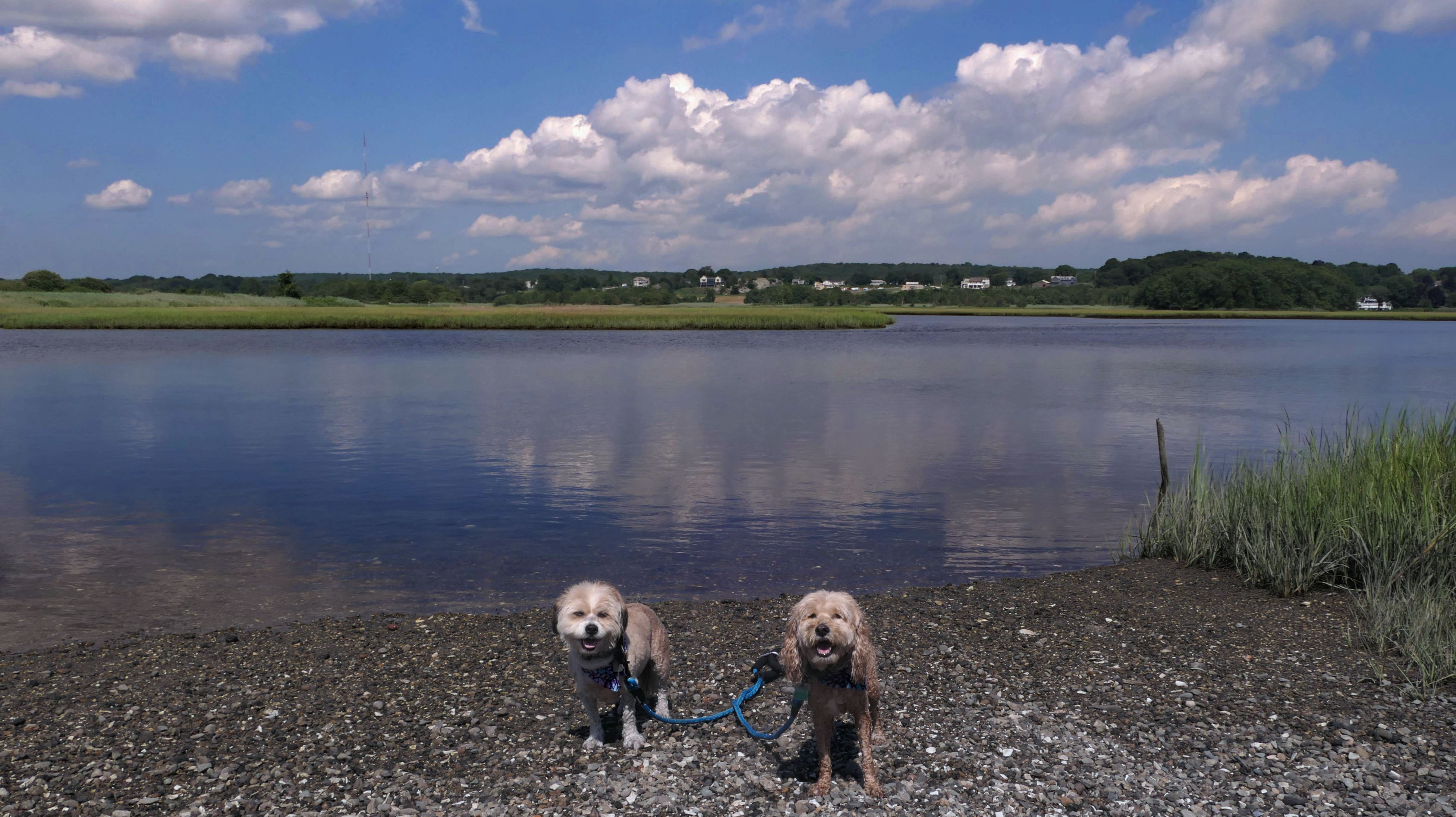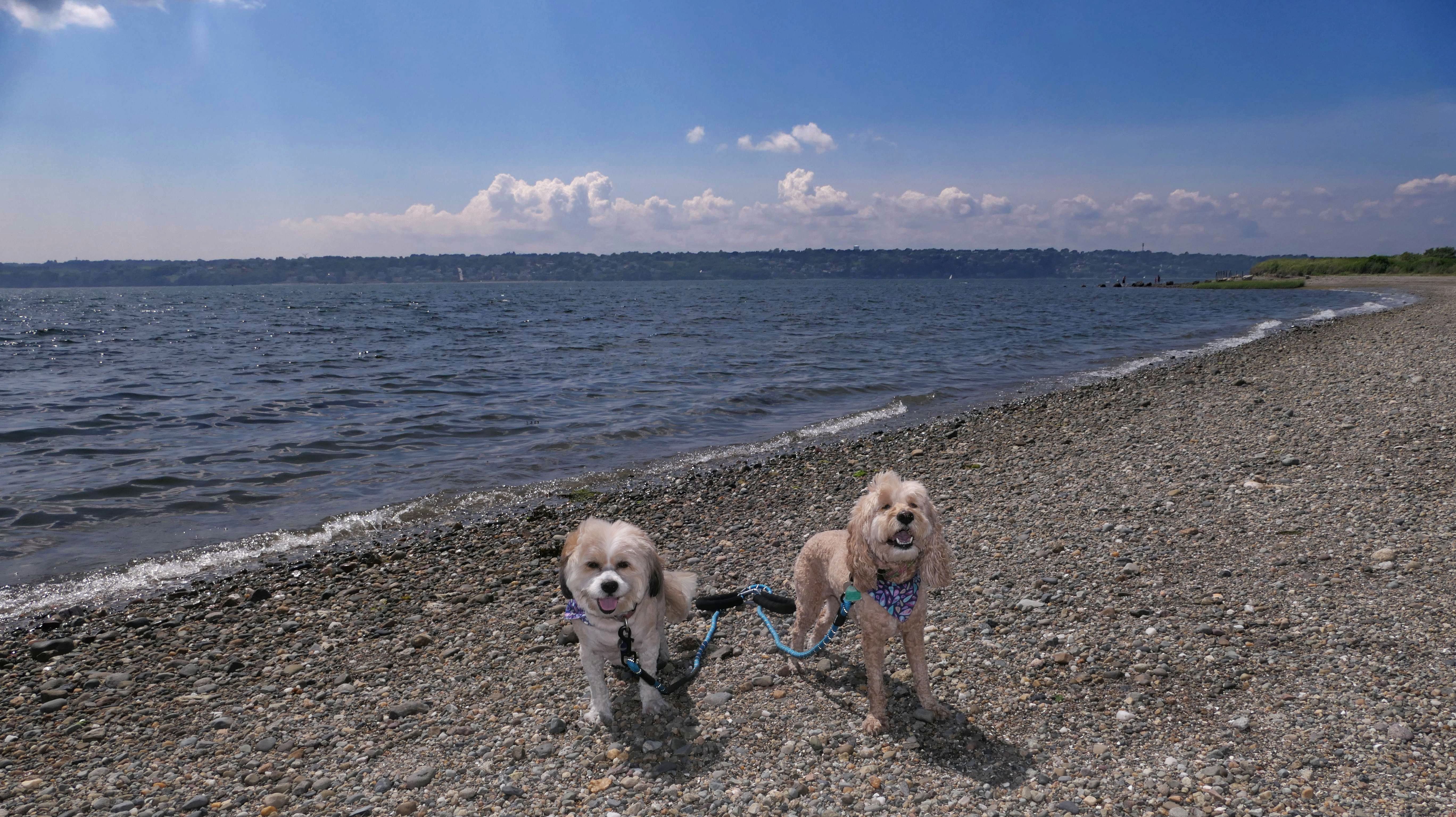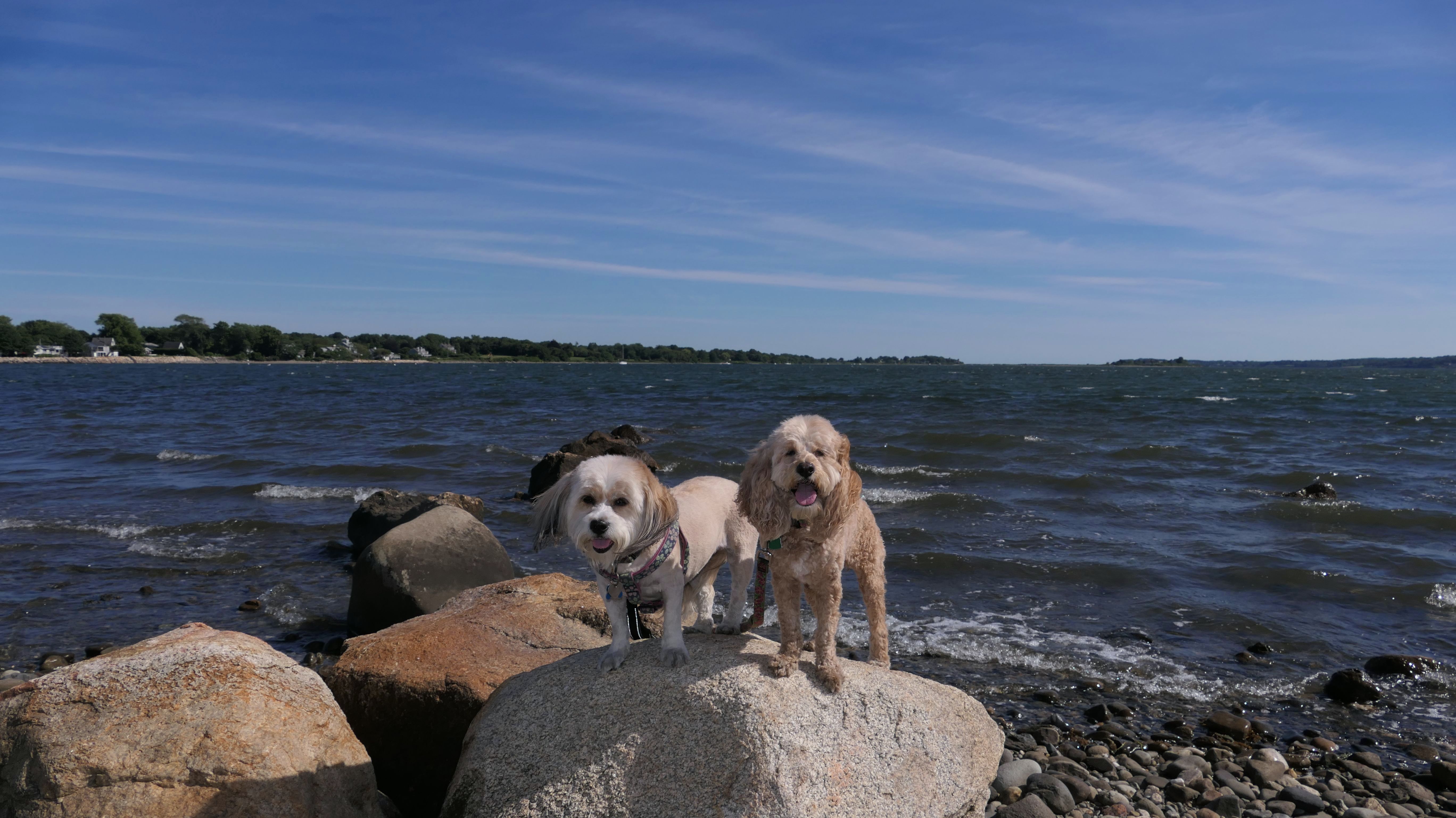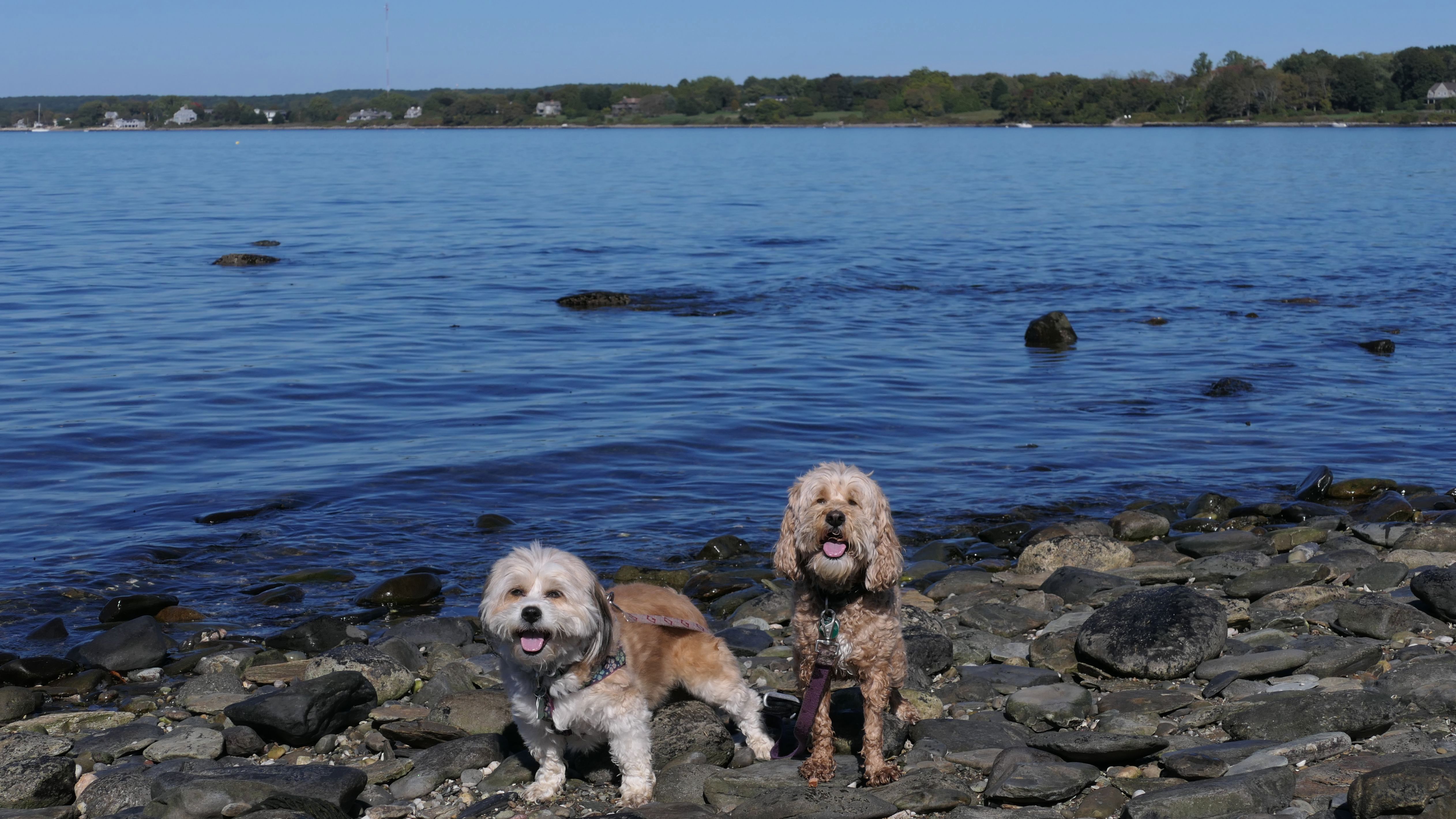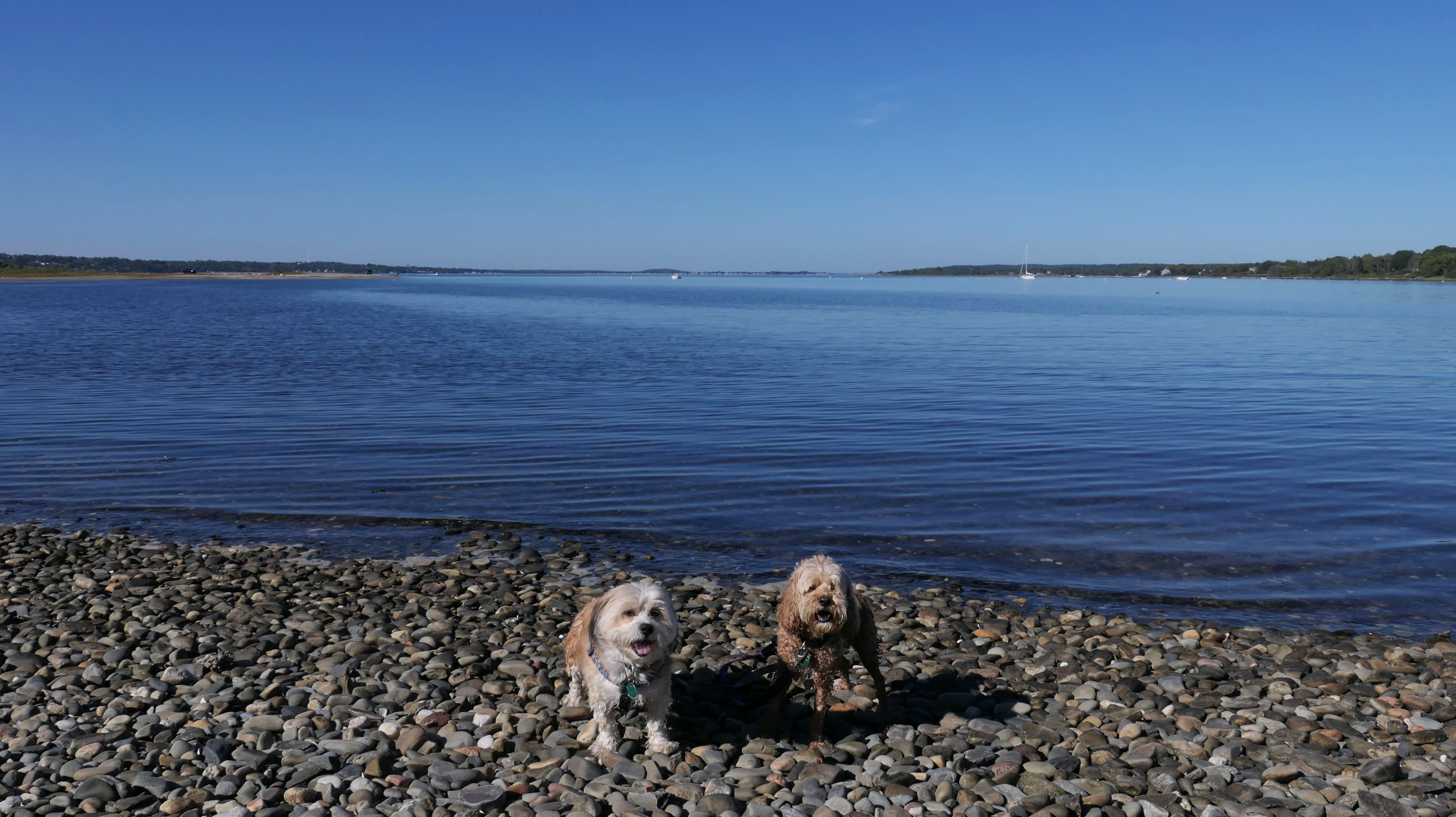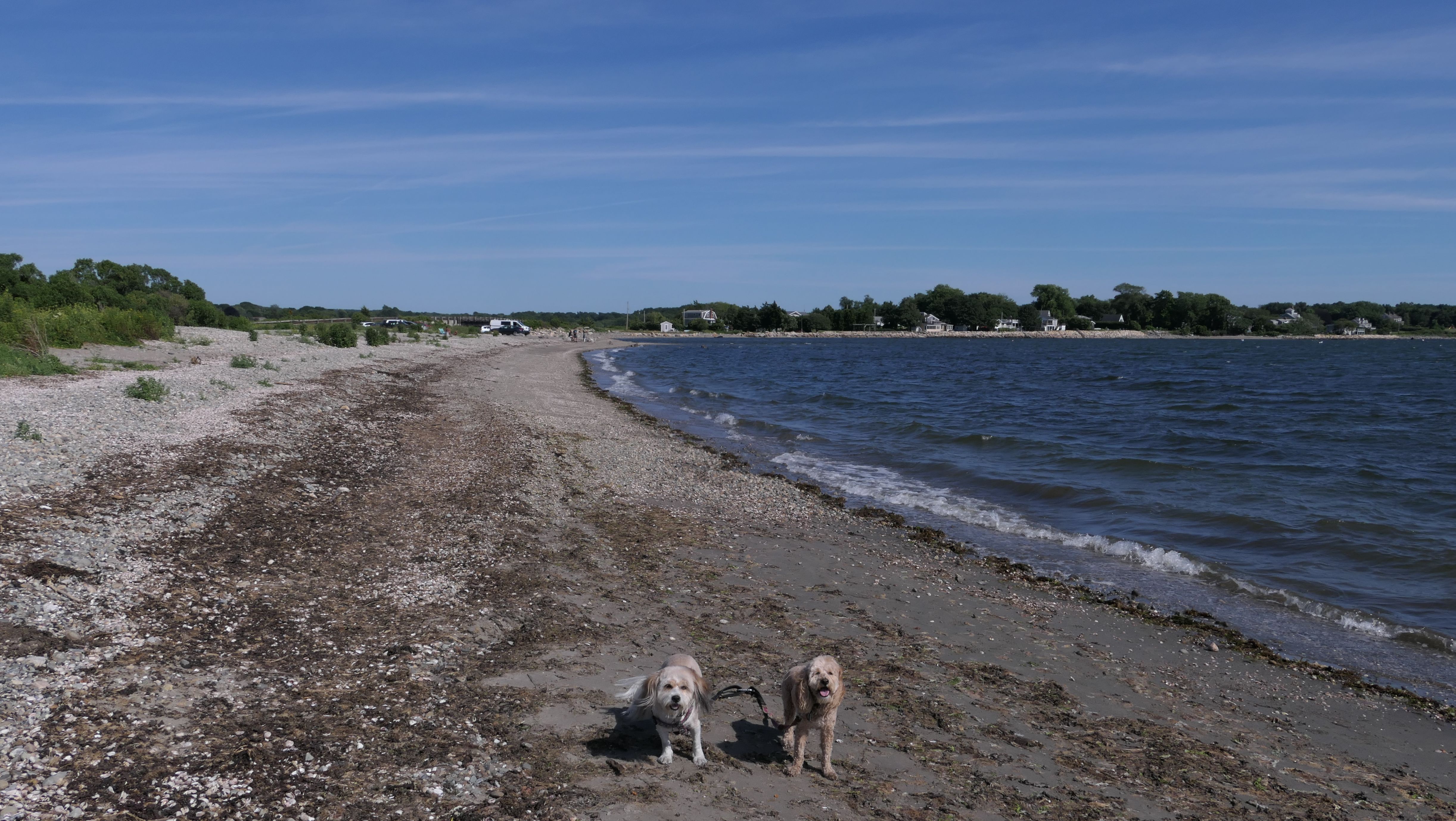 First of all, the rules for dogs here are quite confusing. The town of Tiverton's website indicates that leashed dogs are allowed off-season, but it isn't specific as to what time of the year constitutes "off-season". They charge for parking between Memorial and Labor Day, but based on the signage at the actual beach, dogs aren't allowed until Columbus Day and only allowed on off-beach areas. But this wasn't the actual beach. I believe we were at the conservation area, but the whole thing is quite confusing. There were five other dogs here when we arrived, so we just went with it! At any rate, we walked the 1.2 mile trail outlined in the All-Trails app, but it really wasn't a trail. It was more of a path along a rocky road at first, and then just along side the shore. It was okay, but this is far from the best "beachy" area we visited in Rhode Island. Still, it was a nice day, and the dogs enjoyed wading into the water.