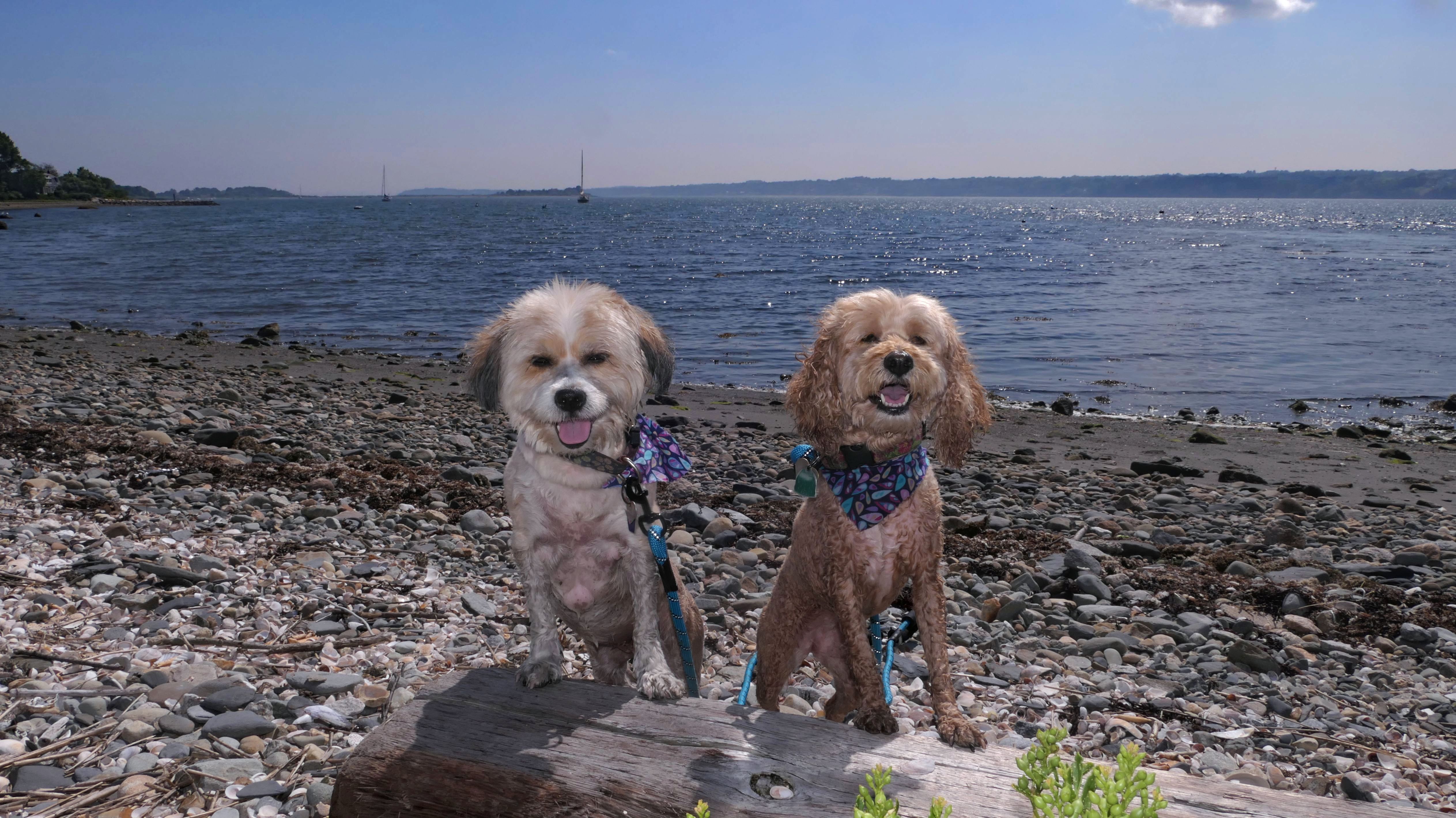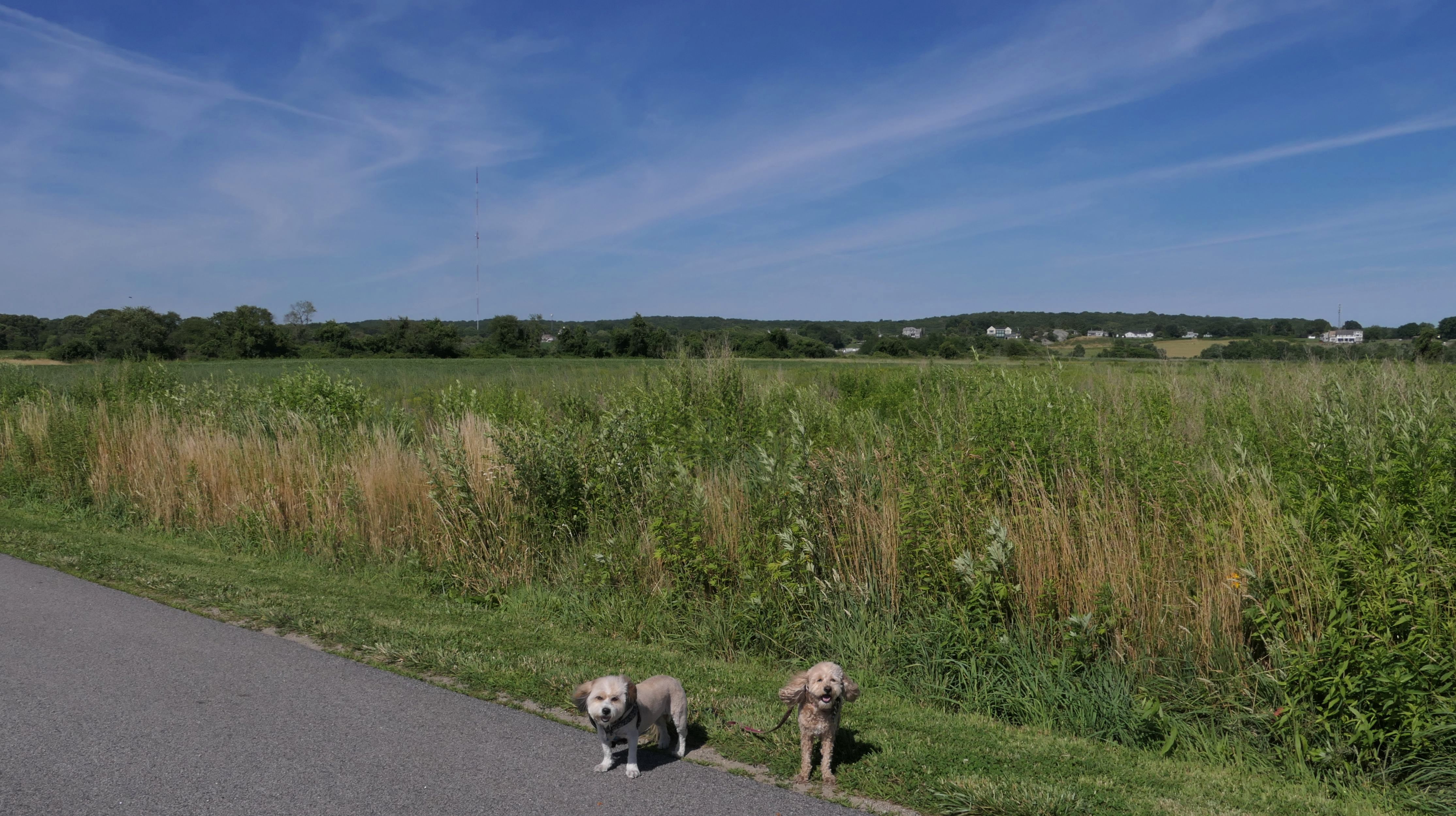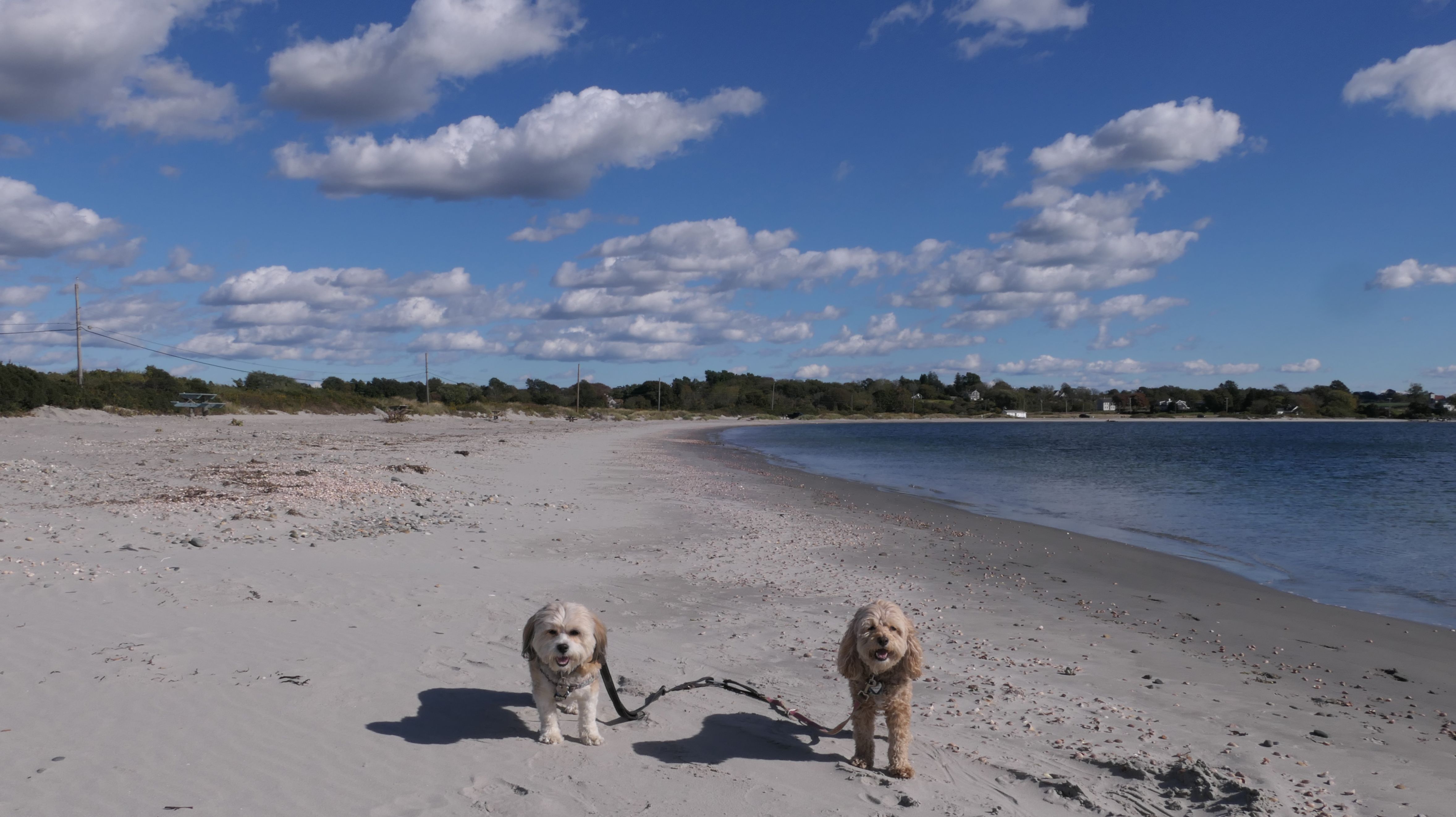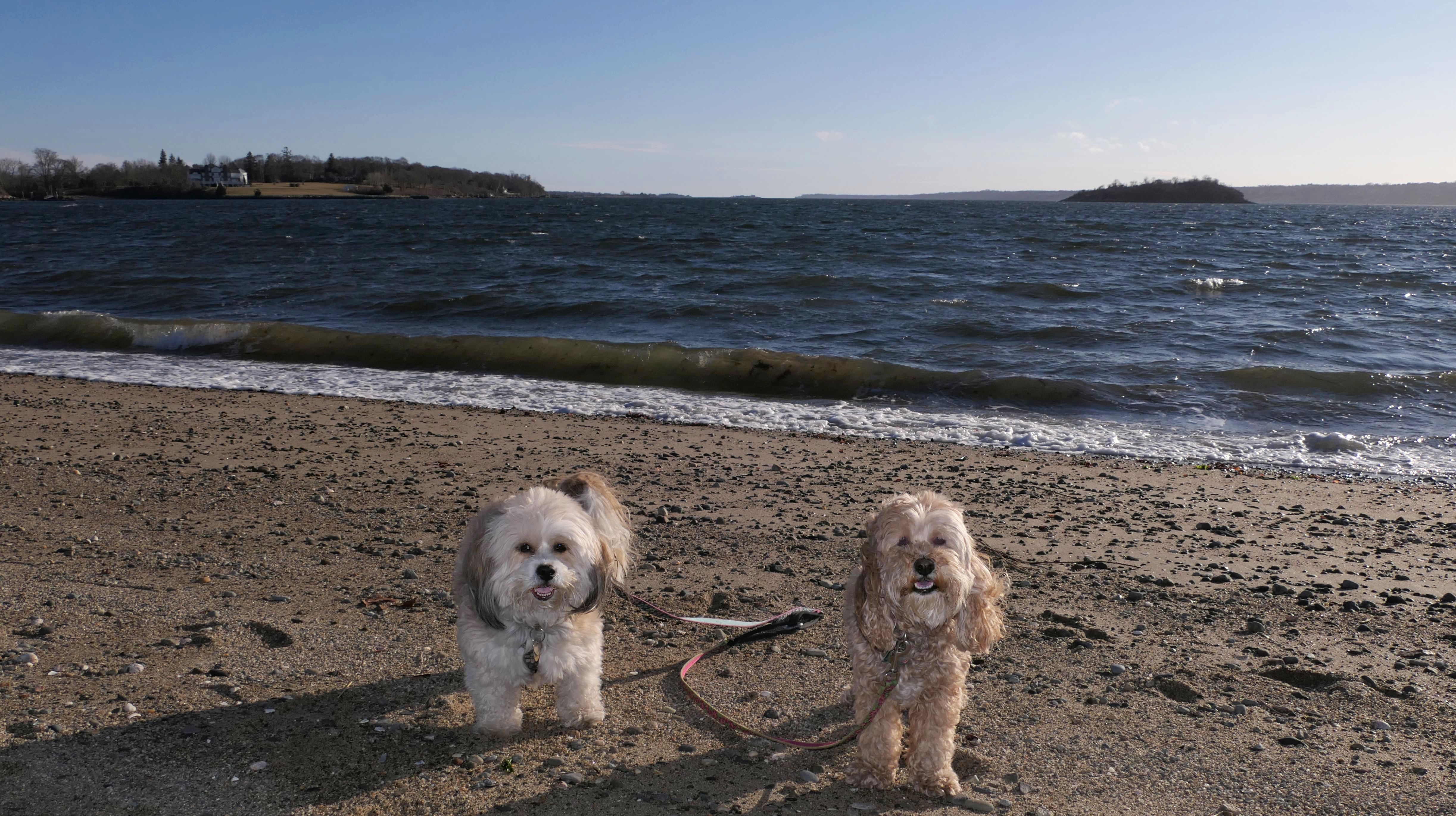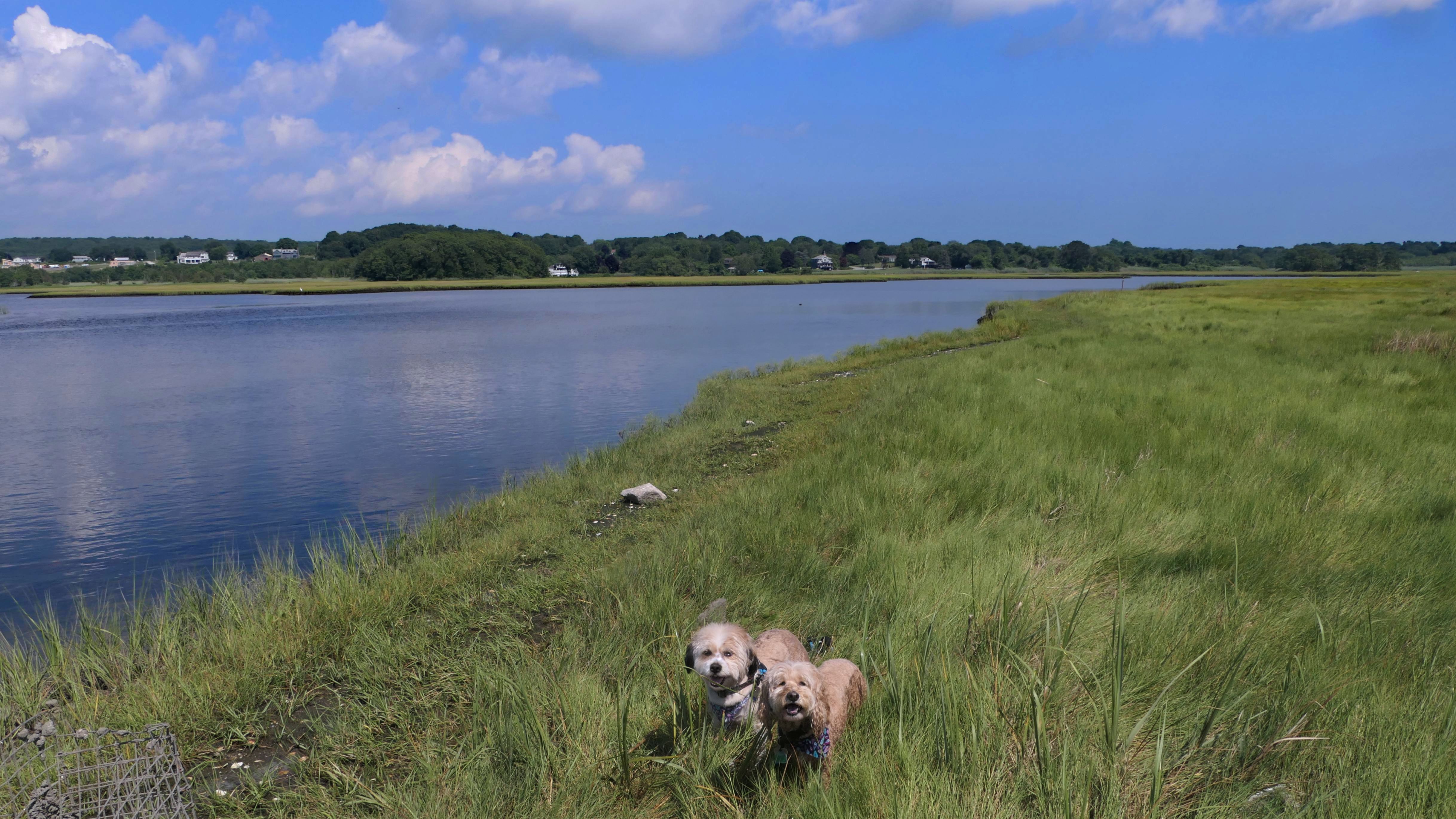 First of all, the rules for dogs here are quite confusing. The town of Tiverton's website indicates that leashed dogs are allowed off-season, but it isn't specific as to what time of the year constitutes "off-season". They charge for parking between Memorial and Labor Day, but based on the signage at the actual beach, dogs aren't allowed until Columbus Day and only allowed on off-beach areas. But this wasn't the actual beach. I believe we were at the conservation area, but the whole thing is quite confusing. There were five other dogs here when we arrived, so we just went with it! At any rate, we walked the 1.2 mile trail outlined in the All-Trails app, but it really wasn't a trail. It was more of a path along a rocky road at first, and then just along side the shore. It was okay, but this is far from the best "beachy" area we visited in Rhode Island. Still, it was a nice day, and the dogs enjoyed wading into the water.