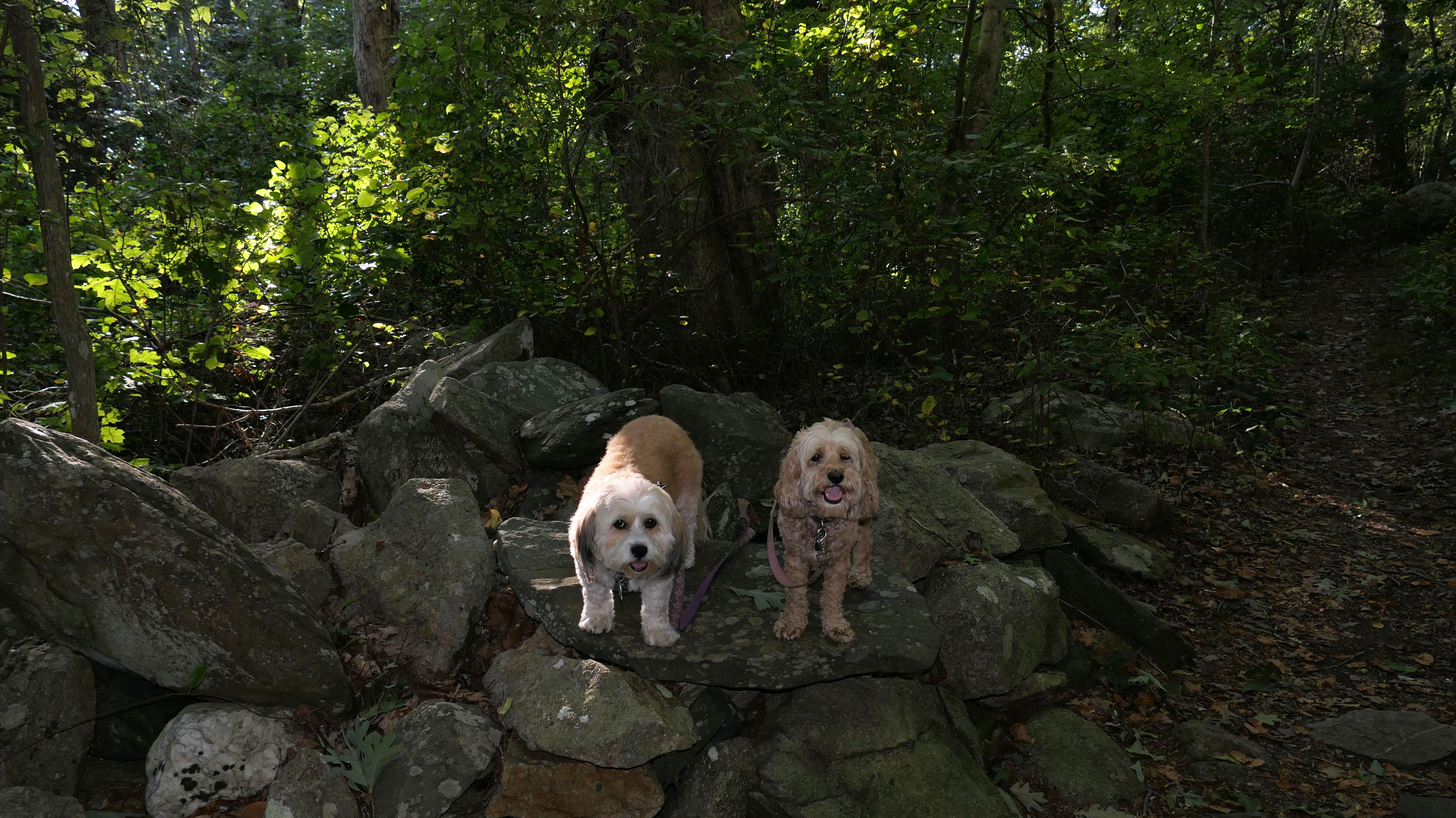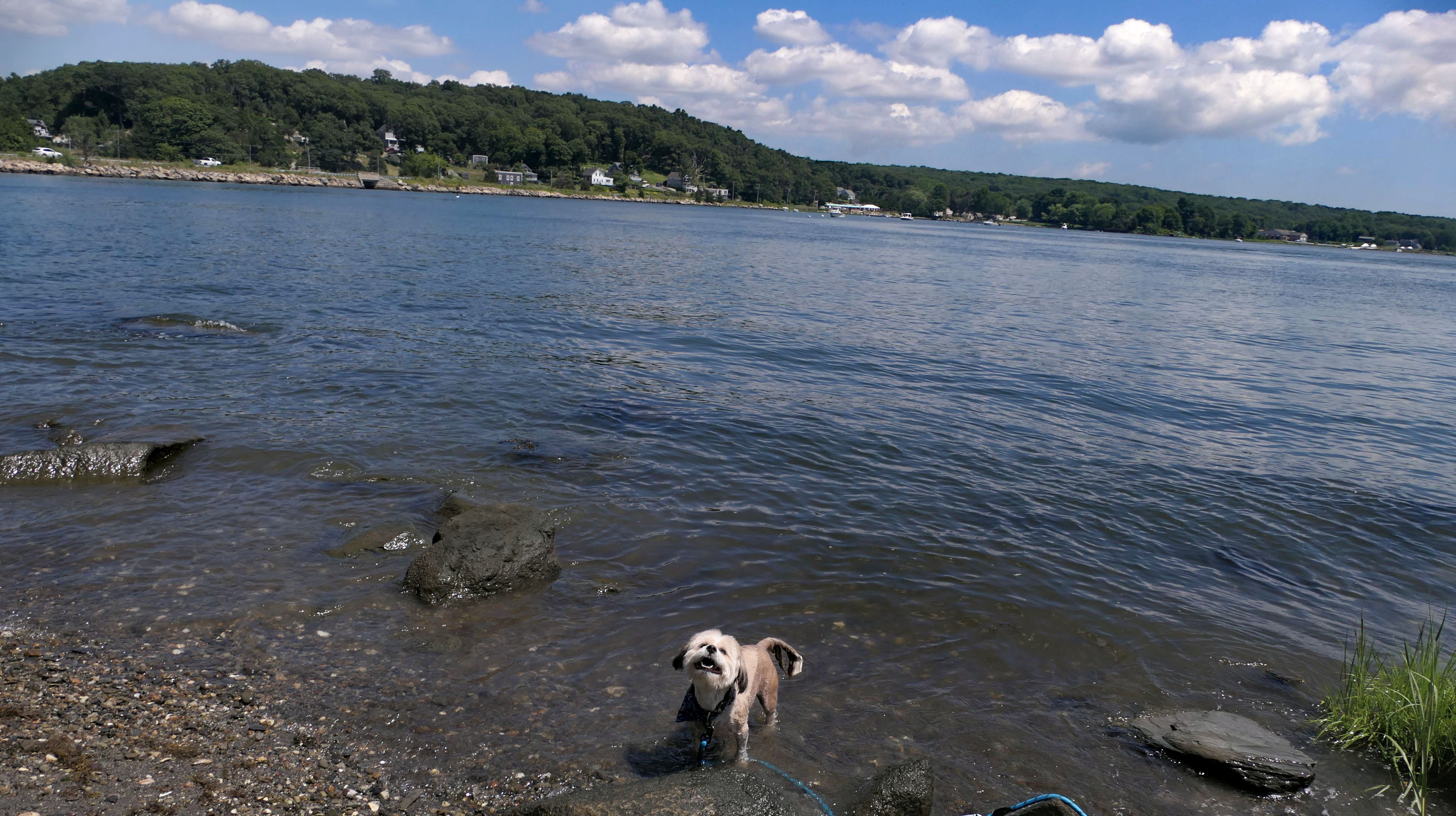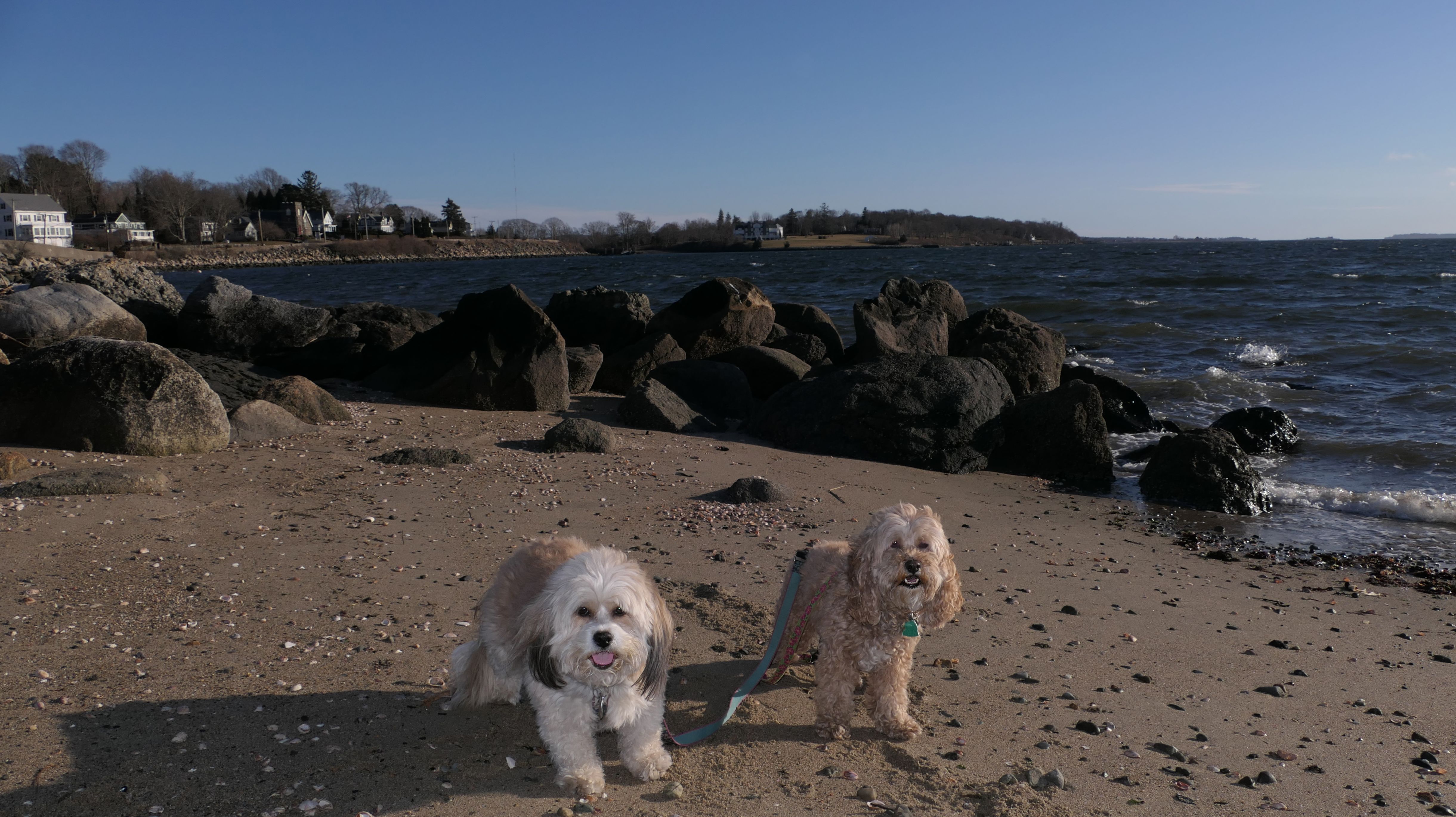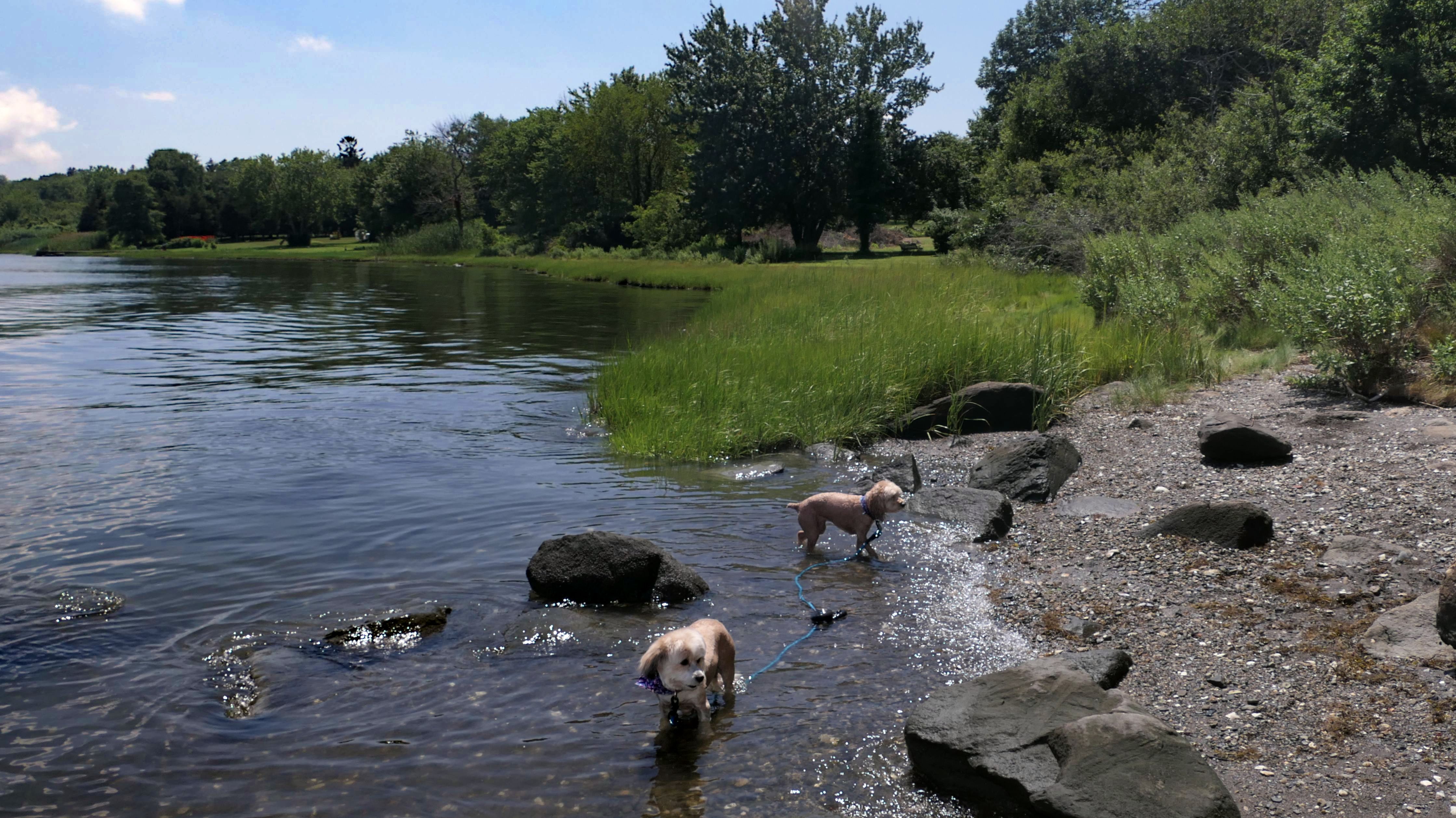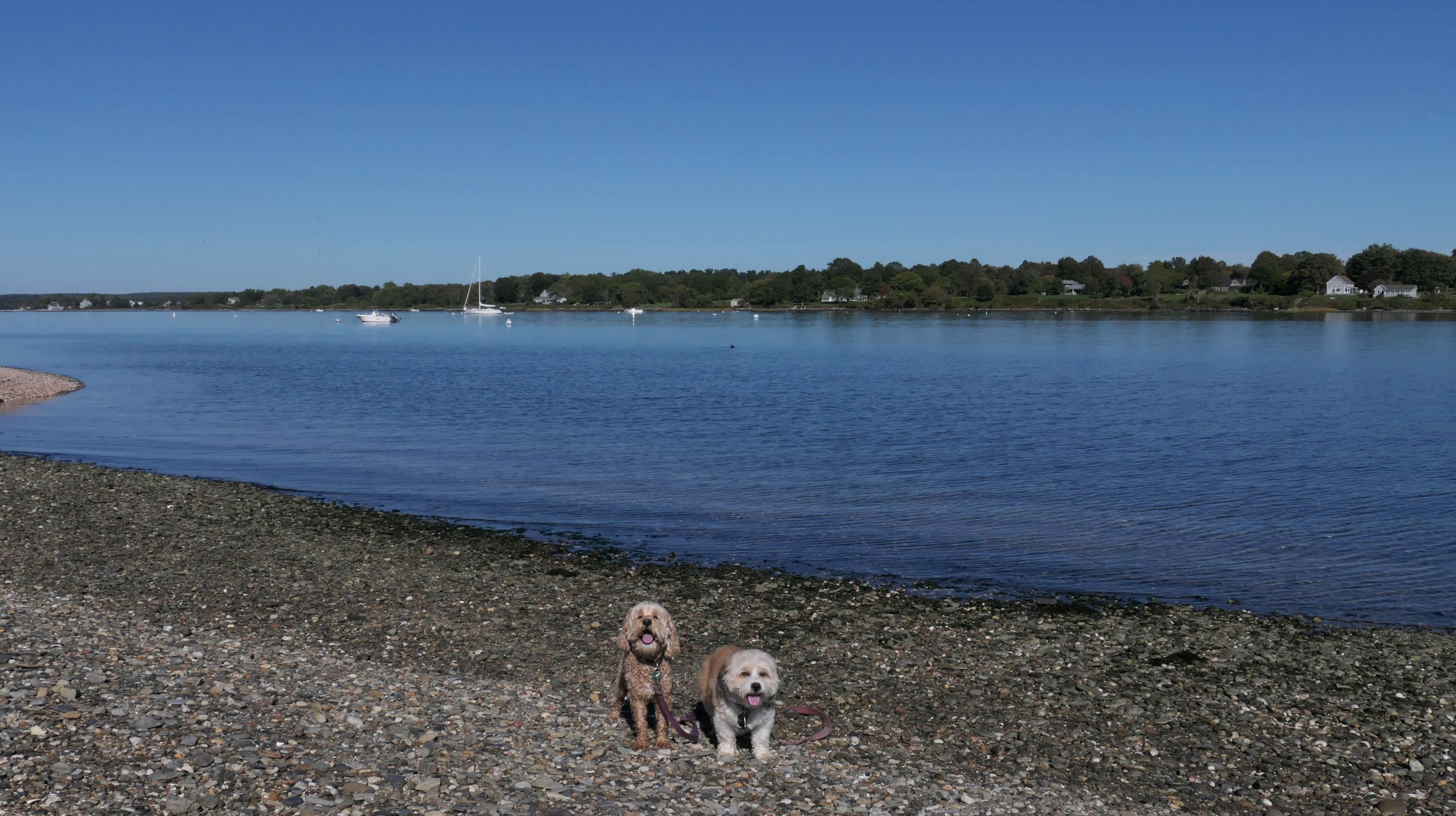 First of all, the rules for dogs here are quite confusing. The town of Tiverton's website indicates that leashed dogs are allowed off-season, but it isn't specific as to what time of the year constitutes "off-season". They charge for parking between Memorial and Labor Day, but based on the signage at the actual beach, dogs aren't allowed until Columbus Day and only allowed on off-beach areas. But this wasn't the actual beach. I believe we were at the conservation area, but the whole thing is quite confusing. There were five other dogs here when we arrived, so we just went with it! At any rate, we walked the 1.2 mile trail outlined in the All-Trails app, but it really wasn't a trail. It was more of a path along a rocky road at first, and then just along side the shore. It was okay, but this is far from the best "beachy" area we visited in Rhode Island. Still, it was a nice day, and the dogs enjoyed wading into the water.