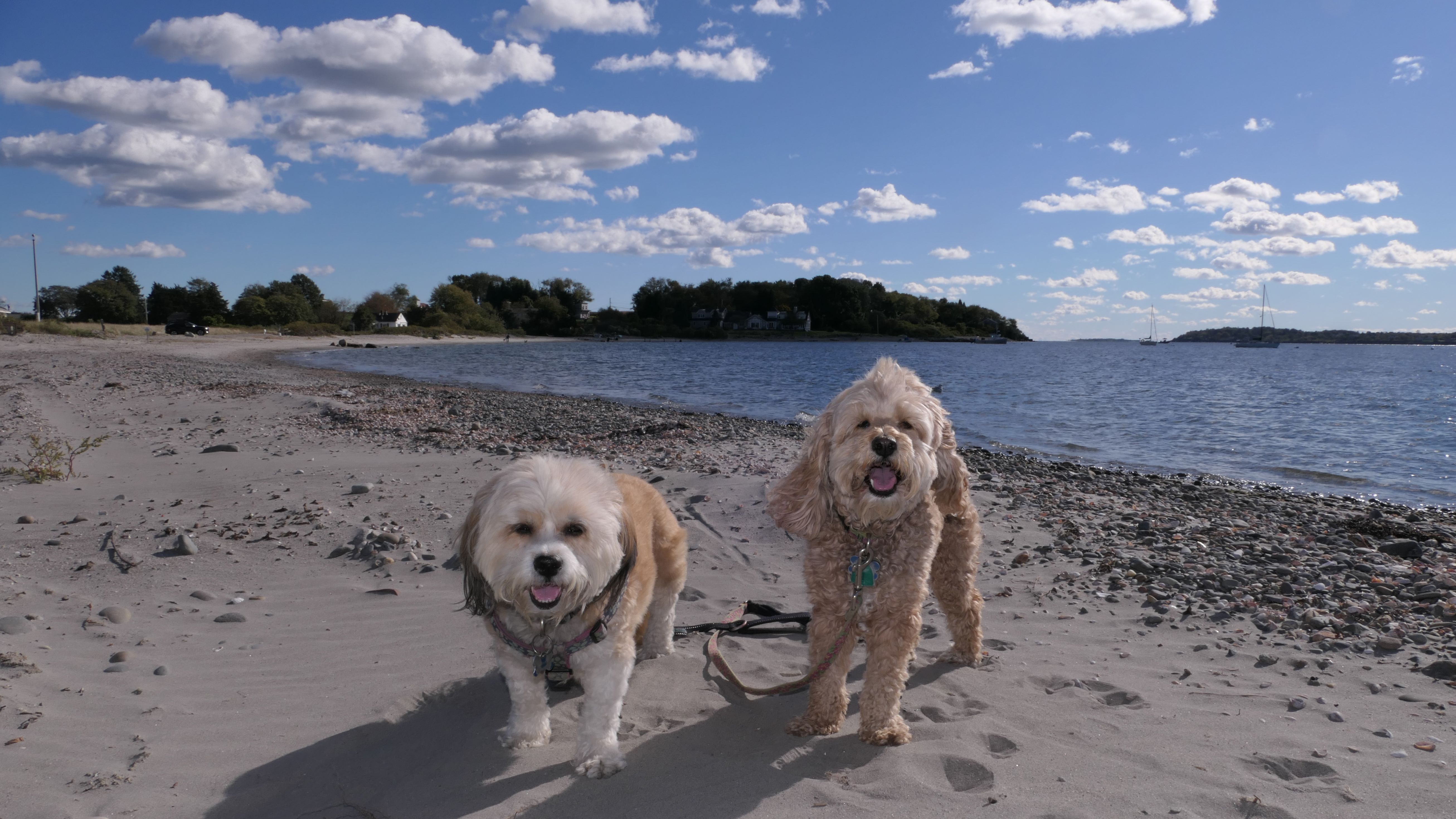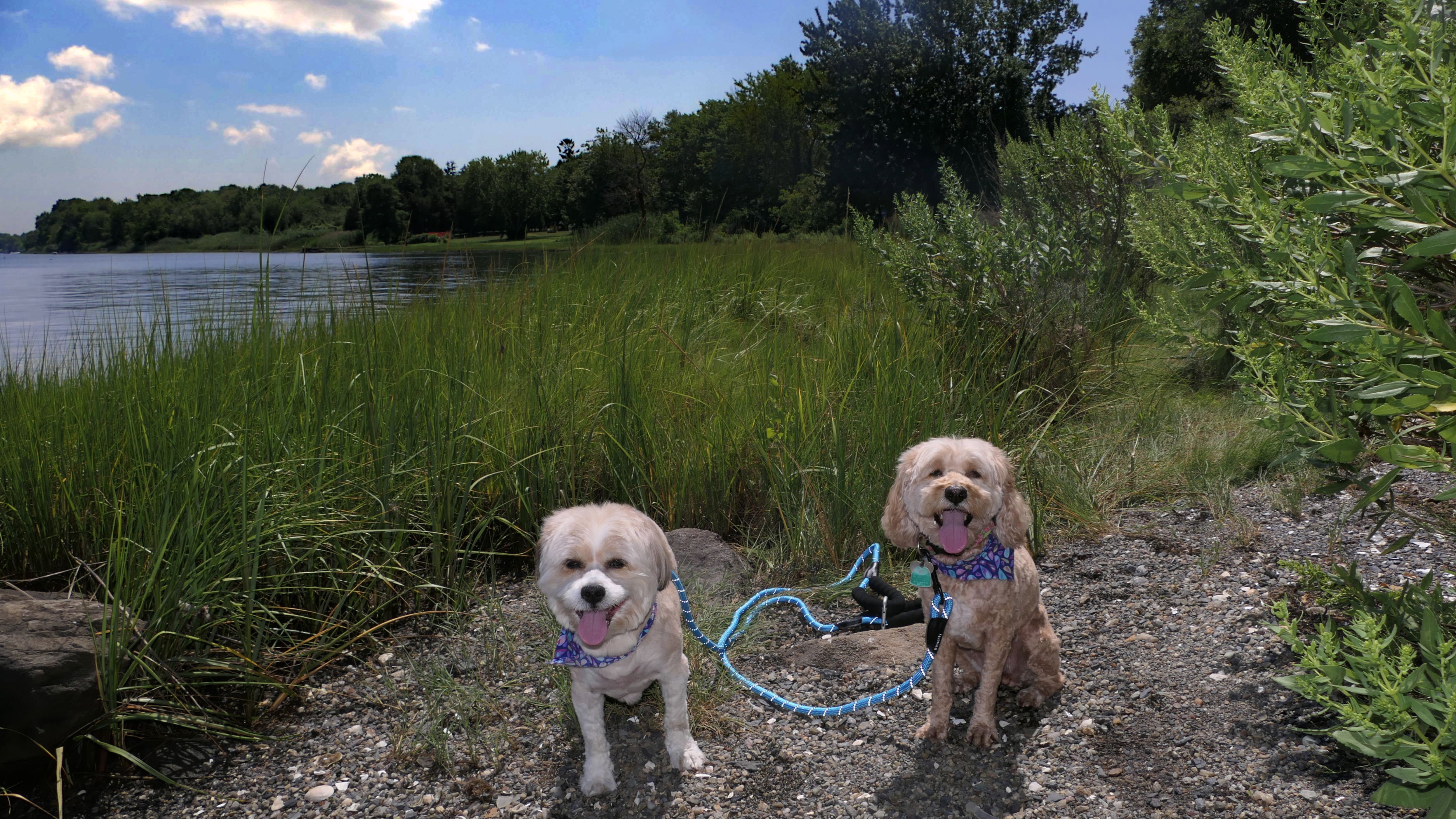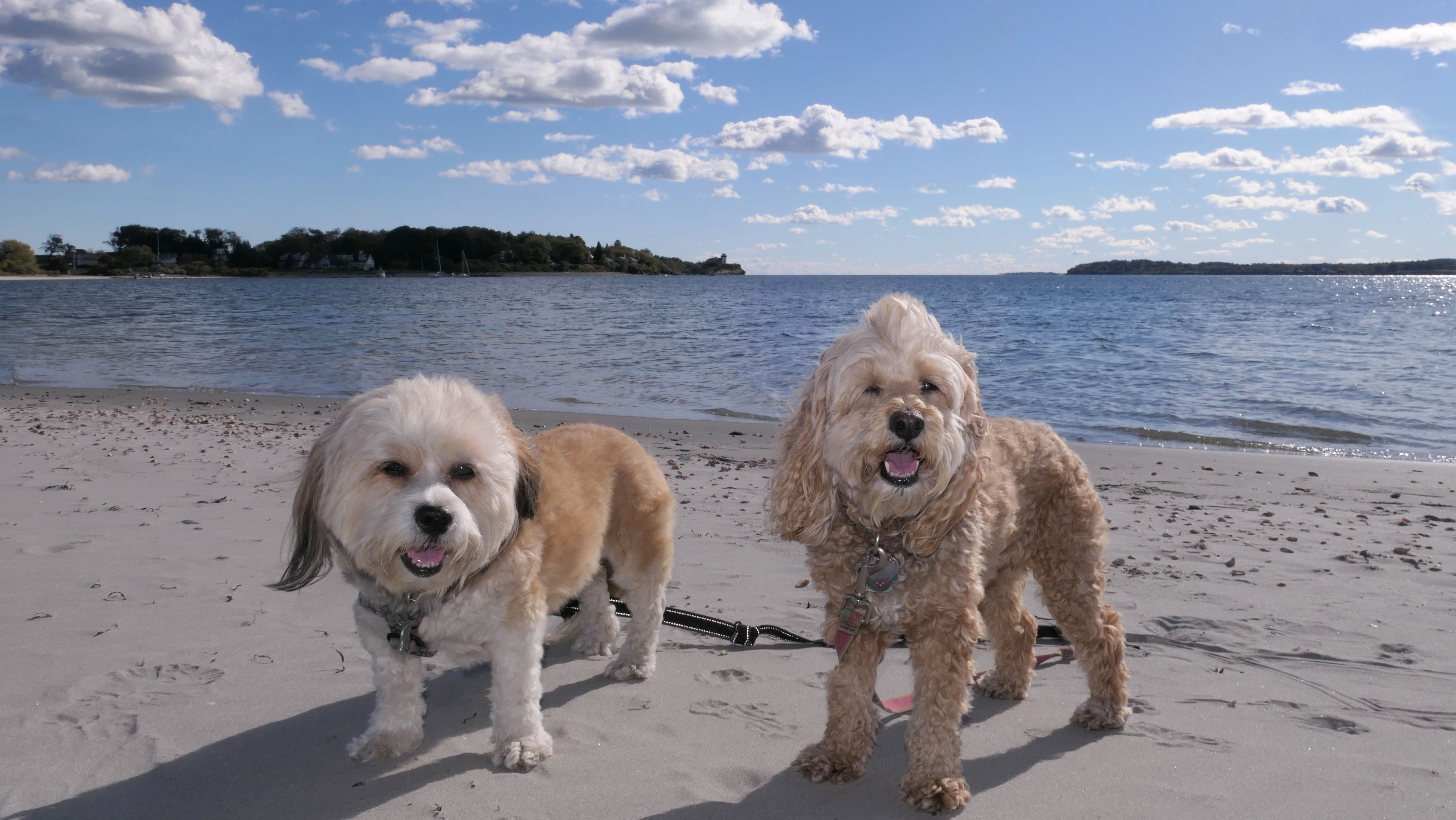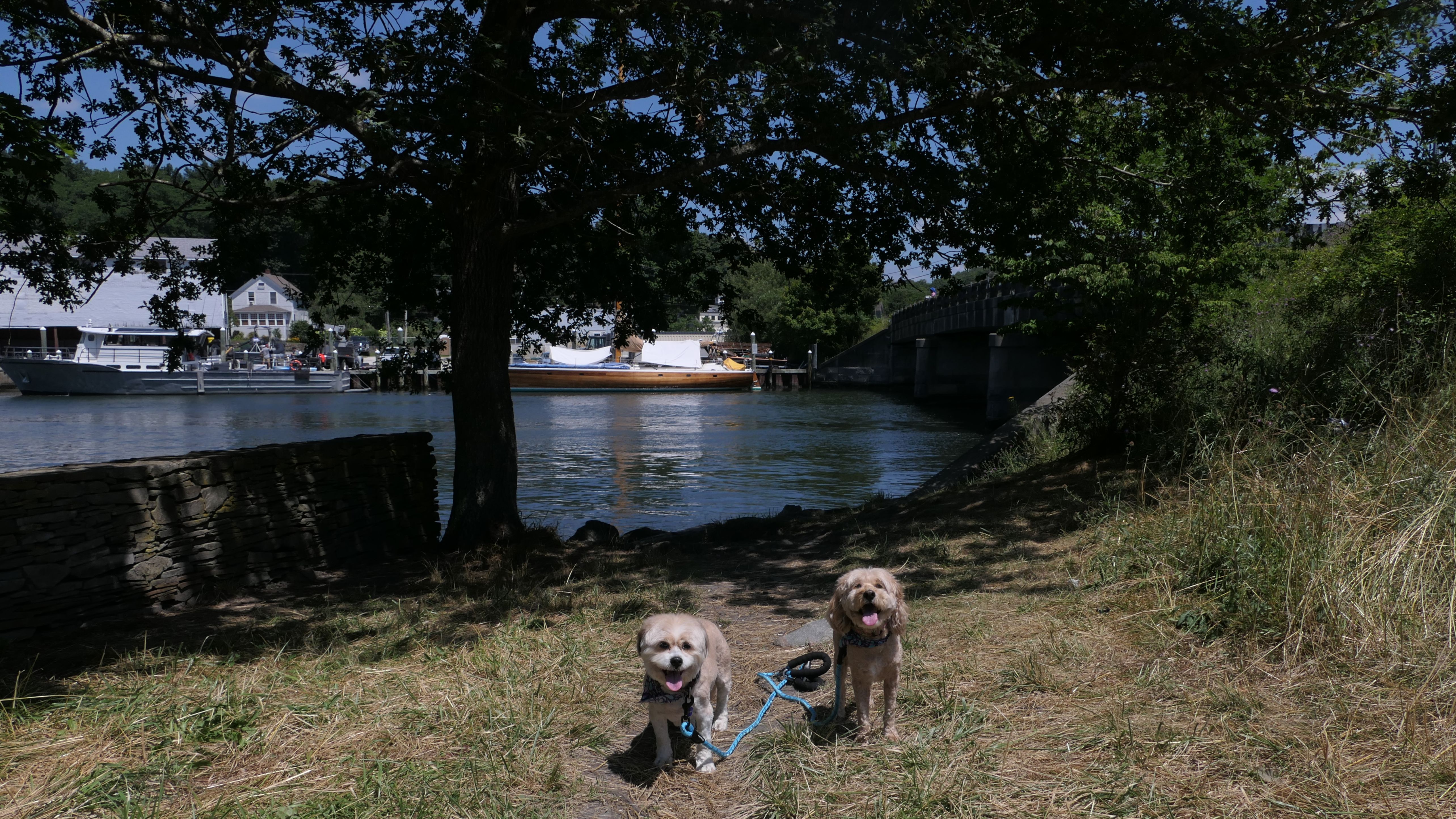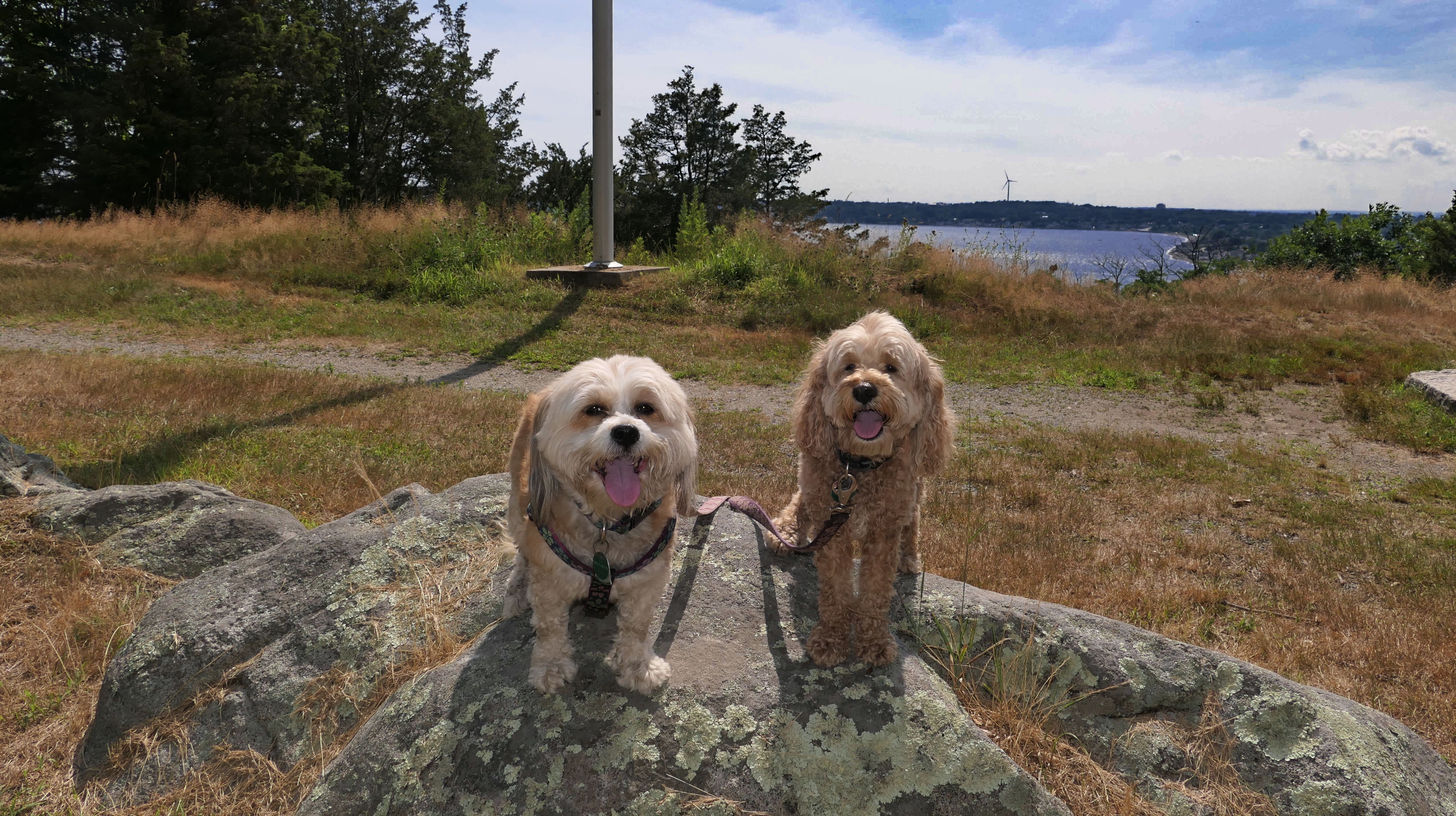 First of all, the rules for dogs here are quite confusing. The town of Tiverton's website indicates that leashed dogs are allowed off-season, but it isn't specific as to what time of the year constitutes "off-season". They charge for parking between Memorial and Labor Day, but based on the signage at the actual beach, dogs aren't allowed until Columbus Day and only allowed on off-beach areas. But this wasn't the actual beach. I believe we were at the conservation area, but the whole thing is quite confusing. There were five other dogs here when we arrived, so we just went with it! At any rate, we walked the 1.2 mile trail outlined in the All-Trails app, but it really wasn't a trail. It was more of a path along a rocky road at first, and then just along side the shore. It was okay, but this is far from the best "beachy" area we visited in Rhode Island. Still, it was a nice day, and the dogs enjoyed wading into the water.