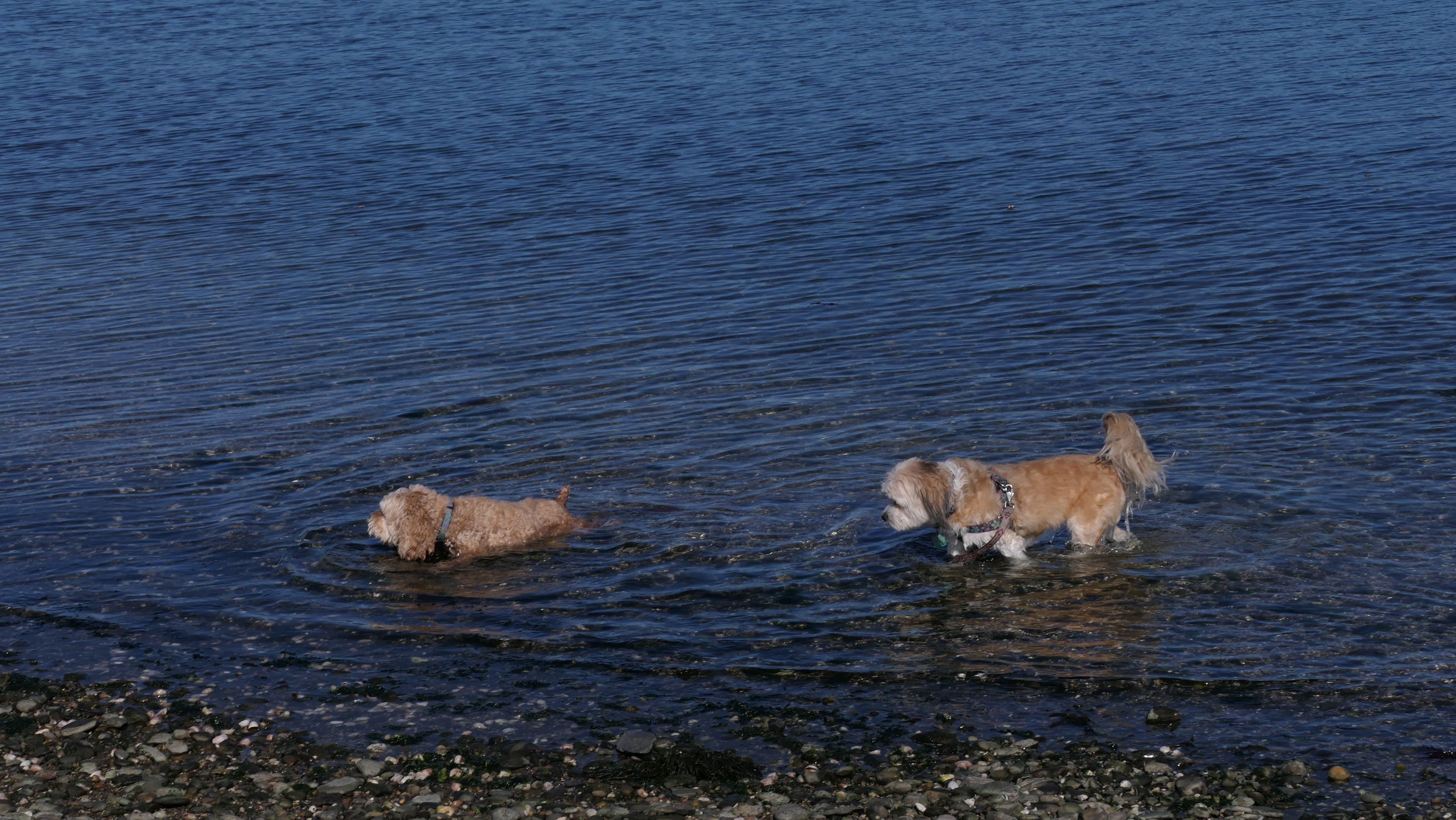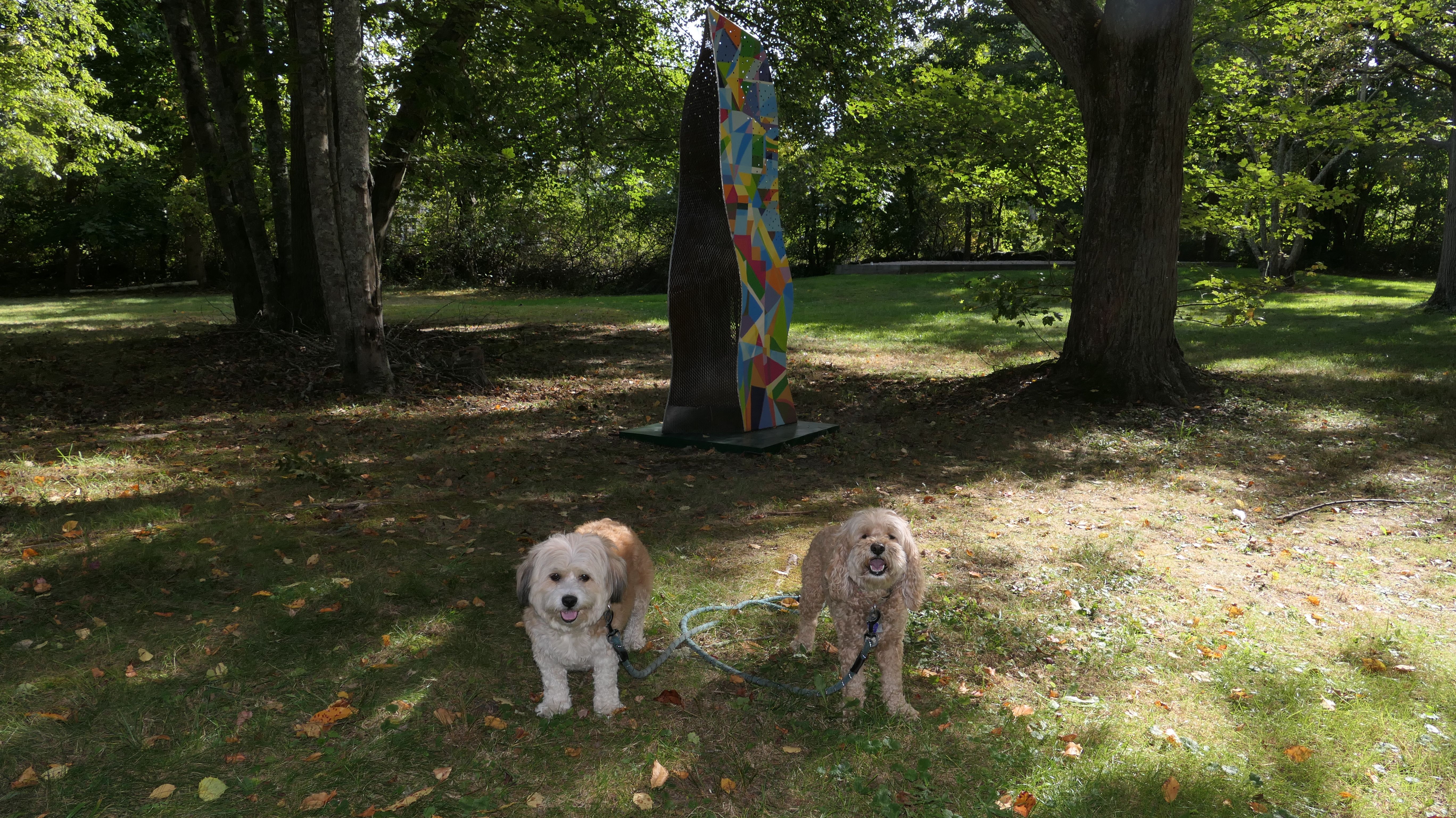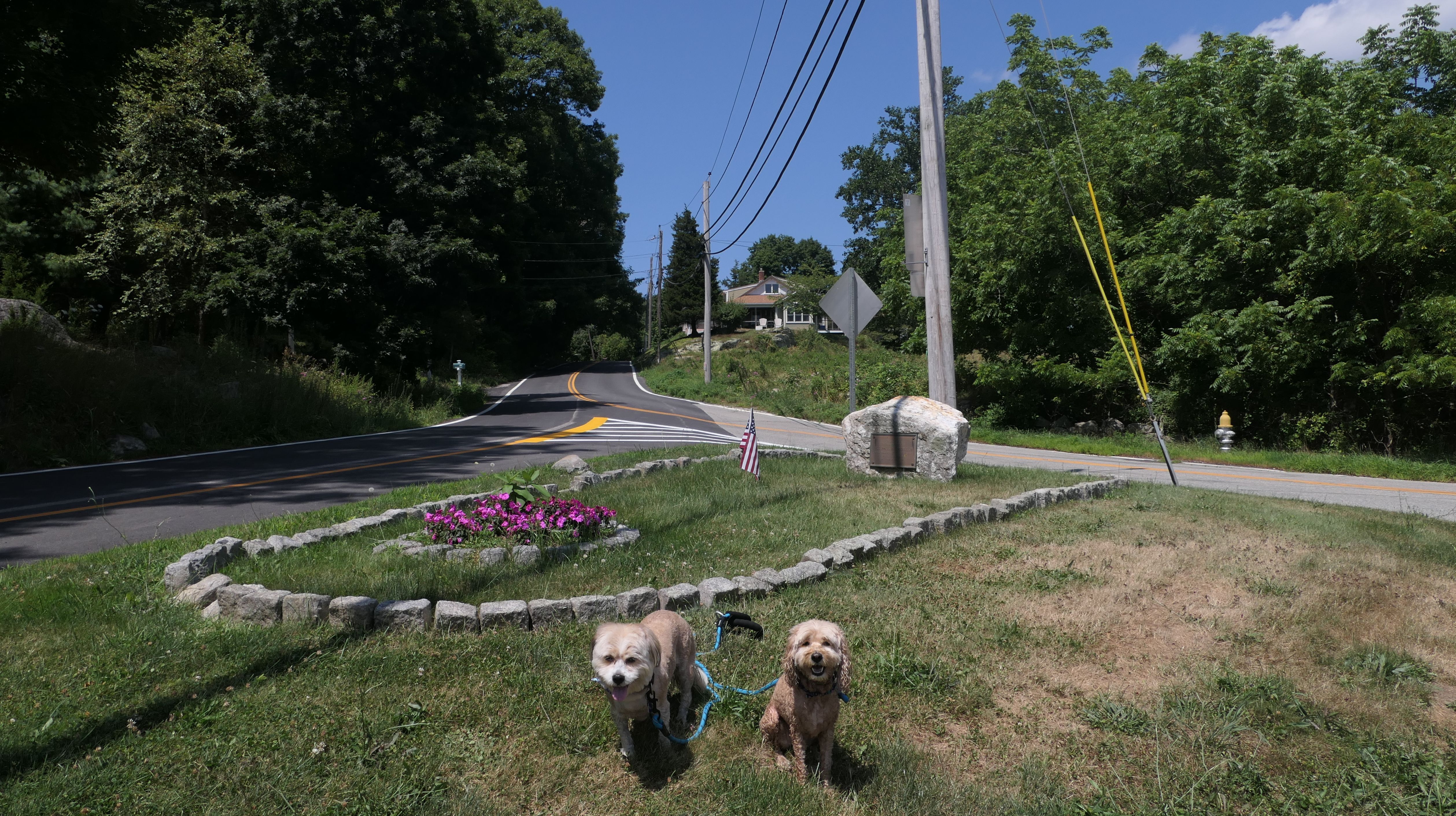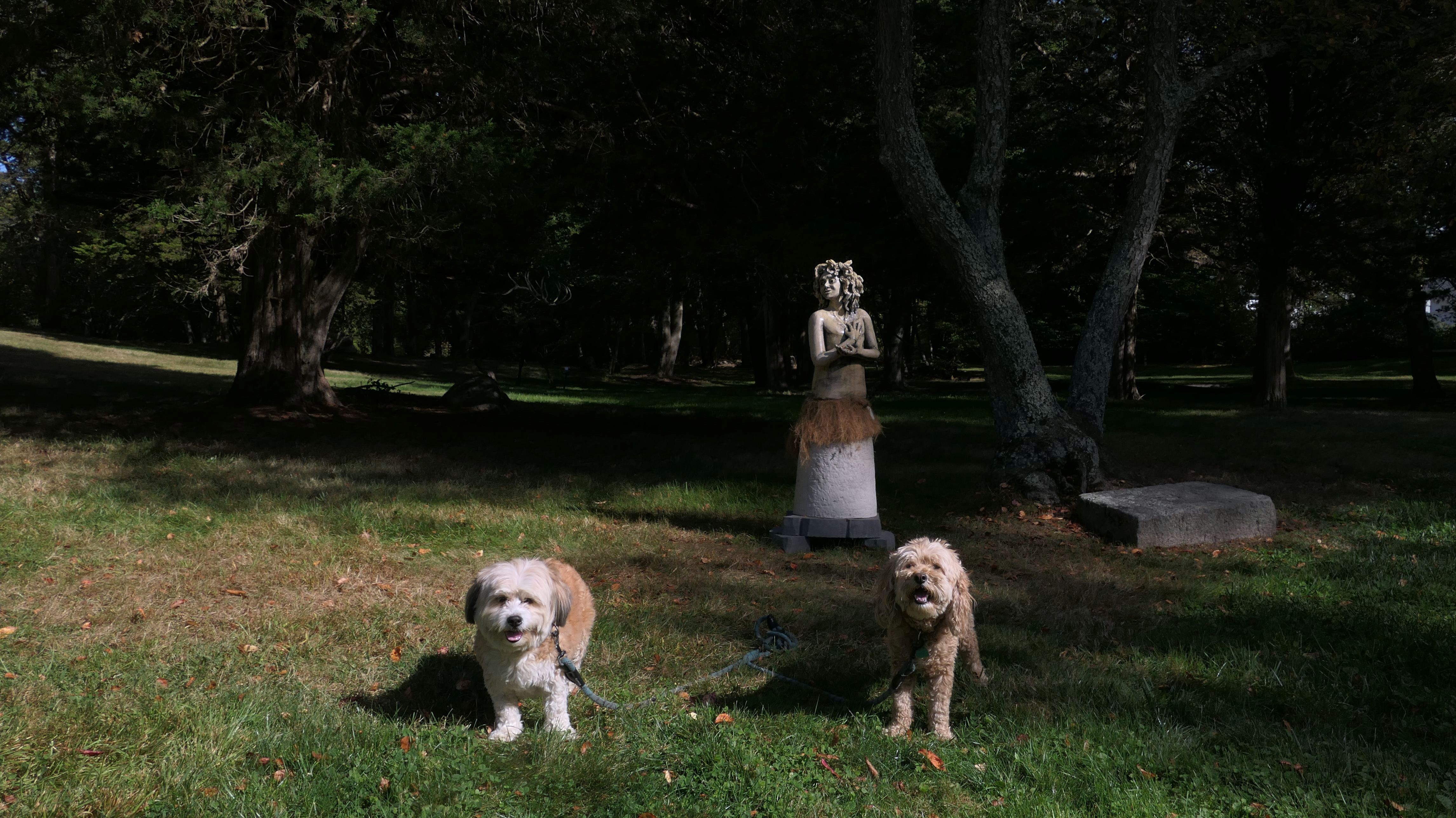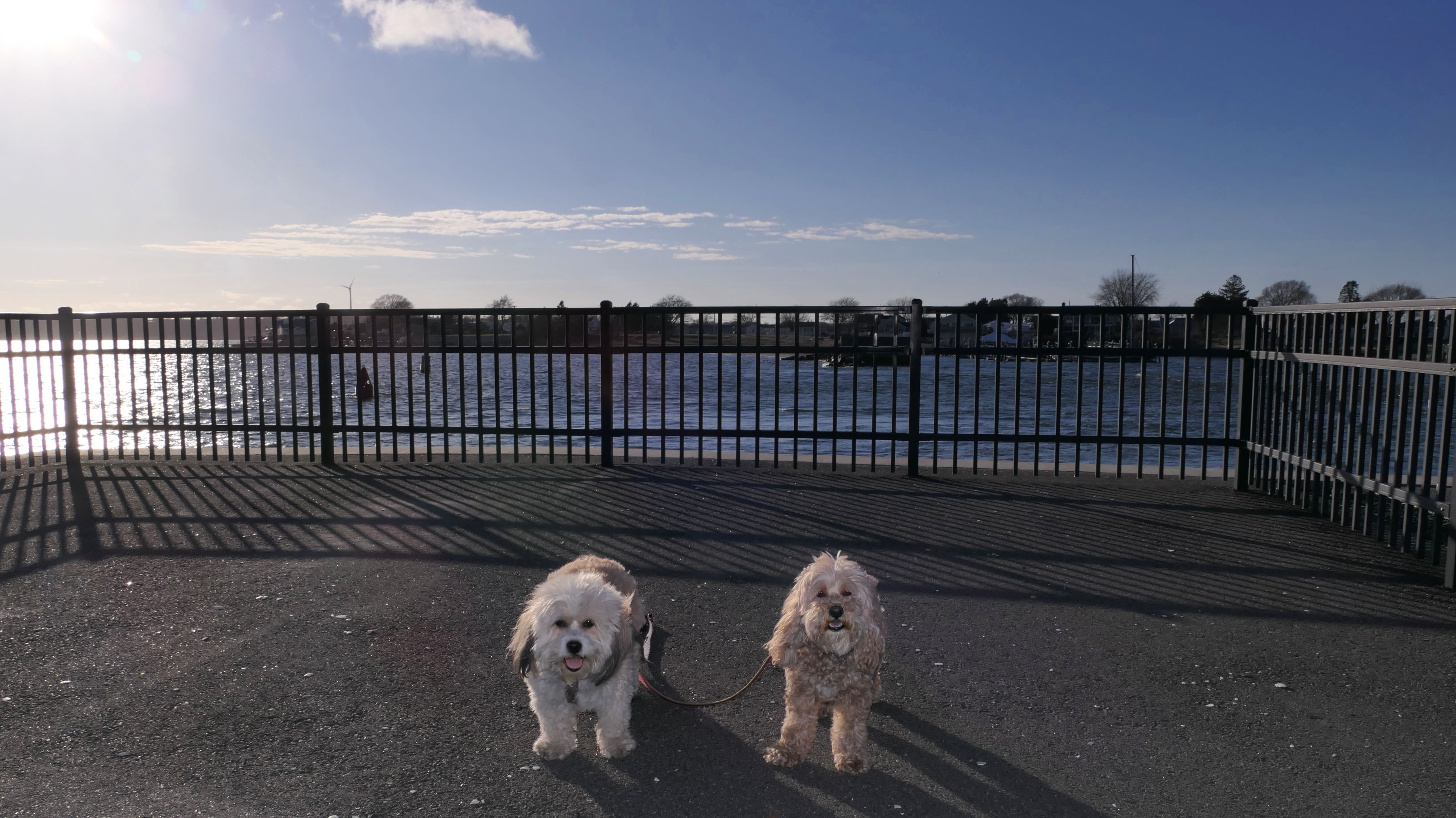 First of all, the rules for dogs here are quite confusing. The town of Tiverton's website indicates that leashed dogs are allowed off-season, but it isn't specific as to what time of the year constitutes "off-season". They charge for parking between Memorial and Labor Day, but based on the signage at the actual beach, dogs aren't allowed until Columbus Day and only allowed on off-beach areas. But this wasn't the actual beach. I believe we were at the conservation area, but the whole thing is quite confusing. There were five other dogs here when we arrived, so we just went with it! At any rate, we walked the 1.2 mile trail outlined in the All-Trails app, but it really wasn't a trail. It was more of a path along a rocky road at first, and then just along side the shore. It was okay, but this is far from the best "beachy" area we visited in Rhode Island. Still, it was a nice day, and the dogs enjoyed wading into the water.