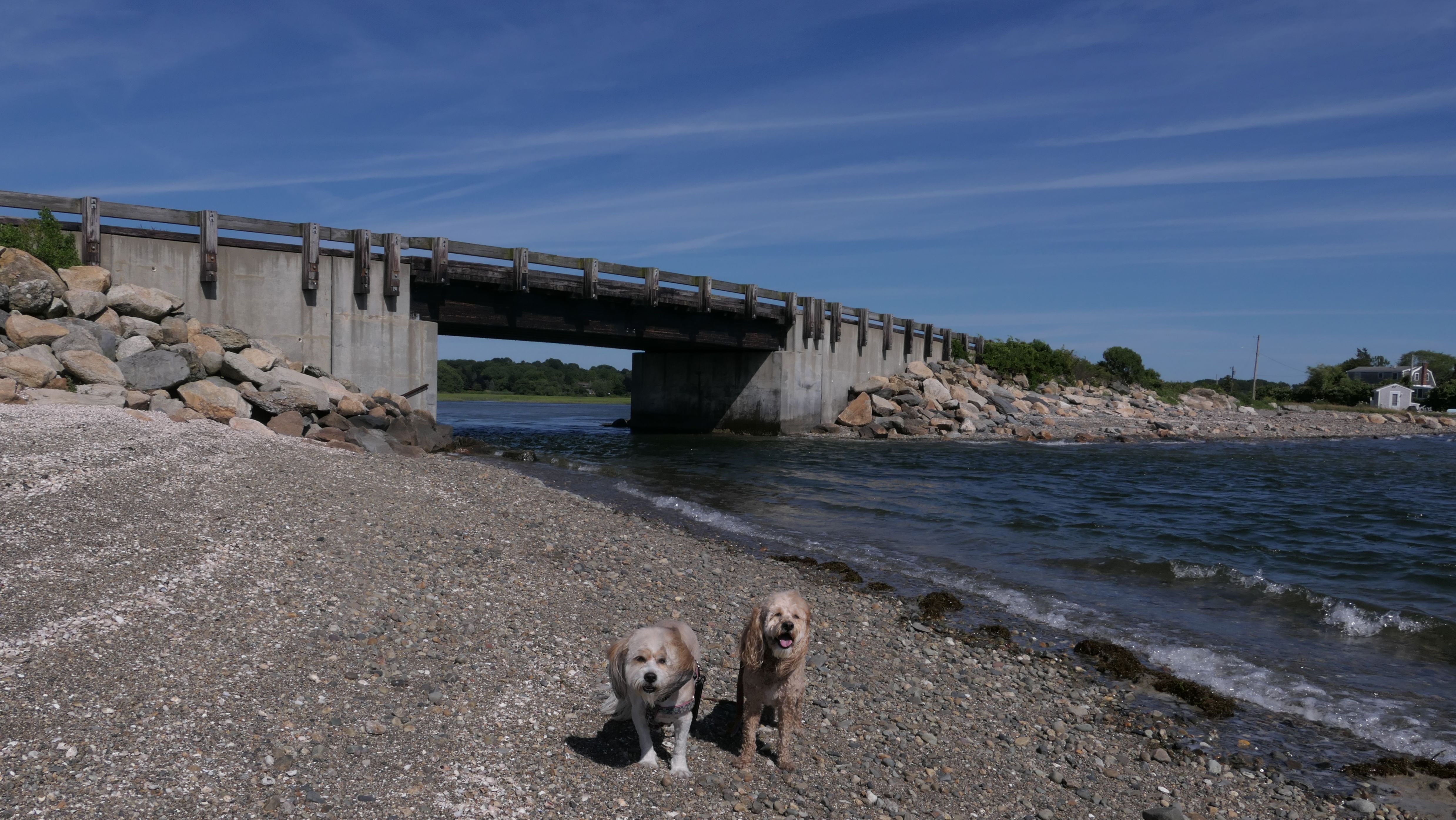 This was our second visit to this place. The spelling is confusing, because the sings say "Sapowet", but it's on "Seapowet Avenue". At any rate, we walked along the beach like we did last year on our previous visit. We also walked to the beach area on the south side of the bridge that we didn't check out last time. Waves are mild here, and the water is pretty shallow - just the way Mandy and Lexi like it!