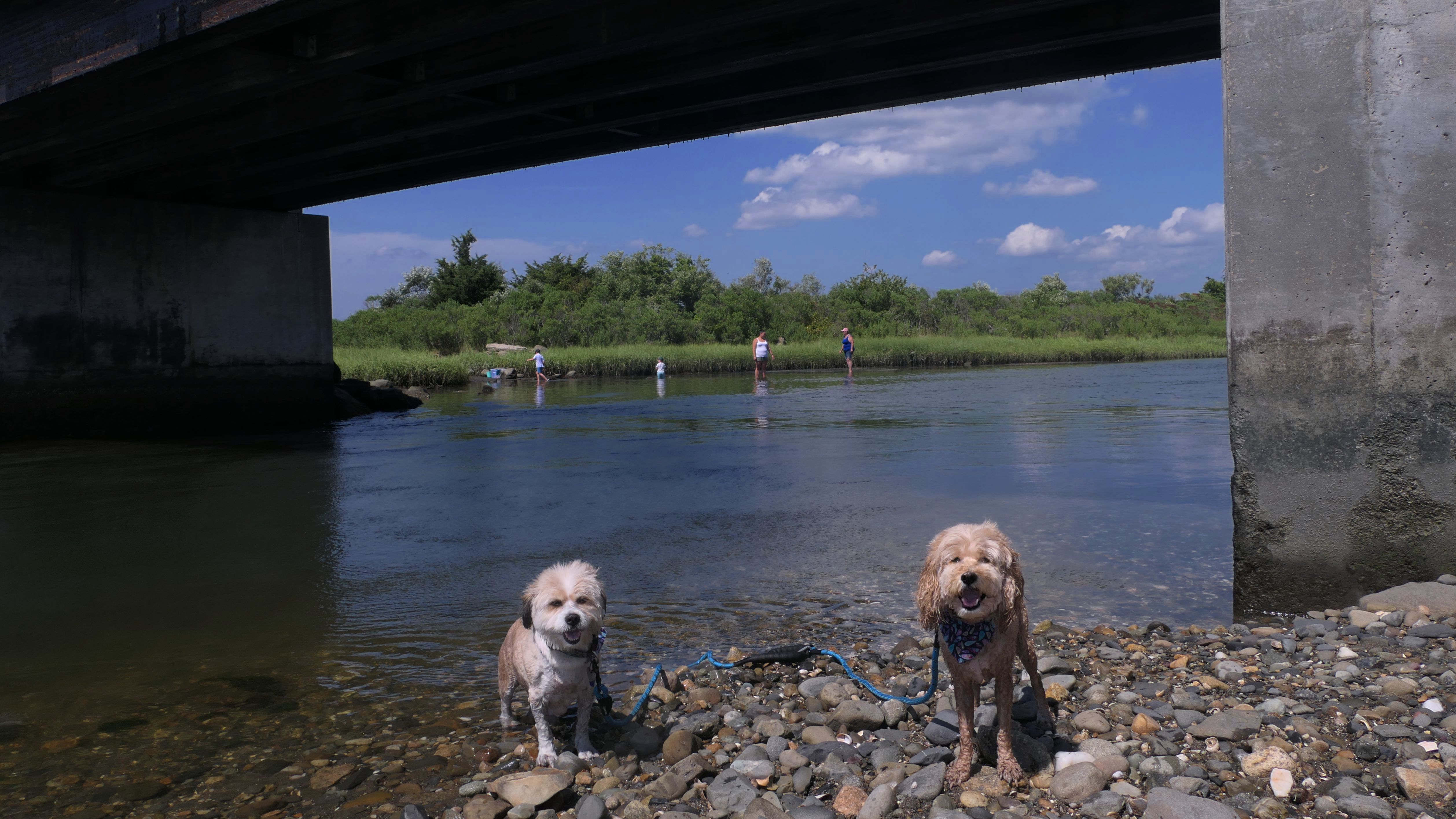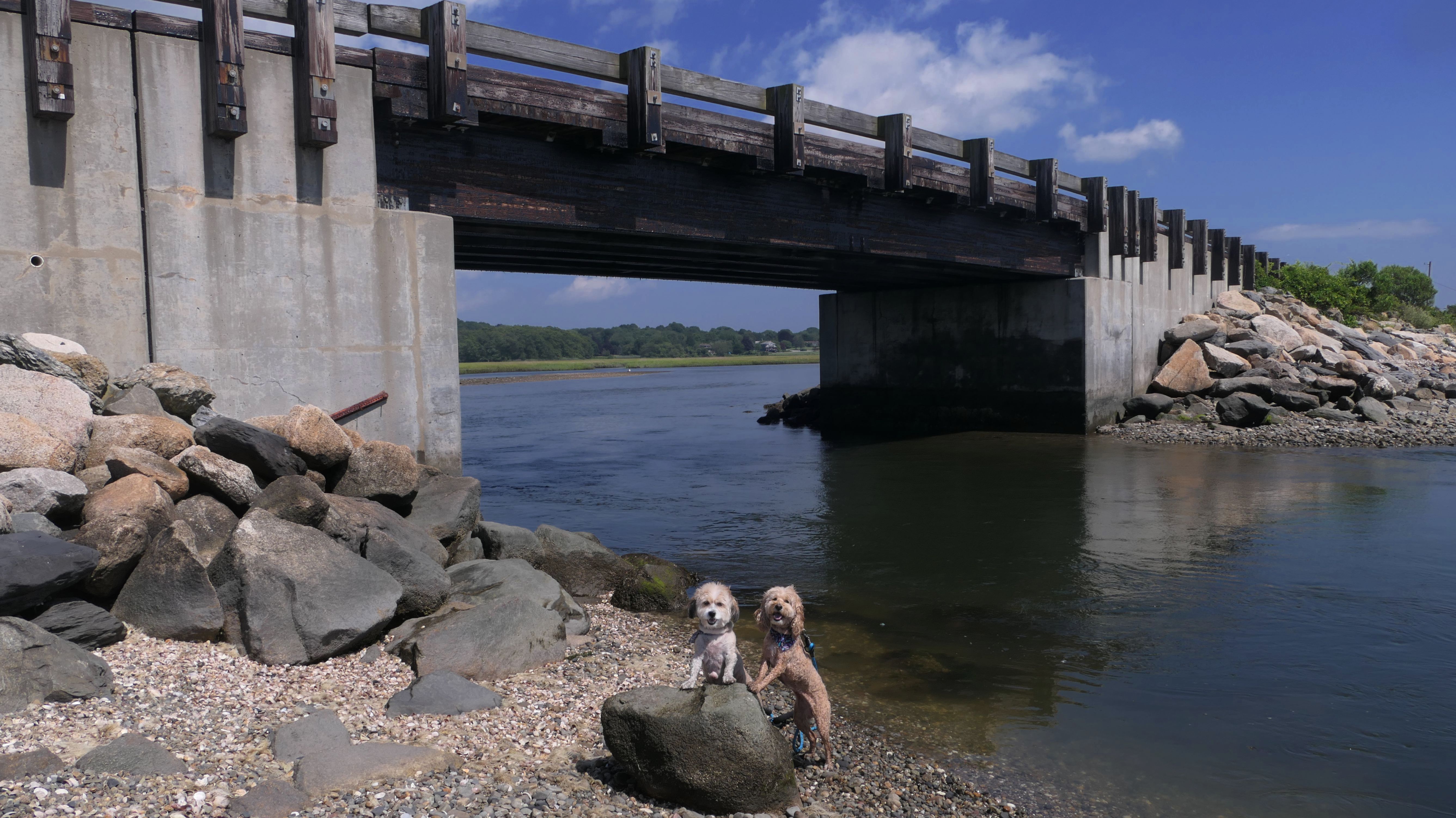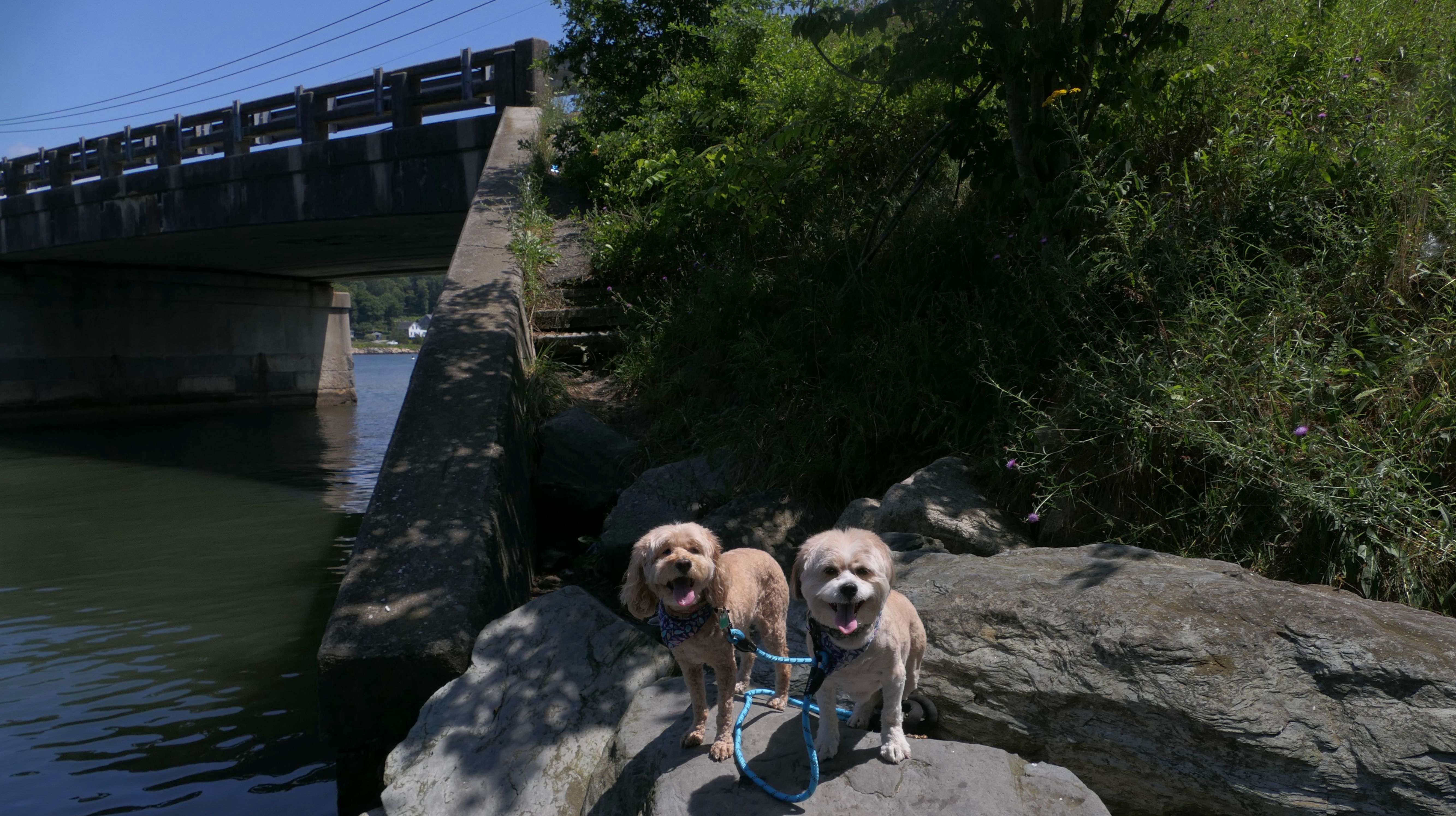 This is primarily a fishing spot. Most people fish off the bridge, but there are access areas on either side of the bridge. One one side, you have to hop over a guard rail to get to the short trail that leads to the water. There are no real trails here, so we also walked around a short block near the bridge, consisting of Bridgeport Rd, Highland Rd, and Main Avenue. Of course, the dogs also went in the water while we were here.