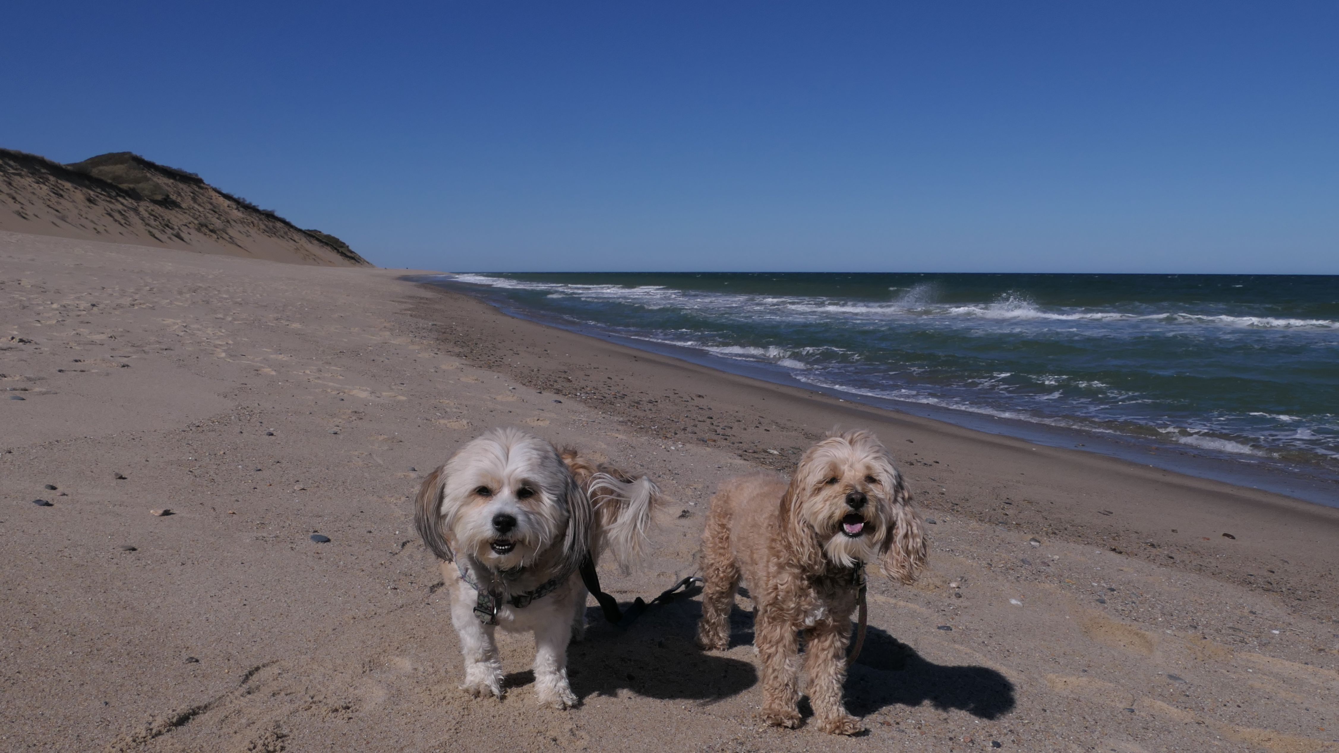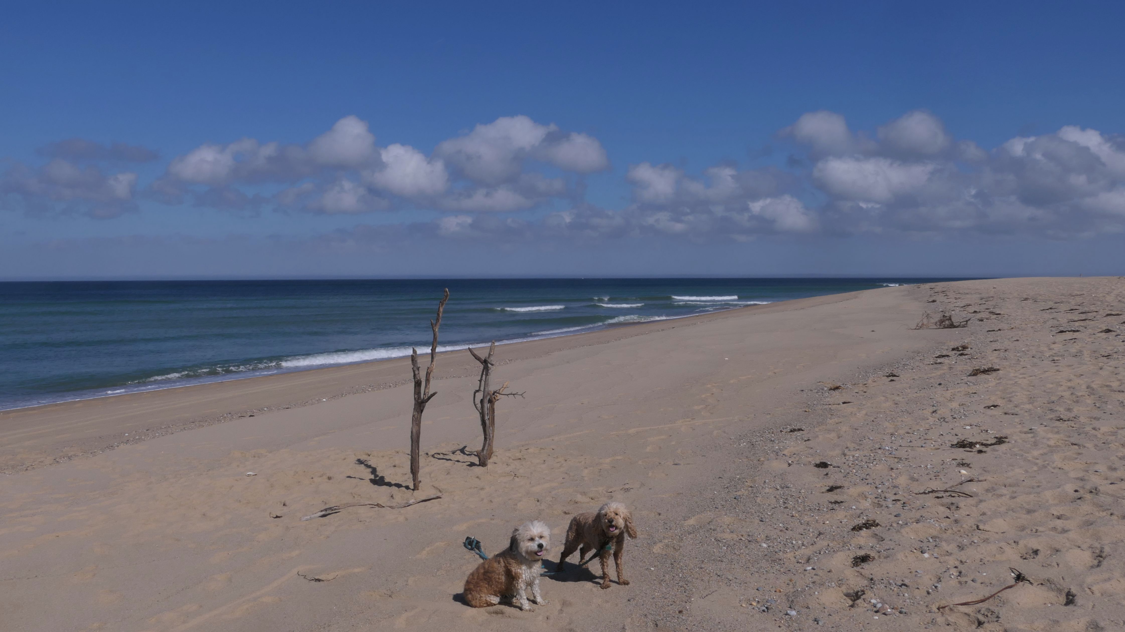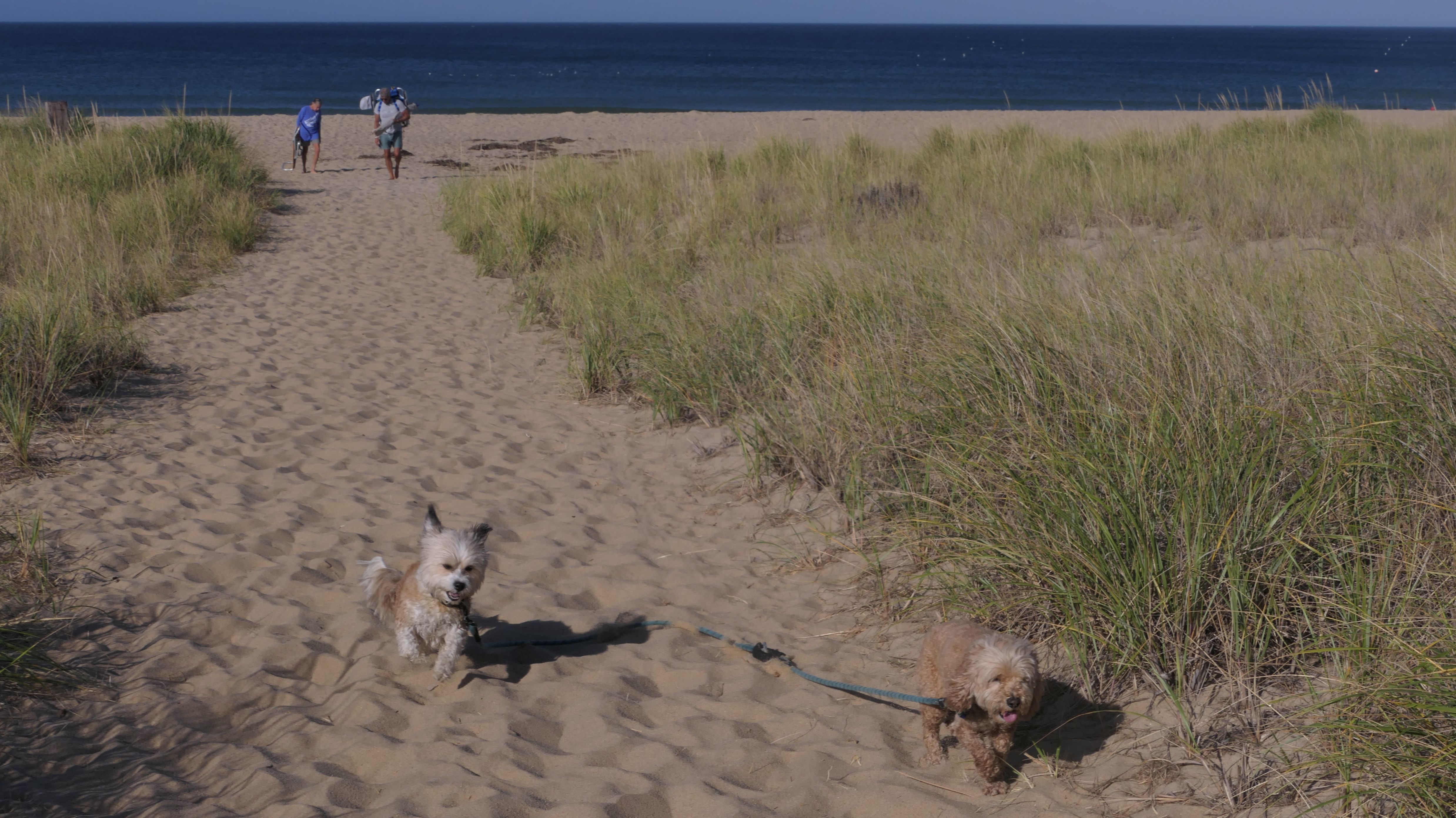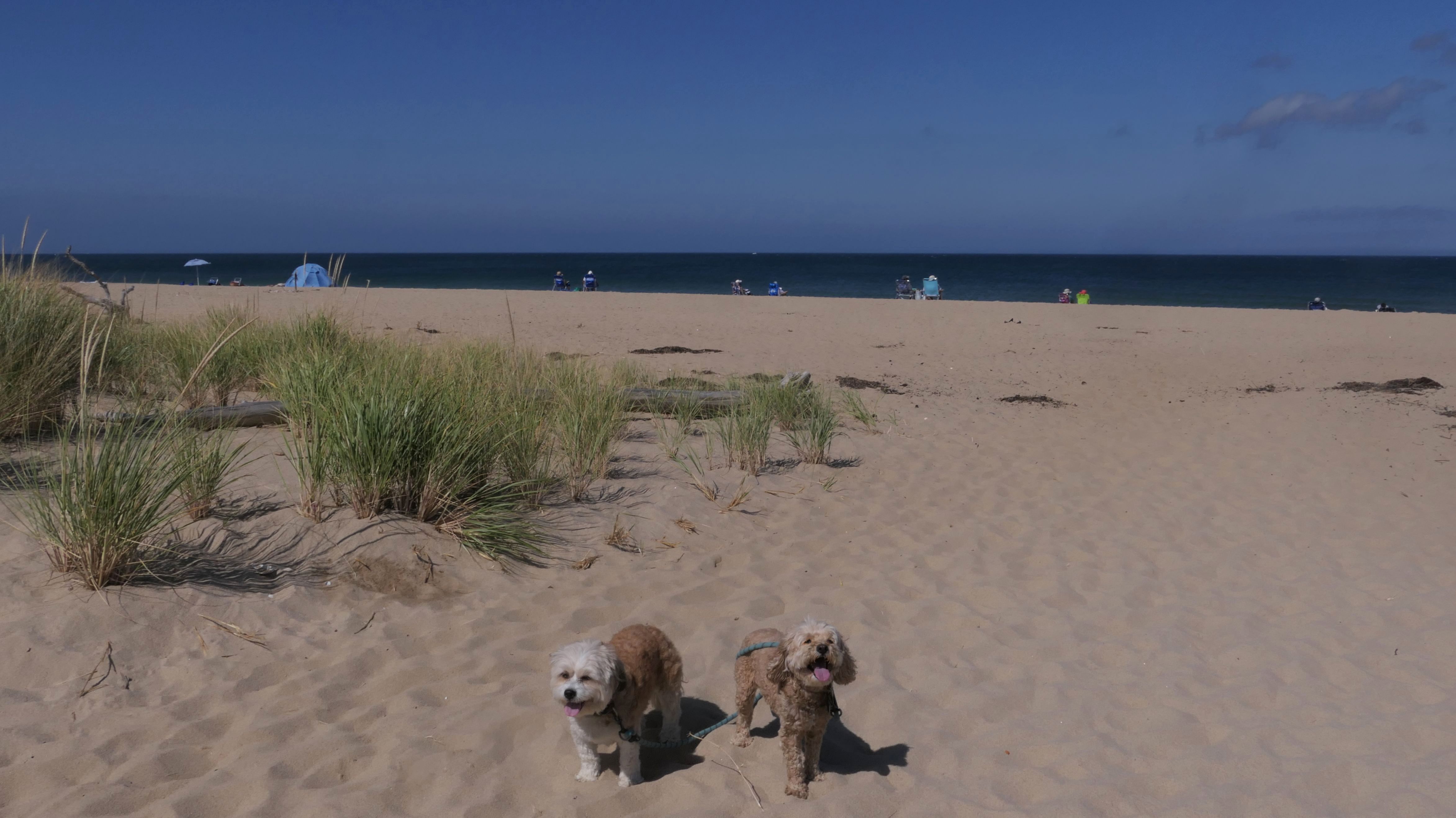 This was a much better day at the beach than our last trip to Truro. According to the website, leashed dogs are allowed until the 3rd Saturday in June, but sings at the beach indicated the 2nd Saturday. Either way, we were fine! We walked north two miles on the beach, before heading back. Most of the shoreline is actually part of the Cape Cod National Shoreline. Dogs are generally allowed, but sections will be closed off to pets where there are nesting birds. We initially were going to go to Head Of The Meadow beach, but most of that beach was closed to pets, so we came here. This is a beautiful beach, and we saw seals swimming in the water off-shore. Just be aware, the path to the beach is down a steep, sandy hill along the dunes. We actually wound up going up and down twice because I realized I left a poop bag on the beach and I wanted to go back and get it! On our way up the 2nd time, we were visited by a golden retriever who found a large stick, and was very happy about it!