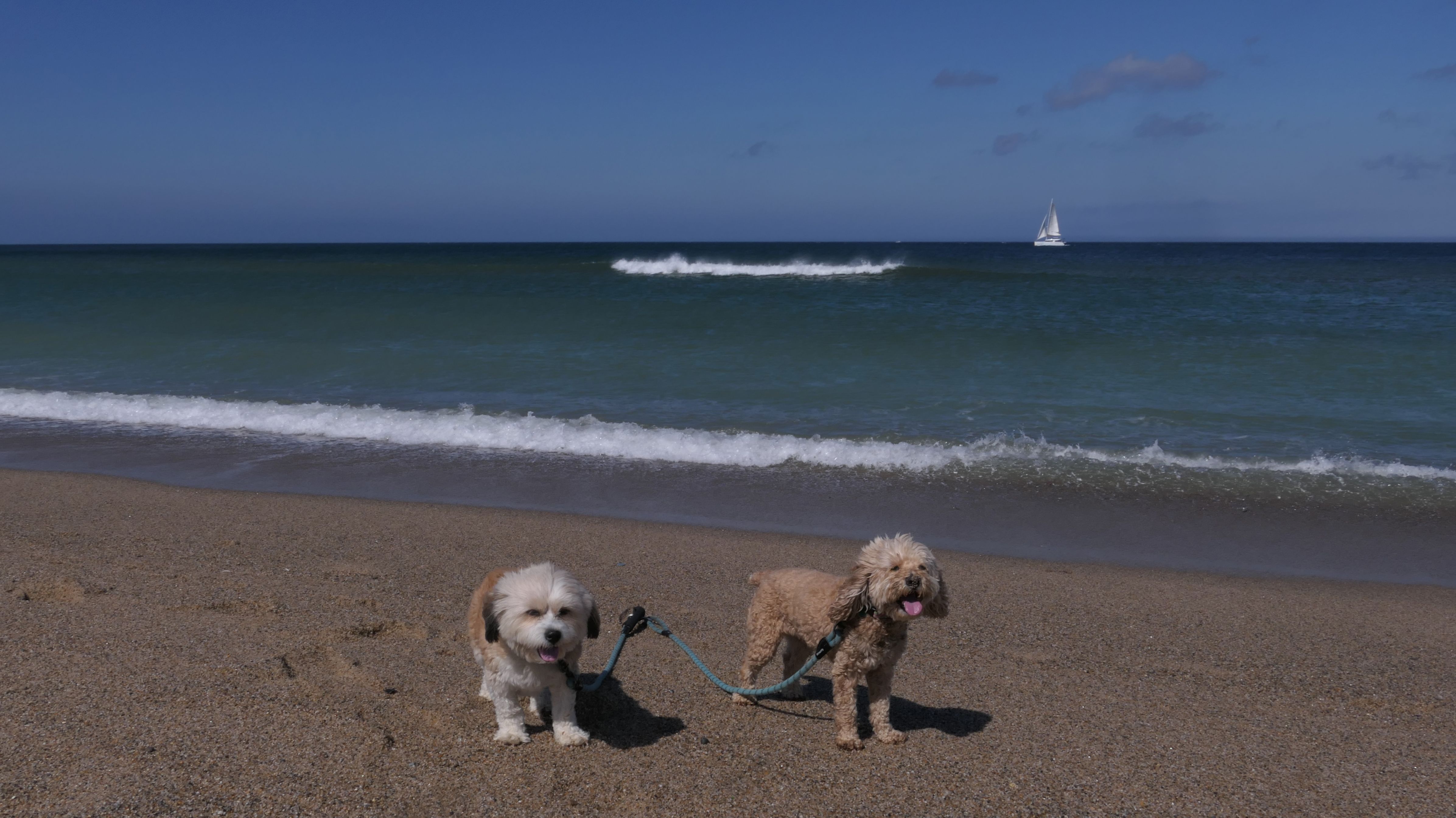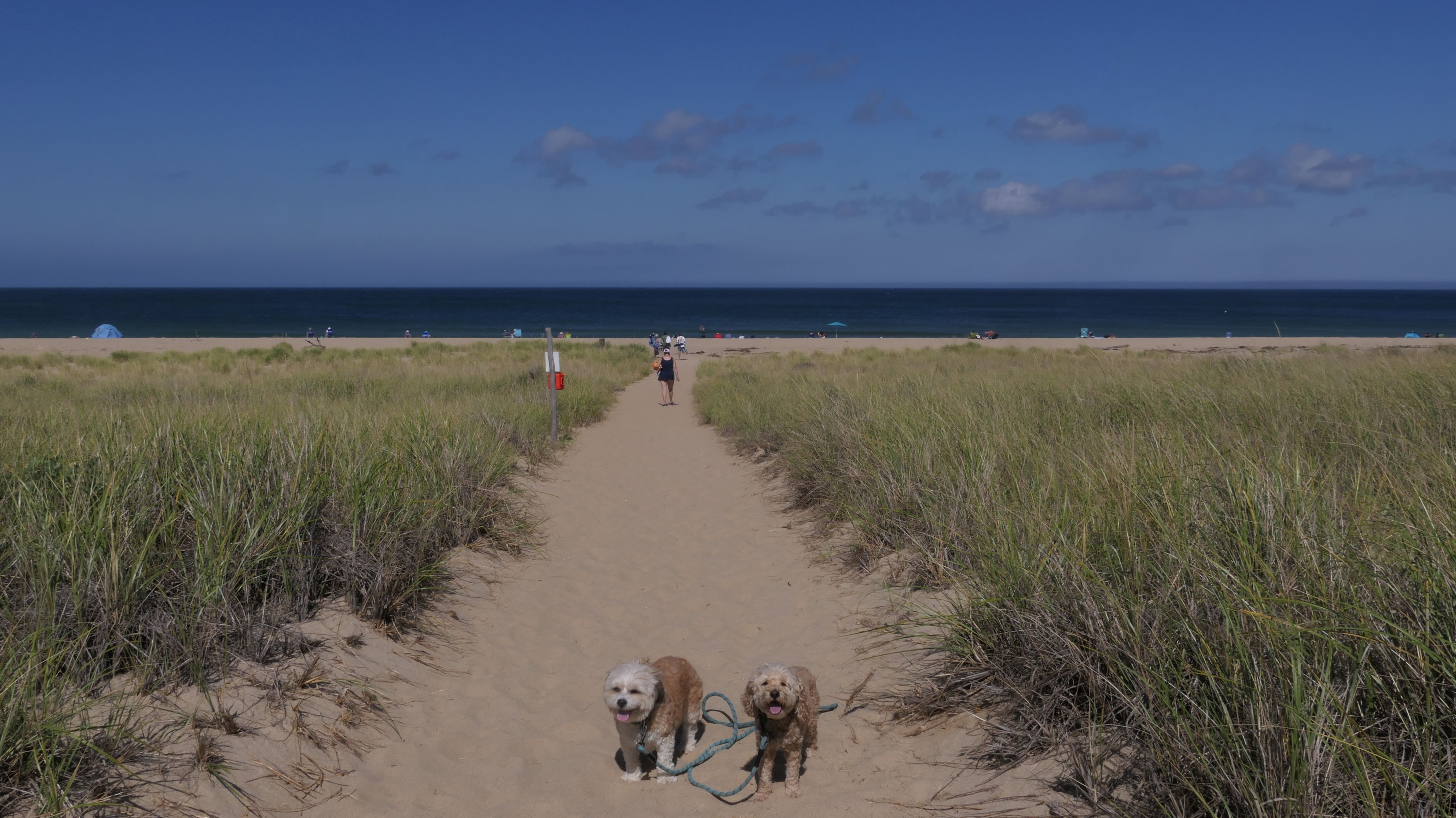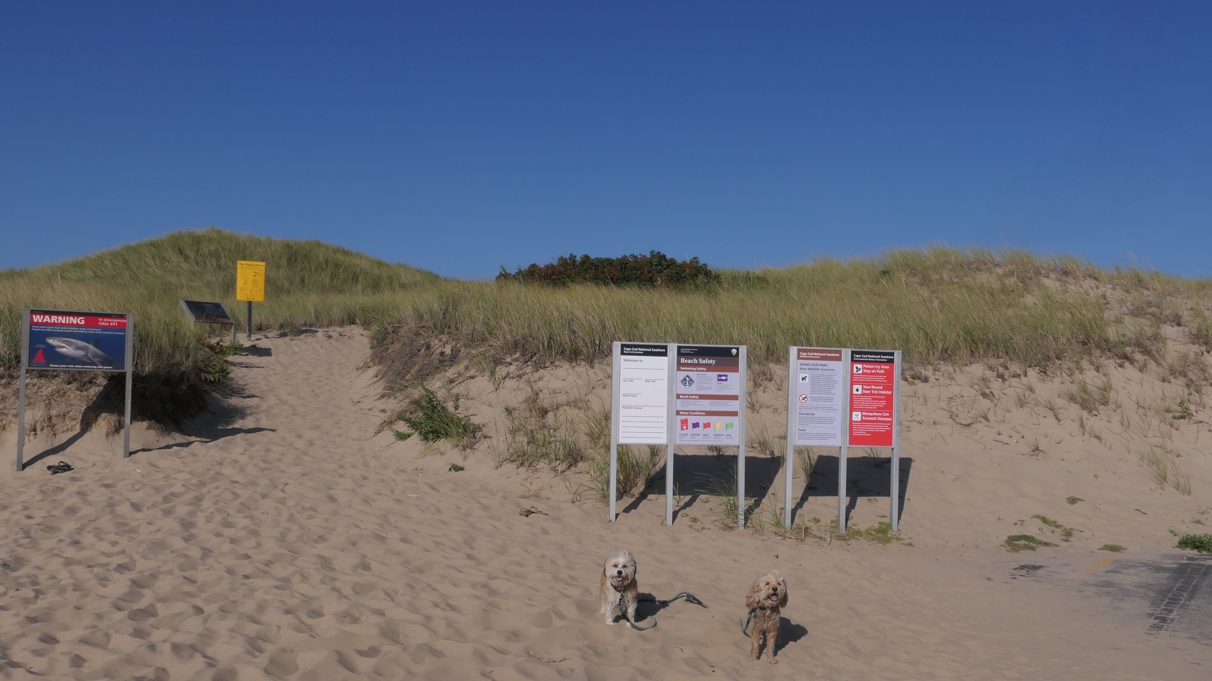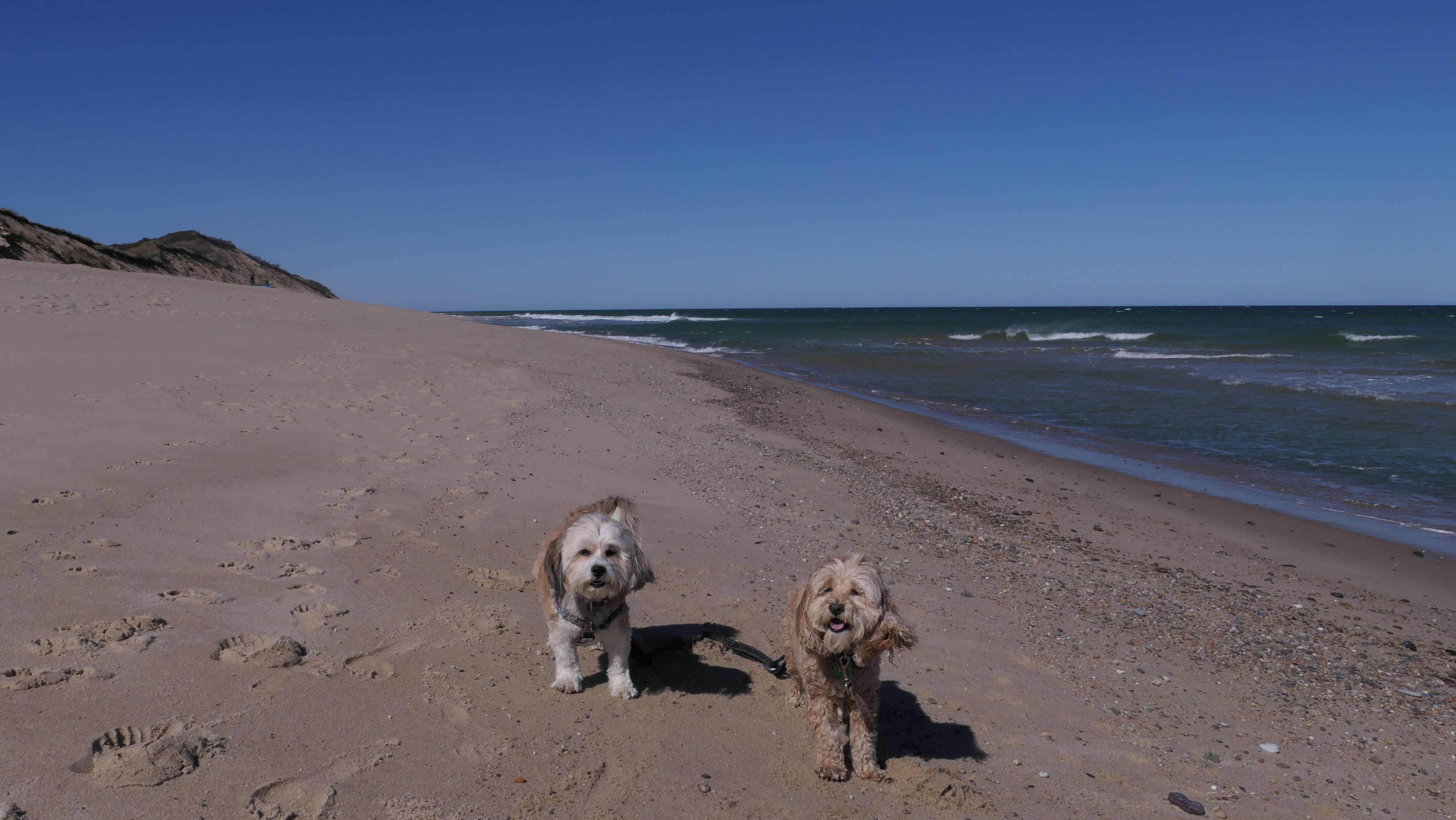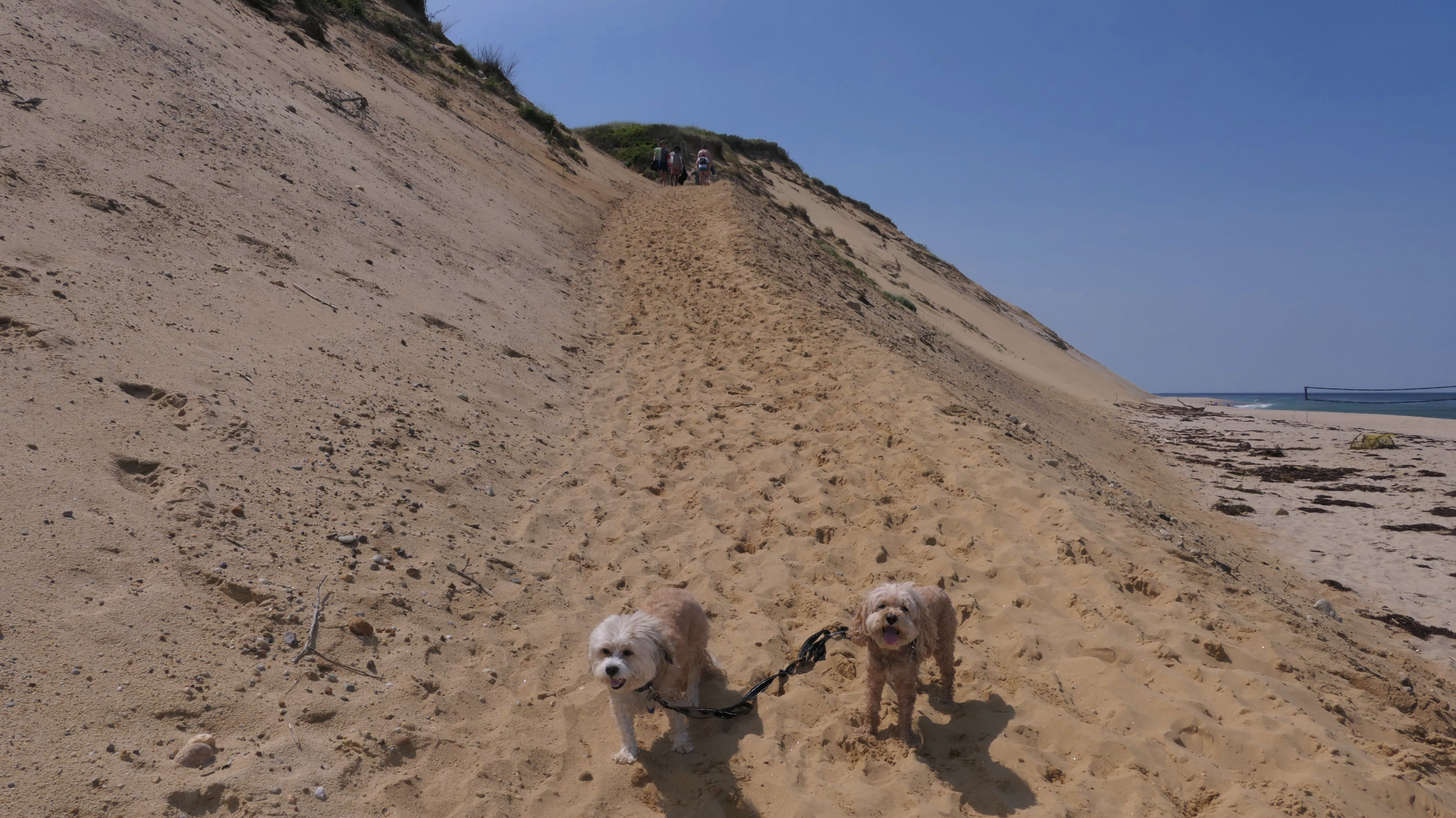 This was a much better day at the beach than our last trip to Truro. According to the website, leashed dogs are allowed until the 3rd Saturday in June, but sings at the beach indicated the 2nd Saturday. Either way, we were fine! We walked north two miles on the beach, before heading back. Most of the shoreline is actually part of the Cape Cod National Shoreline. Dogs are generally allowed, but sections will be closed off to pets where there are nesting birds. We initially were going to go to Head Of The Meadow beach, but most of that beach was closed to pets, so we came here. This is a beautiful beach, and we saw seals swimming in the water off-shore. Just be aware, the path to the beach is down a steep, sandy hill along the dunes. We actually wound up going up and down twice because I realized I left a poop bag on the beach and I wanted to go back and get it! On our way up the 2nd time, we were visited by a golden retriever who found a large stick, and was very happy about it!