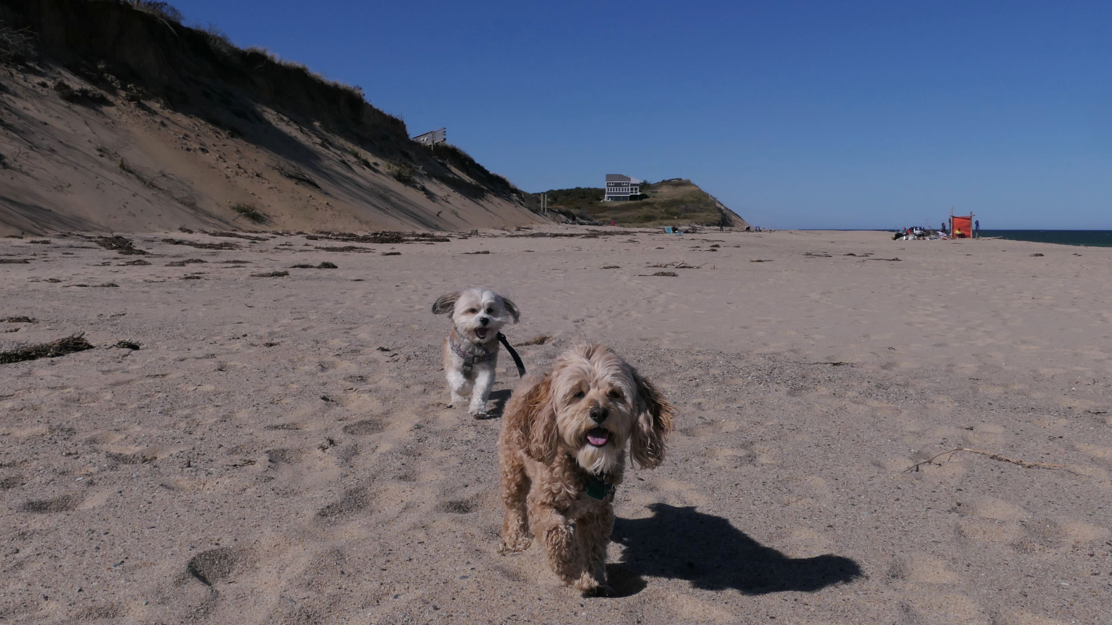 This is a really scenic ocean facing town beach in Truro. Dogs are allowed from the day after Labor Day until the third Friday in June at any time, and before 9AM and after 6PM the rest of the year. It wasn't the best beach day. The temperature was okay, mid 60's. Good for walking on the beach, but it was very windy. The beach also had a steep slope, so walking near the water was tough on the ankles. We actually only wound up walking a little over a mile here, but the scenery was gorgeous.