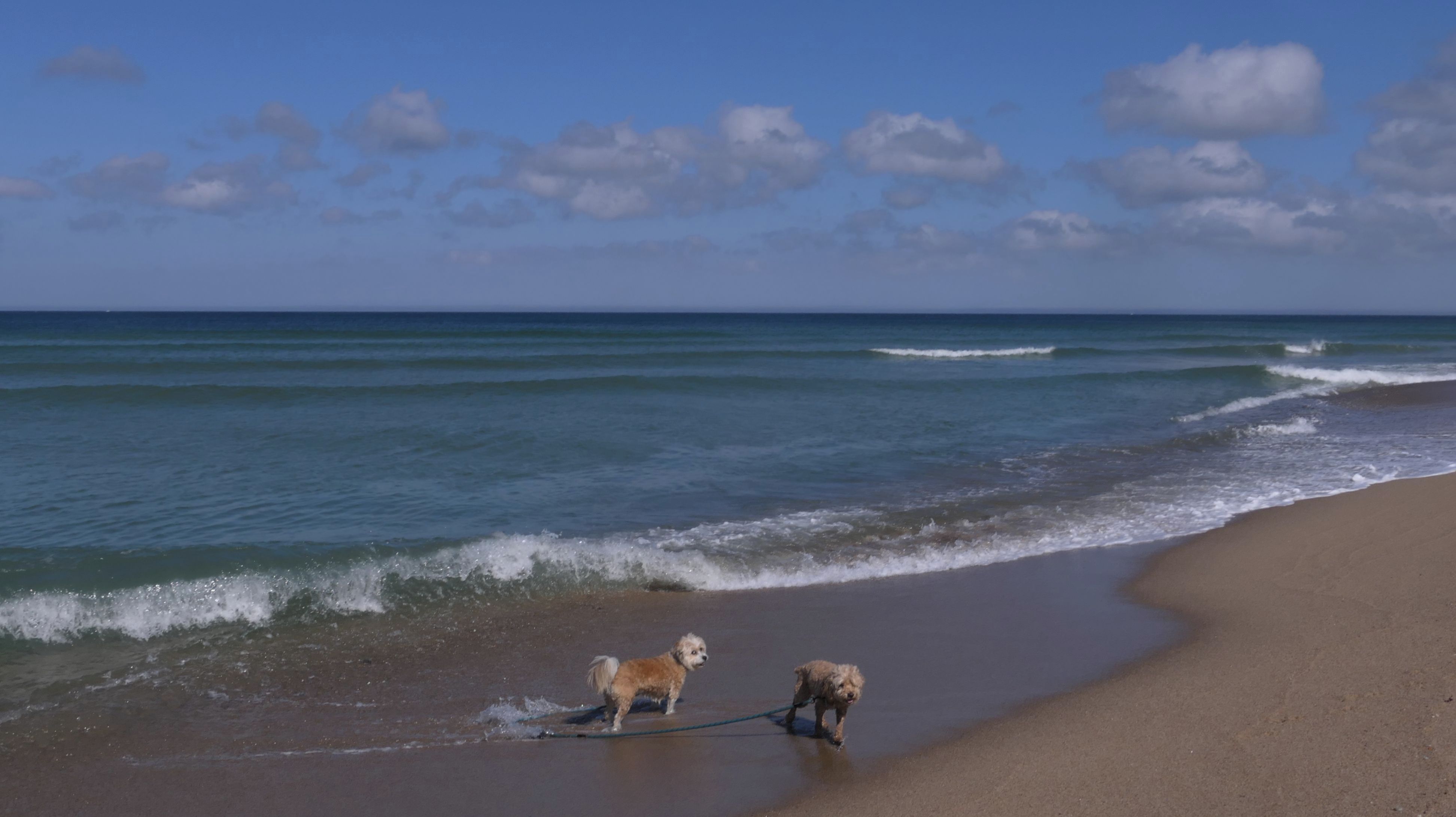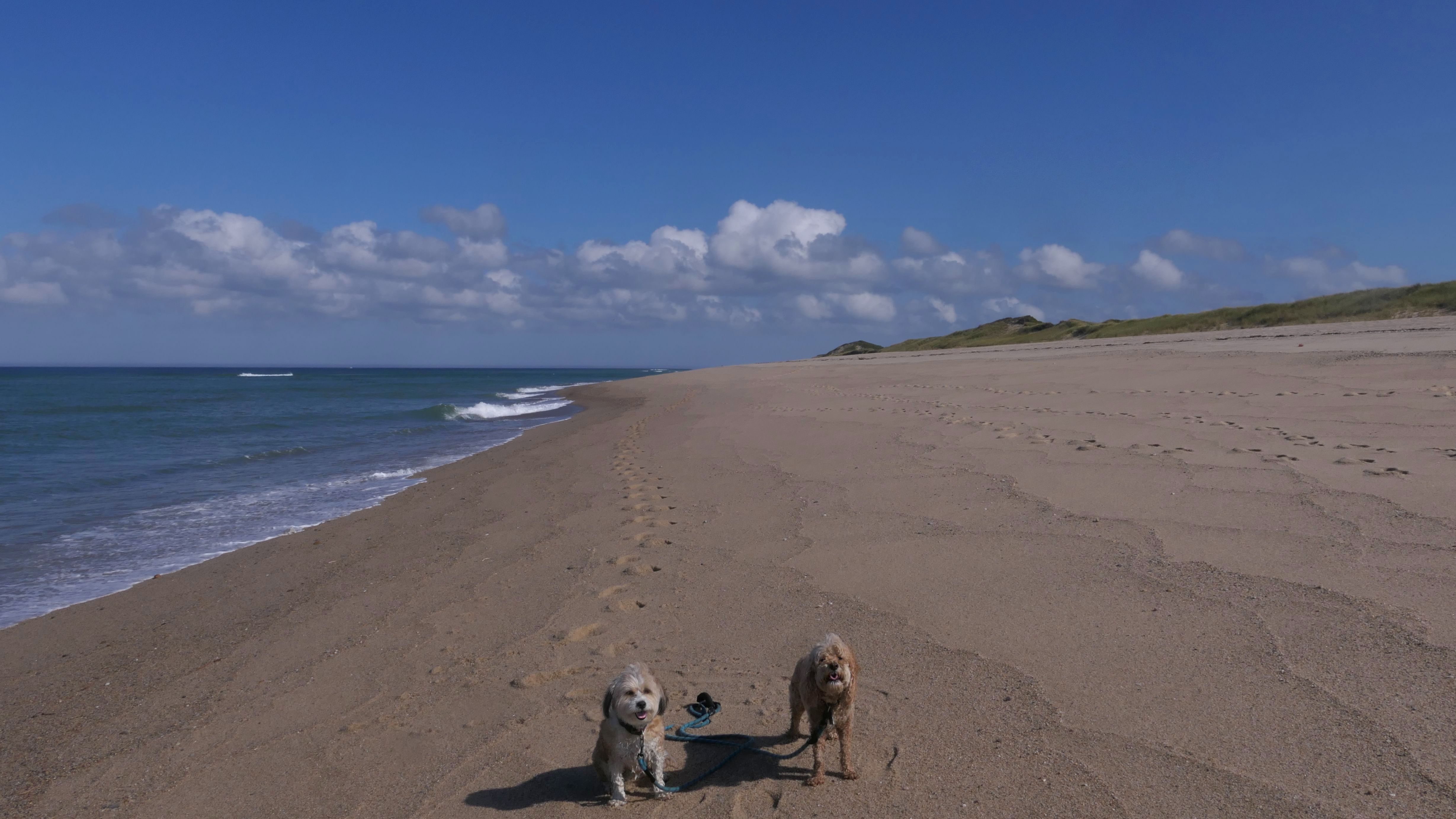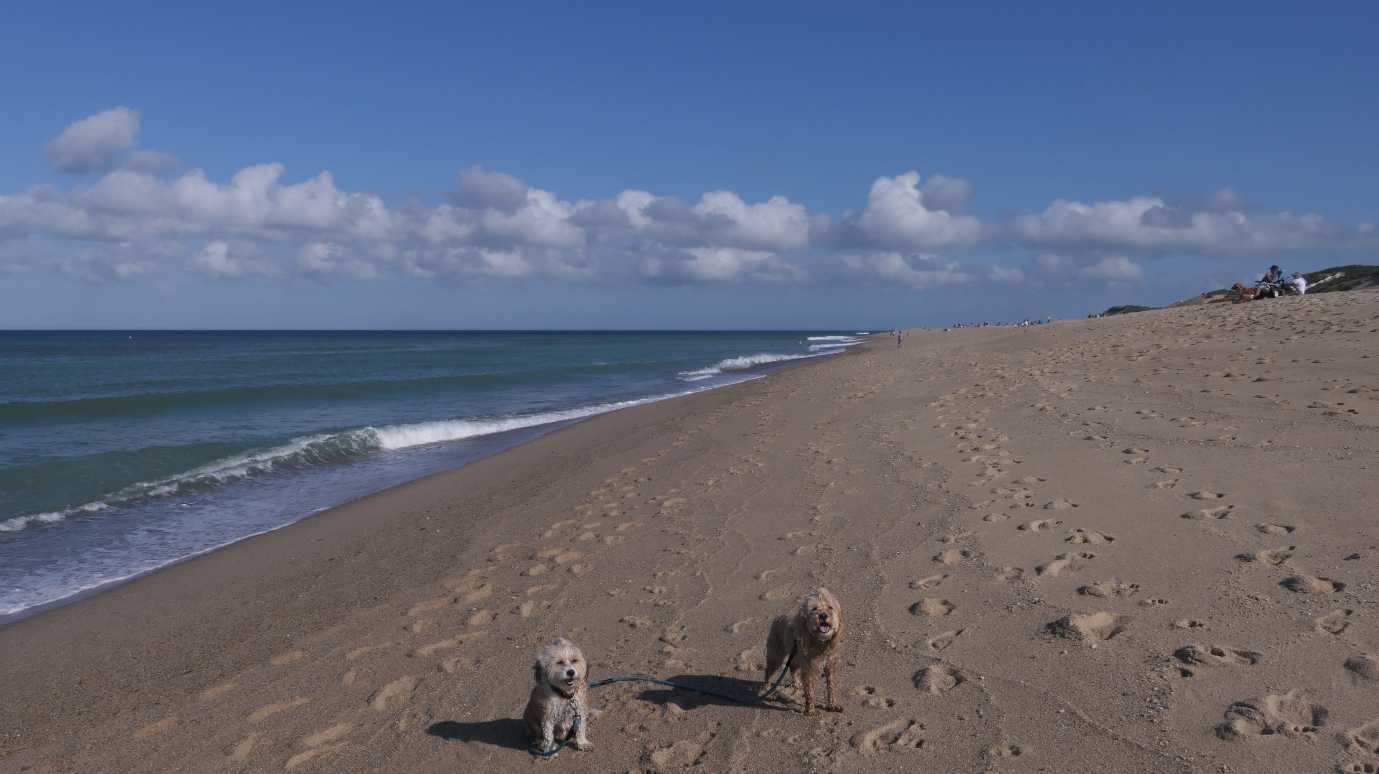 We wrapped up our post Labor Day "Beach Week", by heading to this beautiful beach on the Cape! The weather was calling for sunny skies beginning at 11AM, but the forecast kept changing, with it getting cloudier as the day progressed. It was actually overcast when we crossed the Cape Cod Canal on the way here, but it fortunately cleared up nicely as soon as we arrived in Truro. We had a beautiful afternoon. There are actually two separate beaches here, the town maintained area where dogs are allowed only after Labor Day, and the Cape Cod National Shoreline area where dogs are allowed outside of guarded areas year round, unless there are nesting birds. I wanted to visit here in the summer, but it was closed to dogs because of the birds. I double checked before we left, and the dog restriction was lifted. We immediately witnessed a seal popping his head up just off-shore. There are a couple photos of the dogs below where you can see a seal in the water too! We headed north along the shore and once we were away from the beach entrances, we had the whole shore practically to ourselves. We walked about four miles here, enjoying this wonderful day on a gorgeous beach!