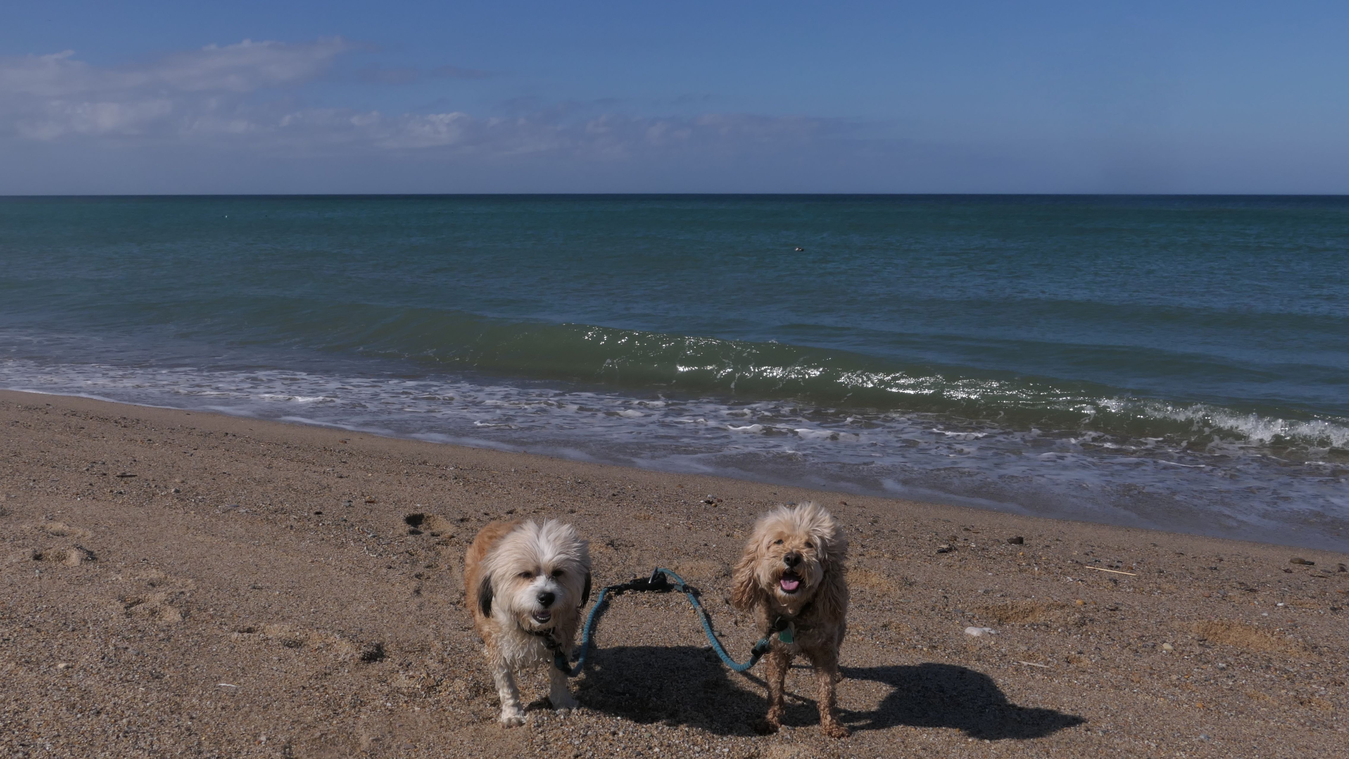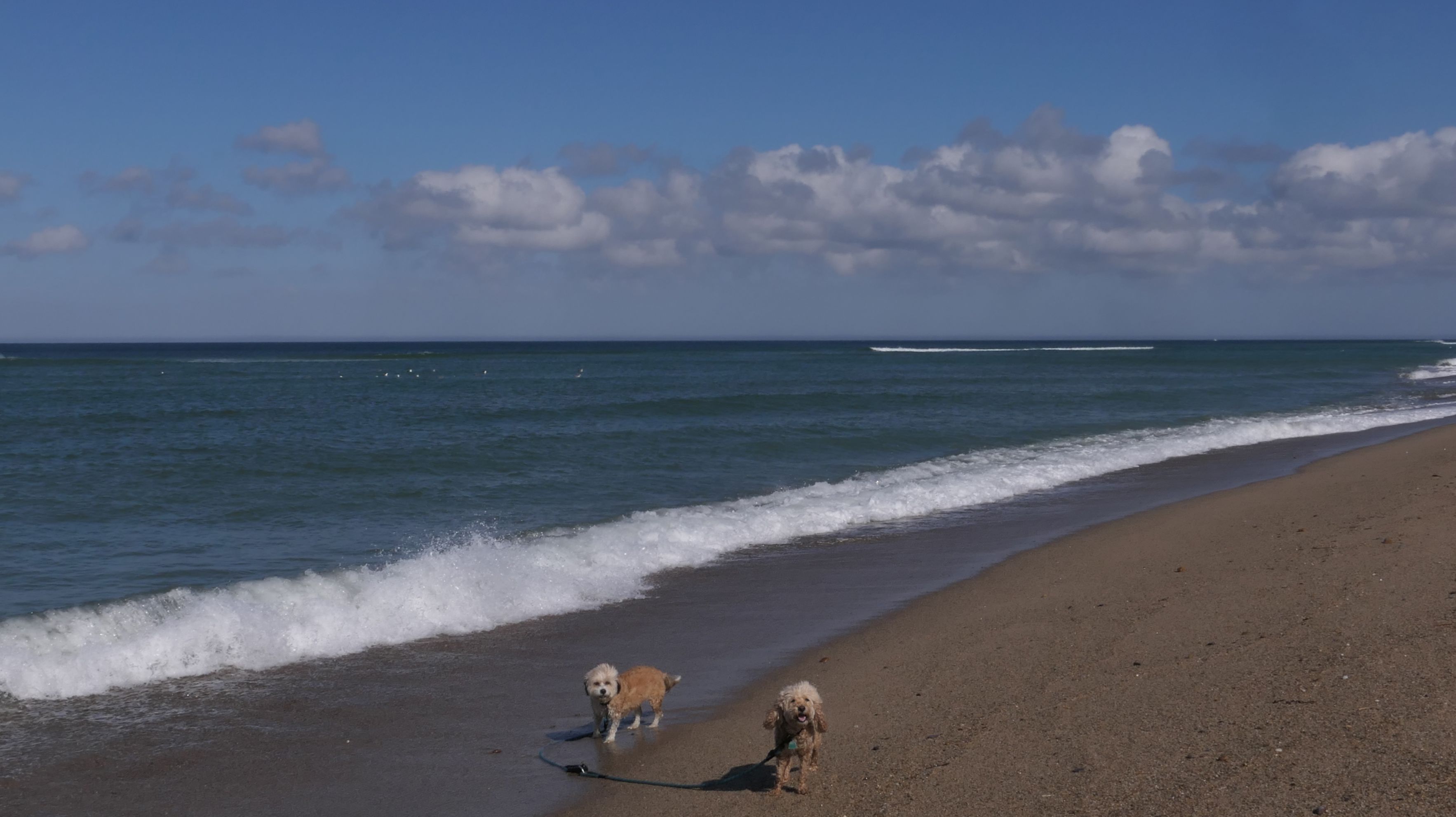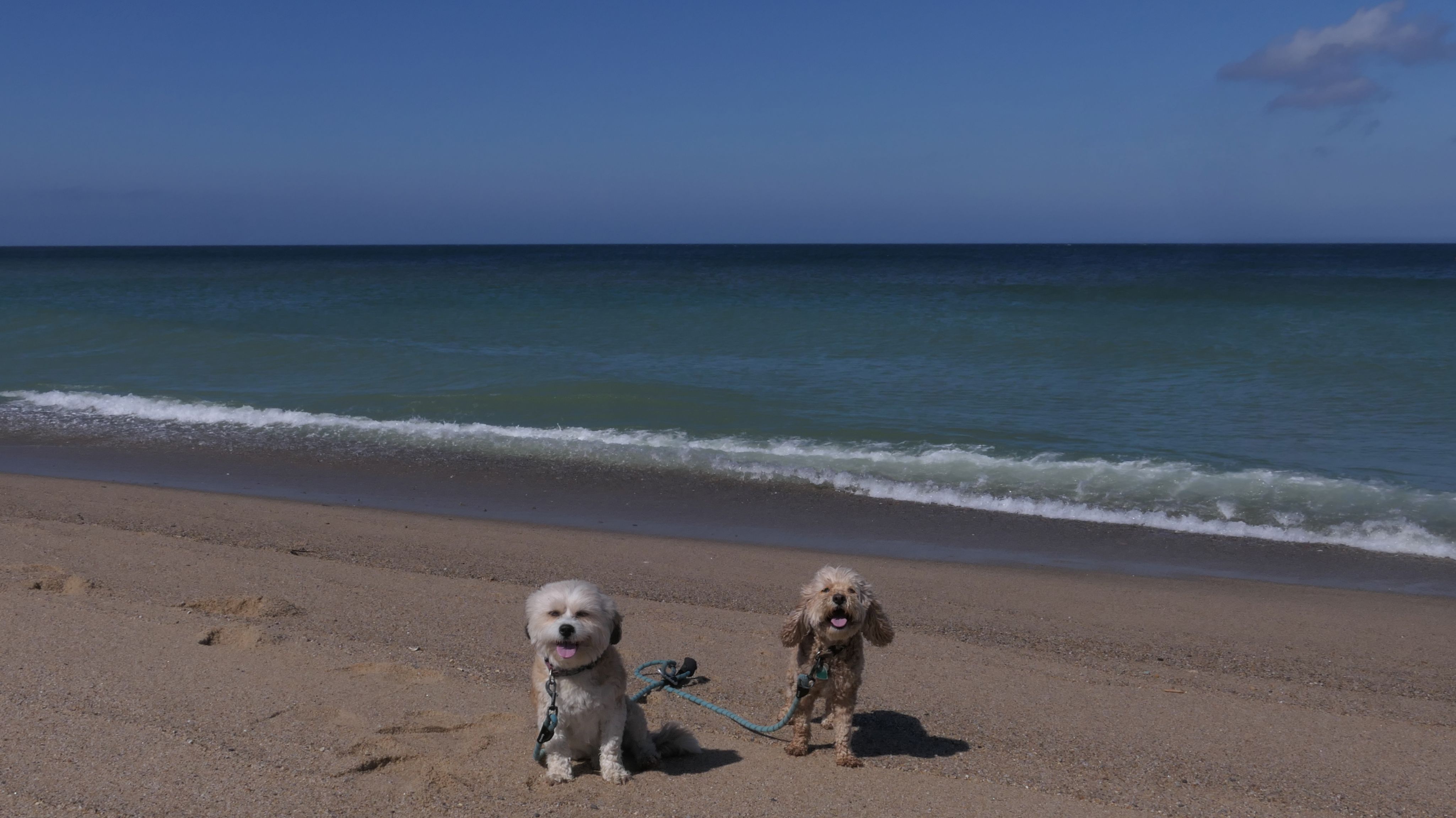 We wrapped up our post Labor Day "Beach Week", by heading to this beautiful beach on the Cape! The weather was calling for sunny skies beginning at 11AM, but the forecast kept changing, with it getting cloudier as the day progressed. It was actually overcast when we crossed the Cape Cod Canal on the way here, but it fortunately cleared up nicely as soon as we arrived in Truro. We had a beautiful afternoon. There are actually two separate beaches here, the town maintained area where dogs are allowed only after Labor Day, and the Cape Cod National Shoreline area where dogs are allowed outside of guarded areas year round, unless there are nesting birds. I wanted to visit here in the summer, but it was closed to dogs because of the birds. I double checked before we left, and the dog restriction was lifted. We immediately witnessed a seal popping his head up just off-shore. There are a couple photos of the dogs below where you can see a seal in the water too! We headed north along the shore and once we were away from the beach entrances, we had the whole shore practically to ourselves. We walked about four miles here, enjoying this wonderful day on a gorgeous beach!