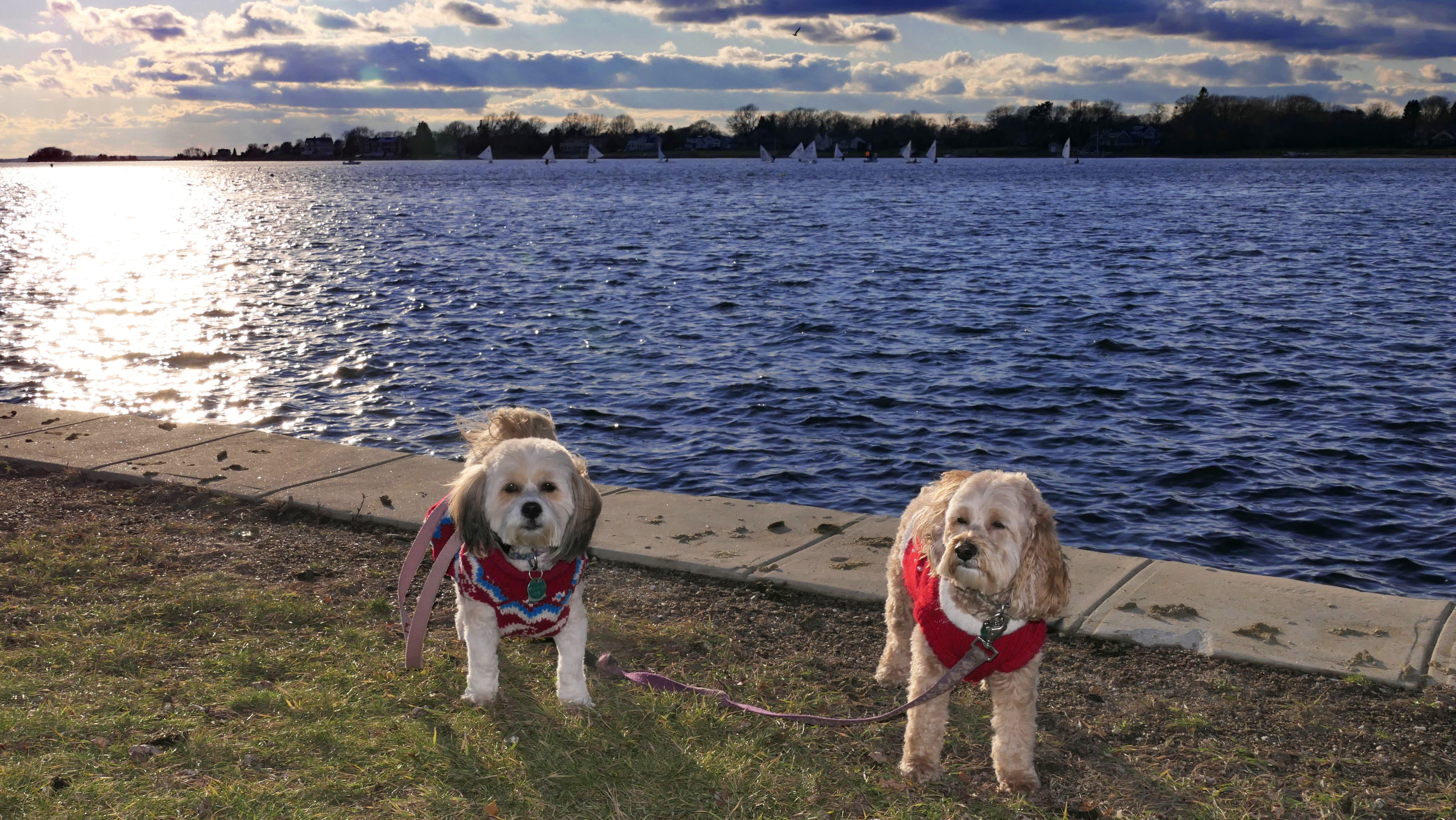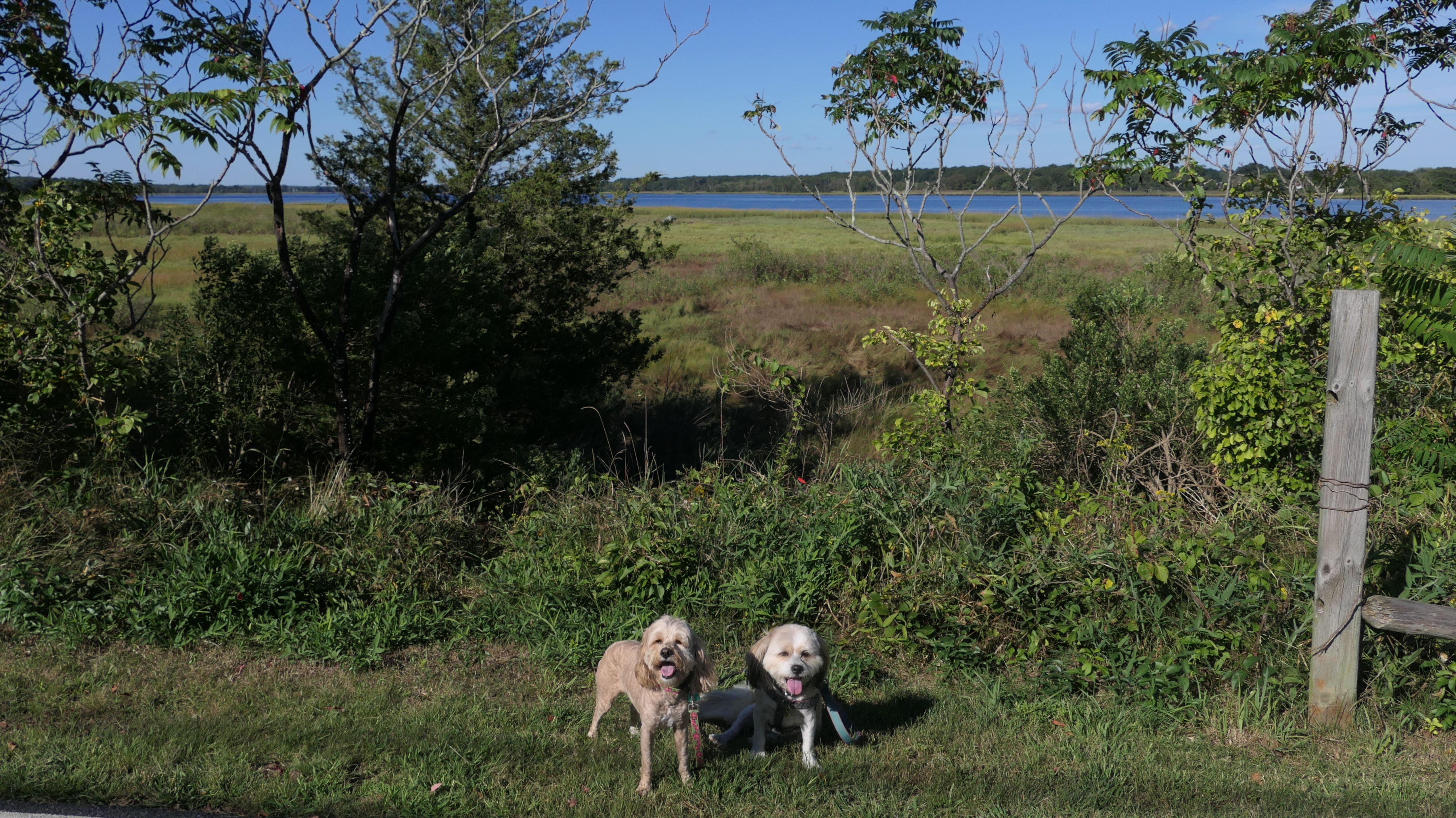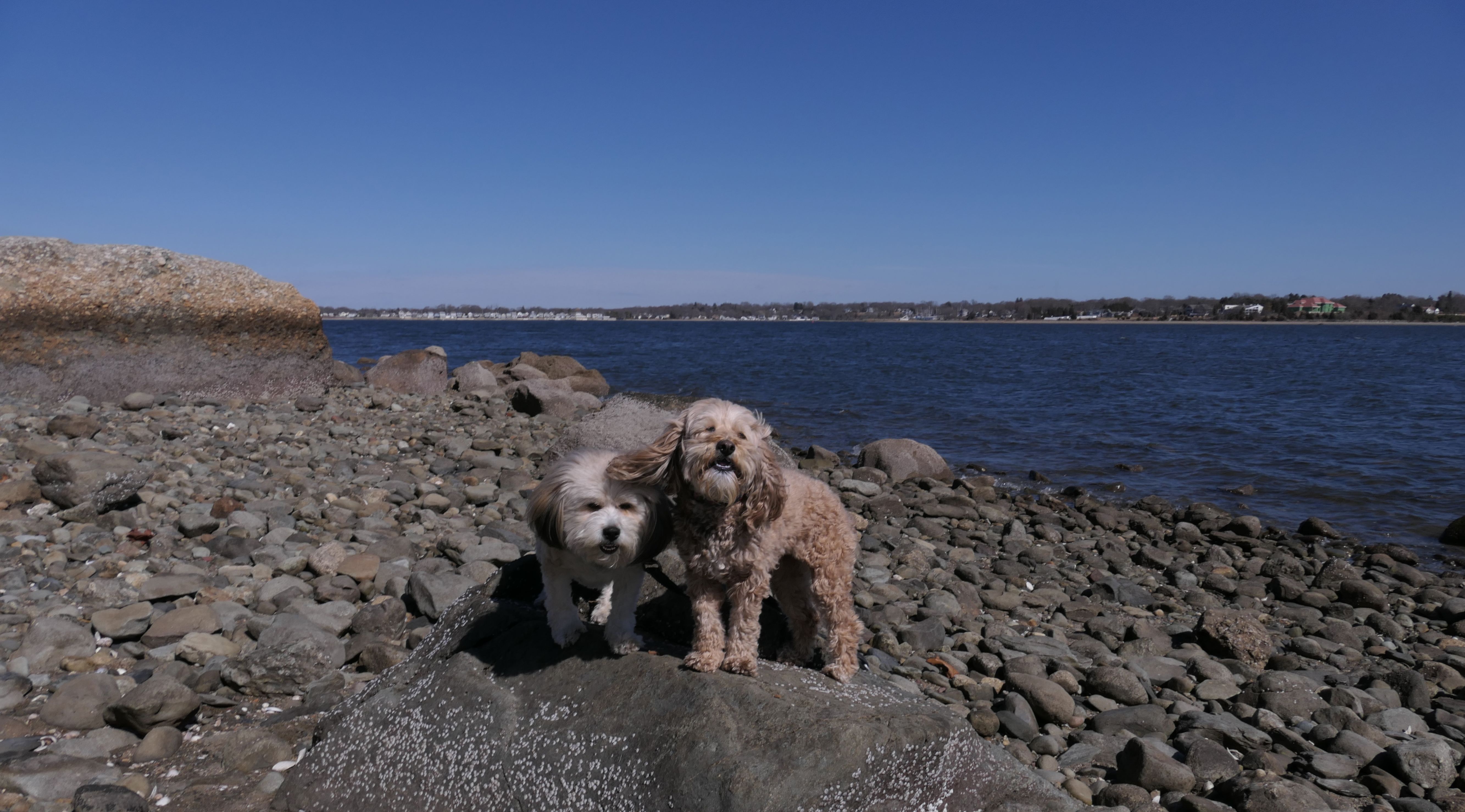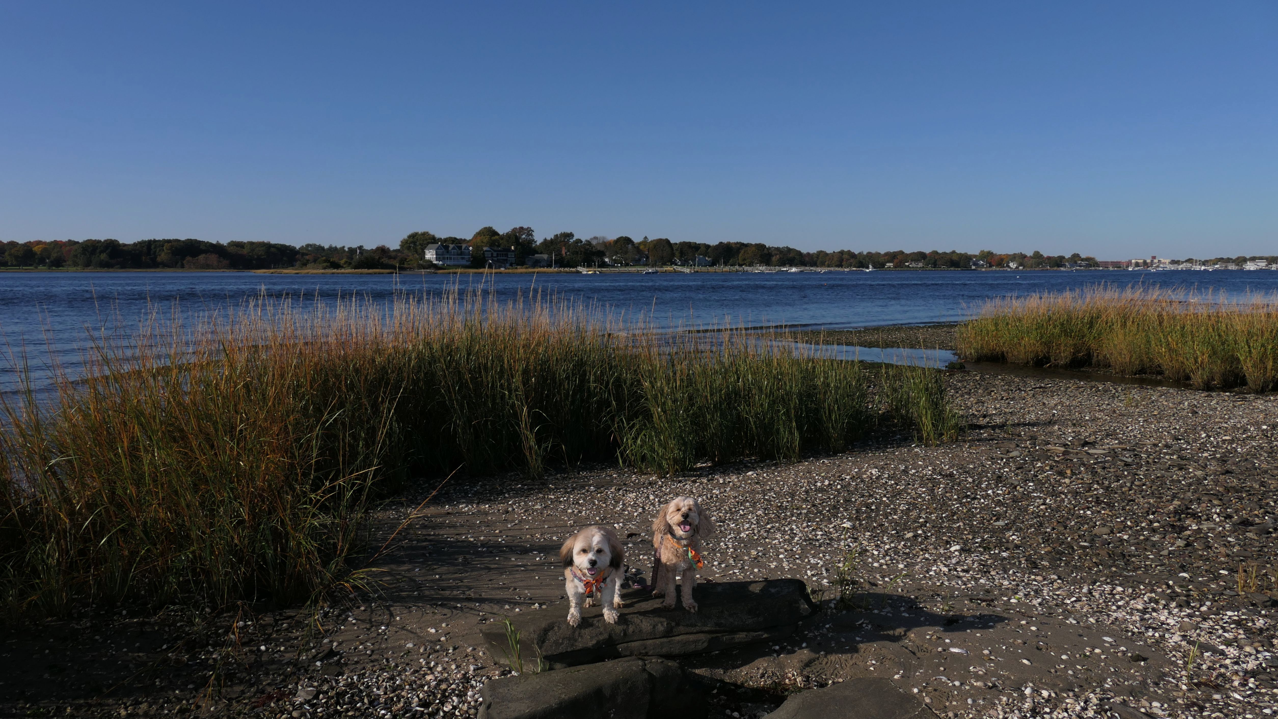 This is a town park with a short paved walking path, athletic fields, and some open space for just sitting on the grass and relaxing. The hill overlooks the town beach, situated at the mouth of the Warren River, as it opens out into Narragansett Bay. We arrived via a connecting trail from the East Bay Bike Path. It was a chilly December day, but there were still sailboats out in the water. Mandy tried to walk out into the water, but I had to stop her because it was too cold for that!