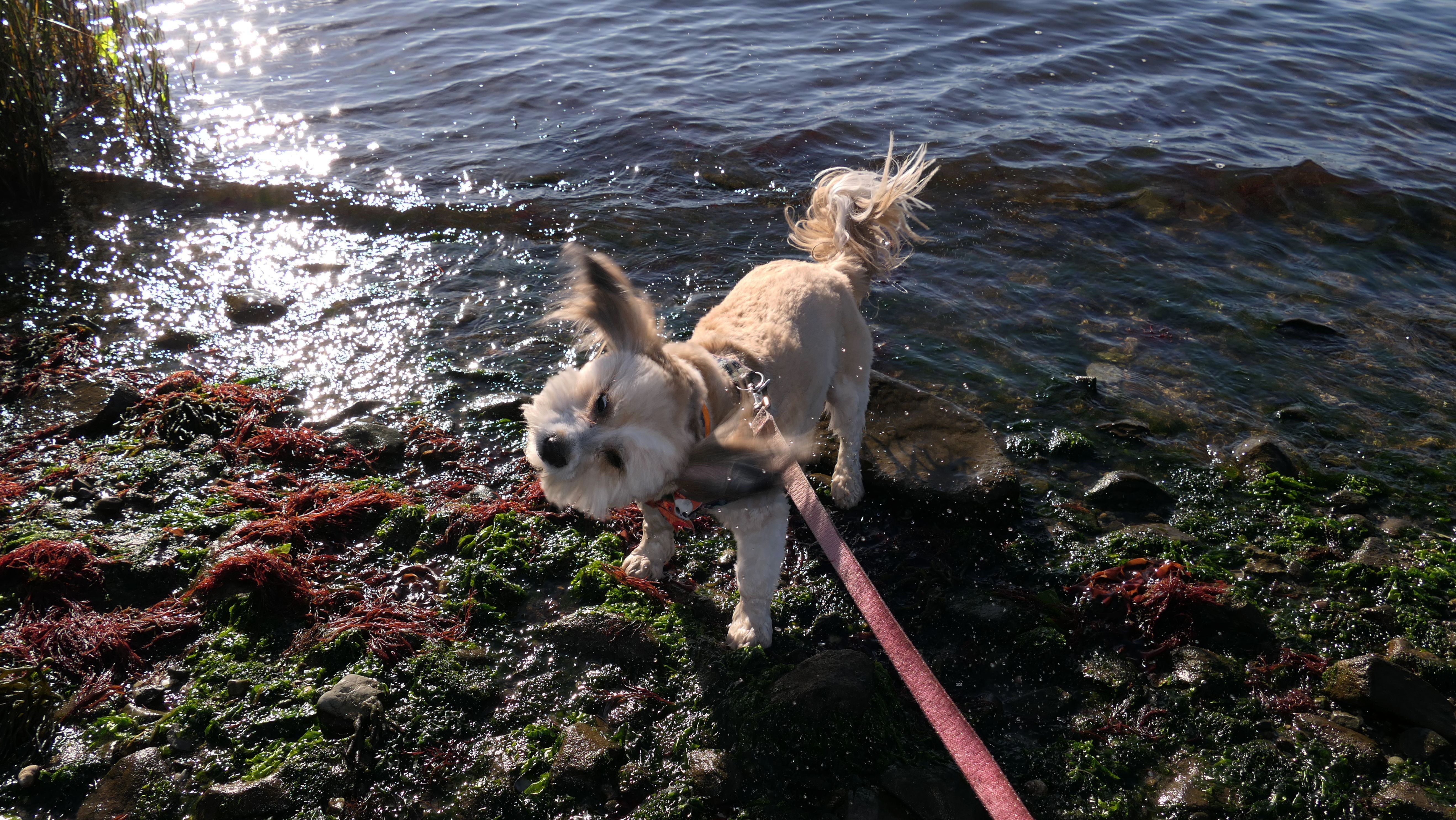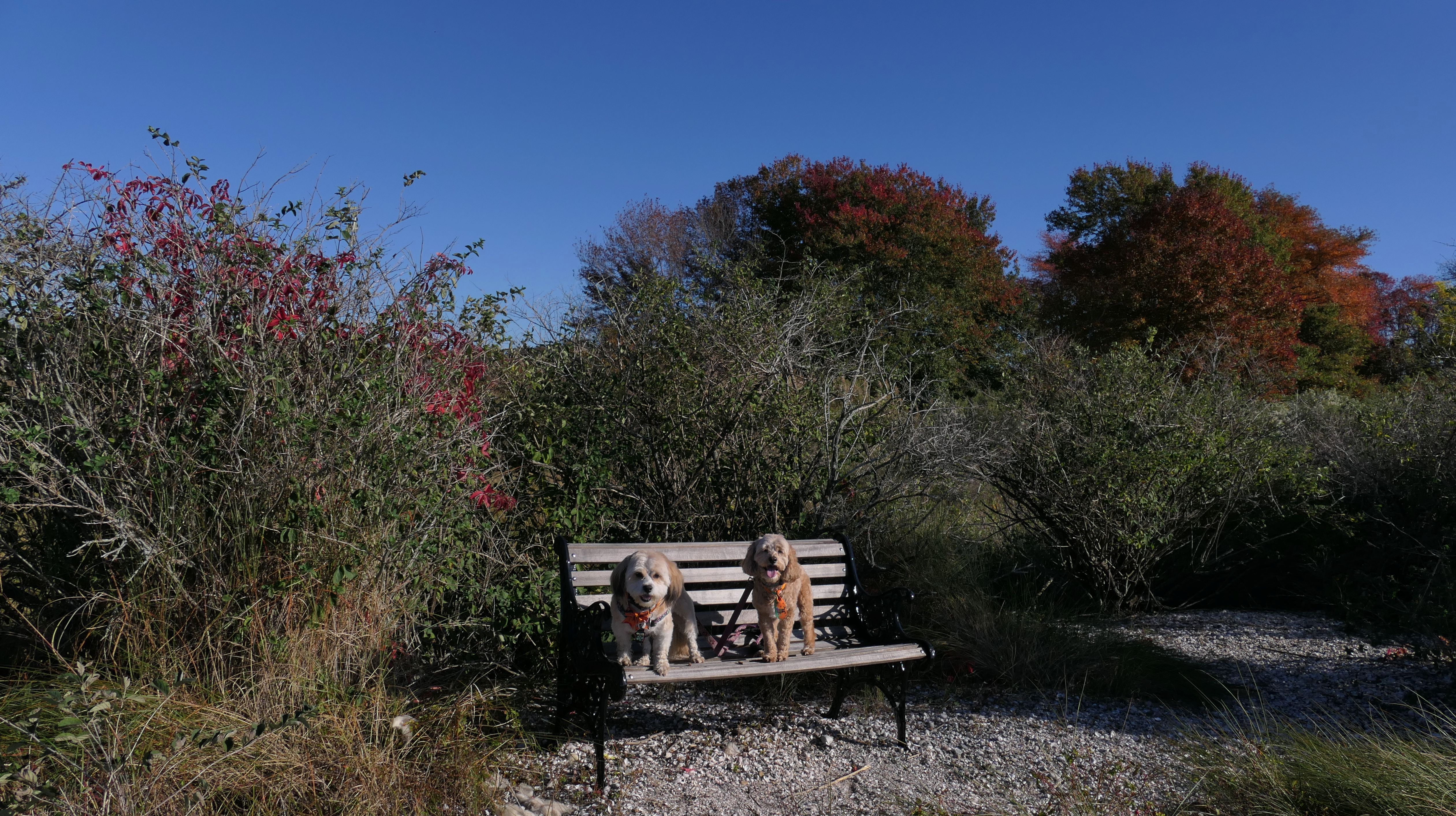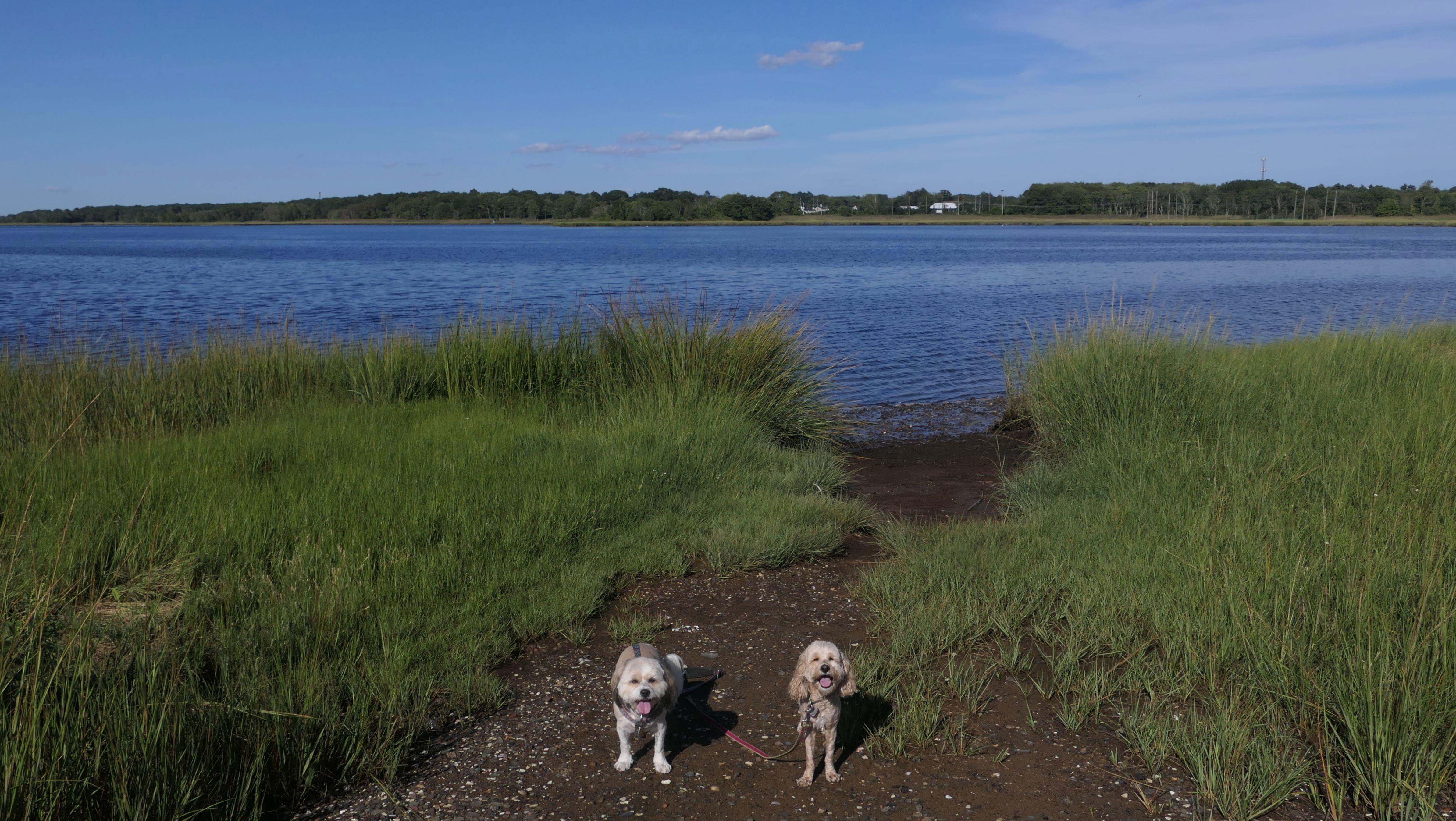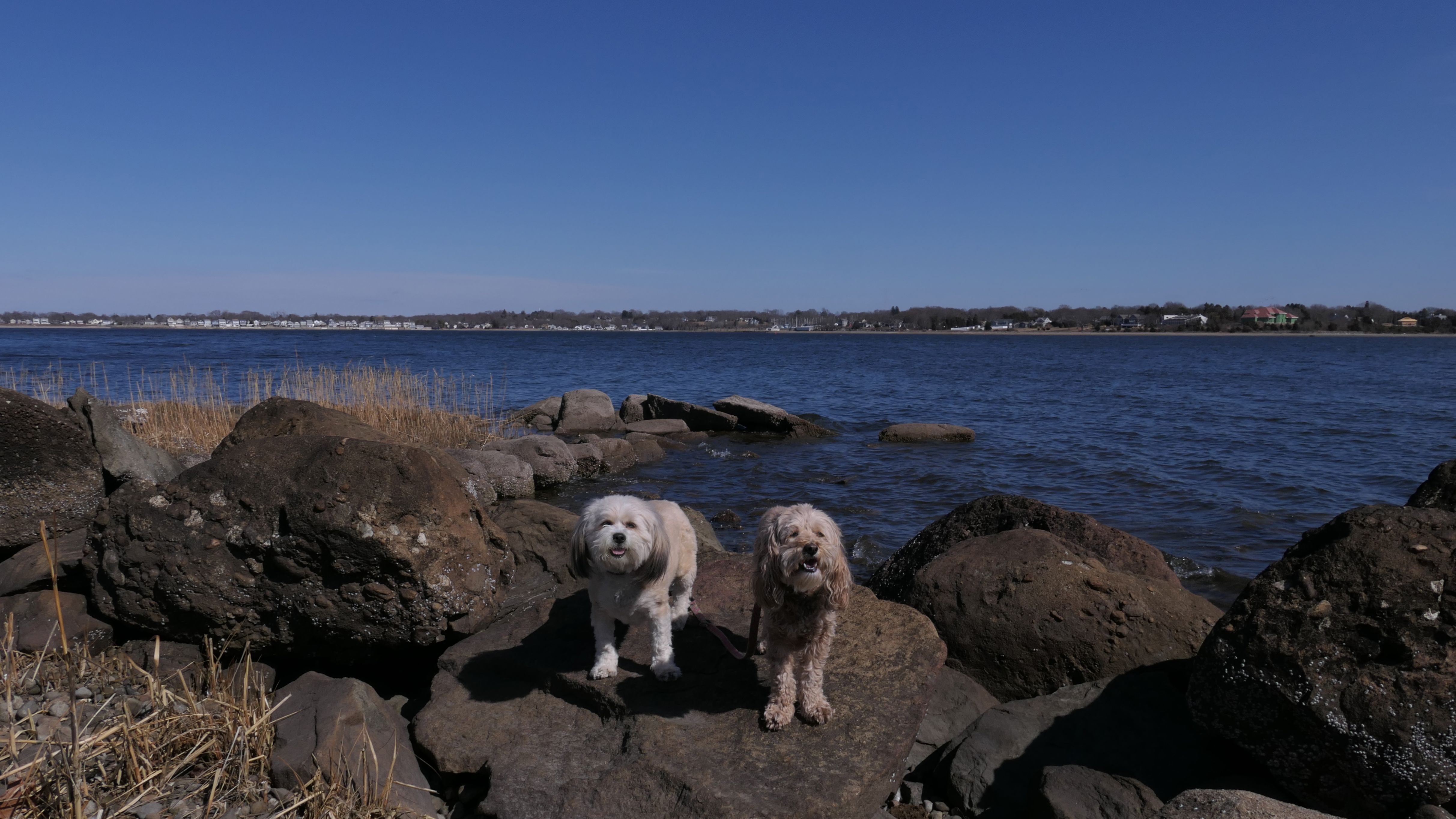 This is a town park with a short paved walking path, athletic fields, and some open space for just sitting on the grass and relaxing. The hill overlooks the town beach, situated at the mouth of the Warren River, as it opens out into Narragansett Bay. We arrived via a connecting trail from the East Bay Bike Path. It was a chilly December day, but there were still sailboats out in the water. Mandy tried to walk out into the water, but I had to stop her because it was too cold for that!
