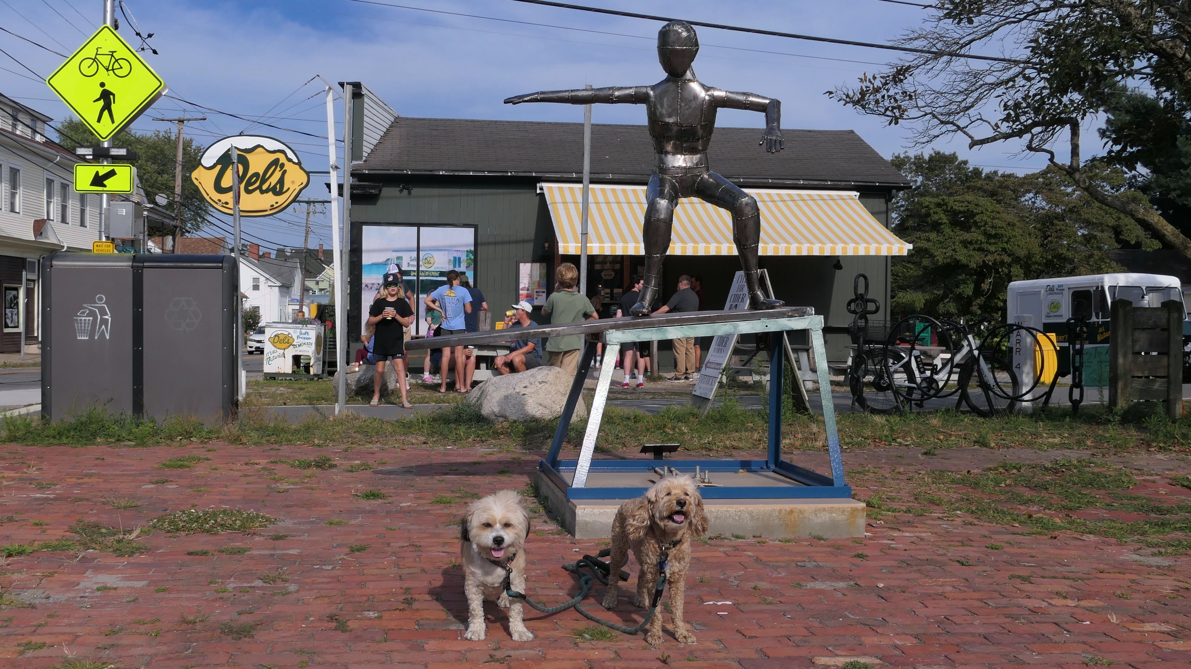This is "Regular Joe, The Potato Head". He stands in front of the Dunkin' on Metacom Avenue, just over the Bristol town line. Joe is one of 47 Mr. Potato Head statues designed by local artists in conjuction with Hasbro, and scattered across Rhode Island in 2000. Most of the statues are gone now, but Joe is one of them that still remains. You can read about the other spud heads and their stories here. I saw Joe from the road while driving by, and couldn't resist stopping here to take a photo! There is another Dunkin' being built on the other side of the road, about a quarter mile away. I wonder if this Dunkin' will be closing, and what that means for Joe.