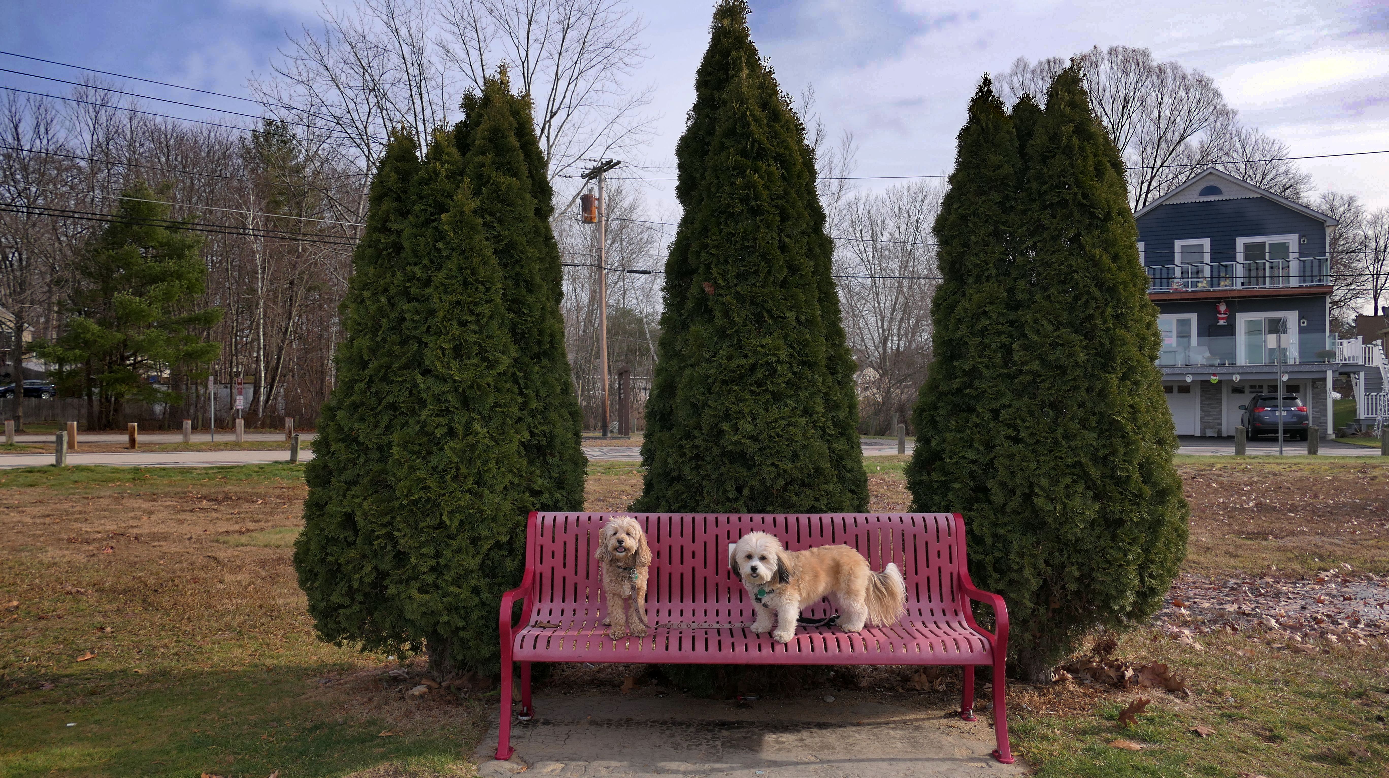 No, the cat did not sit on the keyboard. That is the name of this lake. I wanted to take the dogs here ever since I saw a concert at Indian Ranch in 2017. Unfortunately, there isn't much public access at this lake. There's a town beach, where dogs are not allowed, and a state managed boat launch. Since we were driving right by the lake on the way to the Southern New England Trunkline Trail, I decided to stop at the boat launch to take a couple pictures. I really just wanted to have Lake Chargoggagoggmanchauggagoggchaubunagungamaugg on this website! The lake is also known as Webster Lake, and the somewhat shorter name, Lake Chaubunagungamaug. There isn't any trail here or anything to do with the dogs really. Just the boat launch and a nice bench that overlooks the lake.