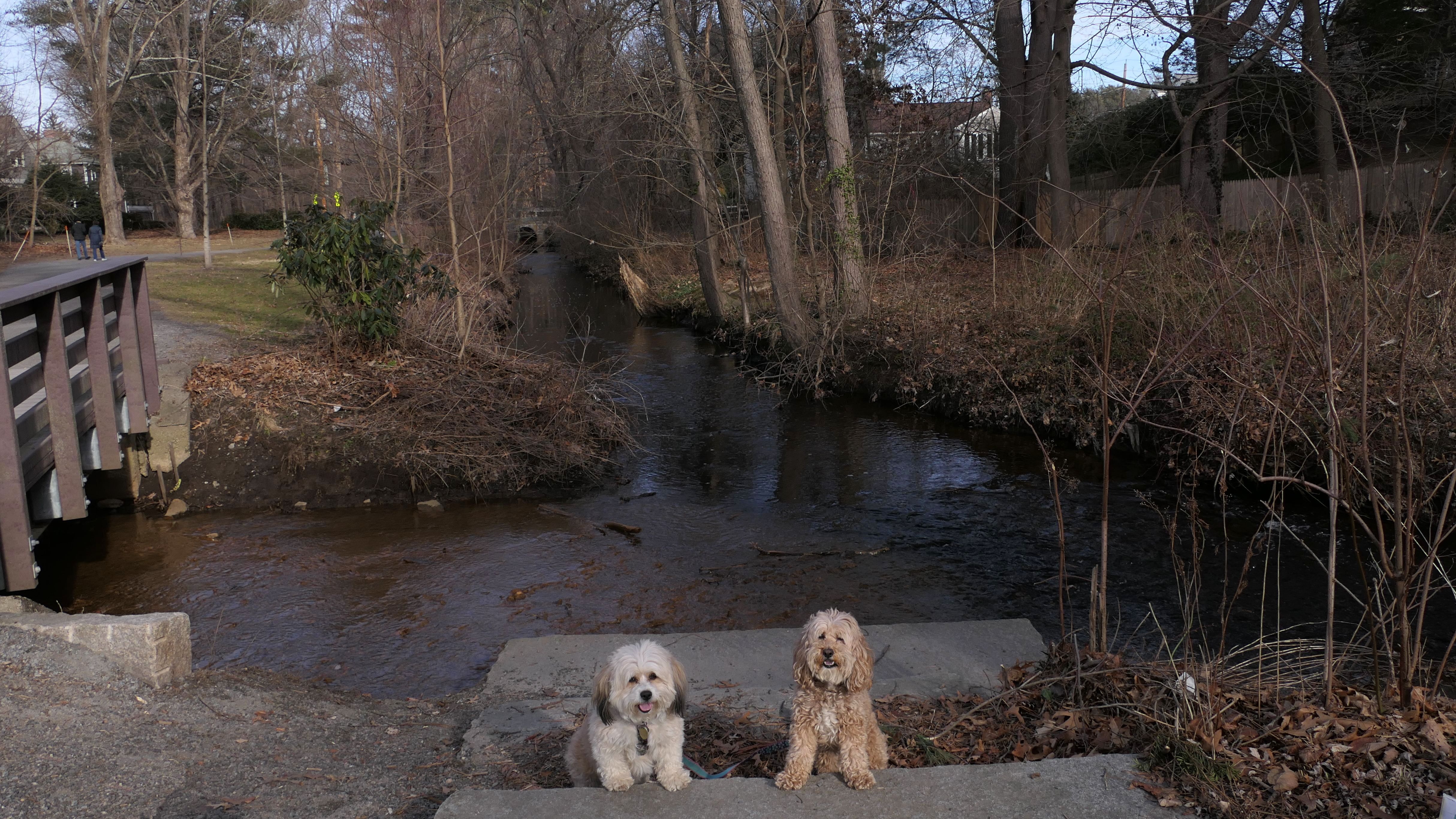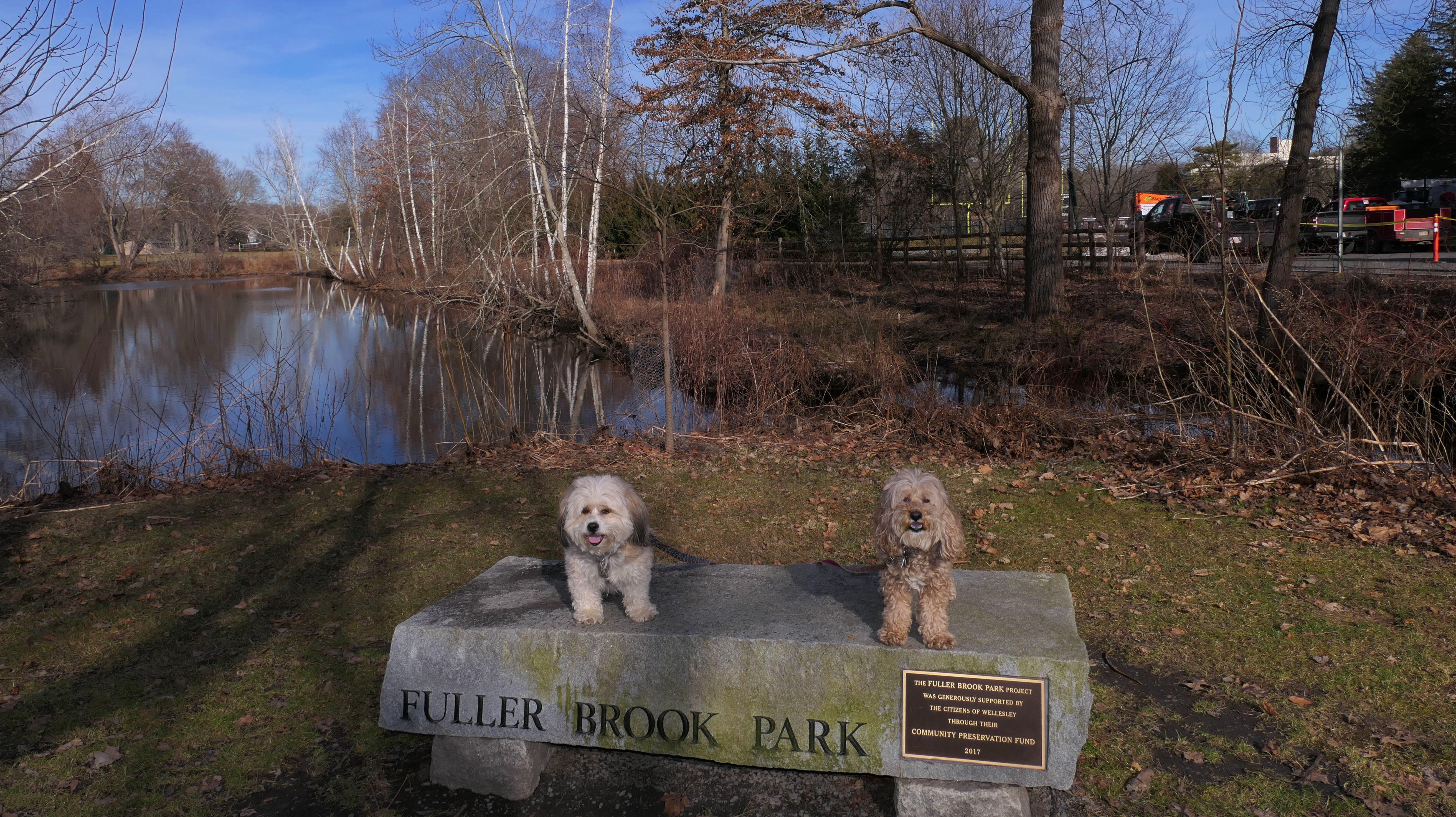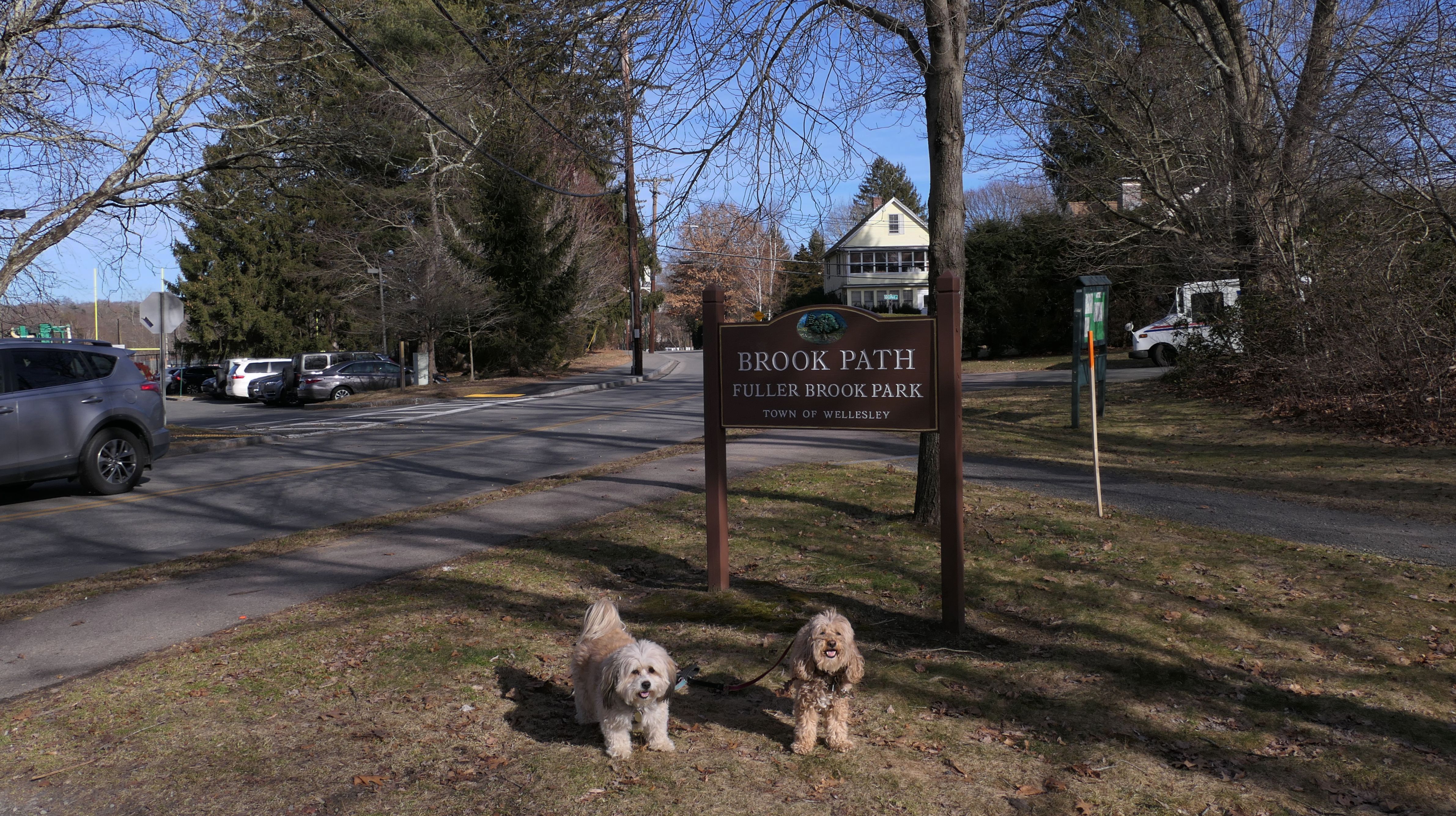 Fuller Brook Park is a linear park that follows Fuller Brook through Downtown Wellesley. There is a stone dust trail called "Brook Path" that runs the length of the park, about two and a half miles long. The trail features a wide variety of different views as it passes through town, including schools, athletic fields, and the backyards of some very nice houses. On our way back, we made a loop out of one end by using the "Crosstown Trail," another inner-city trail through town. The trails are busy, with people using them to get around town, go for a jog, or walk their dogs. This was a fun walk, as these trails are different from most, as they go right through the heart of the town. The down side is that parking is a nightmare. The small lot for the park on State Street fills up quickly. We wound up using metered parking on Washington Street. Another downside is that there are a number of street crossings. Remember, this is Massachusetts, so even with the blinking crossing lights, cars are not necessarily going to stop! It was a mild day, with temps around 50, so a good day for a walk. Of course, this being New England and all, a foot of snow is in the forecast for the next day, so it was good to get out while we could!