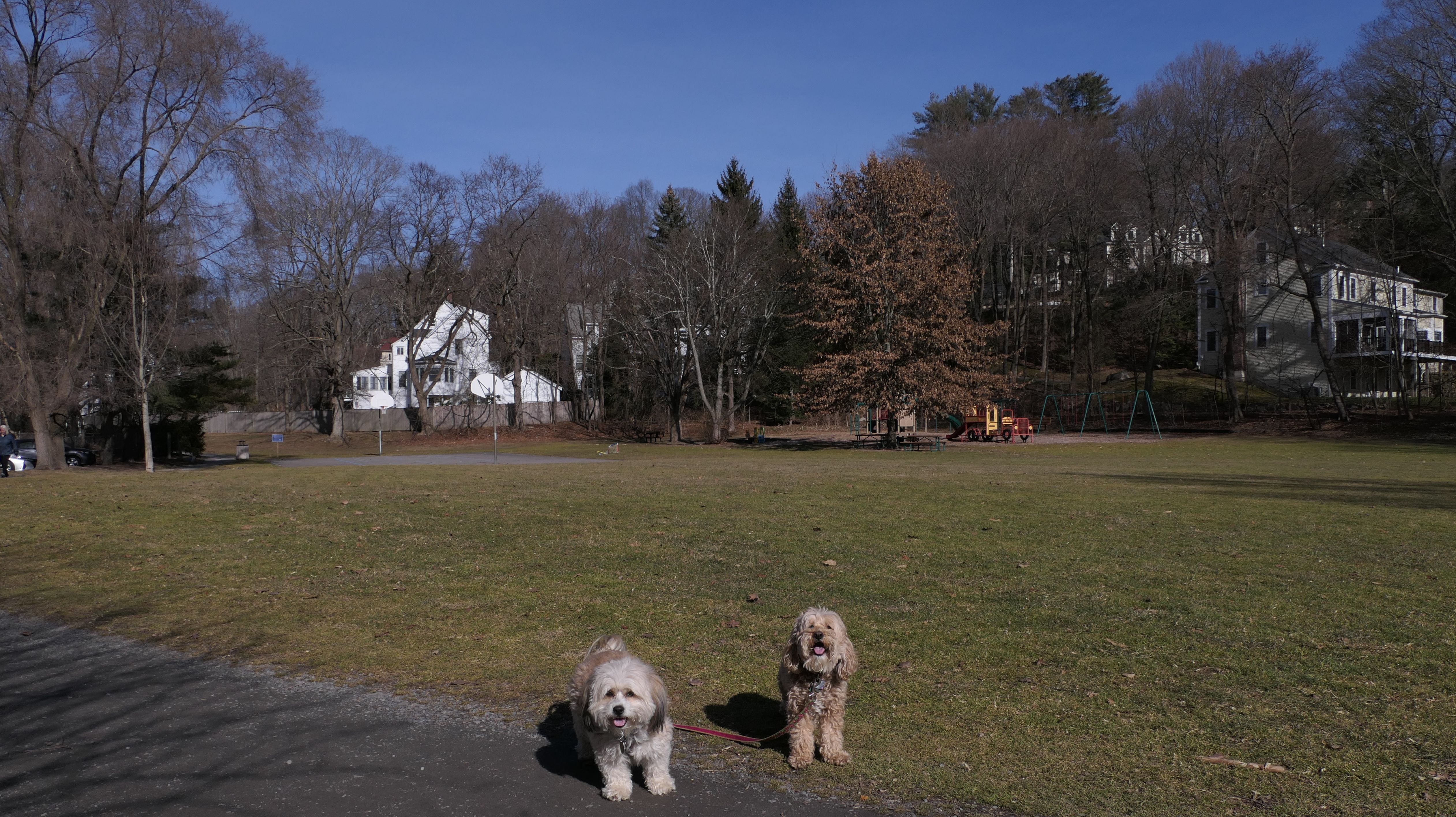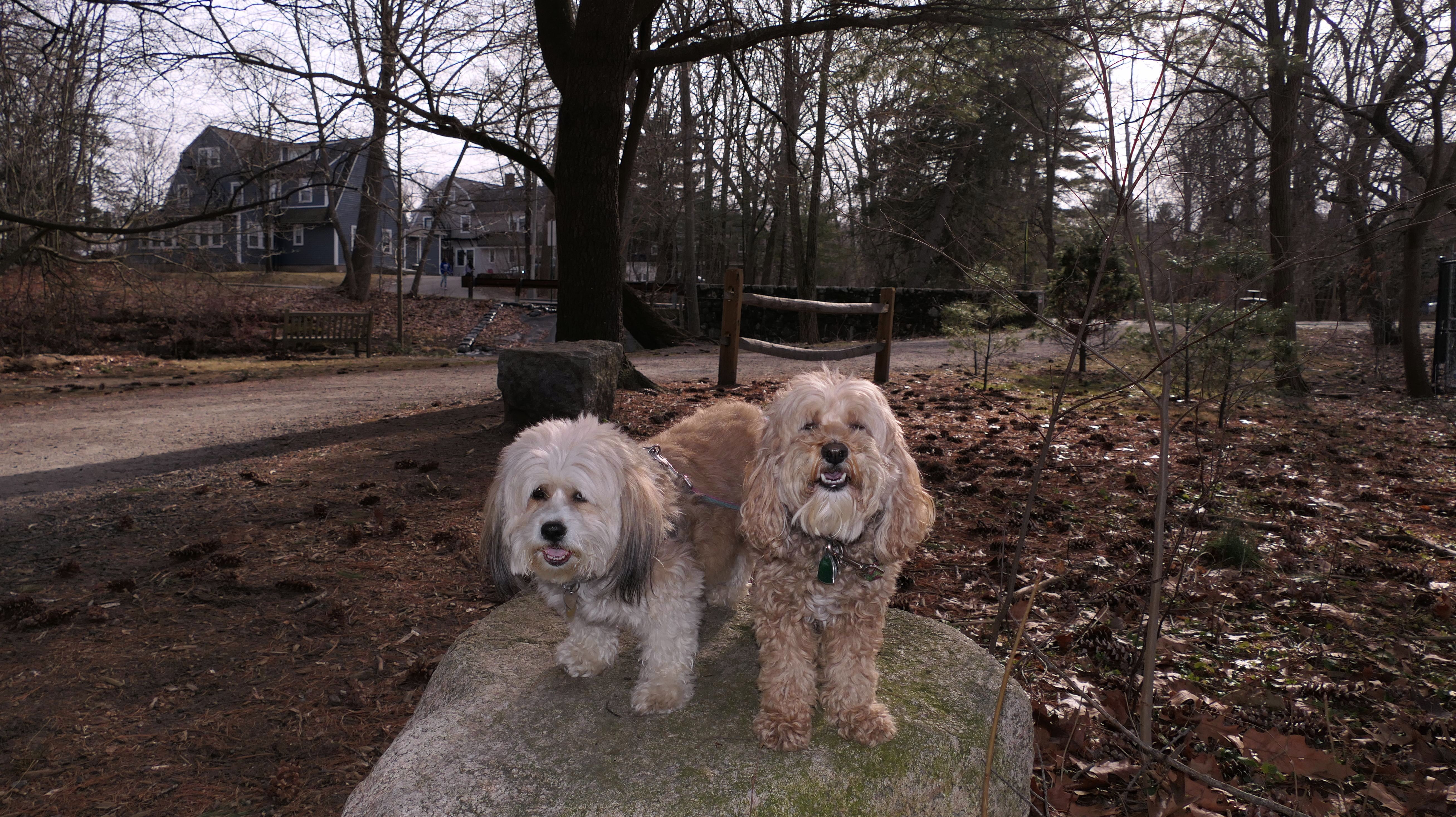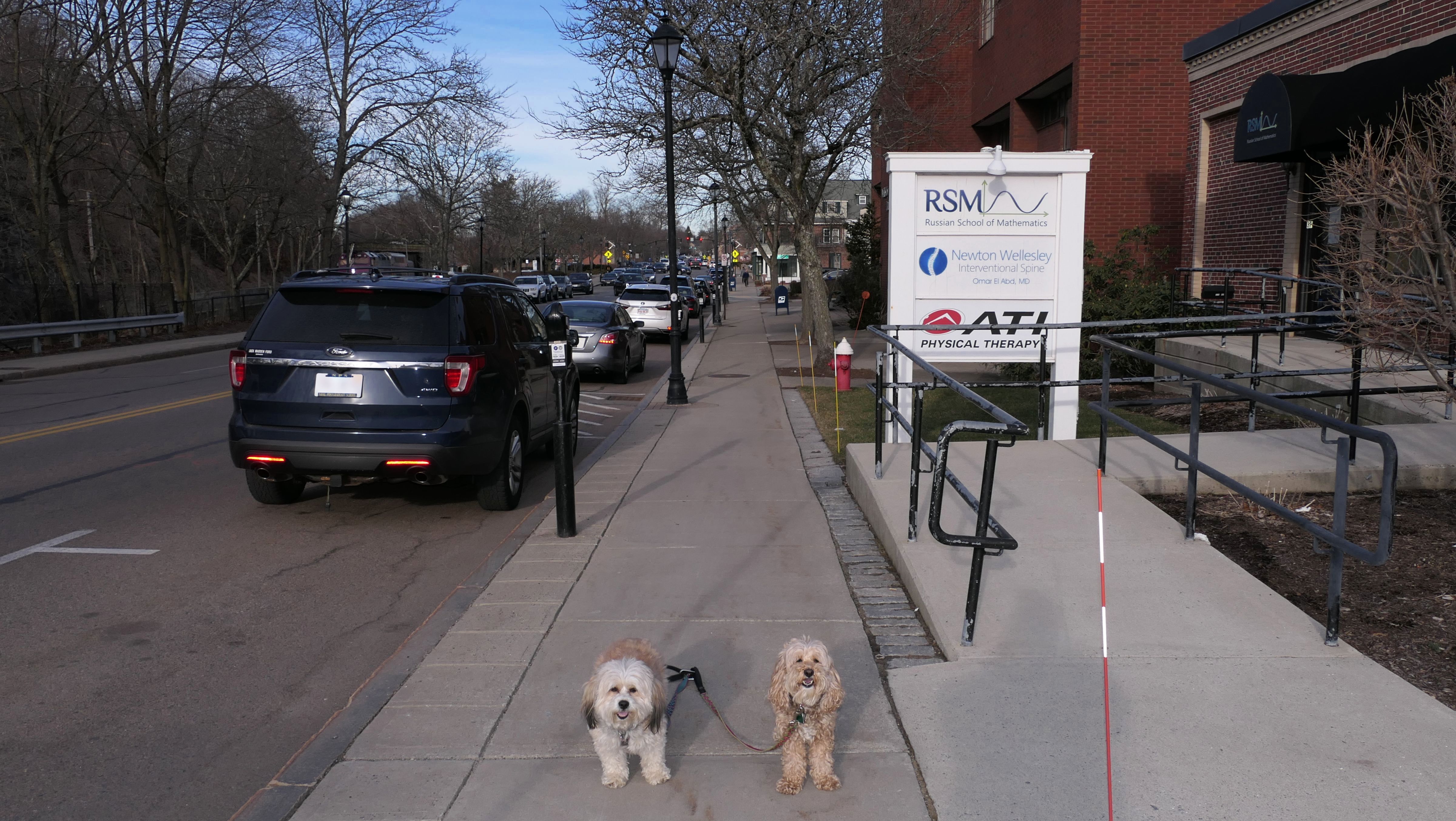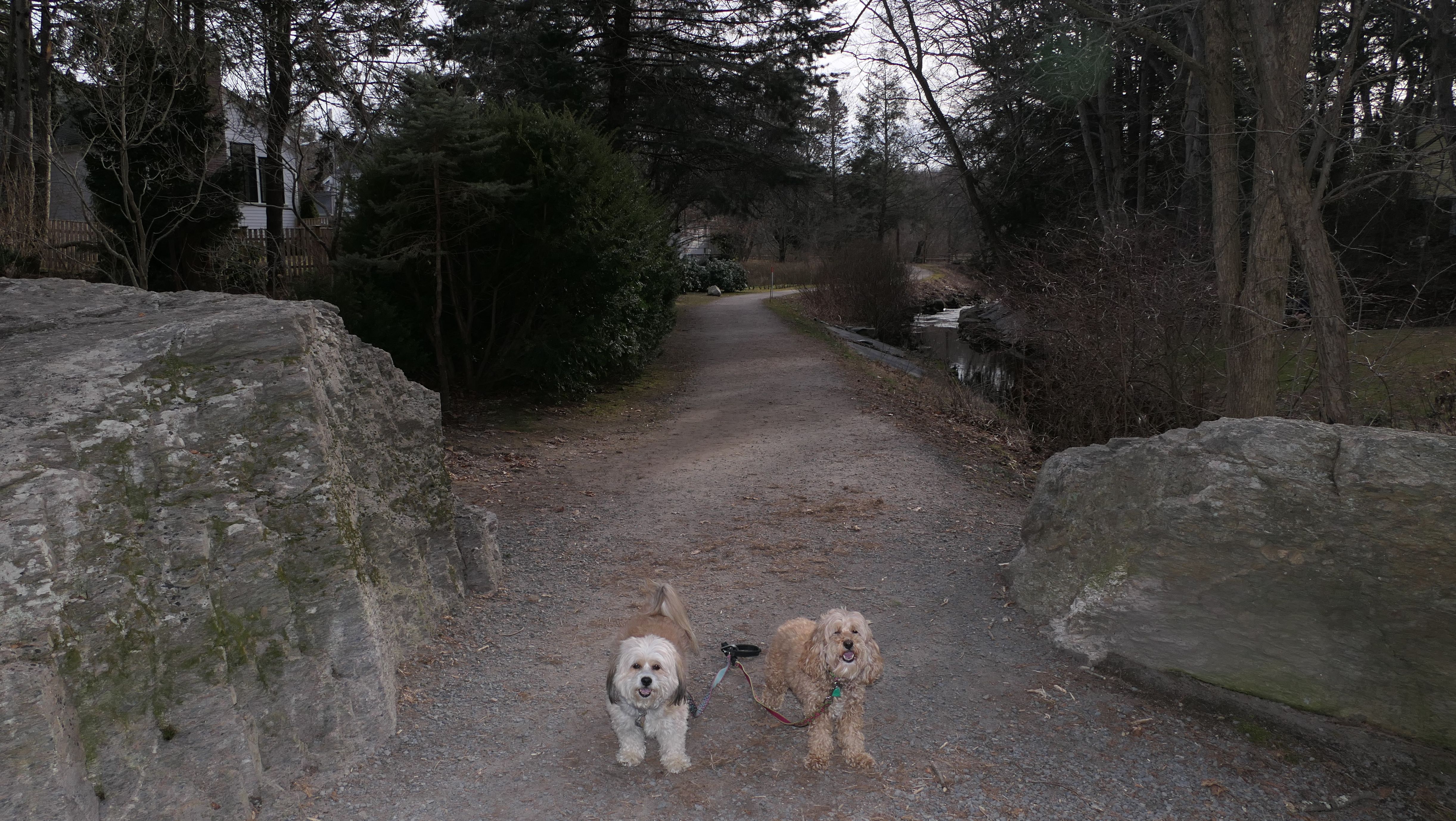 Fuller Brook Park is a linear park that follows Fuller Brook through Downtown Wellesley. There is a stone dust trail called "Brook Path" that runs the length of the park, about two and a half miles long. The trail features a wide variety of different views as it passes through town, including schools, athletic fields, and the backyards of some very nice houses. On our way back, we made a loop out of one end by using the "Crosstown Trail," another inner-city trail through town. The trails are busy, with people using them to get around town, go for a jog, or walk their dogs. This was a fun walk, as these trails are different from most, as they go right through the heart of the town. The down side is that parking is a nightmare. The small lot for the park on State Street fills up quickly. We wound up using metered parking on Washington Street. Another downside is that there are a number of street crossings. Remember, this is Massachusetts, so even with the blinking crossing lights, cars are not necessarily going to stop! It was a mild day, with temps around 50, so a good day for a walk. Of course, this being New England and all, a foot of snow is in the forecast for the next day, so it was good to get out while we could!
