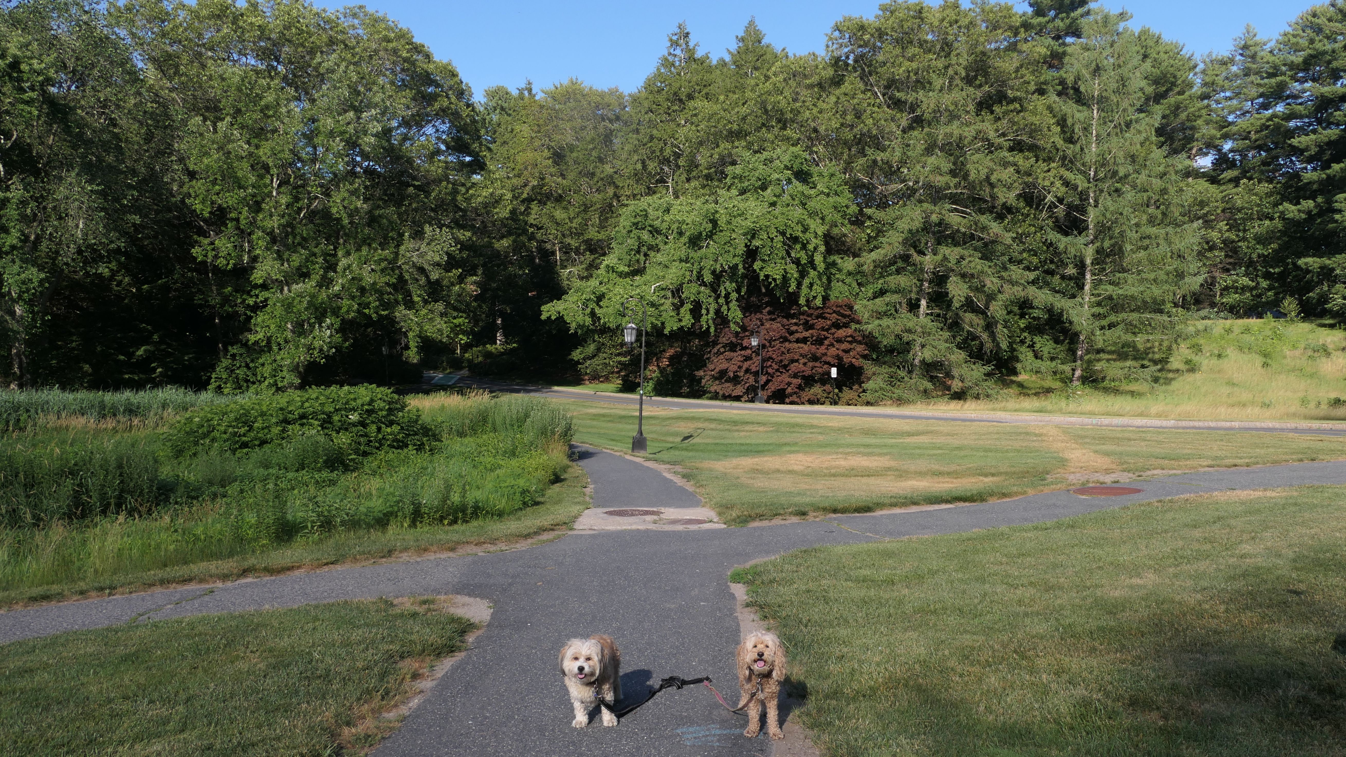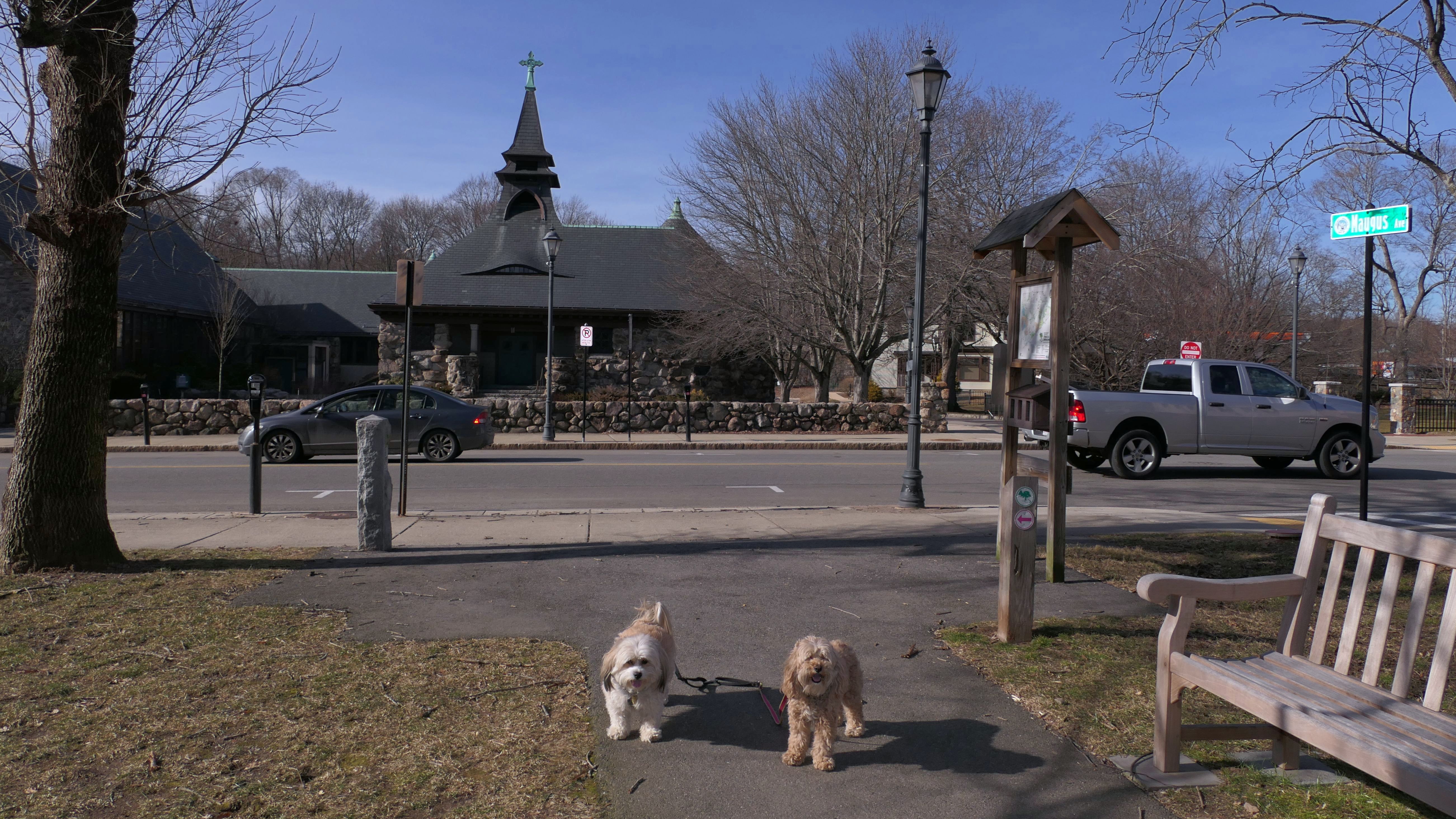 This is a college campus that features a number of walking paths that are open to the public. There are signs reminding walkers that it is private property, and that dogs must be leashed. We walked around half the campus, which features a lot of buildings that look like fancy churches! There is also a trail that runs along side Lake Waban. There are some observation platforms with nice views of the lake along the way. The trail continues along side the lake, until it reaches a fence with a gate and a sign indicating that the trail was closed from that point. It's too bad, because on my trail map it looked like the trail leads to the wonderful topiary garden that we saw from the observation platforms. It looks like it used to be open to the public at one point, because there was a sign indicating that dogs must be leashed beyond the fence. We looped back to Wellesley Square where we parked, walking a bit over 3 miles total. We only covered about half the campus, so it's possible we'll return at a later date to check out the rest.