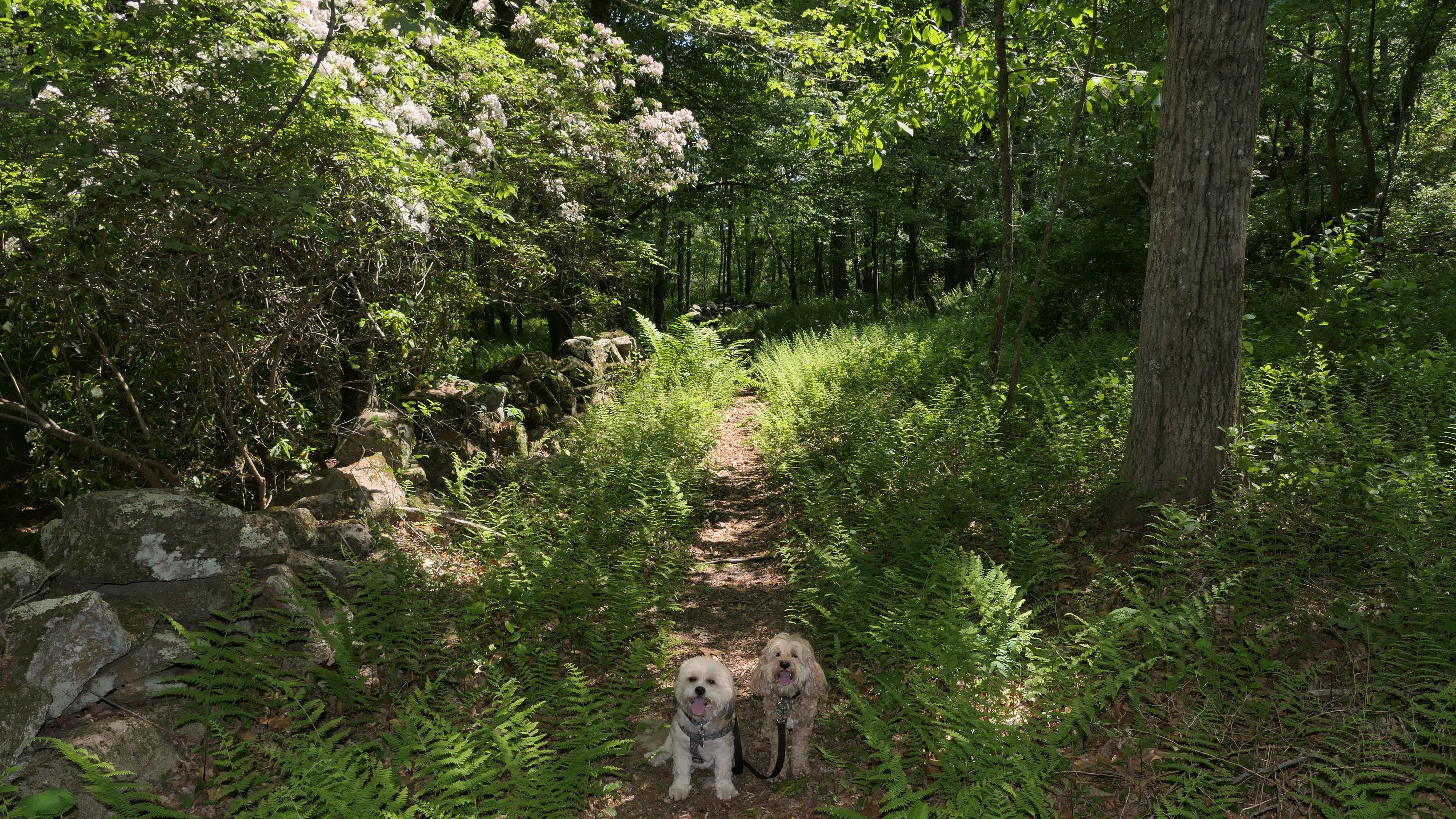 This is a nature preserve and hiking area located in the Bradford section of Westerly. There's a short paved loop that circles a lacrosse field. The main trails are accessed from the far side of the paved loop. We followed a two mile loop, heading clockwise up a steady incline through mostly woods, and some more open areas. Mountain Laurel's are plentiful along the trail, and this is the perfect time of year to see them in bloom. Once past the open field area, the incline down is steeper and shorter than the way up. The trails are also used for mountain biking, and there are connecting trails that lead to Woody Hill Management Area. The trail was well marked and maintained. It's not a super memorable hike. Other than the Mountain Laurels, there's nothing very remarkable here, but it's a nice walk in the woods.