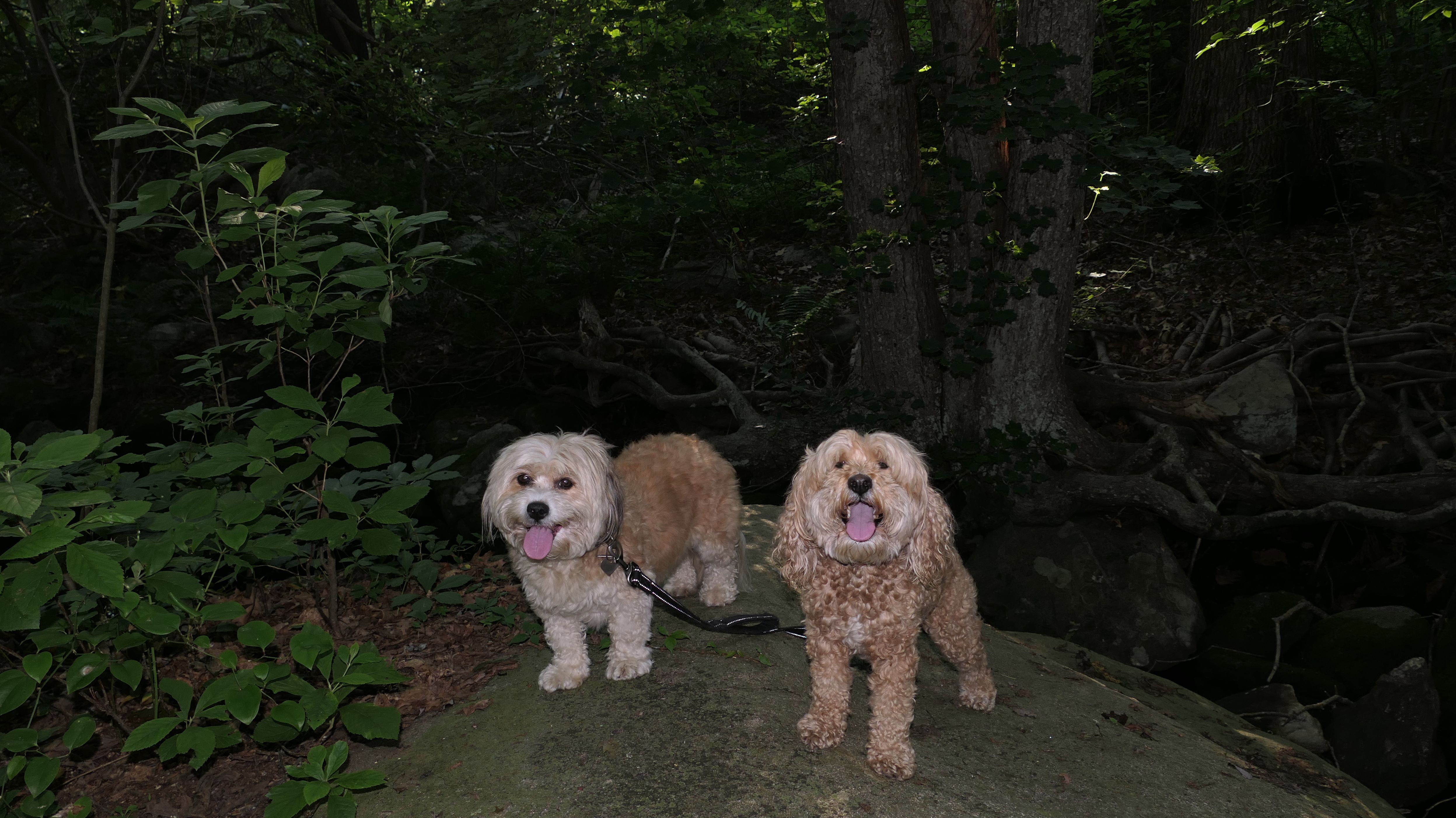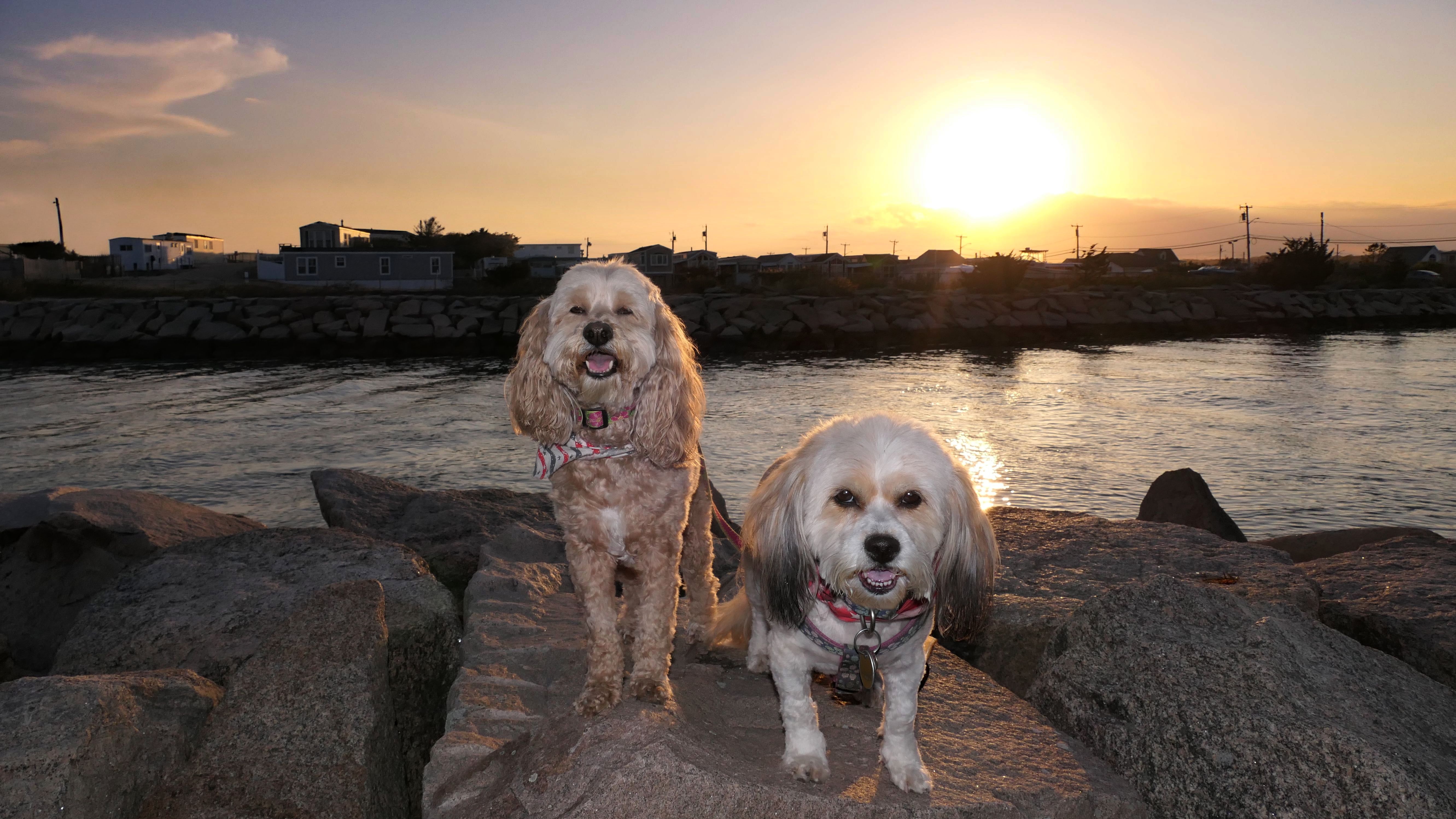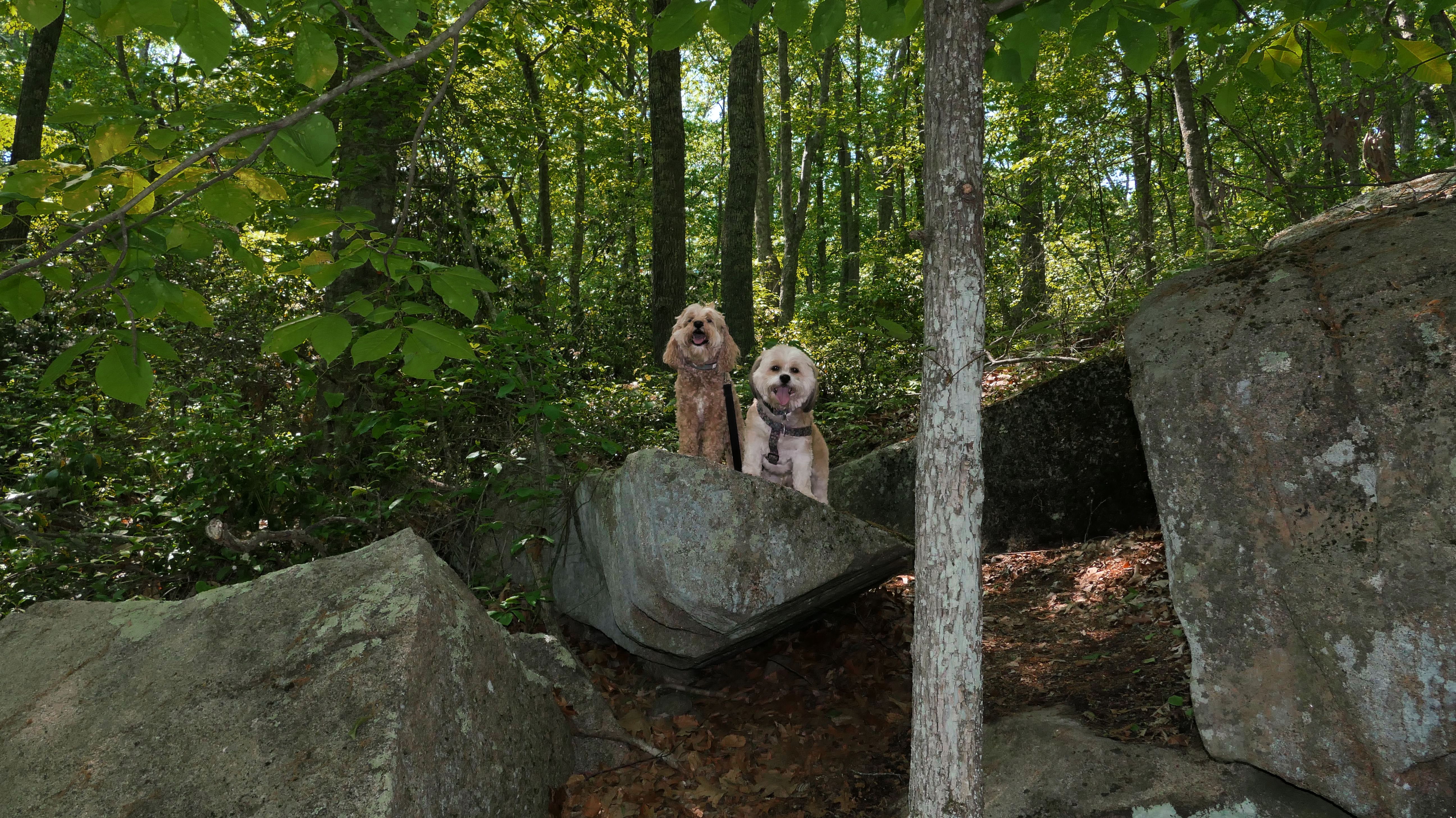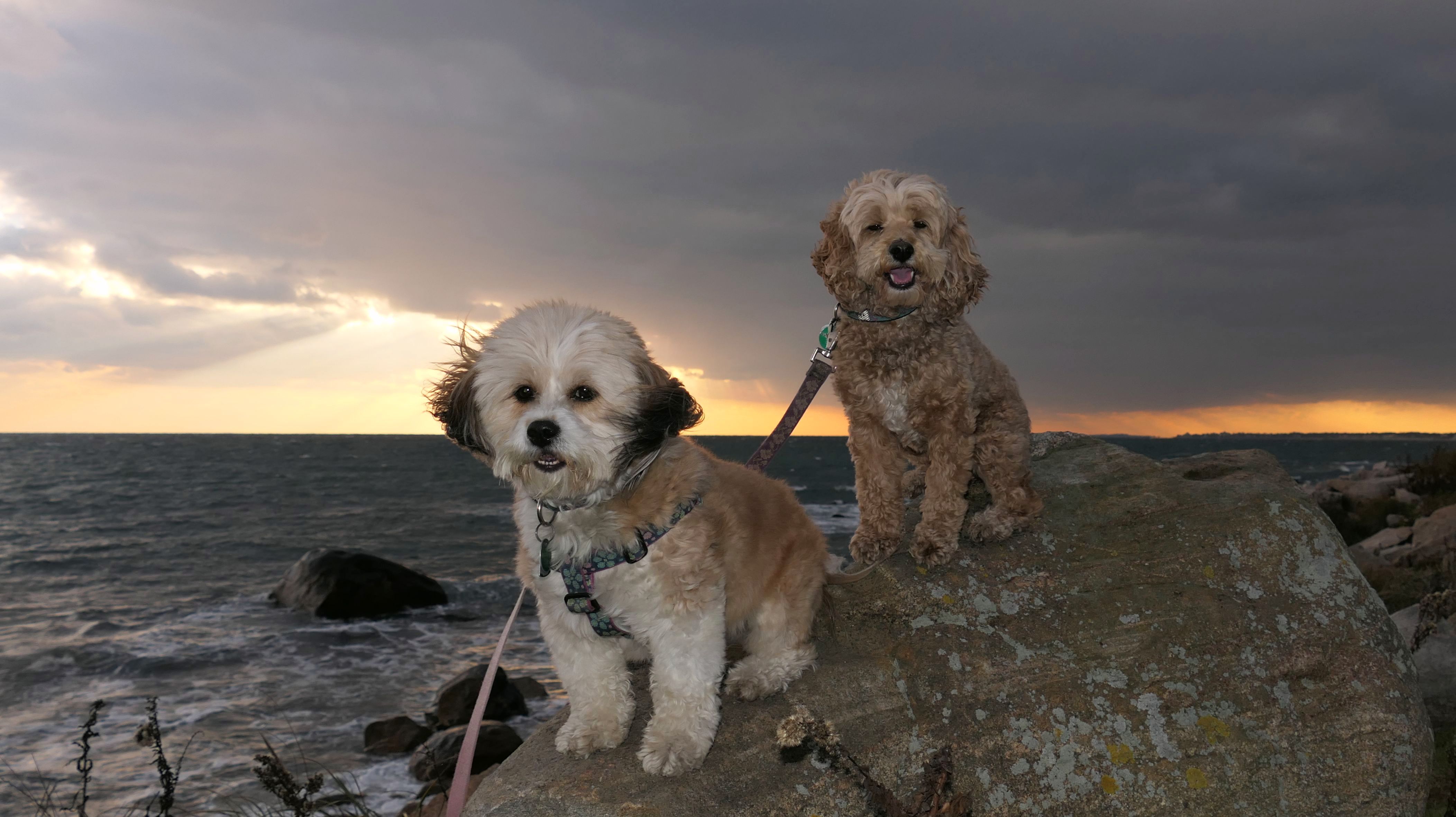 This is the scenic overlook off of the aptly named Spray Rock Road. There's a small parking area. You're only allowed 30 minutes to park during the summer months. We stopped to takes some photos of the dogs on the rocks. The combination of the sunset and the approaching storm clouds made for a very nice backdrop.