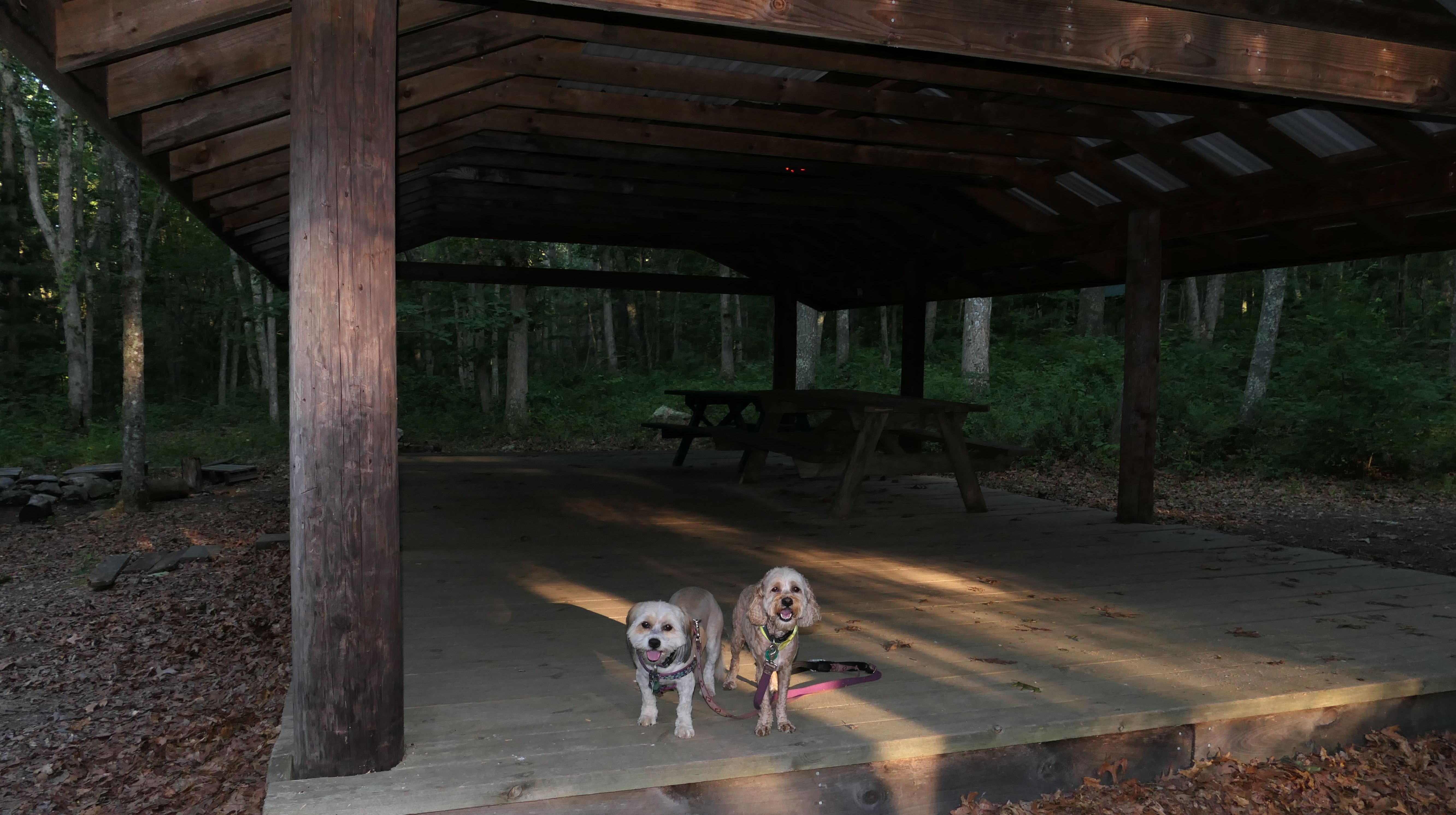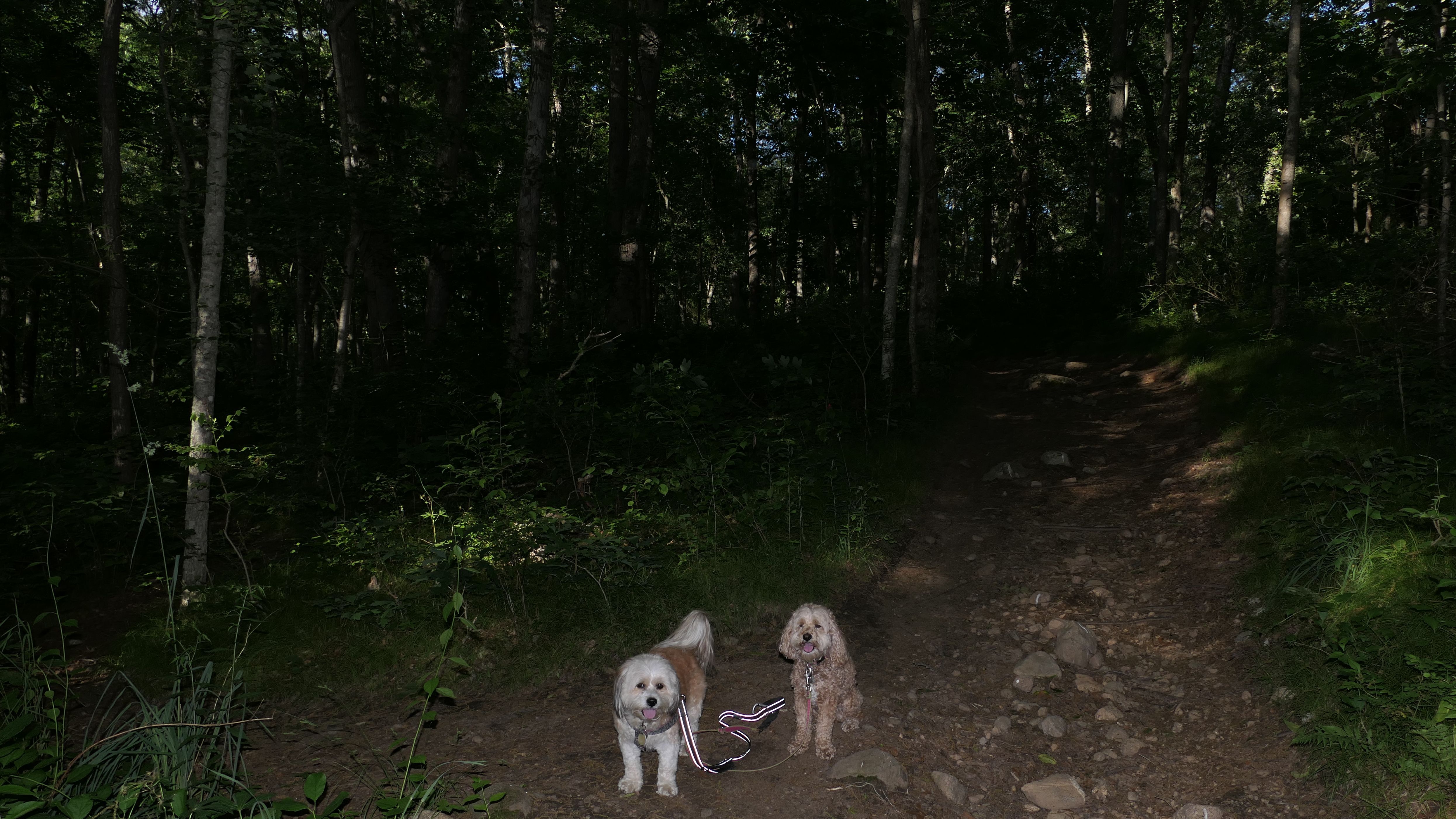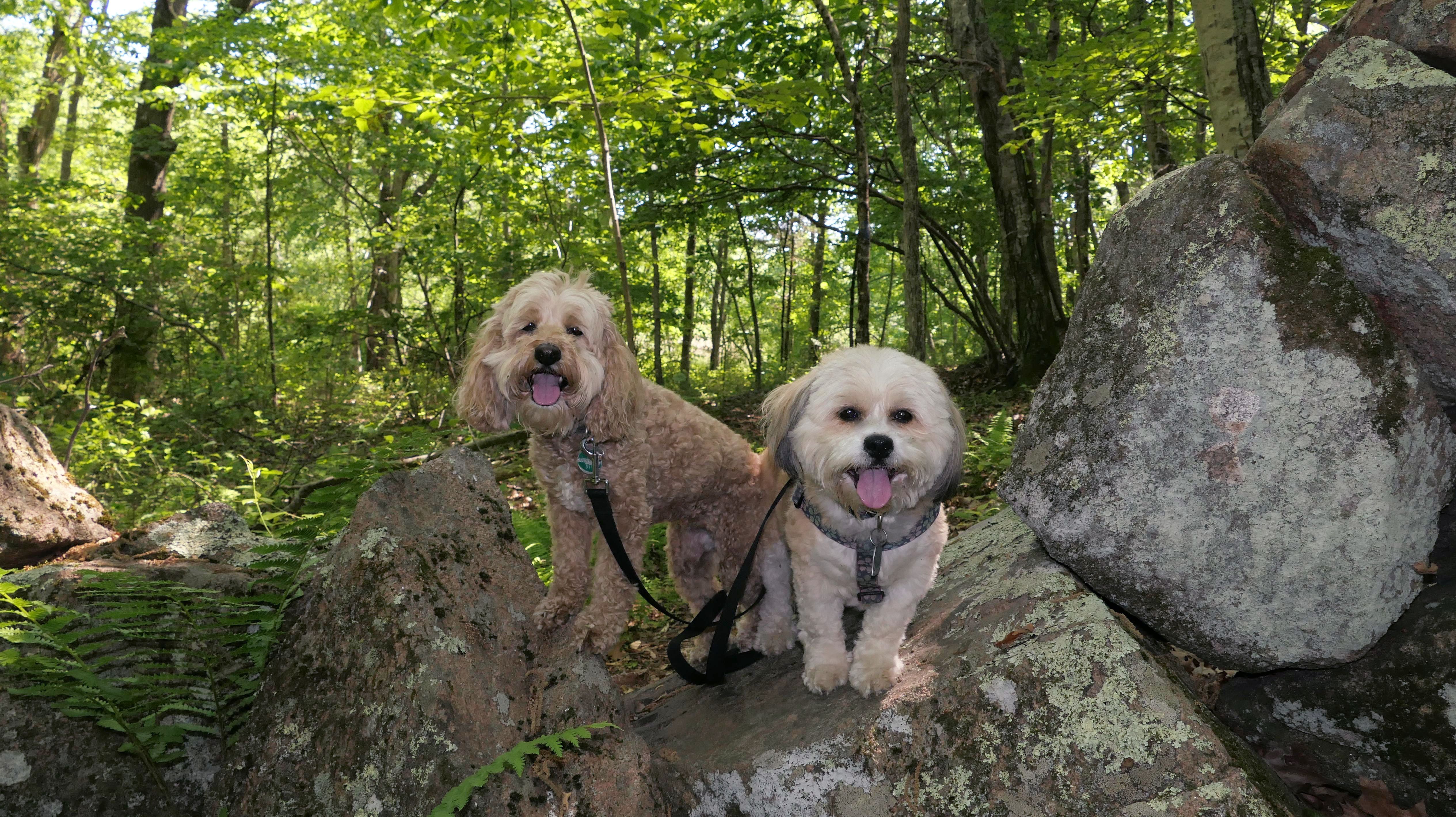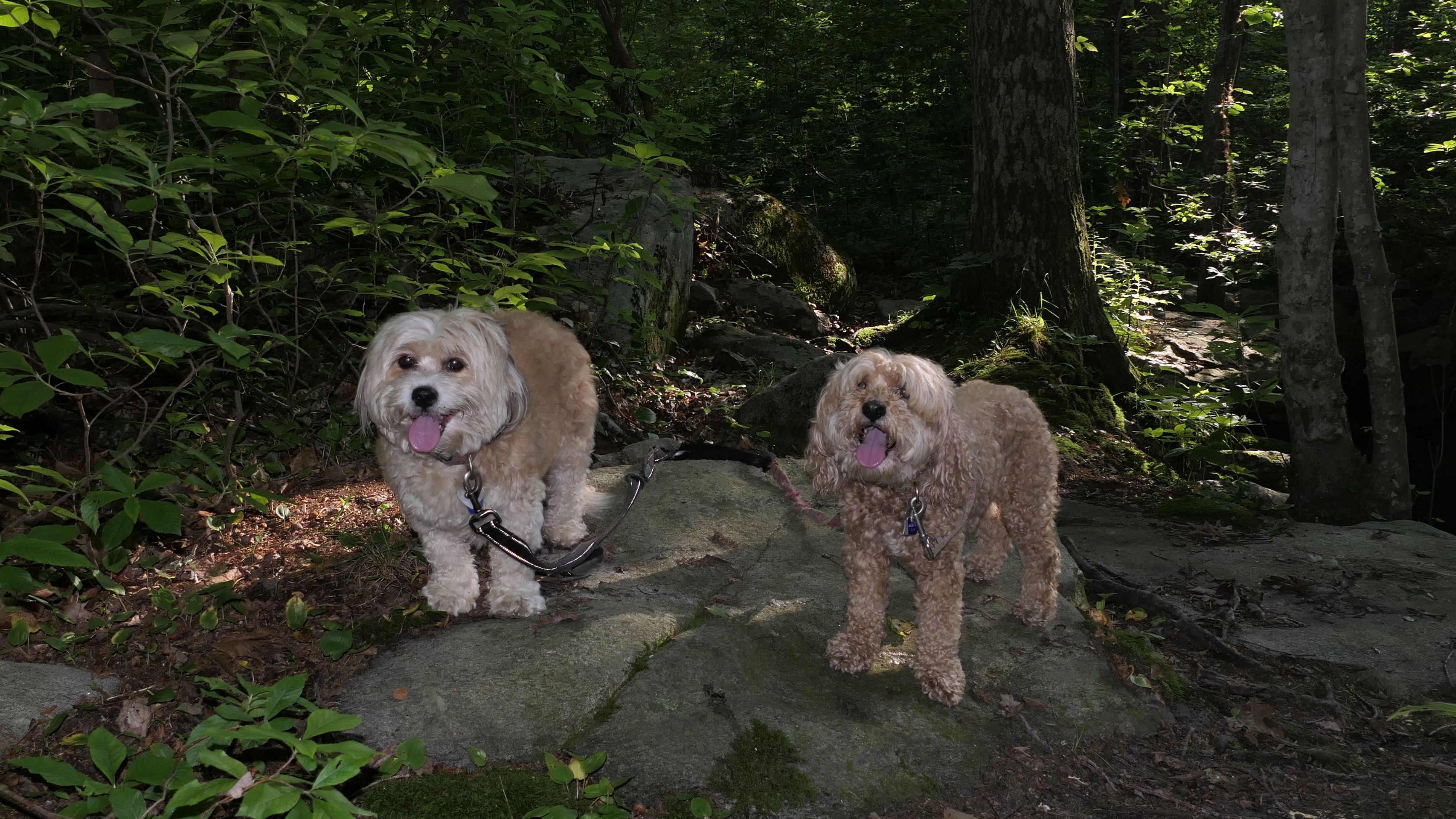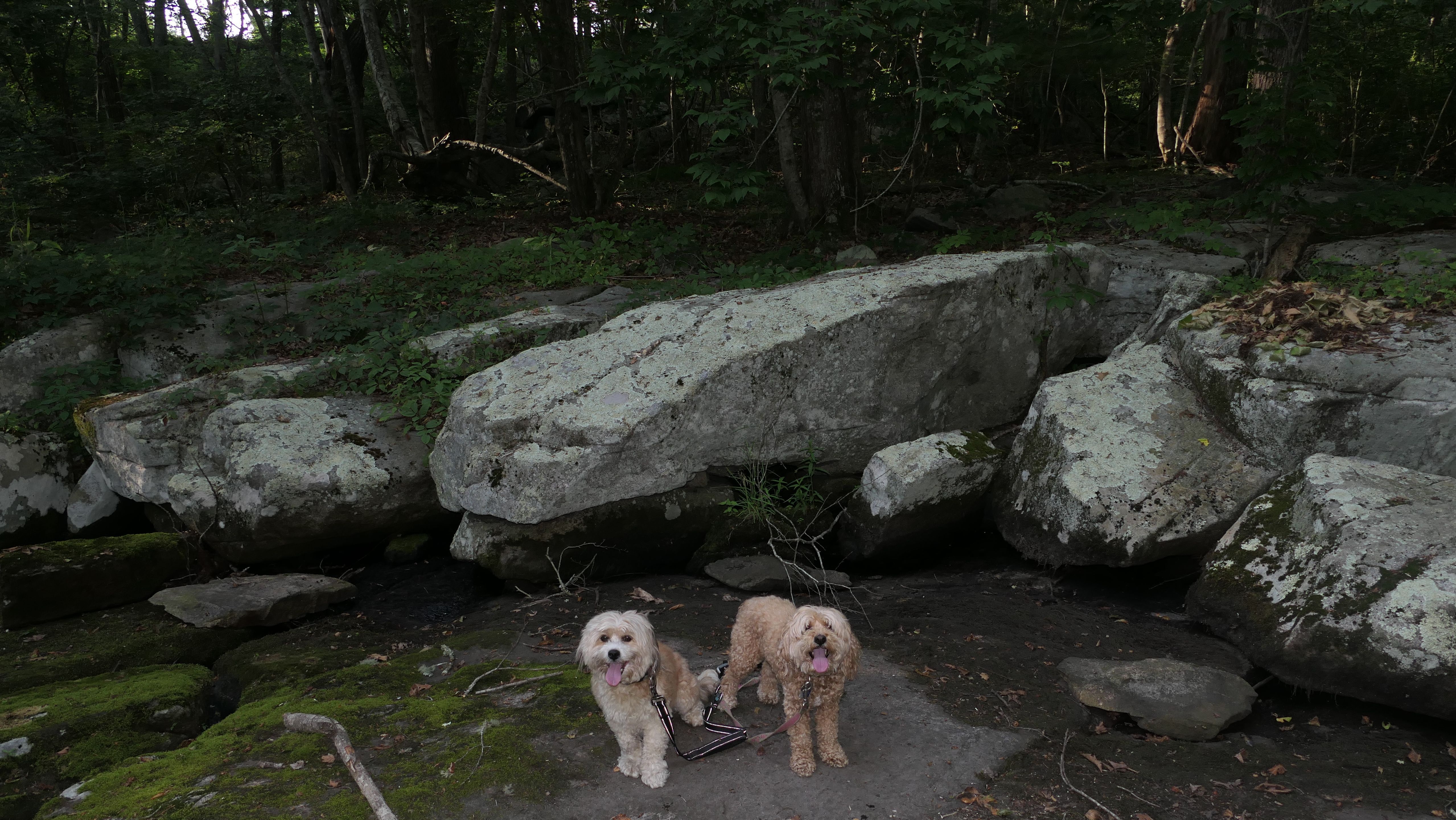 This is the scenic overlook off of the aptly named Spray Rock Road. There's a small parking area. You're only allowed 30 minutes to park during the summer months. We stopped to takes some photos of the dogs on the rocks. The combination of the sunset and the approaching storm clouds made for a very nice backdrop.