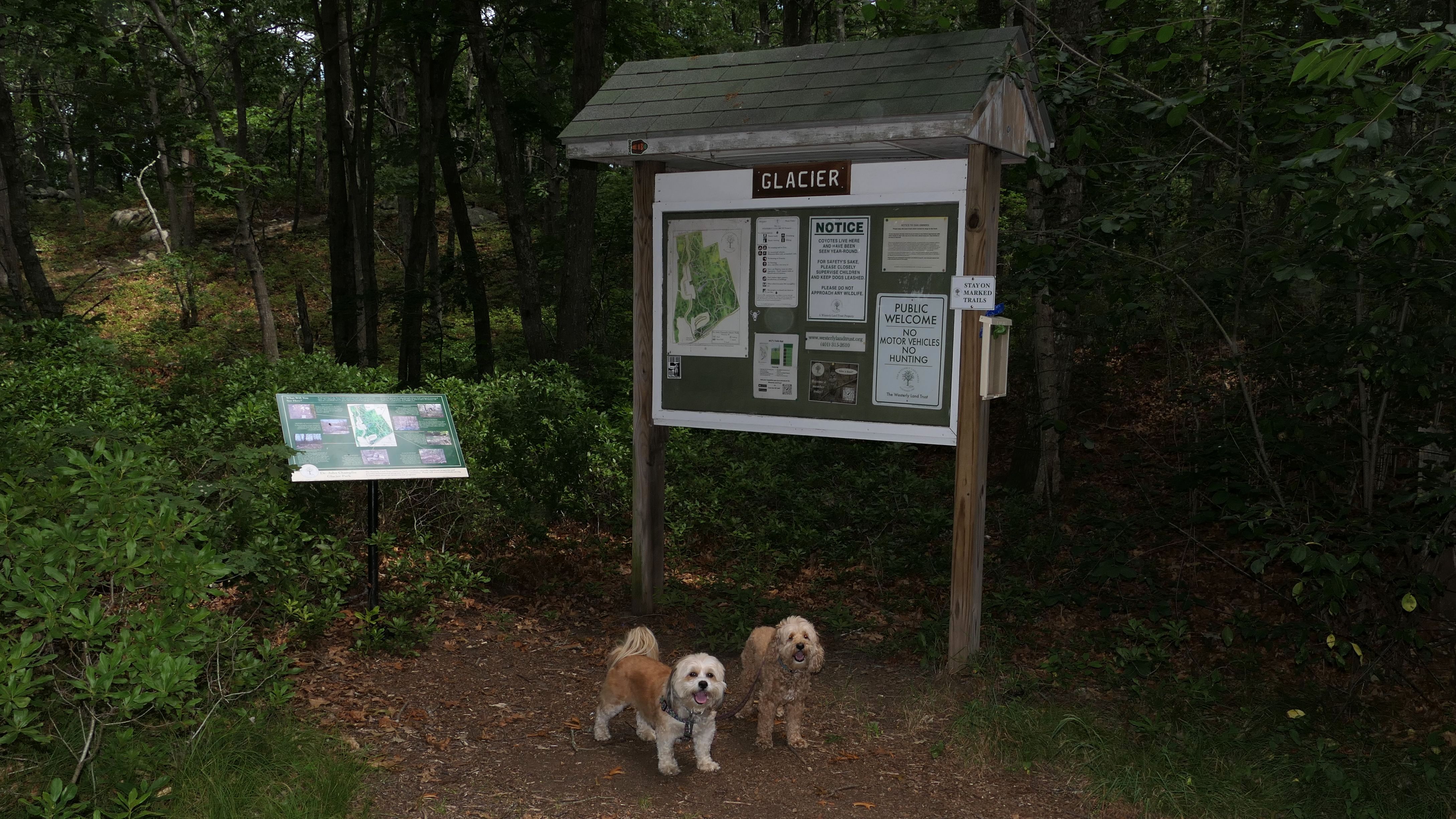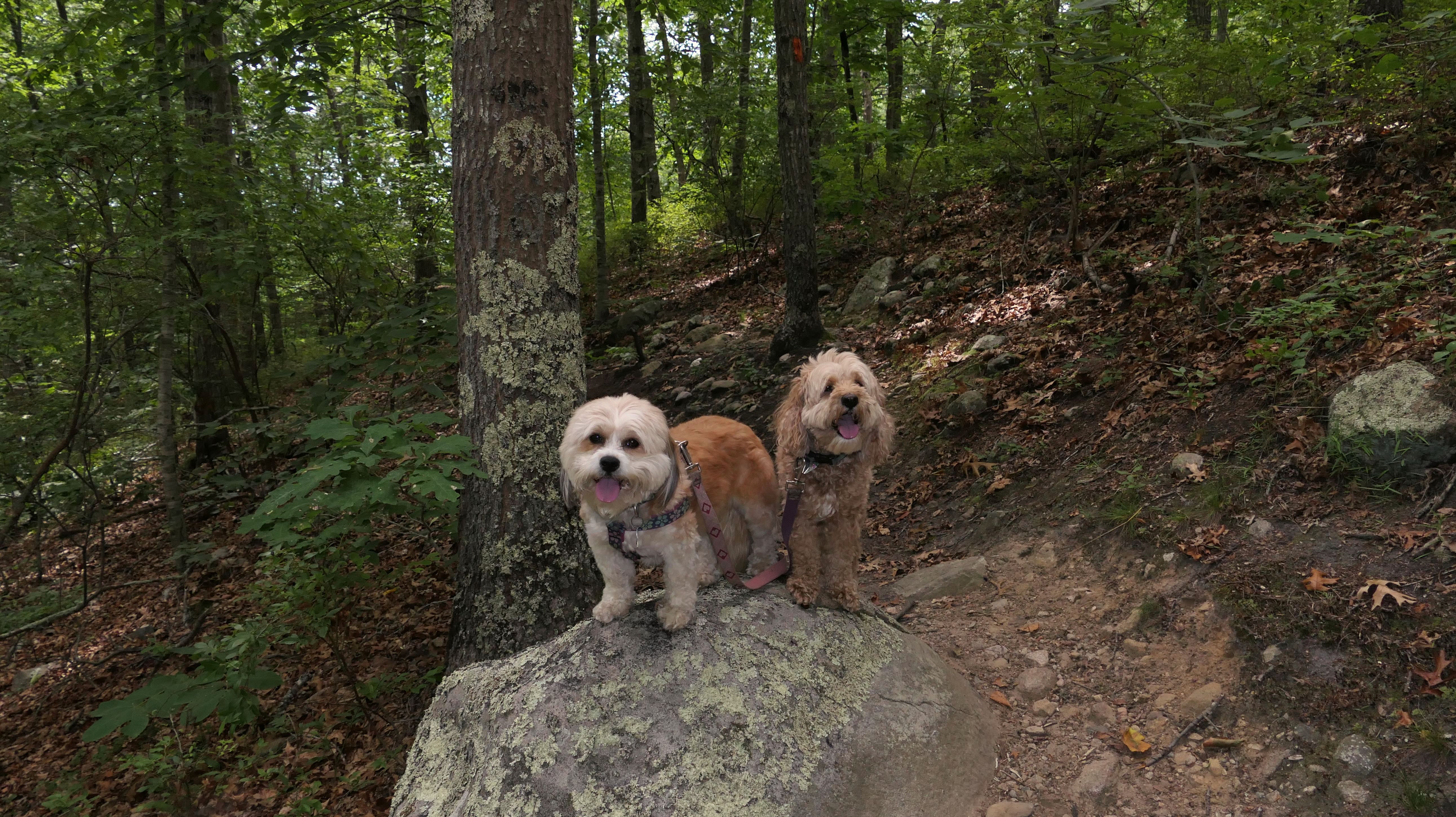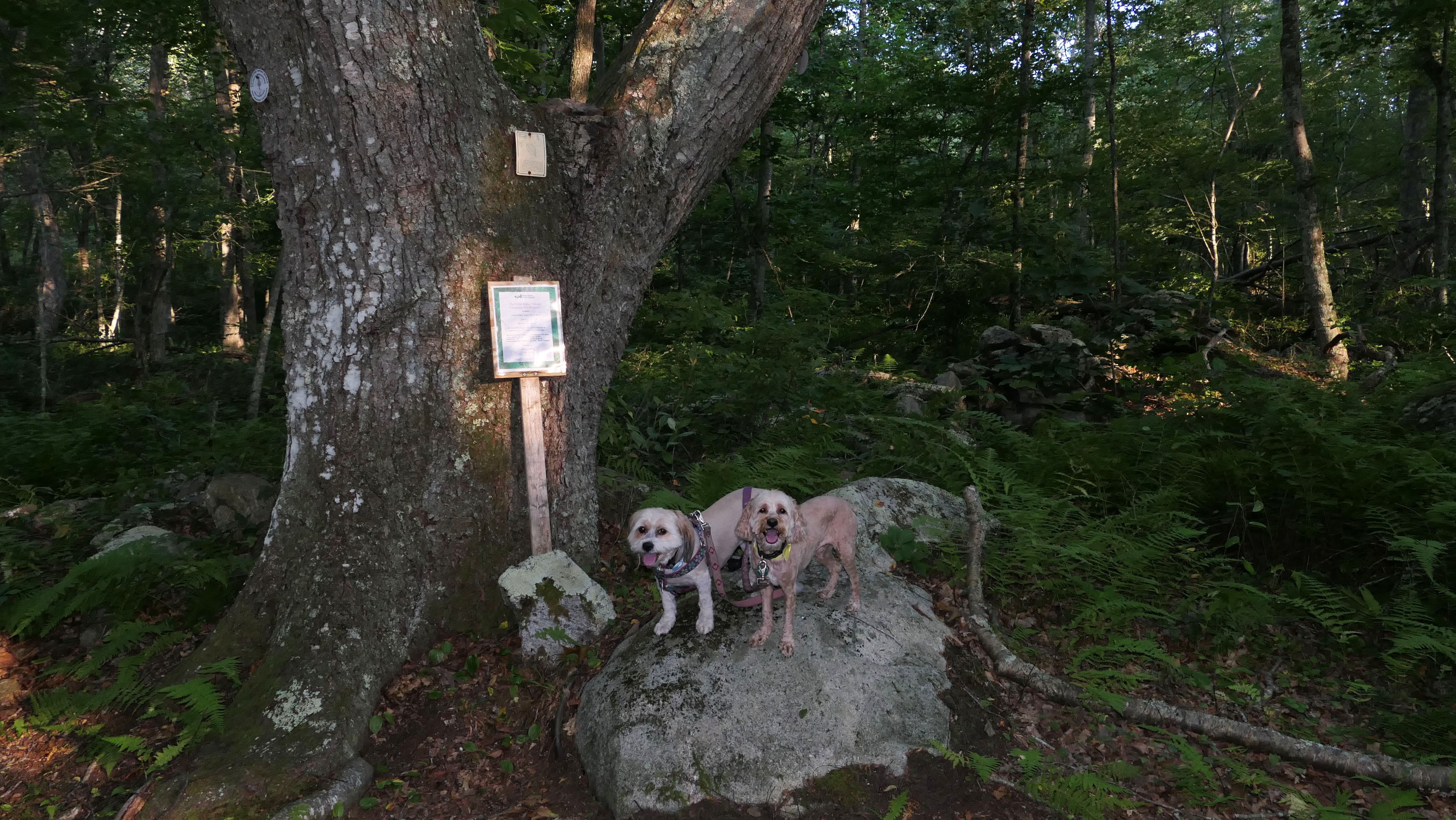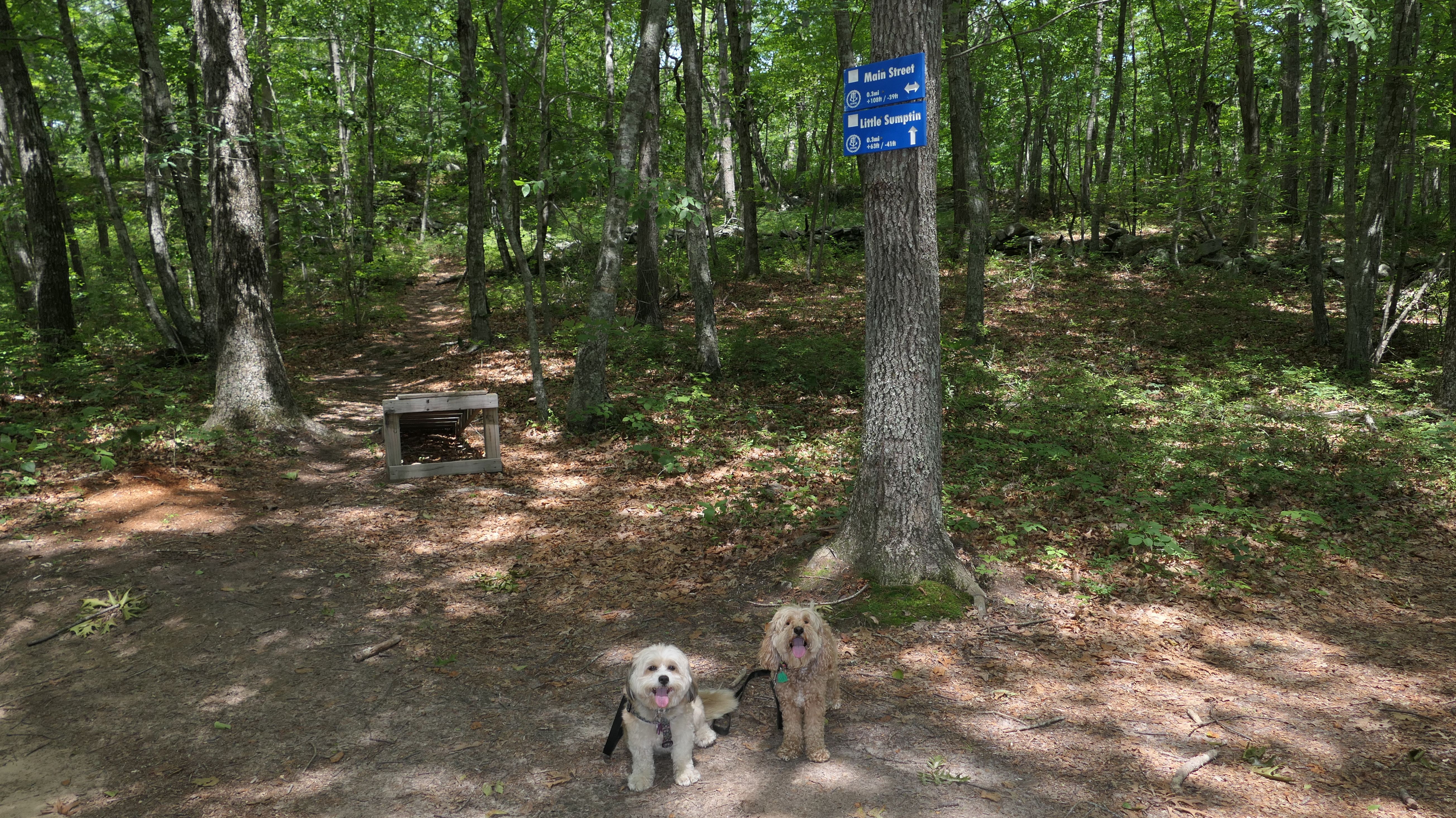 Hunting seems to be huge in this state and this is one of many management areas in Rhode Island. I think the hunting season goes for nine months of the year in Rhode Island. We visited outside of hunting season, but could still here gun fire off in the distance. Aside from hunting, this is a popular area for mountain bikes. Many of the trails here are geared toward mountain biking. As for our hike, we hiked a 2.5 mile loop trail that wasn't very interesting. I was hoping the pond I saw on the map would be better, and that maybe the dogs could cool off in it, but it was more of a swamp than a pond and pretty mucky. The trail was an okay walk in the woods, but not particularly memorable.