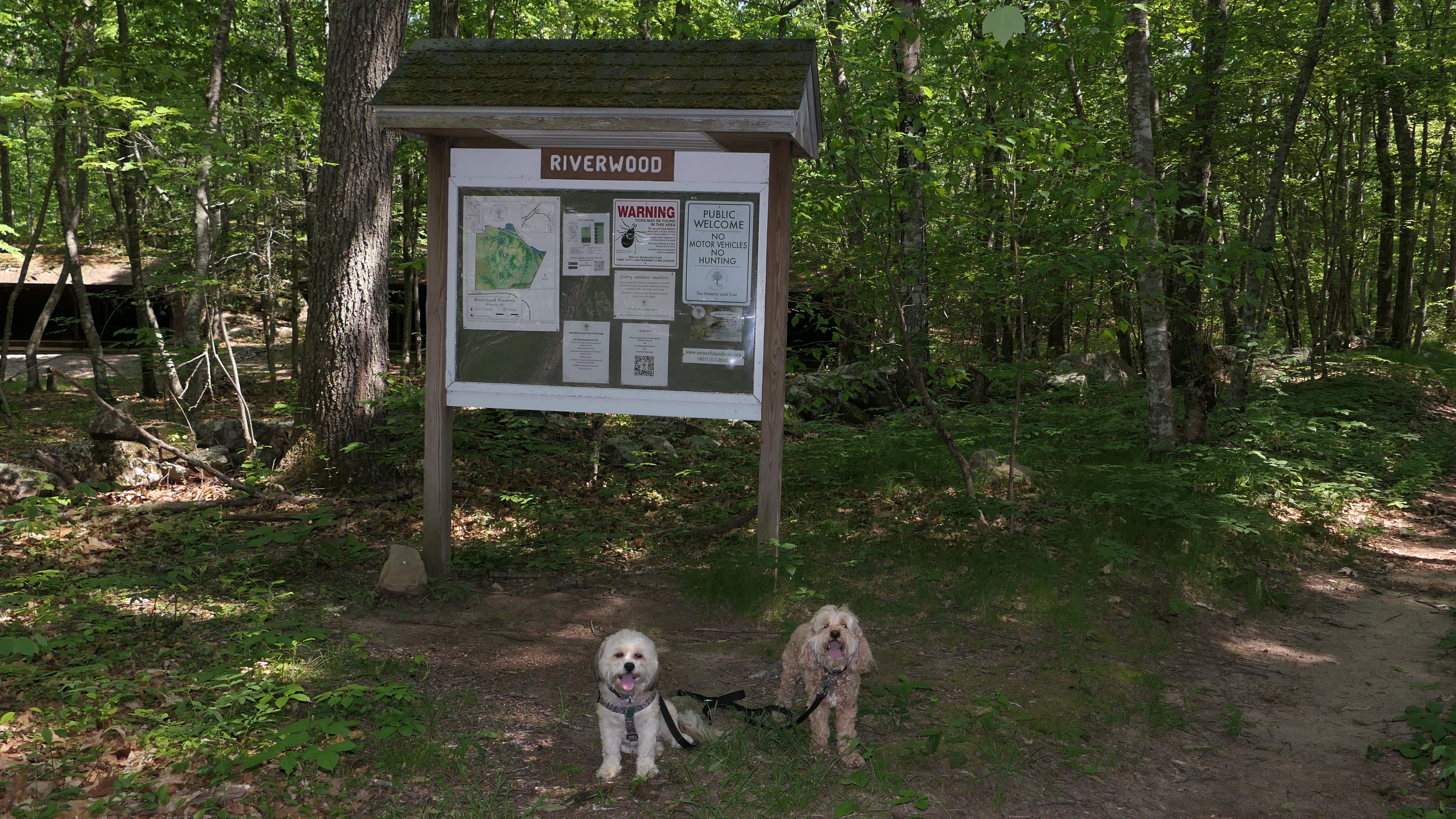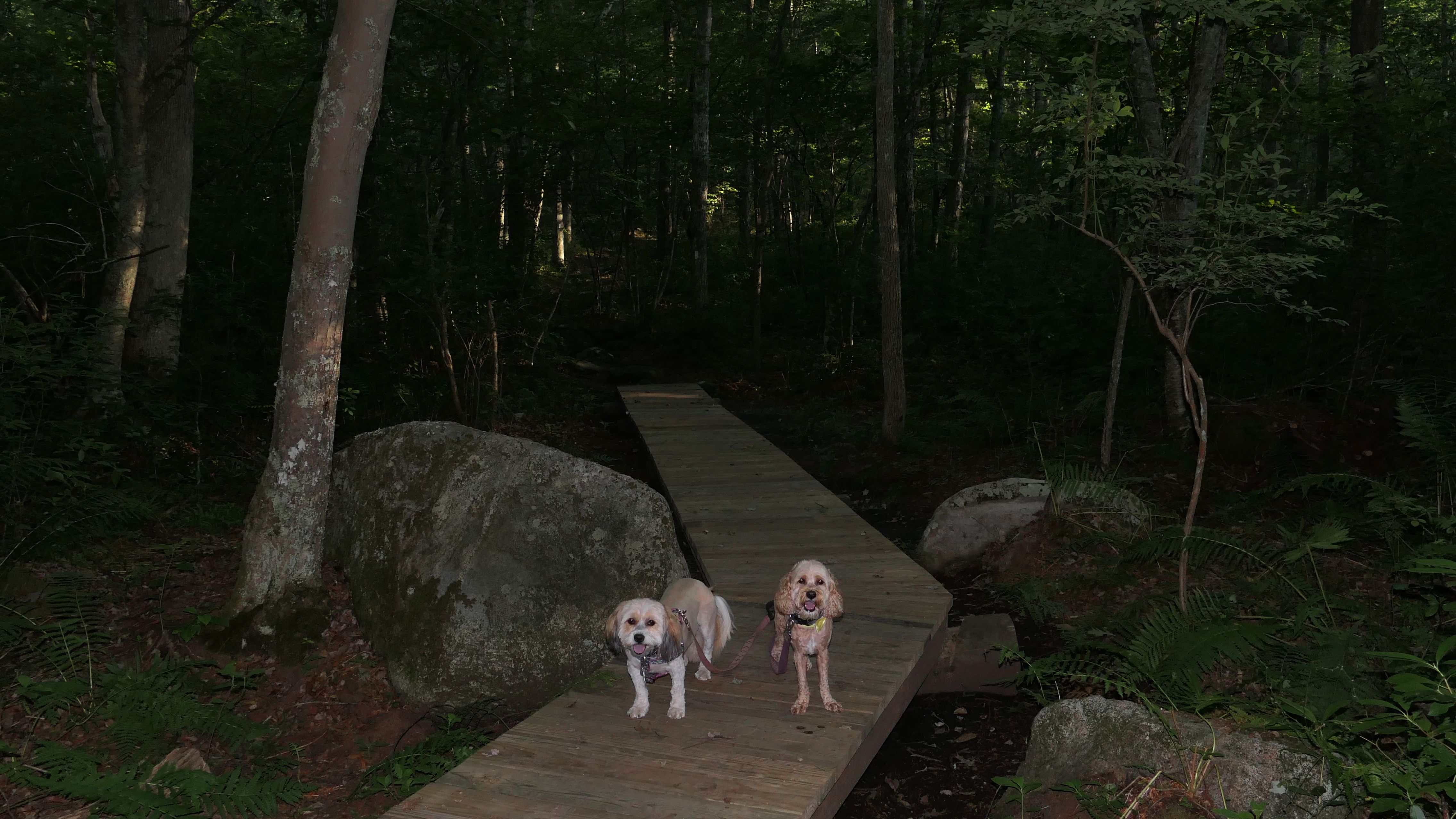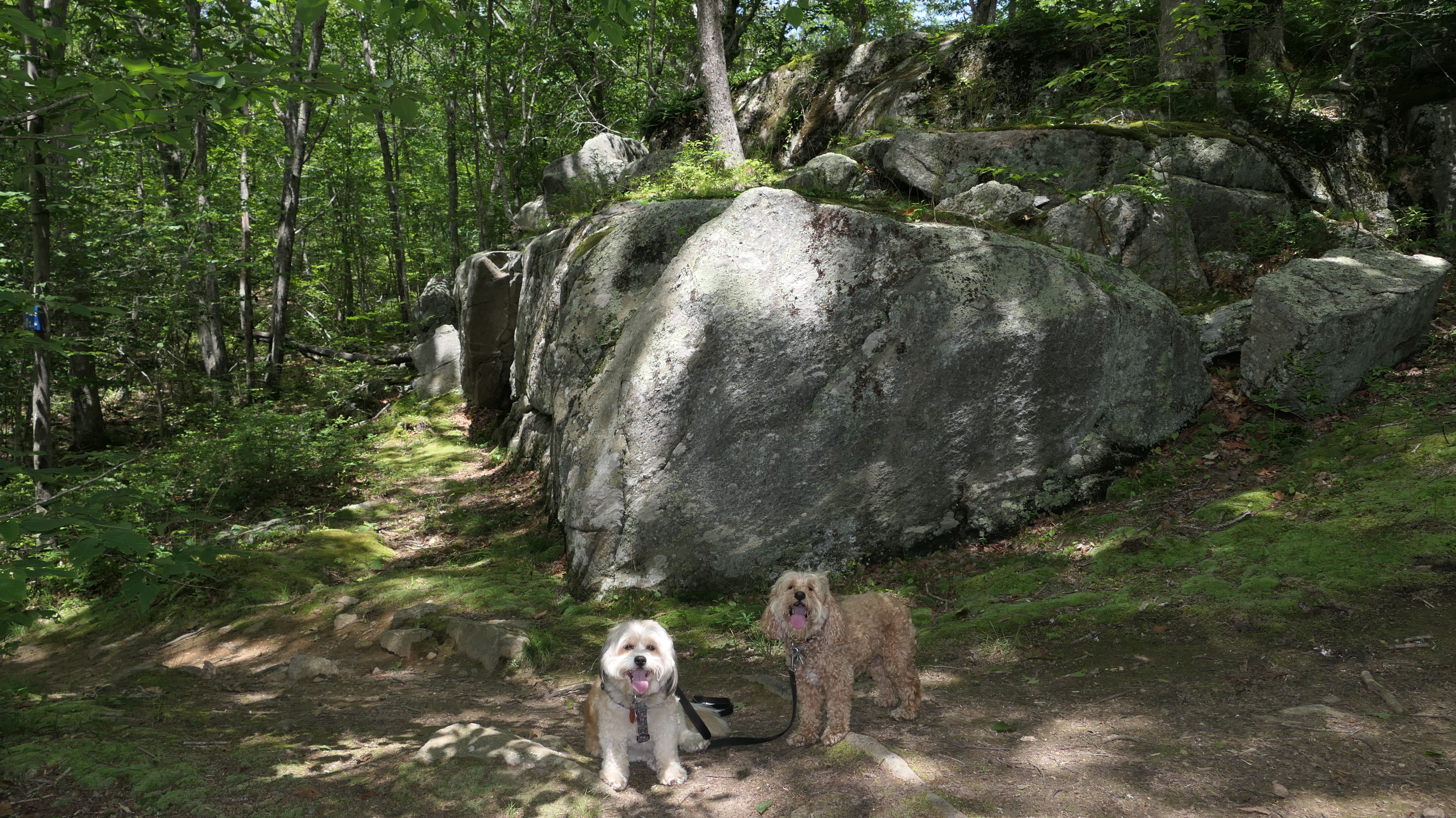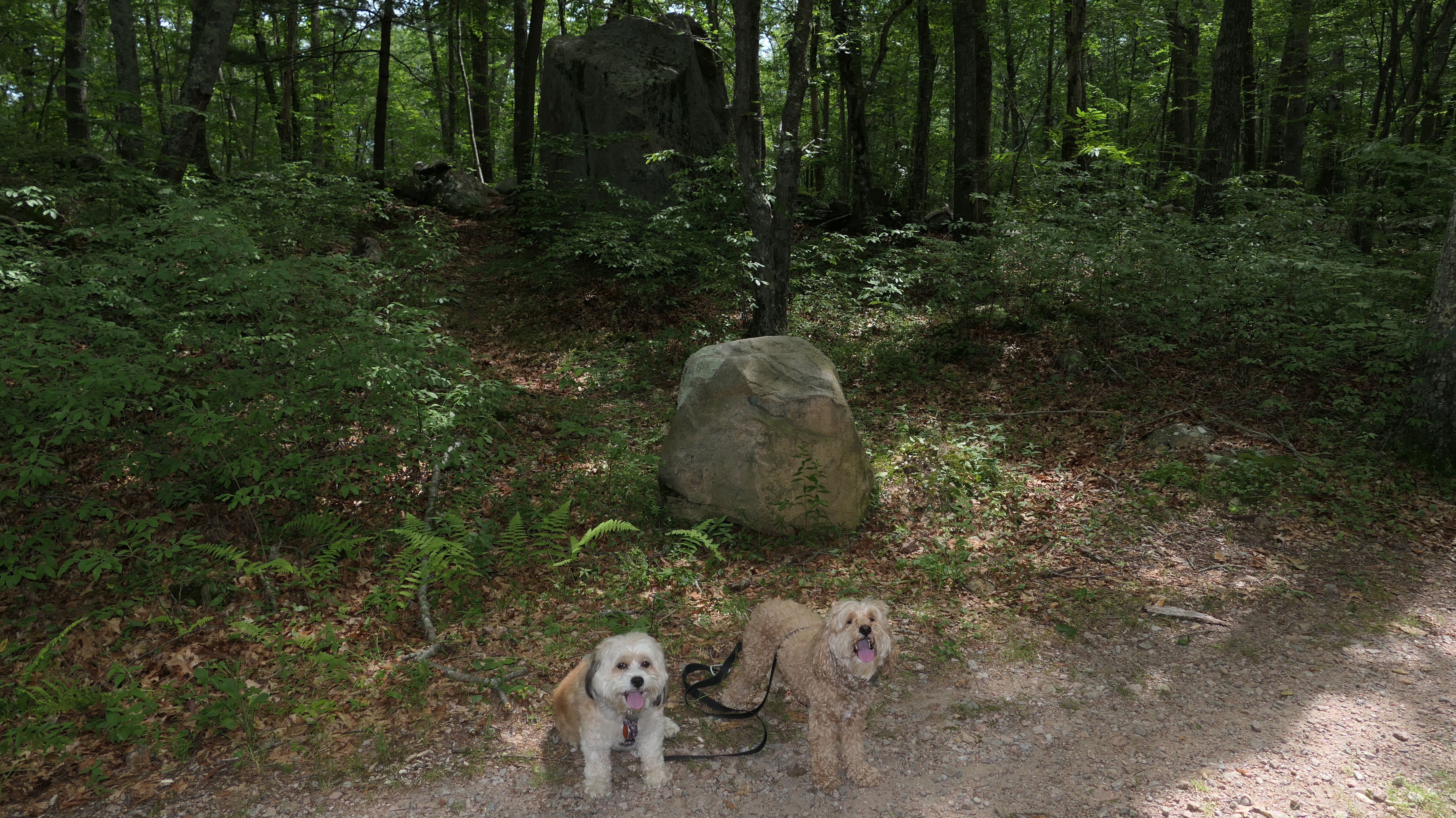 Hunting seems to be huge in this state and this is one of many management areas in Rhode Island. I think the hunting season goes for nine months of the year in Rhode Island. We visited outside of hunting season, but could still here gun fire off in the distance. Aside from hunting, this is a popular area for mountain bikes. Many of the trails here are geared toward mountain biking. As for our hike, we hiked a 2.5 mile loop trail that wasn't very interesting. I was hoping the pond I saw on the map would be better, and that maybe the dogs could cool off in it, but it was more of a swamp than a pond and pretty mucky. The trail was an okay walk in the woods, but not particularly memorable.