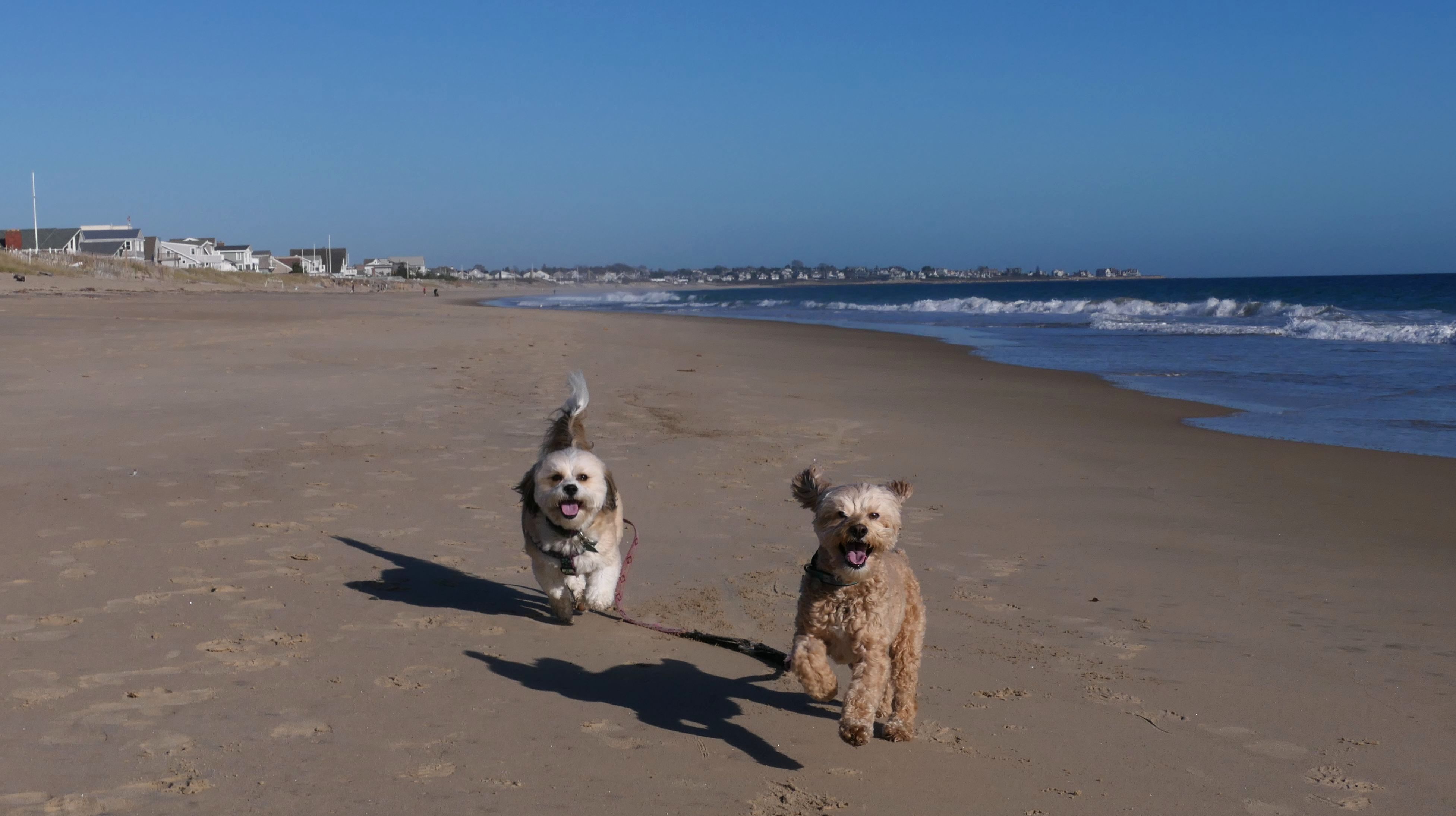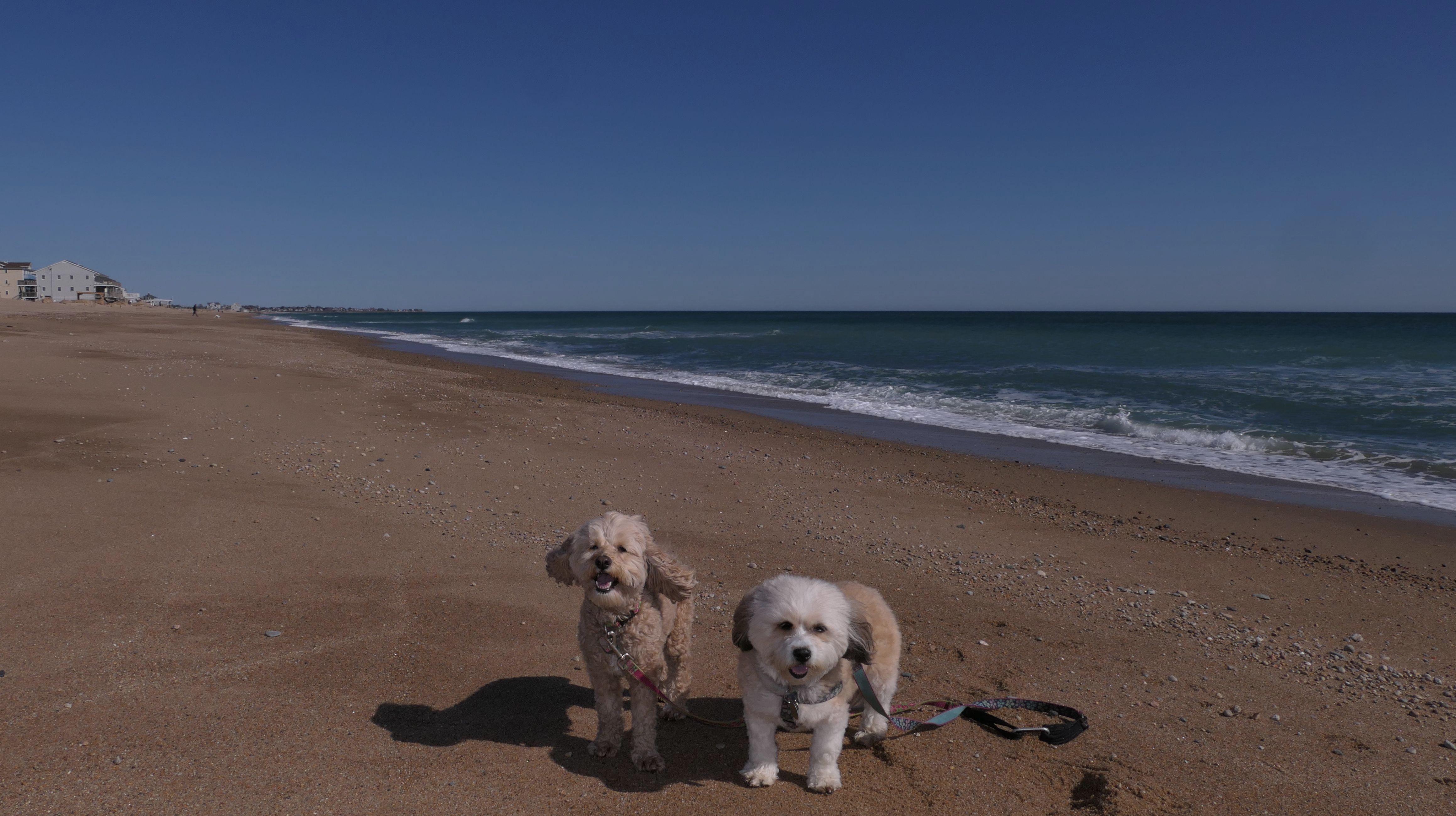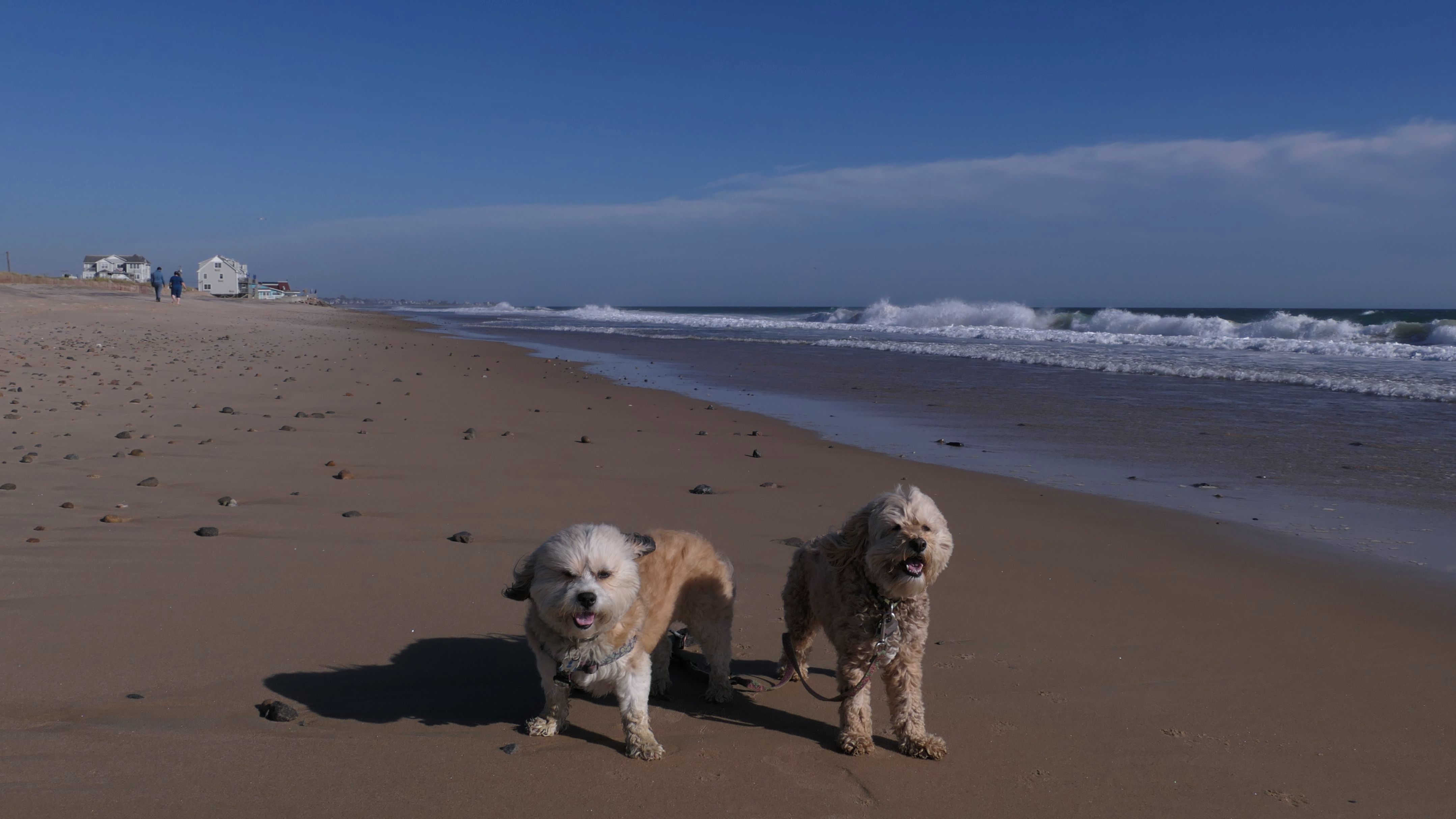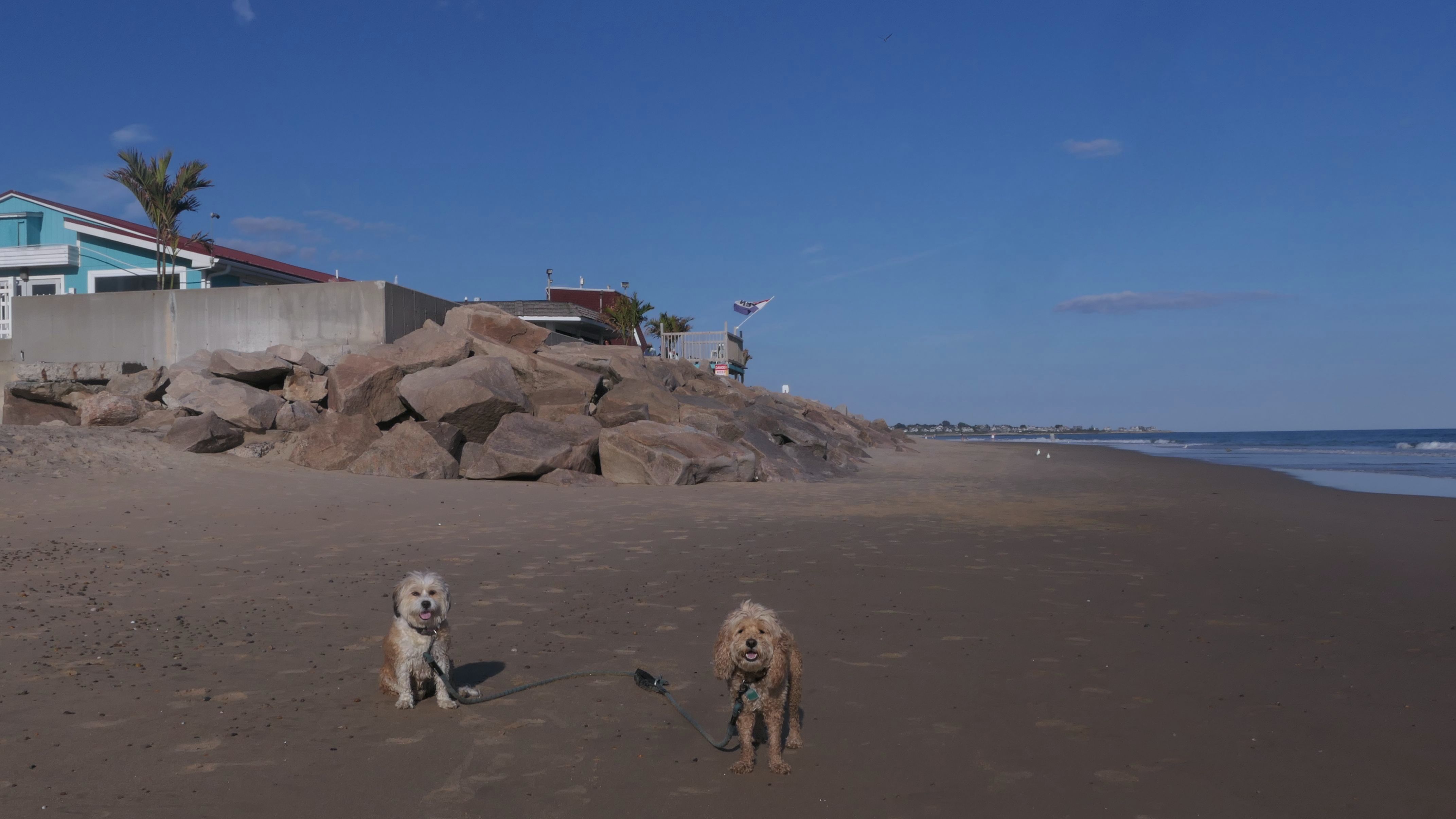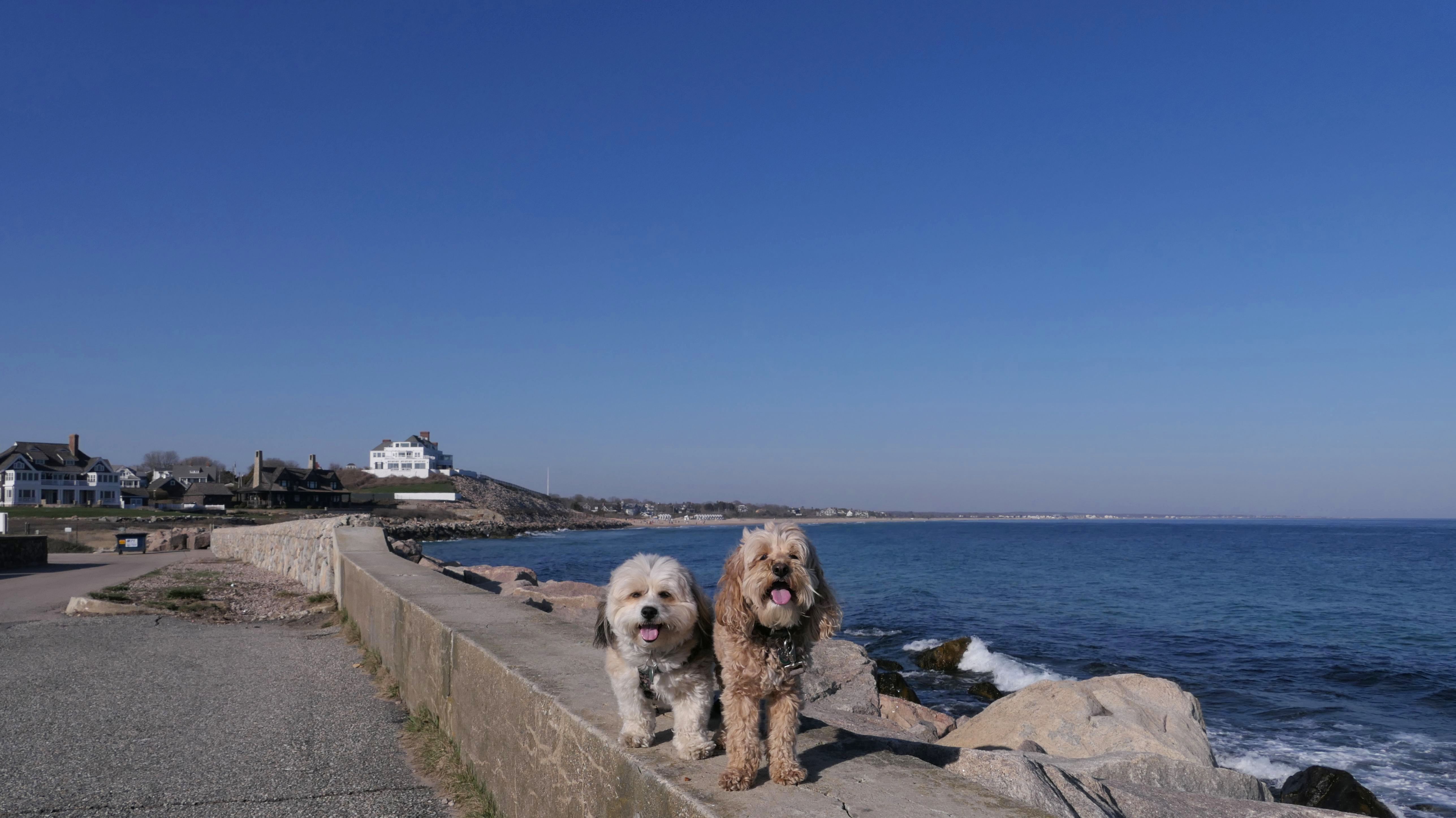We had record temperatures inland, approaching the mid-80's, so we of course went to a beach! I didn't feel like driving to New Jersey for the 3rd straight day, so we made a return visit to Misquamicut. It wasn't as warm here, probably low to mid 70's, but very breezy. I suspect the wind kept people away. We explored some of the surrounding area before walking the beach. The waves were really ripping here. Mandy kept trying to walk in the water, but Lexi would pull her away. It was a fun adventure, despite the windy conditions.