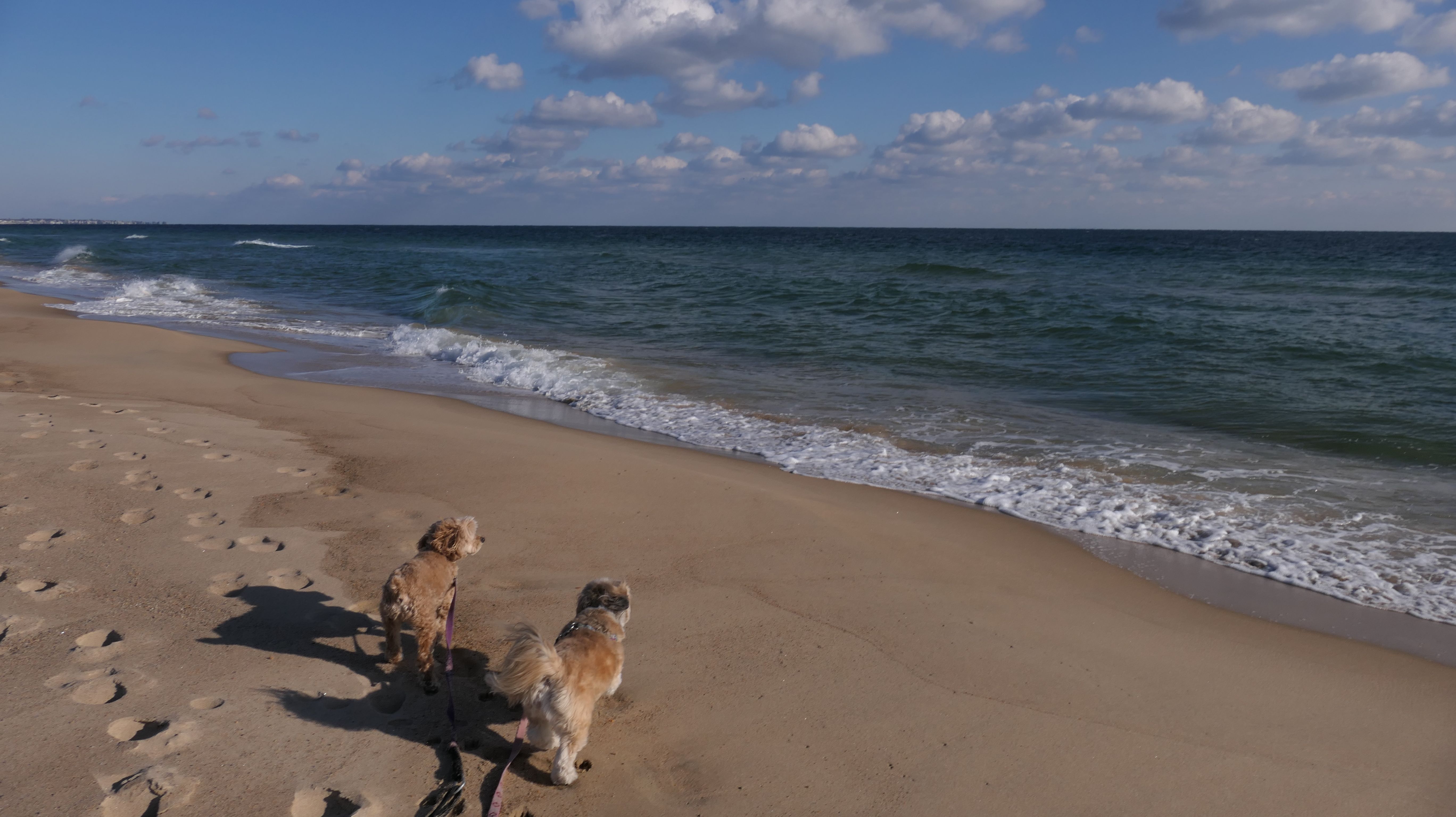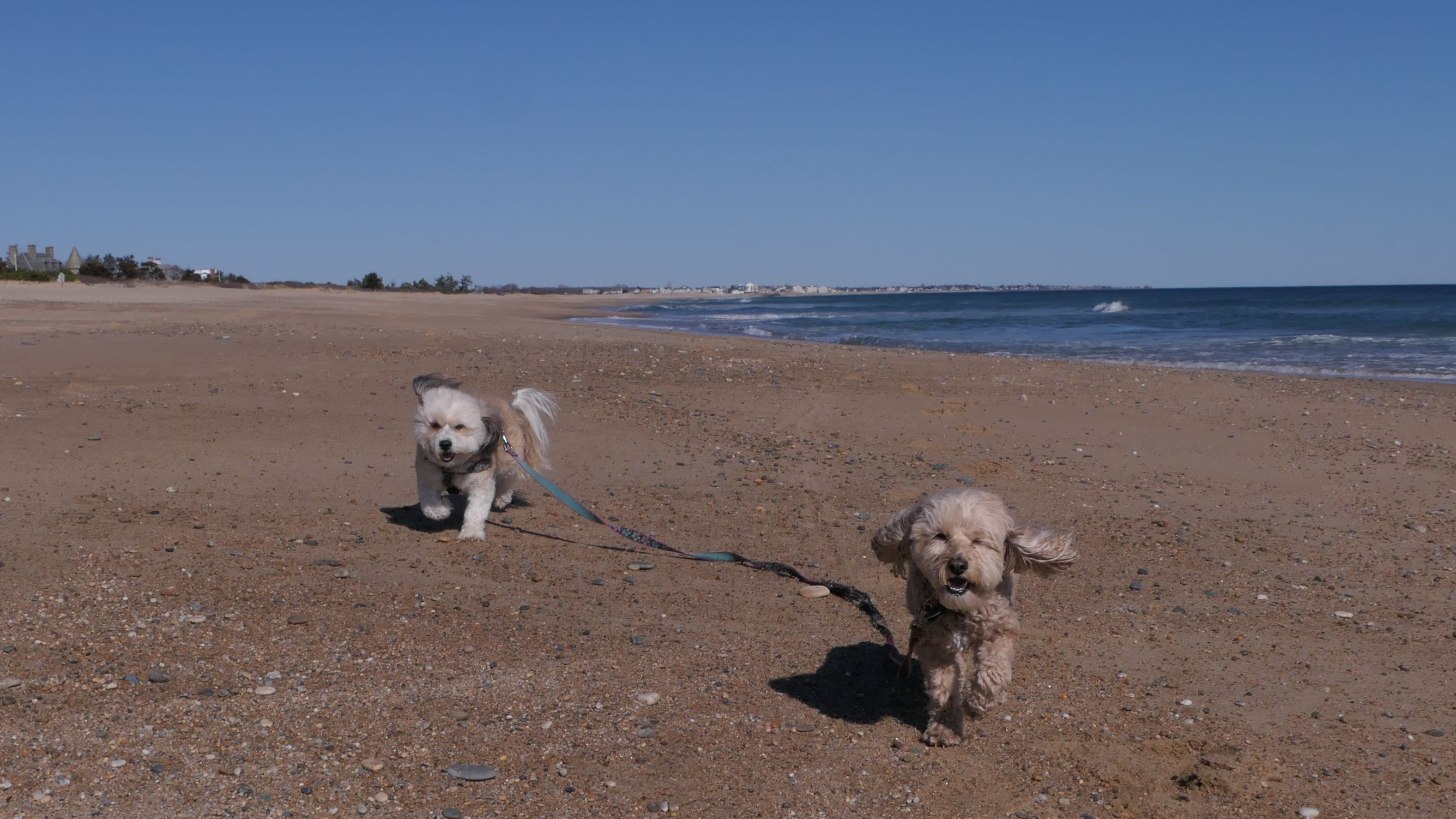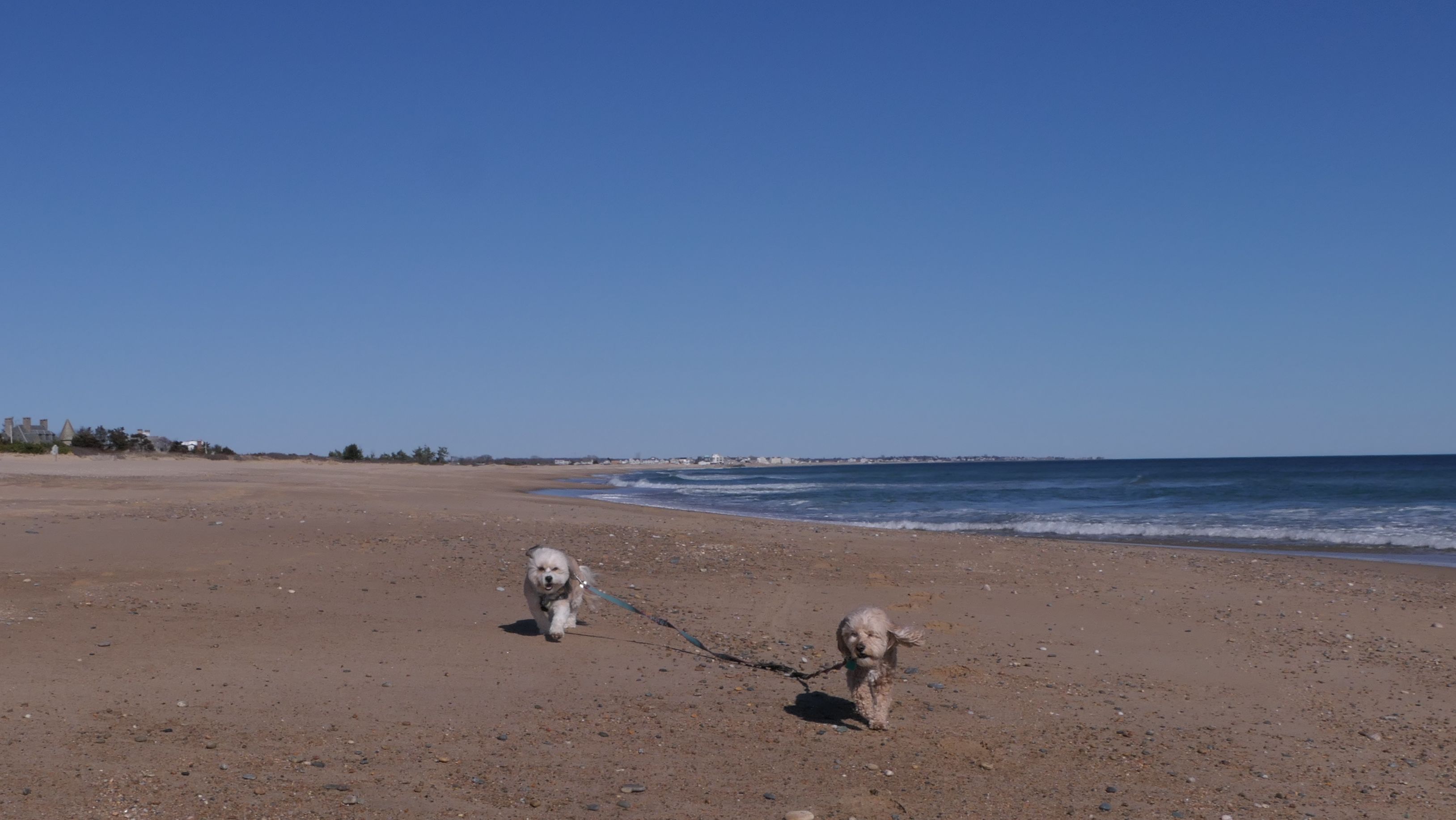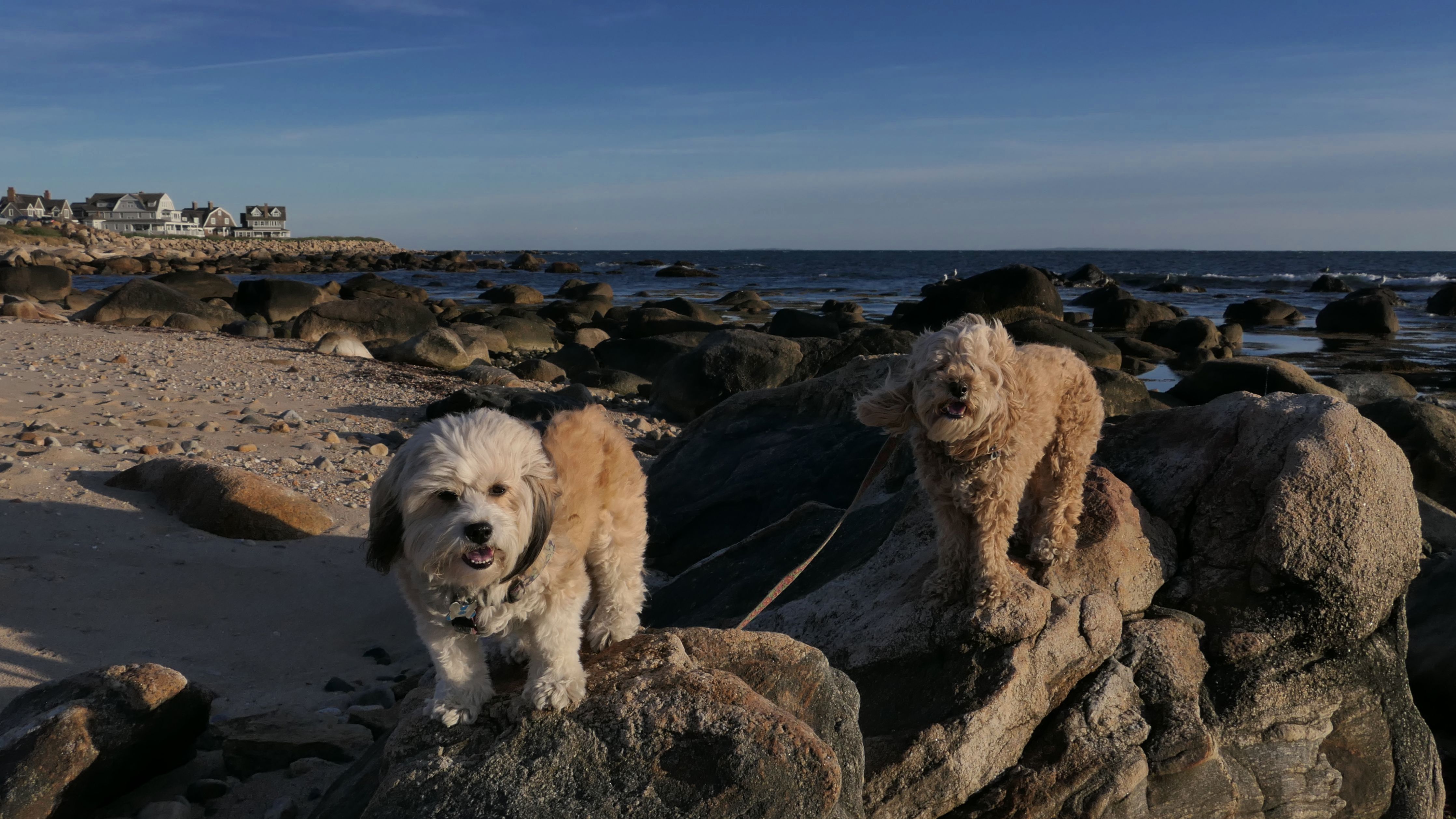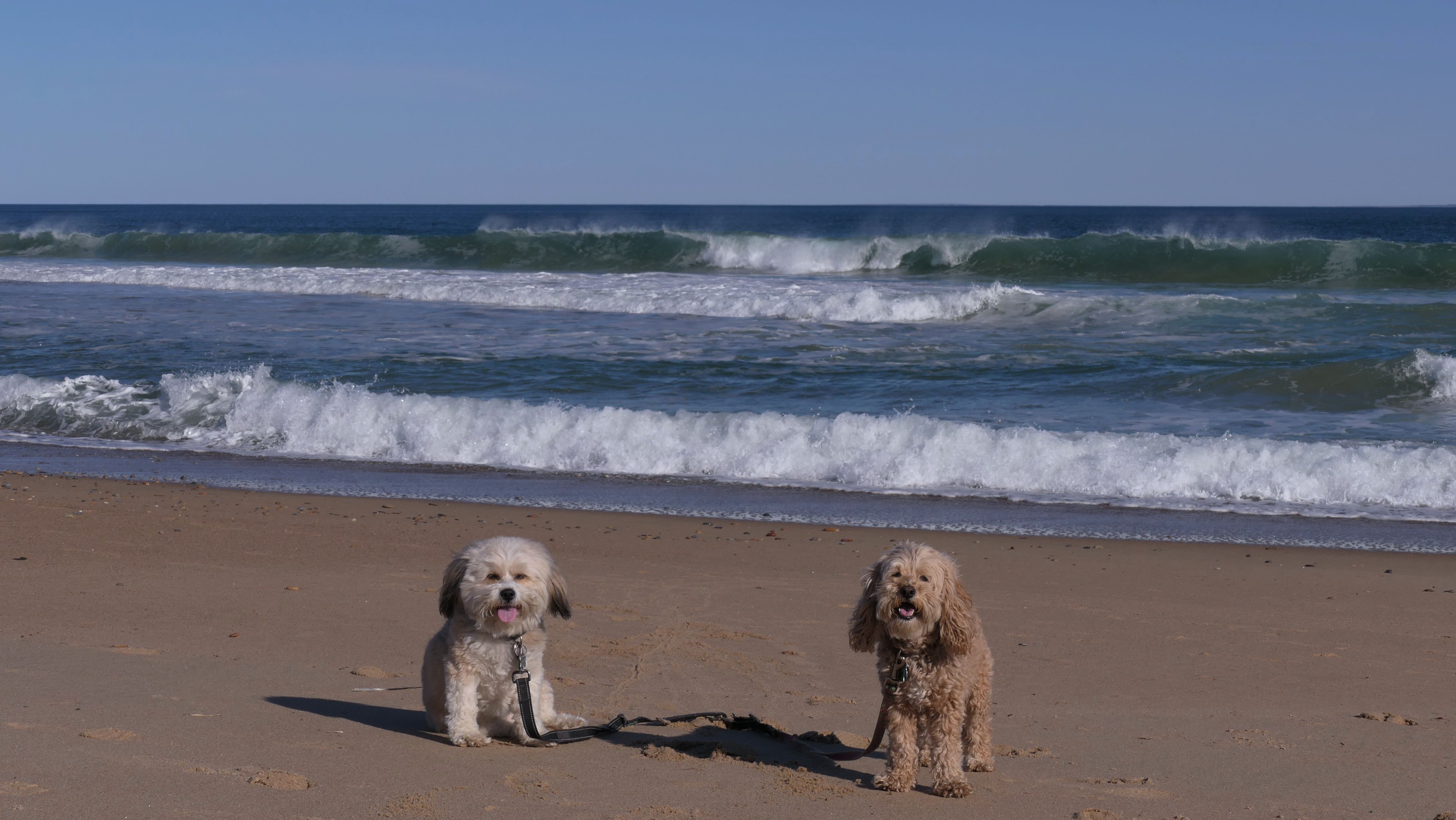 We had record temperatures inland, approaching the mid-80's, so we of course went to a beach! I didn't feel like driving to New Jersey for the 3rd straight day, so we made a return visit to Misquamicut. It wasn't as warm here, probably low to mid 70's, but very breezy. I suspect the wind kept people away. We explored some of the surrounding area before walking the beach. The waves were really ripping here. Mandy kept trying to walk in the water, but Lexi would pull her away. It was a fun adventure, despite the windy conditions.