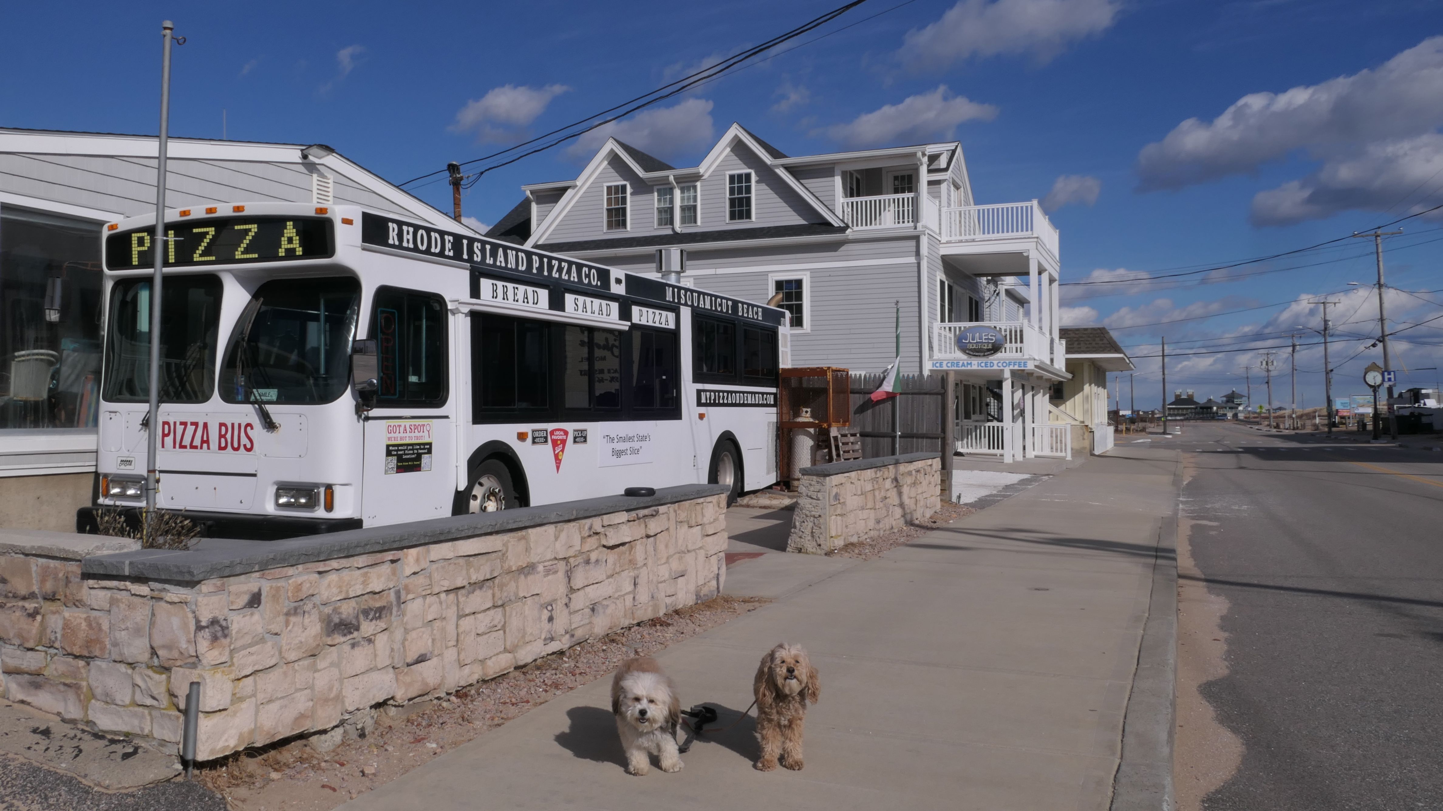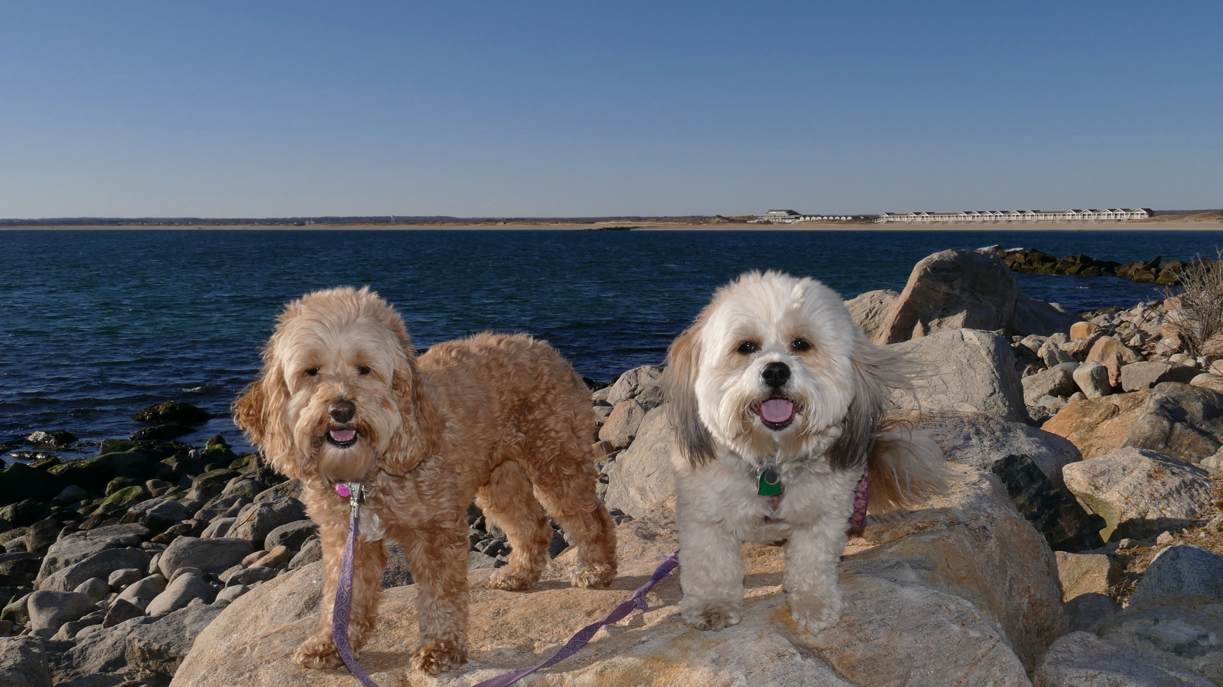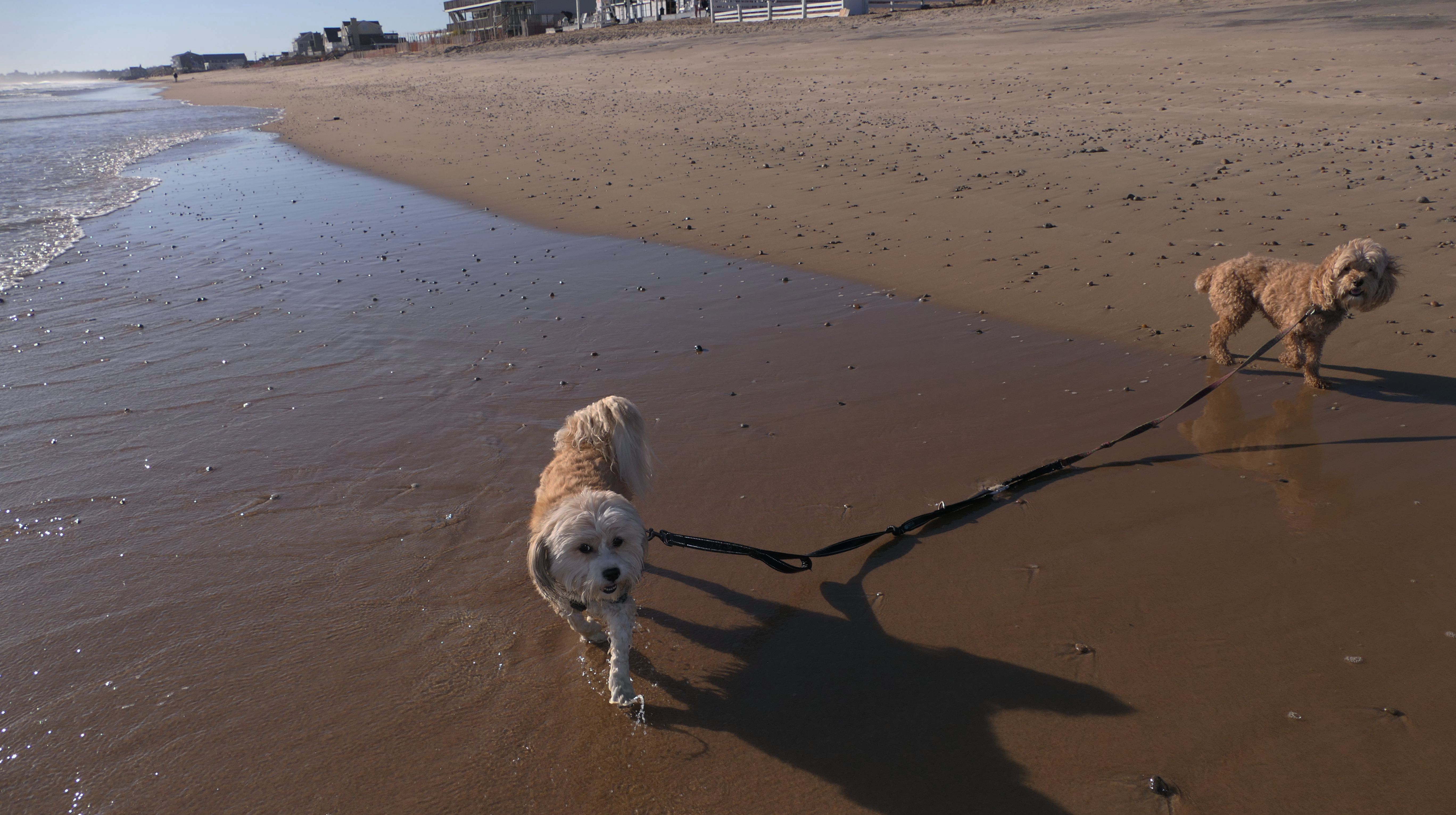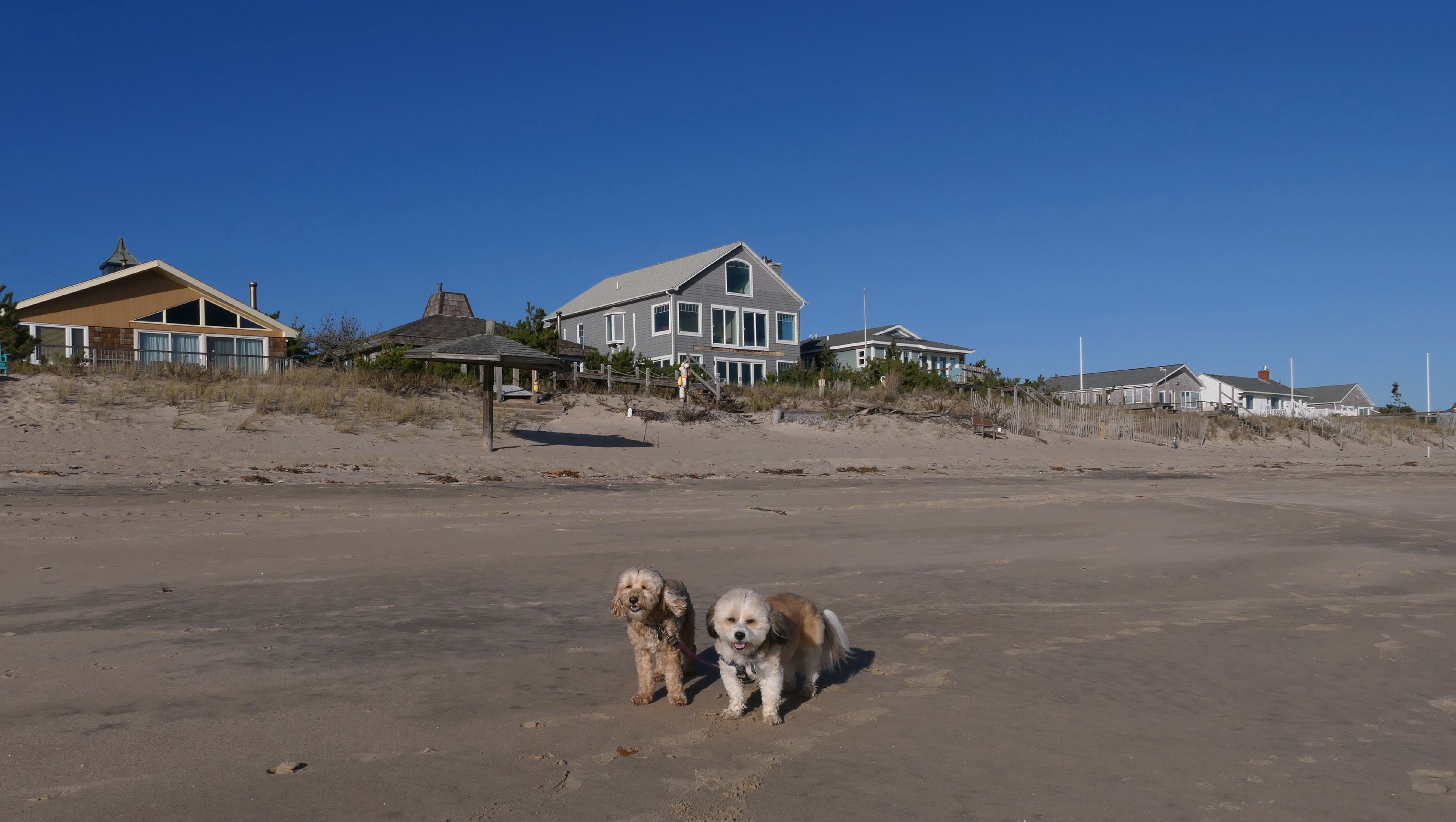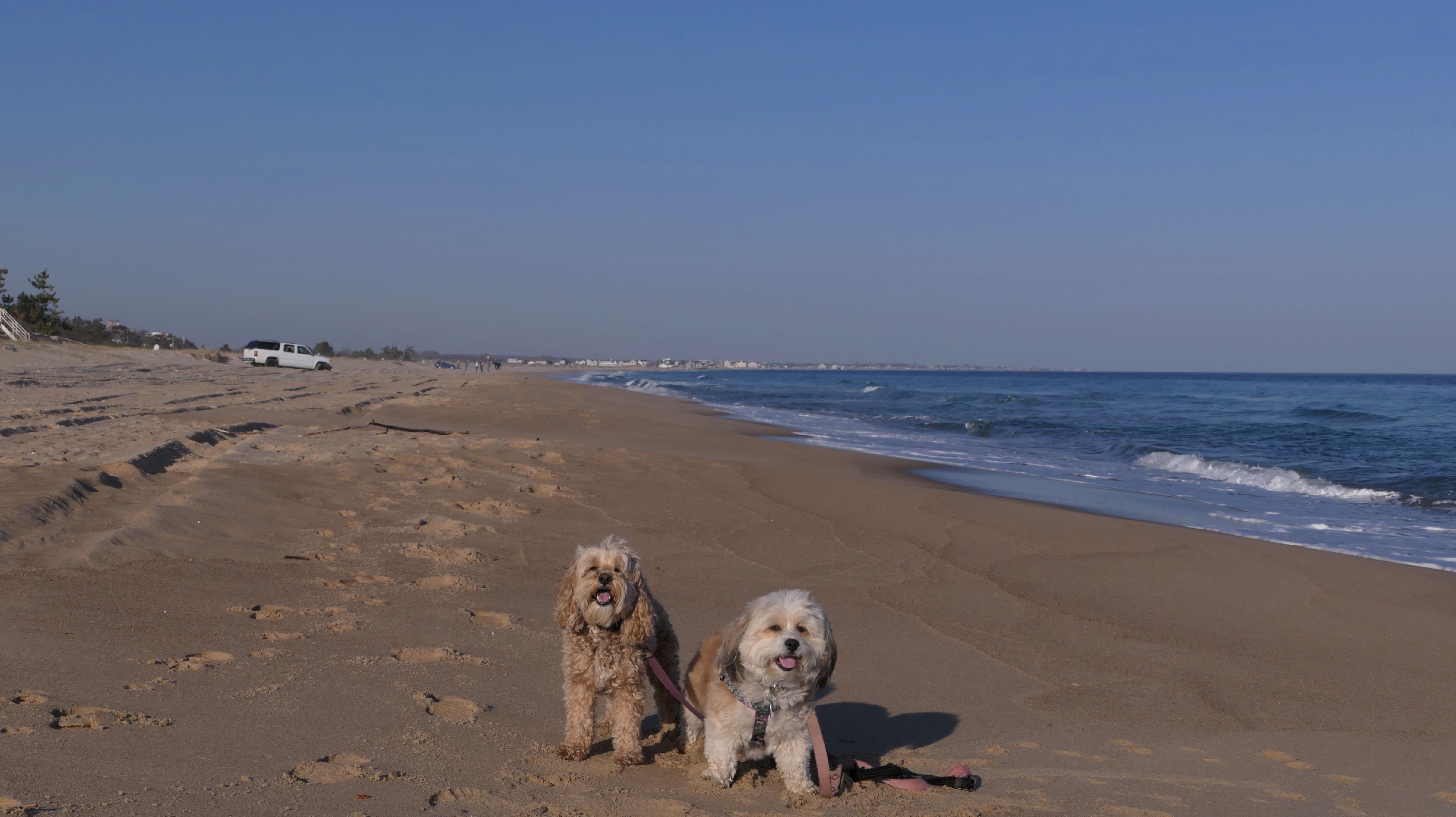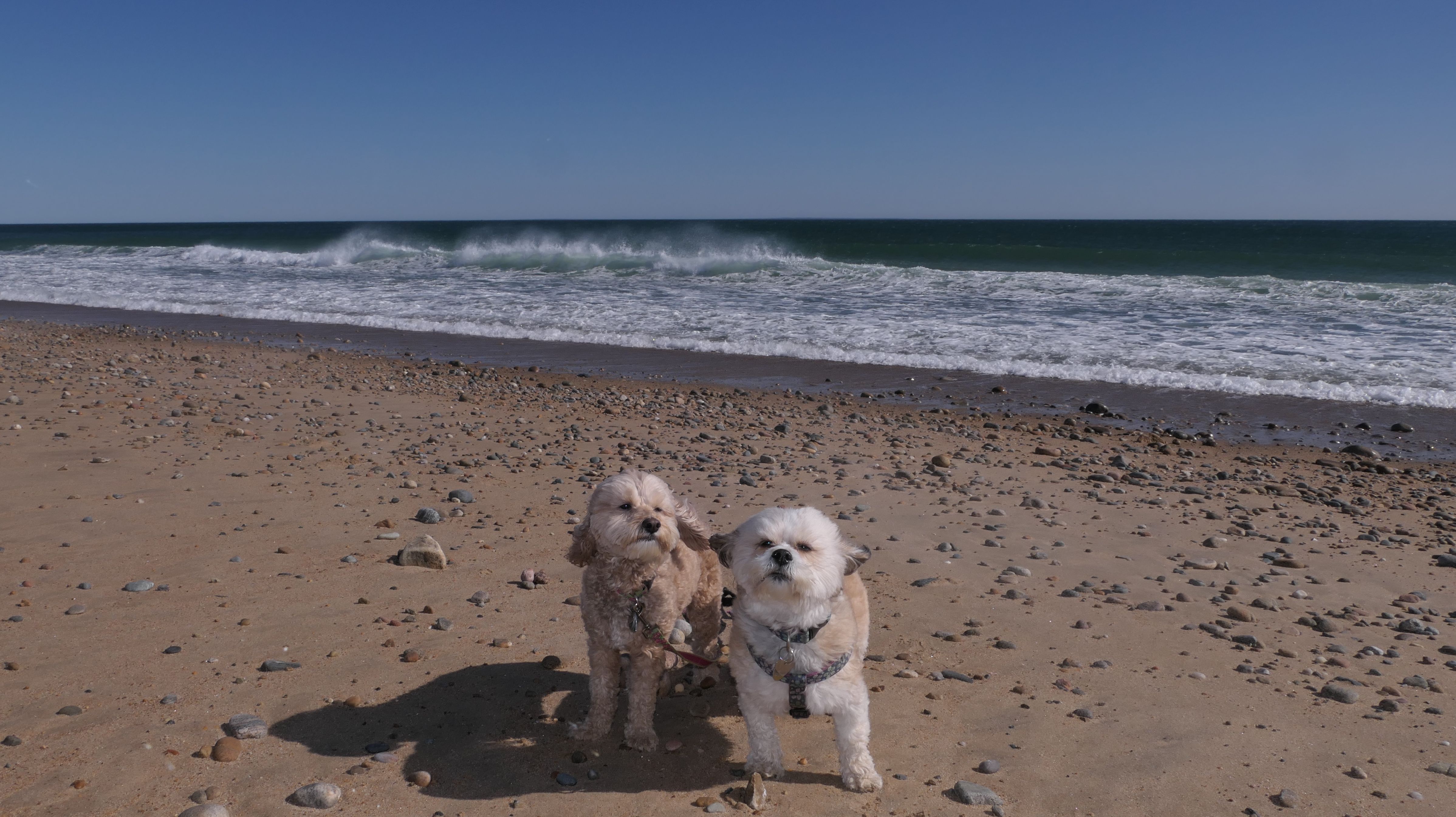 We had record temperatures inland, approaching the mid-80's, so we of course went to a beach! I didn't feel like driving to New Jersey for the 3rd straight day, so we made a return visit to Misquamicut. It wasn't as warm here, probably low to mid 70's, but very breezy. I suspect the wind kept people away. We explored some of the surrounding area before walking the beach. The waves were really ripping here. Mandy kept trying to walk in the water, but Lexi would pull her away. It was a fun adventure, despite the windy conditions.
