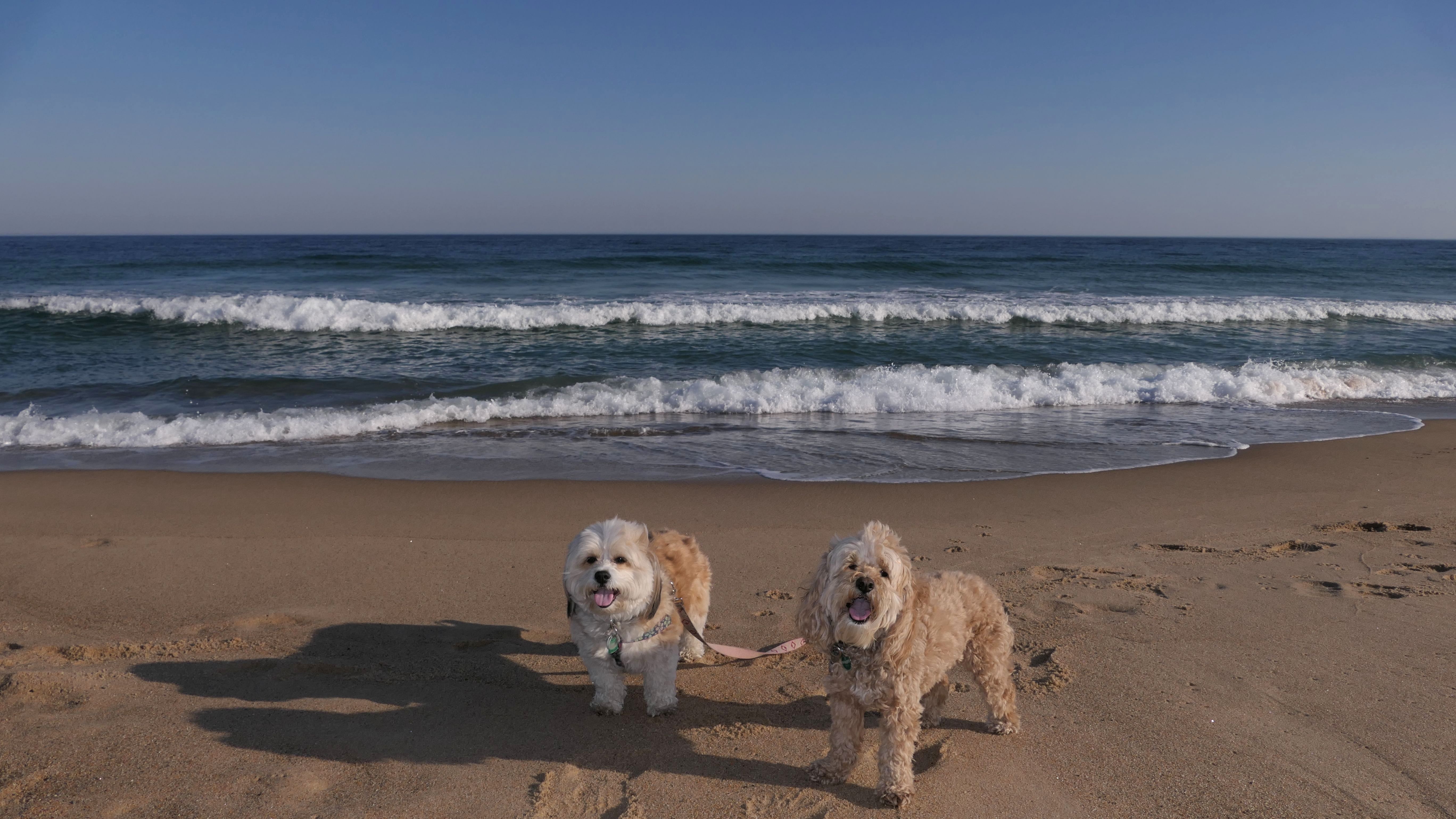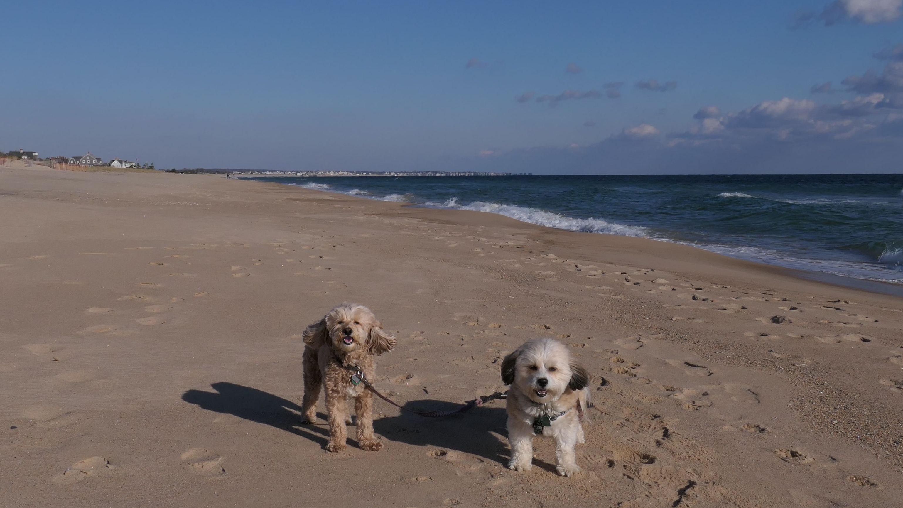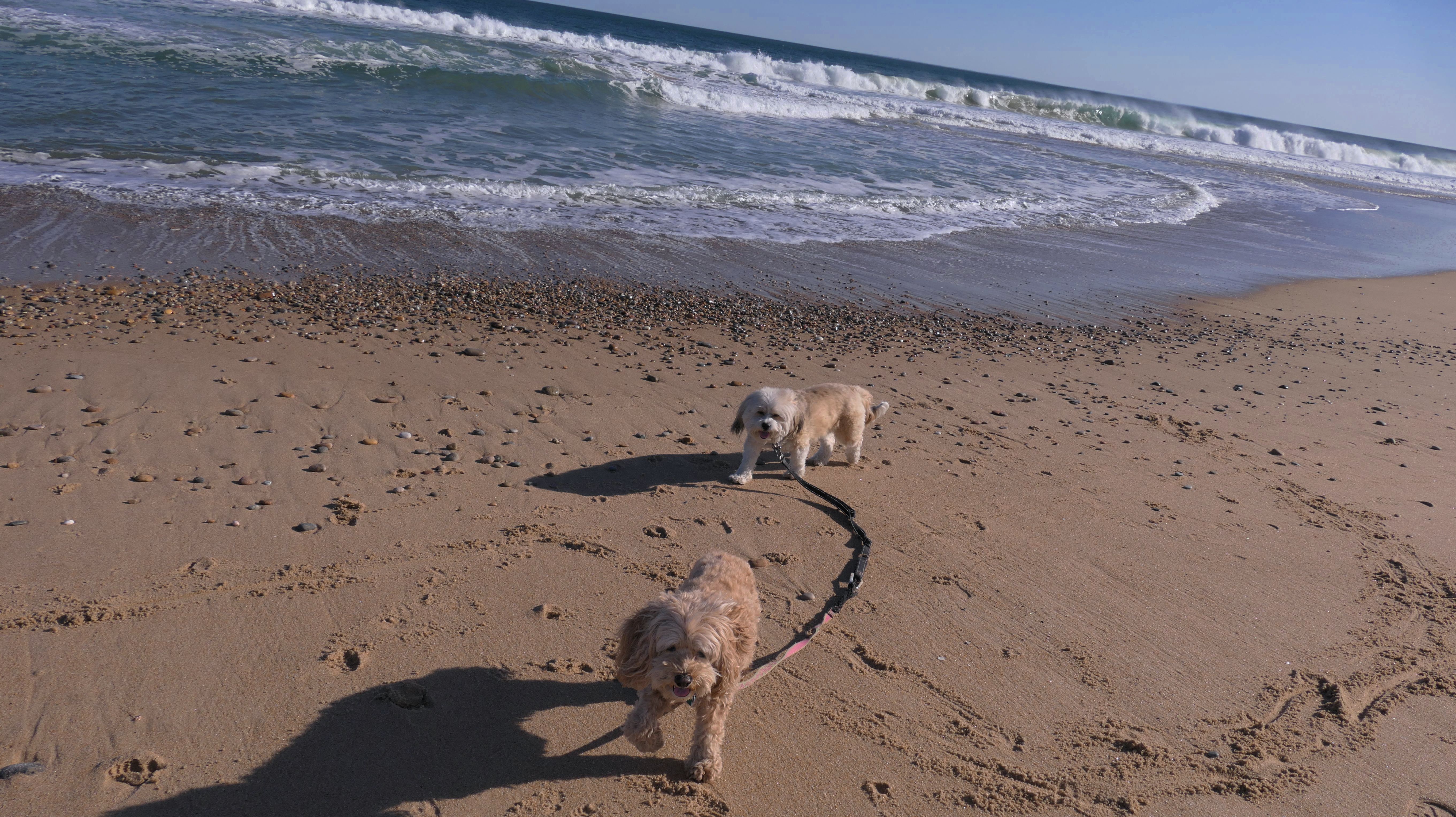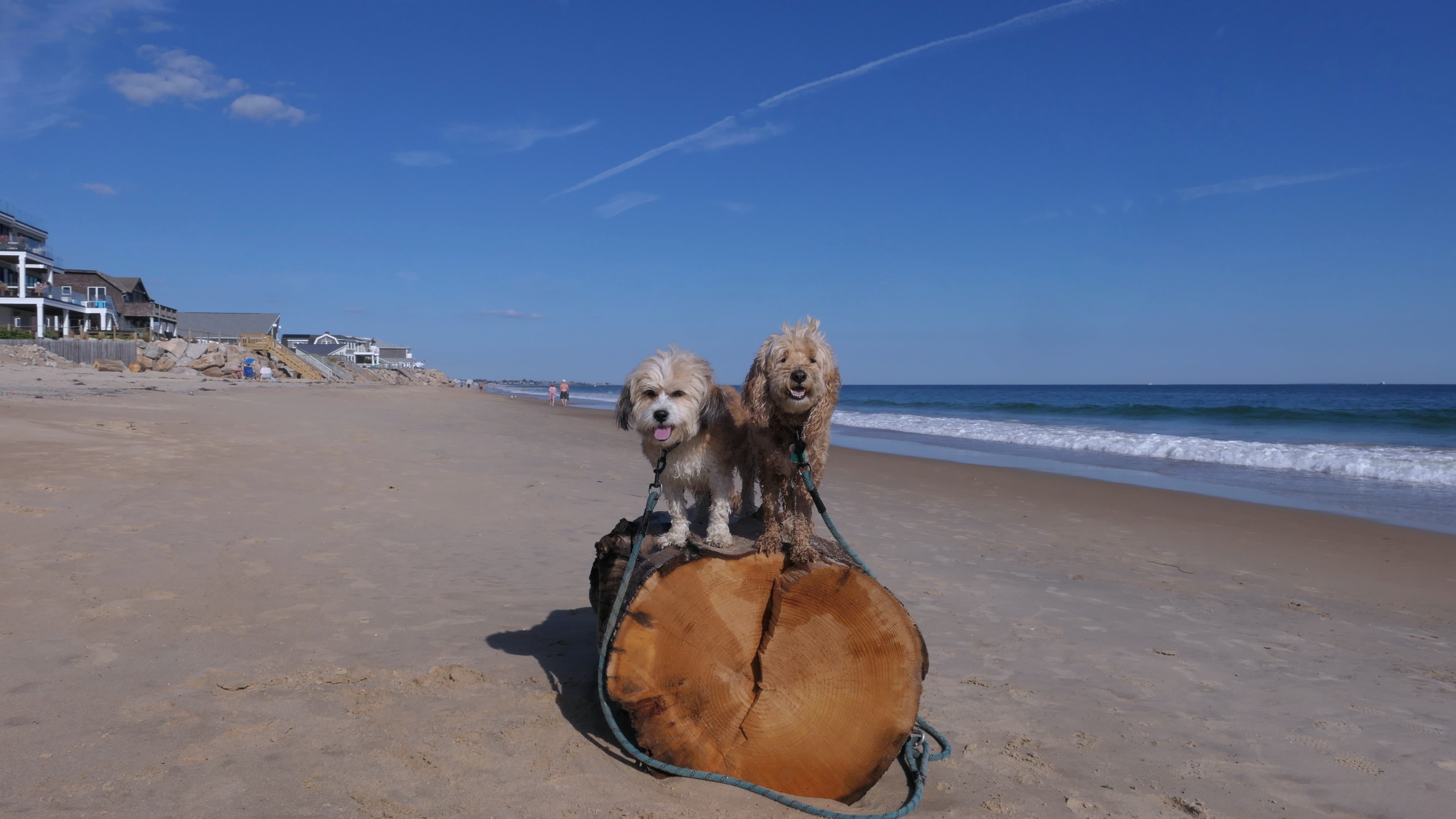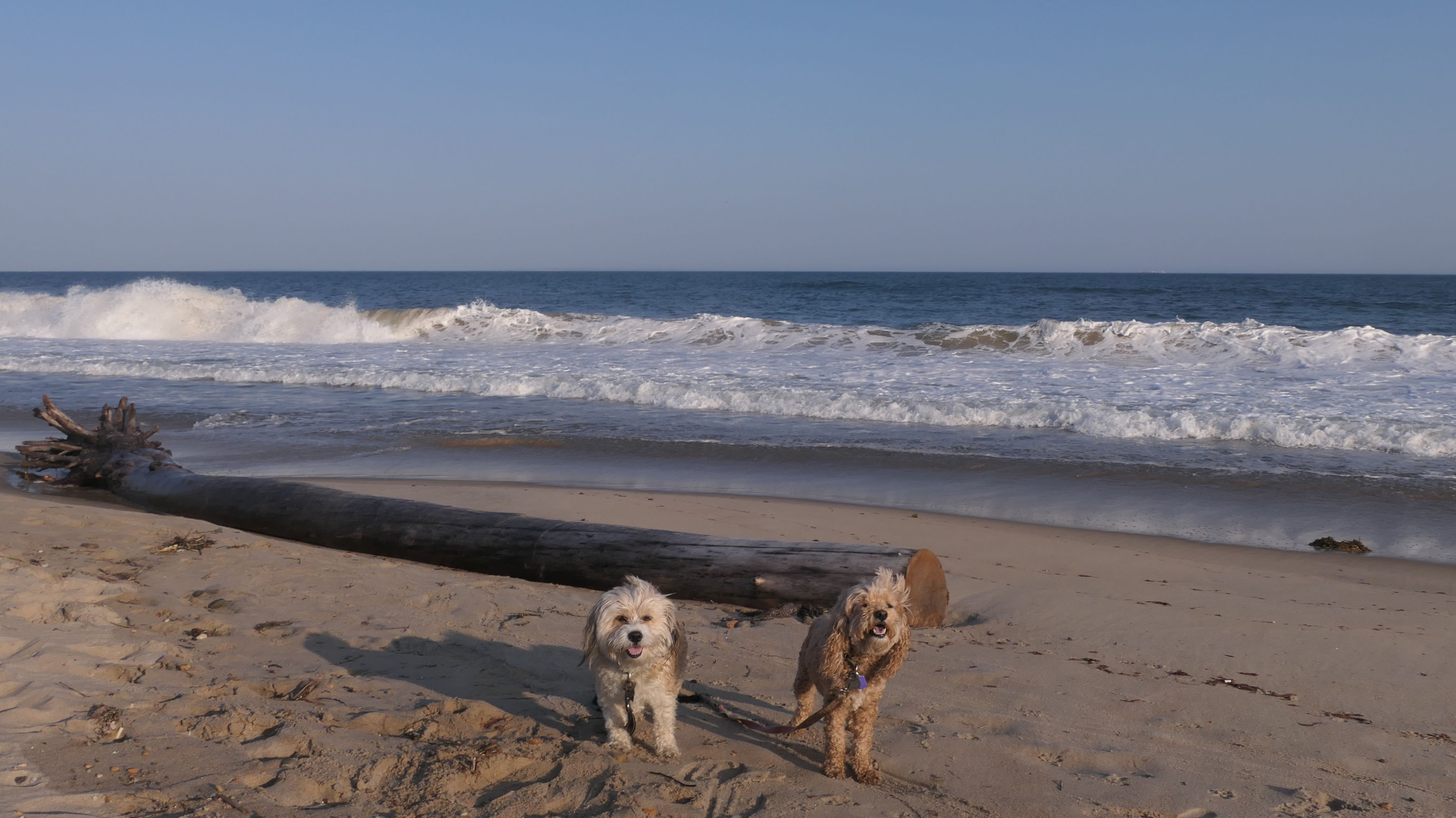 We had record temperatures inland, approaching the mid-80's, so we of course went to a beach! I didn't feel like driving to New Jersey for the 3rd straight day, so we made a return visit to Misquamicut. It wasn't as warm here, probably low to mid 70's, but very breezy. I suspect the wind kept people away. We explored some of the surrounding area before walking the beach. The waves were really ripping here. Mandy kept trying to walk in the water, but Lexi would pull her away. It was a fun adventure, despite the windy conditions.