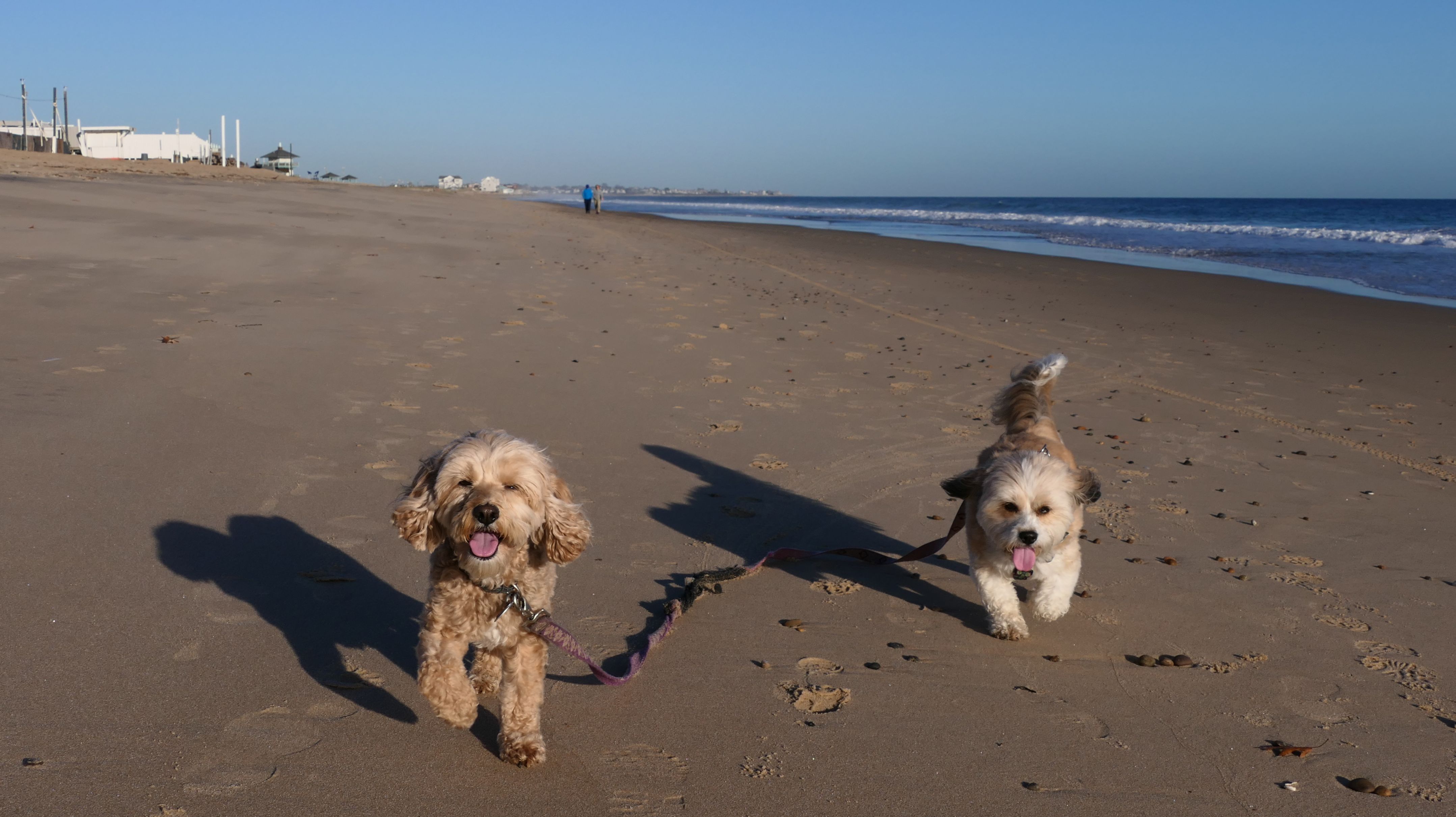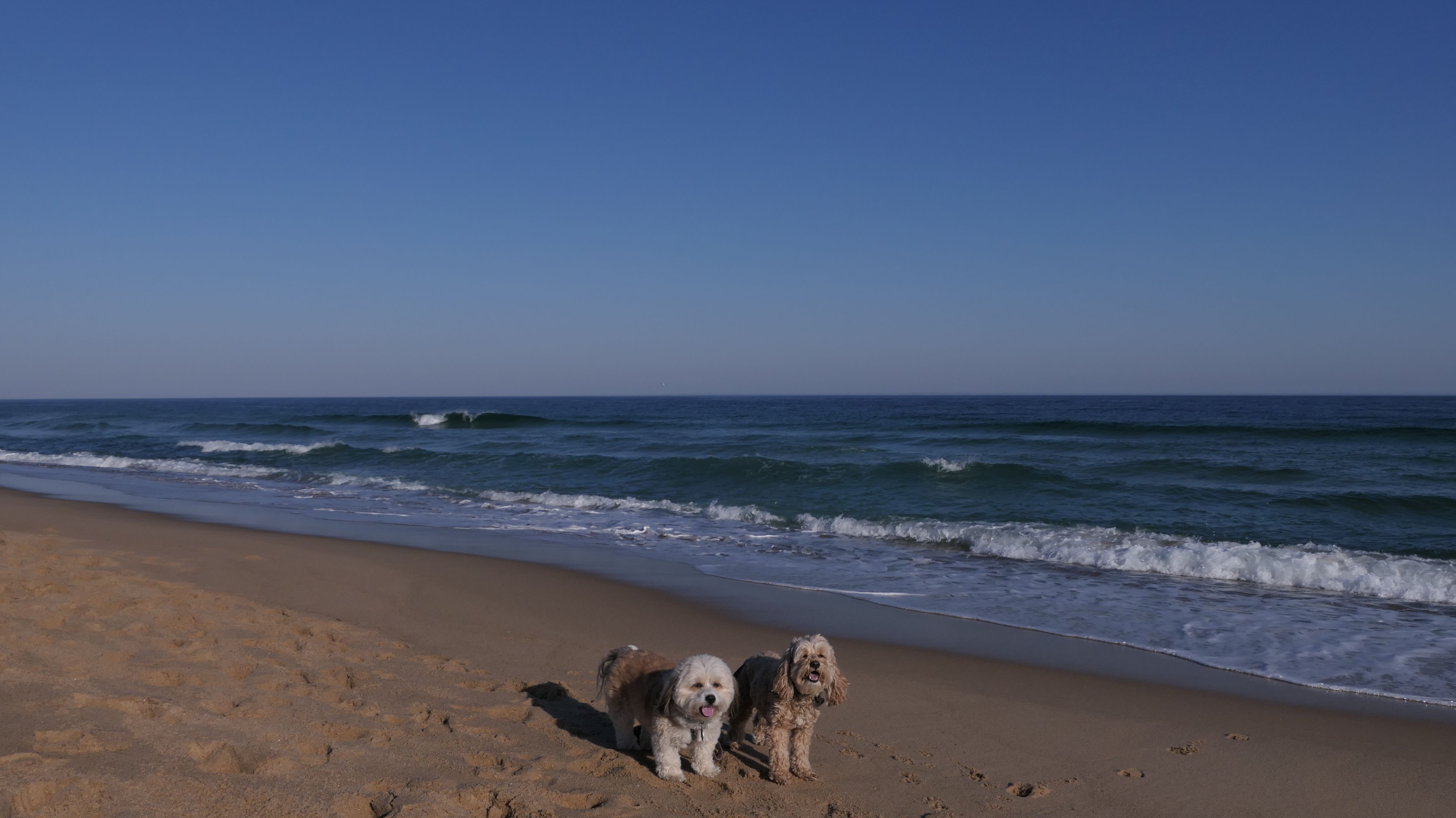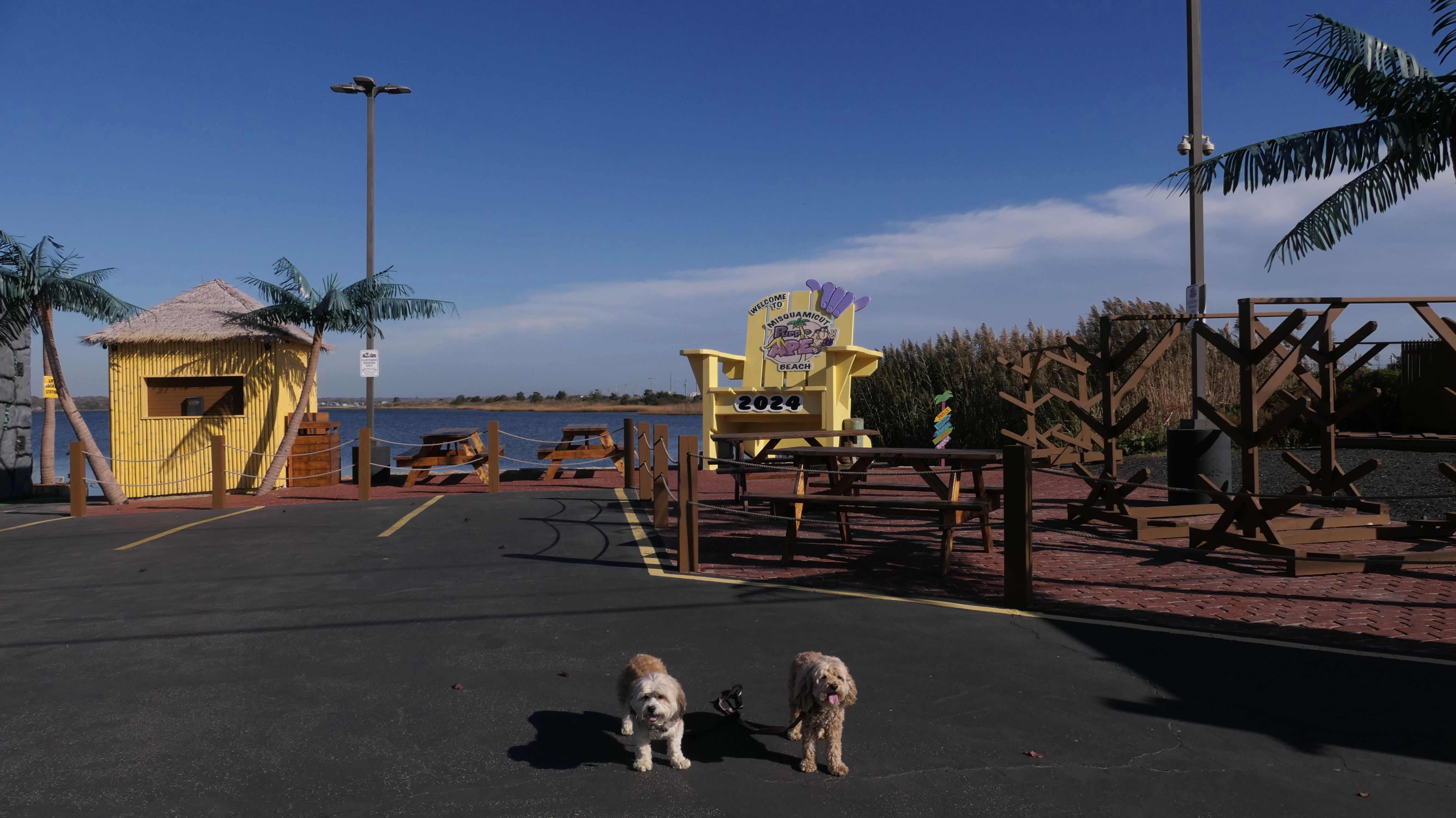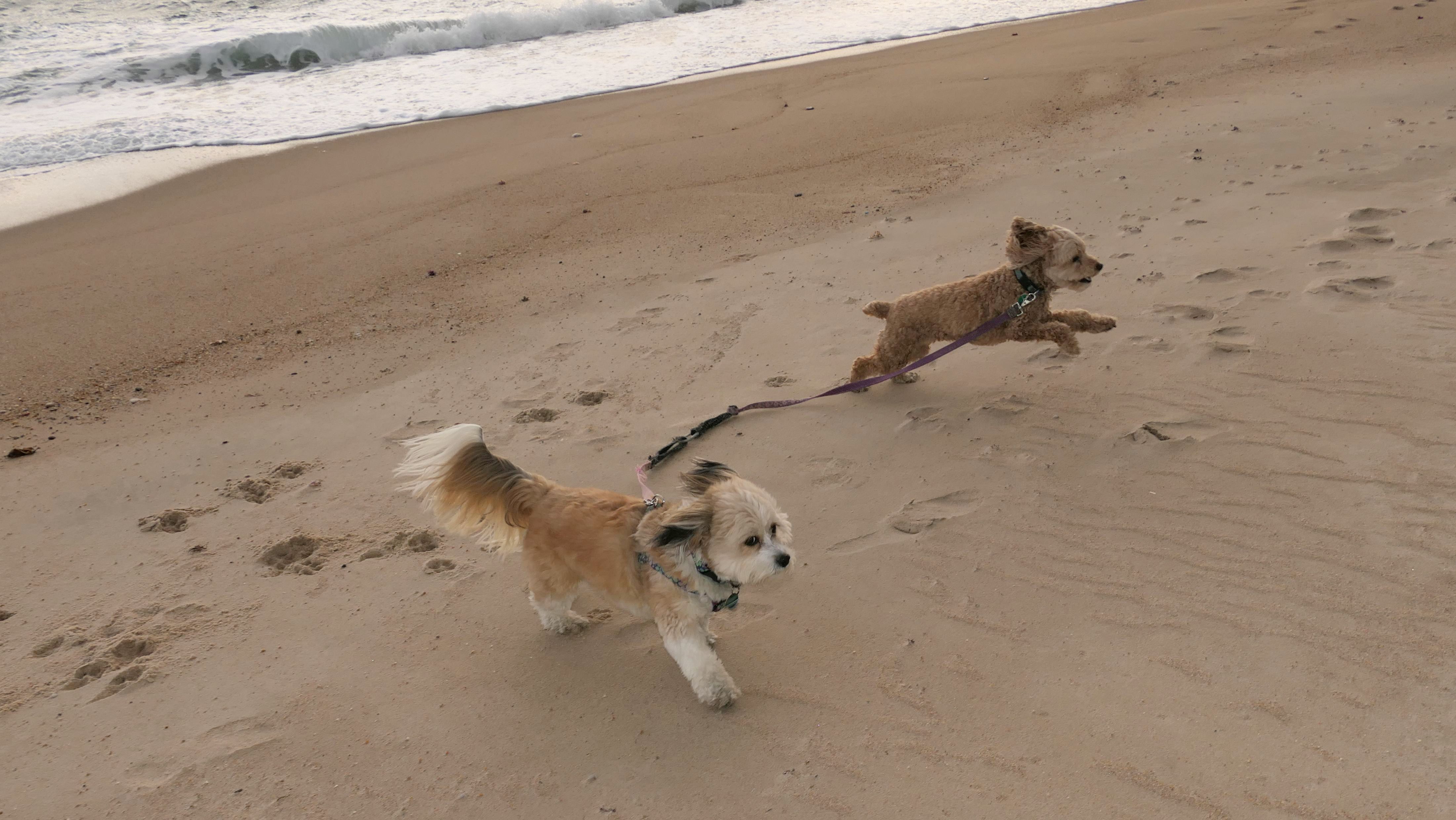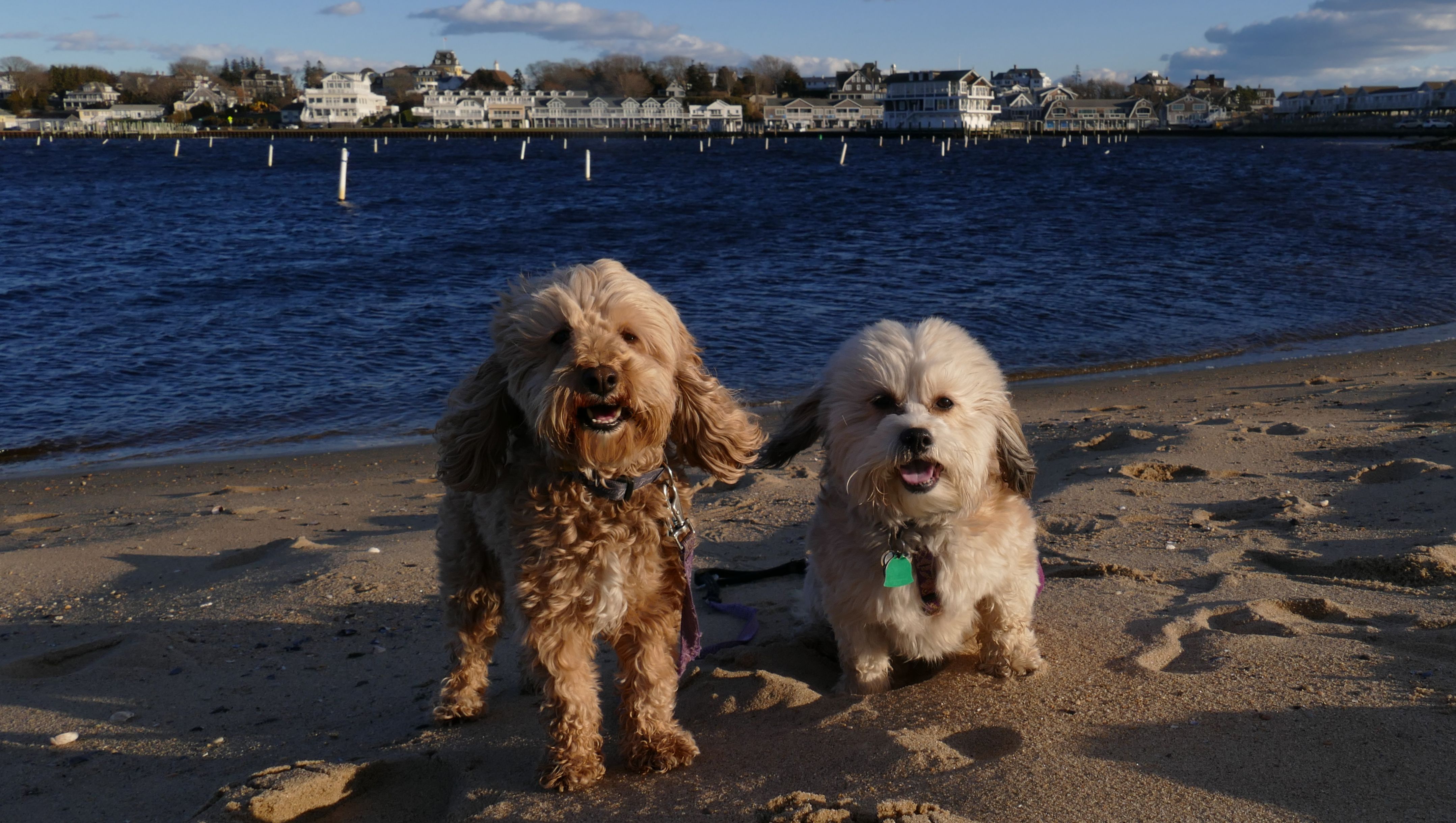 We had record temperatures inland, approaching the mid-80's, so we of course went to a beach! I didn't feel like driving to New Jersey for the 3rd straight day, so we made a return visit to Misquamicut. It wasn't as warm here, probably low to mid 70's, but very breezy. I suspect the wind kept people away. We explored some of the surrounding area before walking the beach. The waves were really ripping here. Mandy kept trying to walk in the water, but Lexi would pull her away. It was a fun adventure, despite the windy conditions.