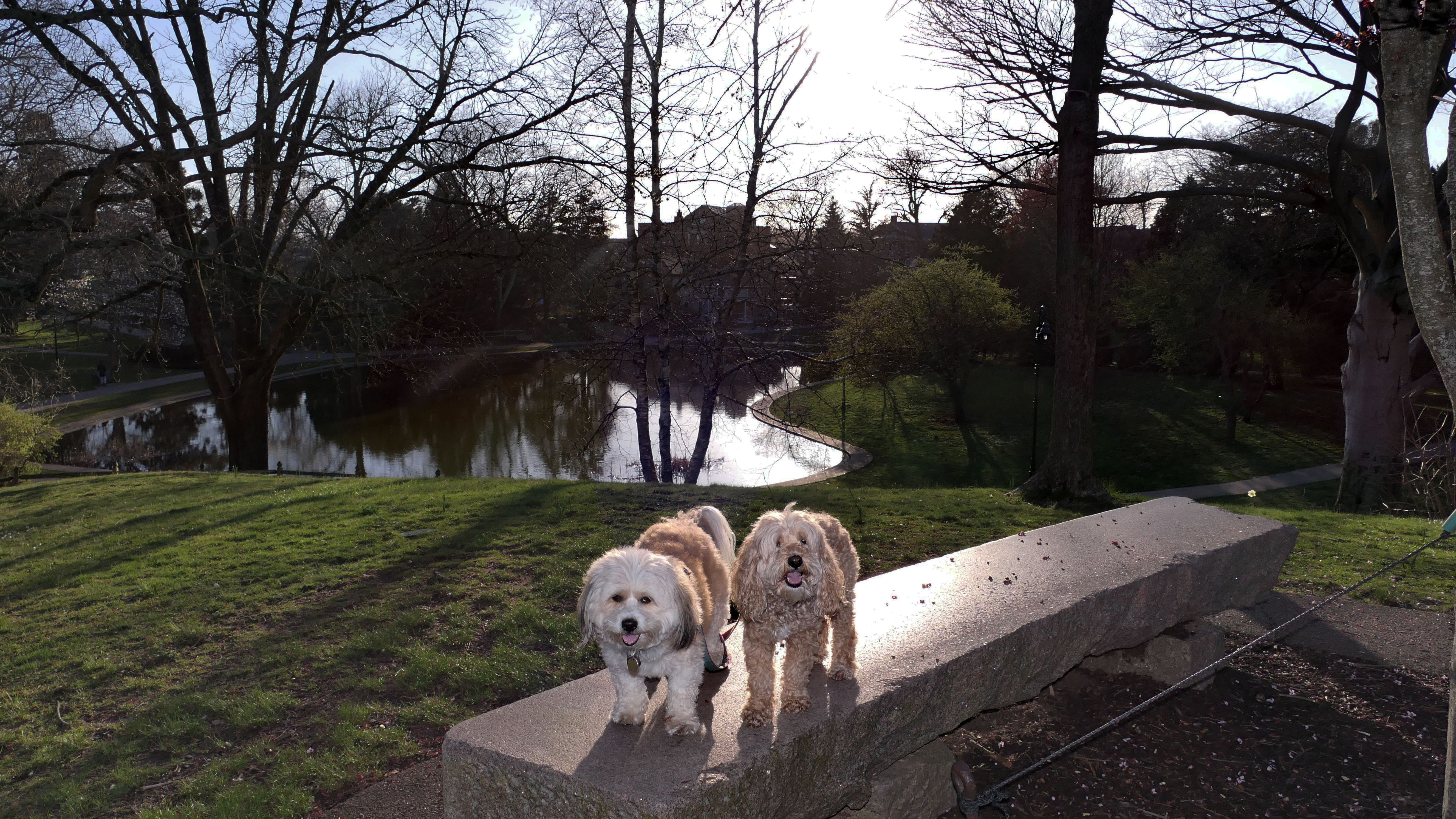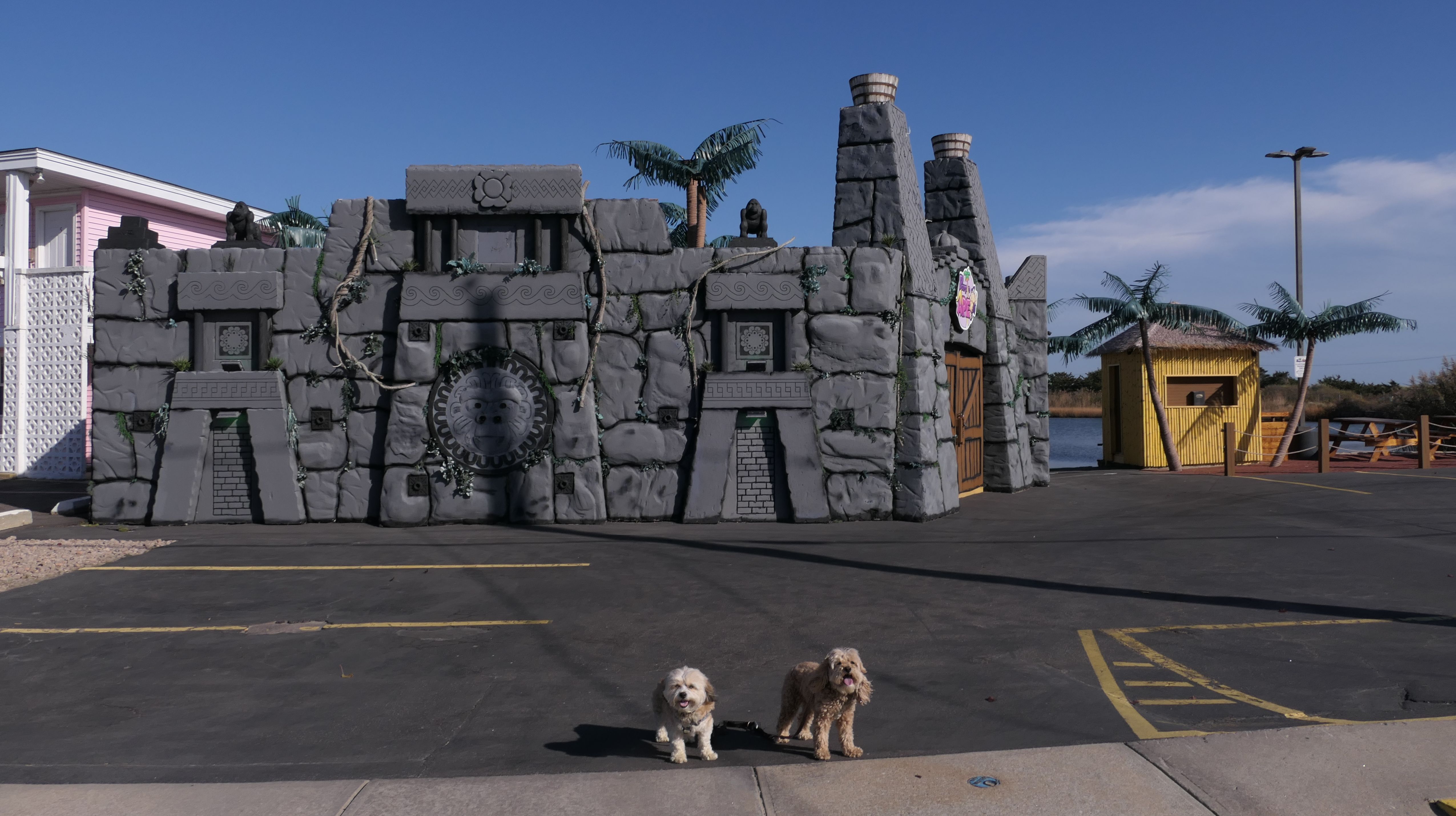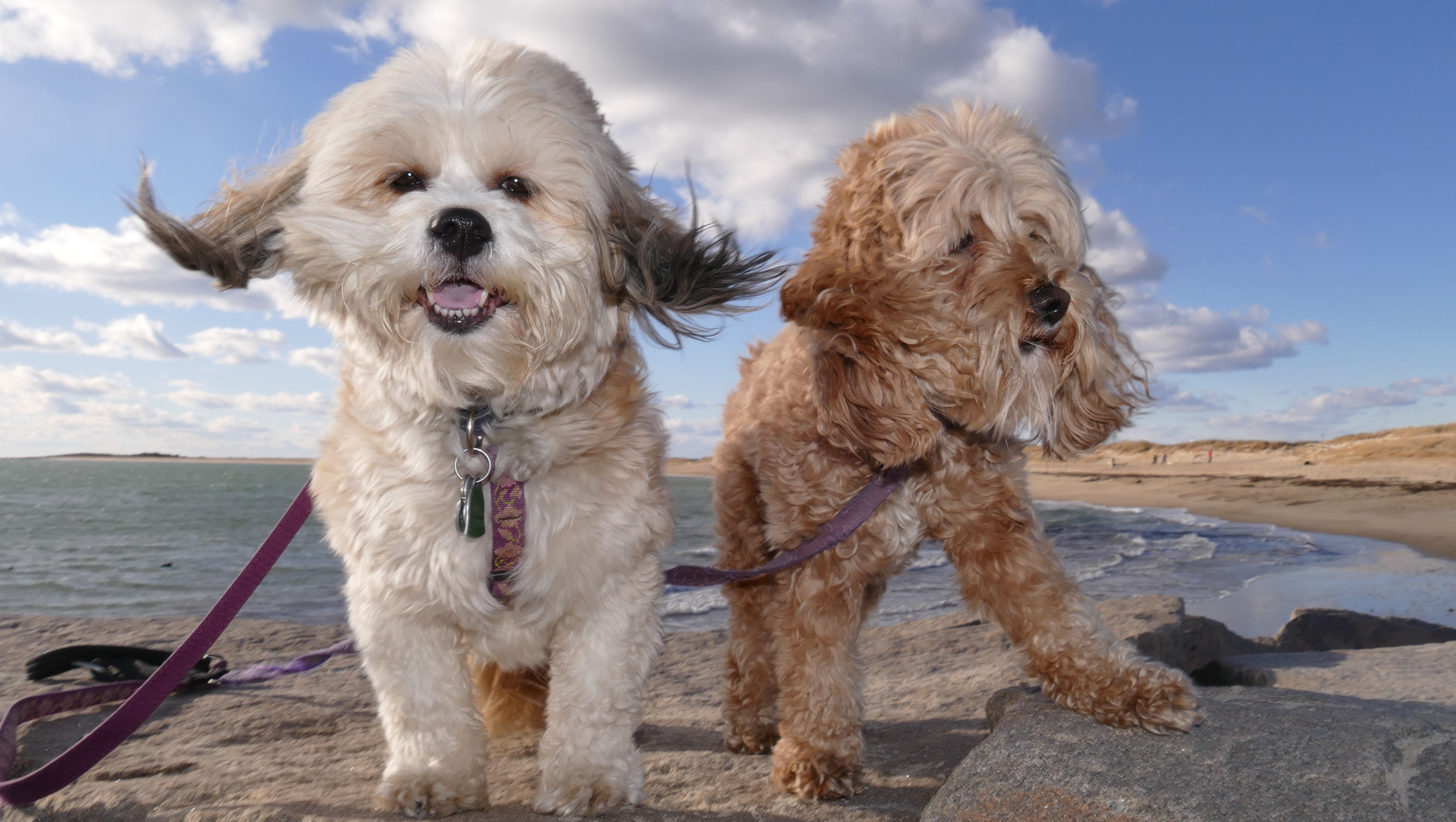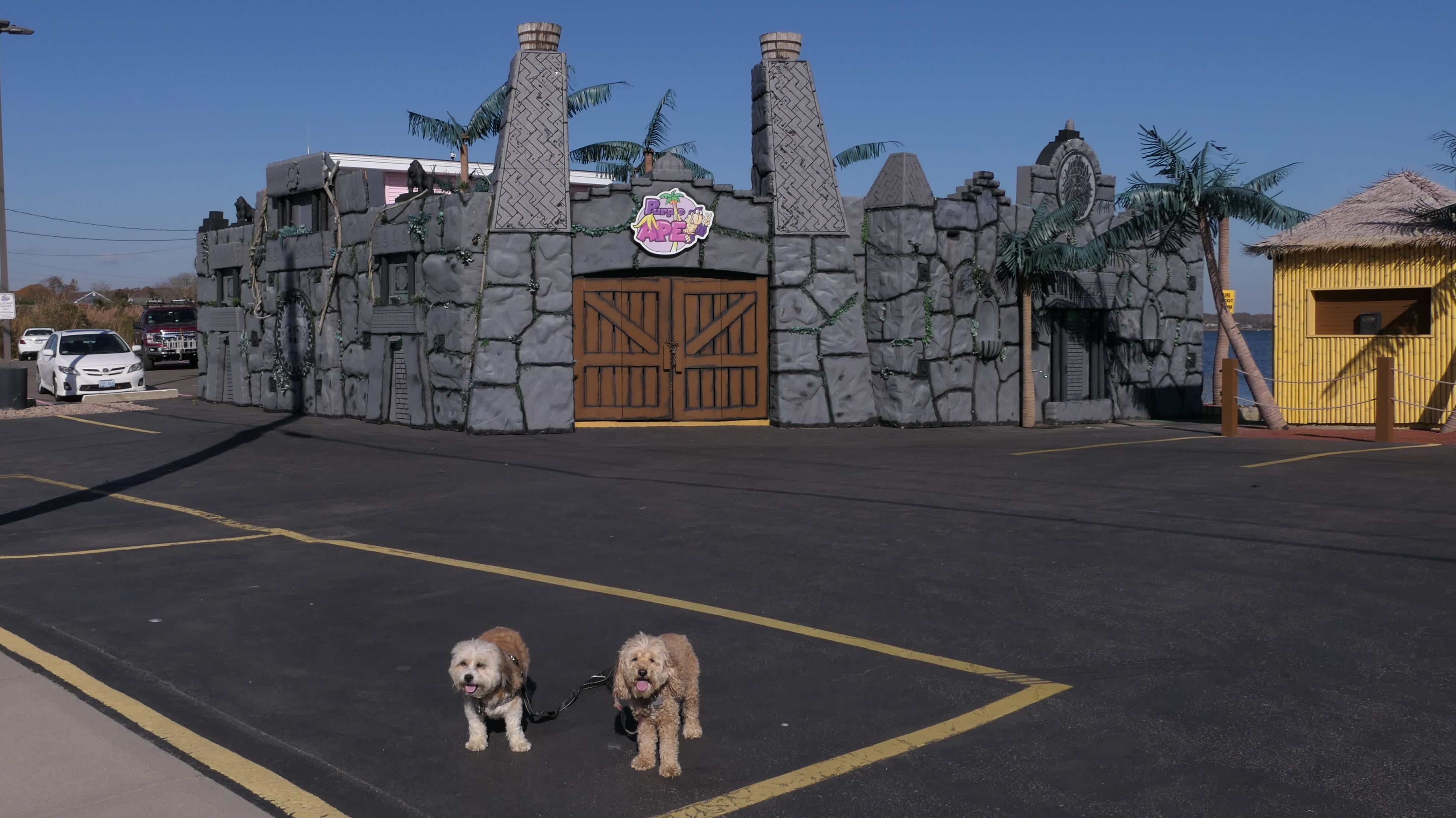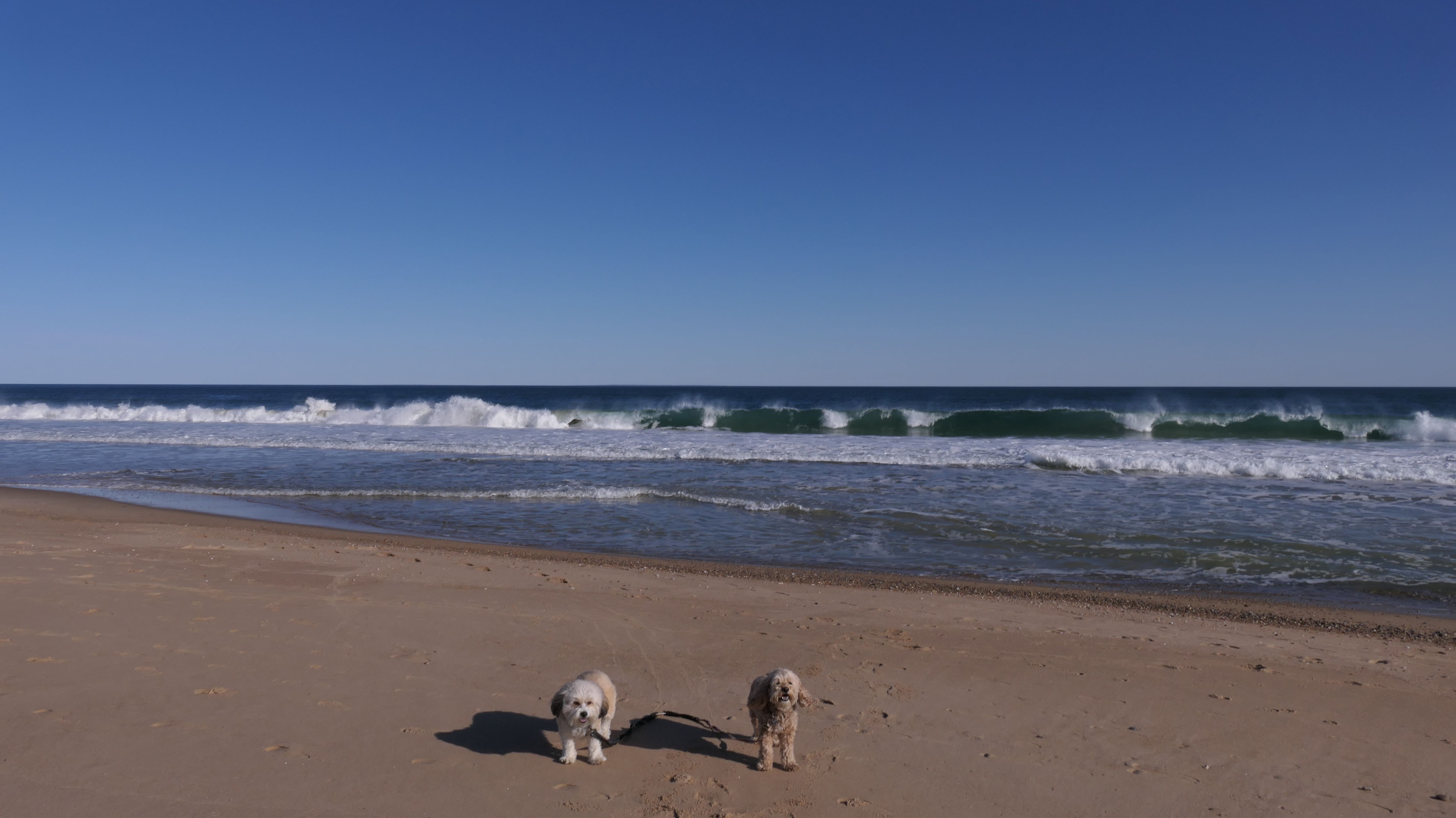 We had record temperatures inland, approaching the mid-80's, so we of course went to a beach! I didn't feel like driving to New Jersey for the 3rd straight day, so we made a return visit to Misquamicut. It wasn't as warm here, probably low to mid 70's, but very breezy. I suspect the wind kept people away. We explored some of the surrounding area before walking the beach. The waves were really ripping here. Mandy kept trying to walk in the water, but Lexi would pull her away. It was a fun adventure, despite the windy conditions.