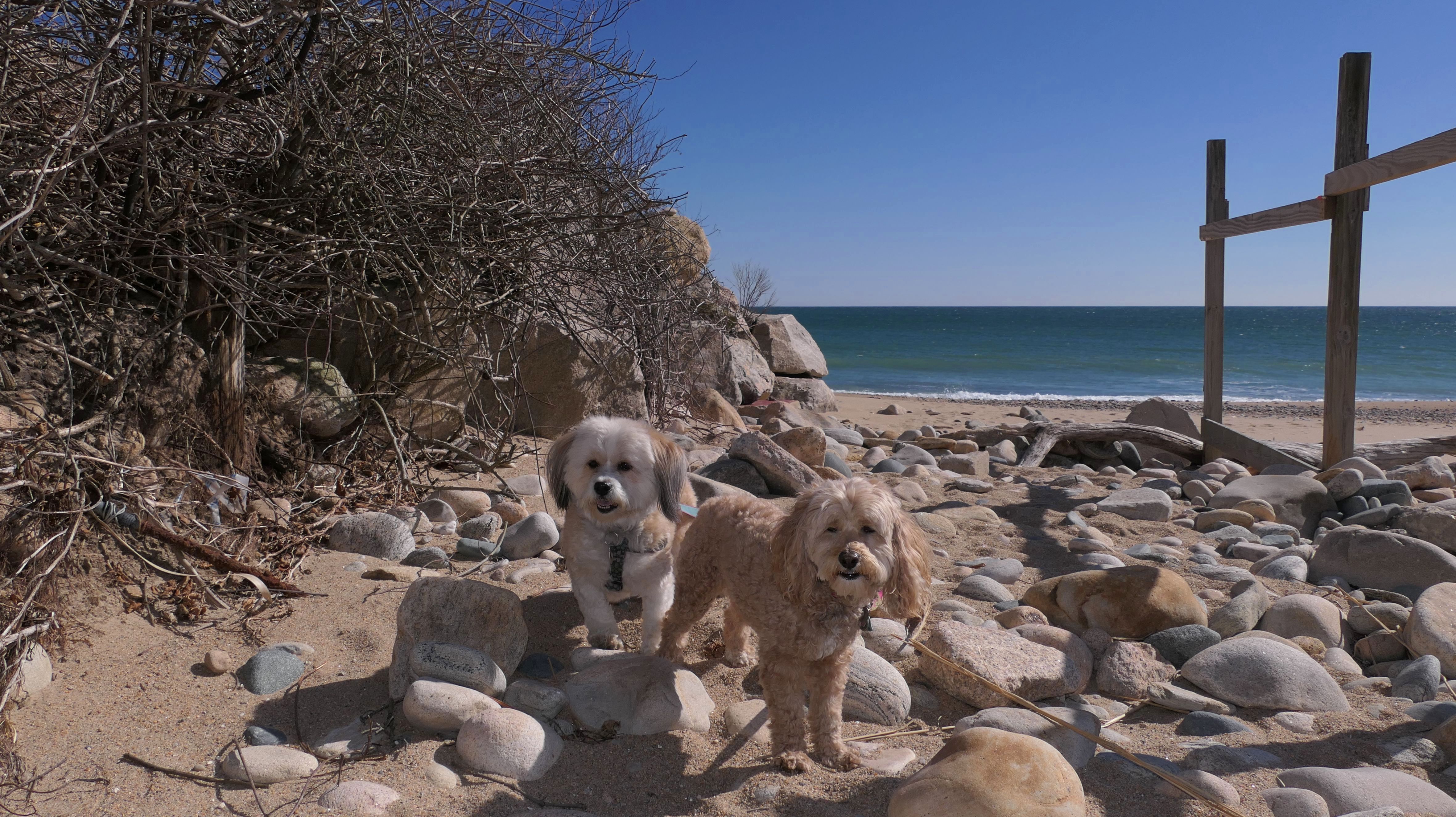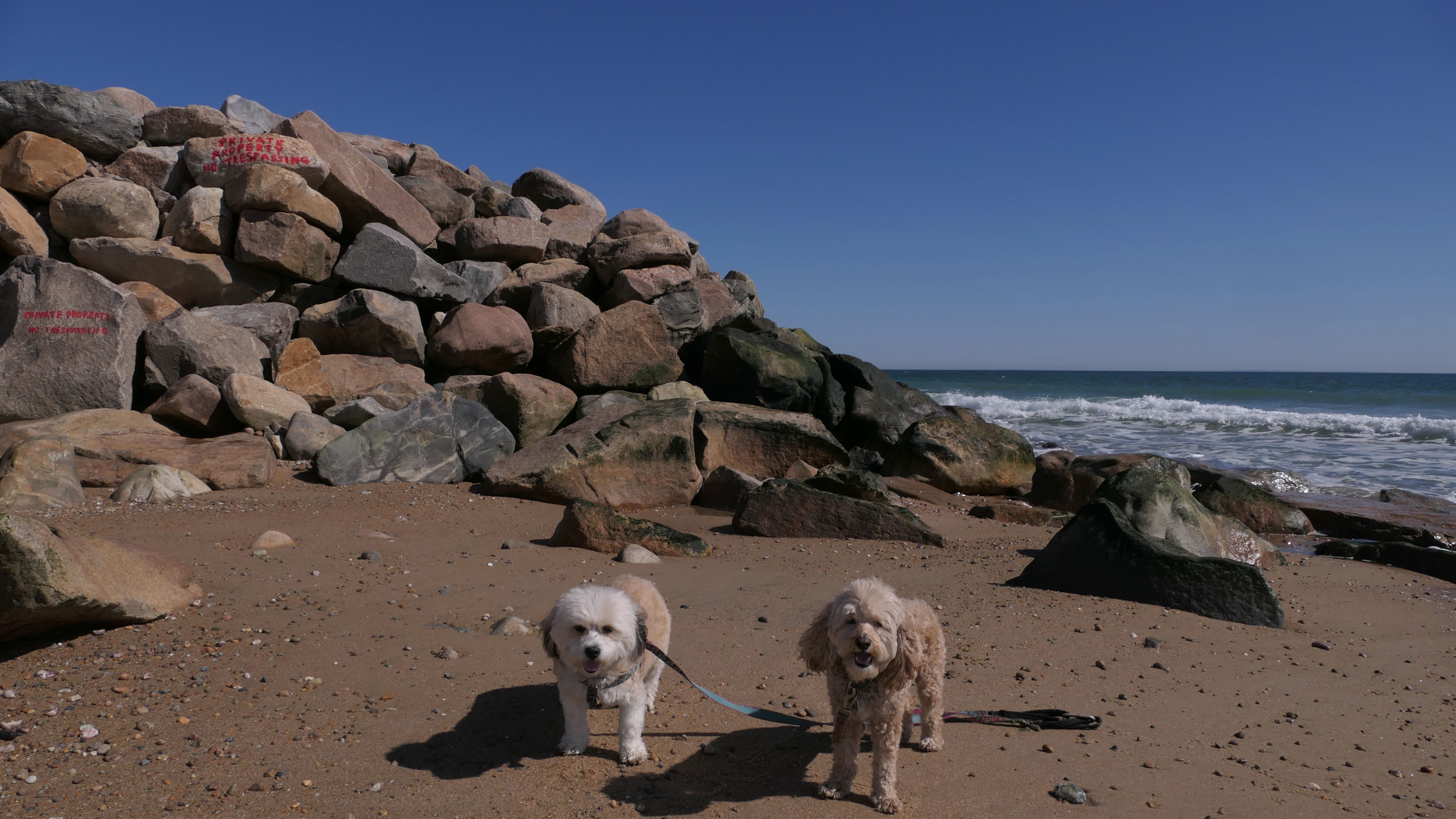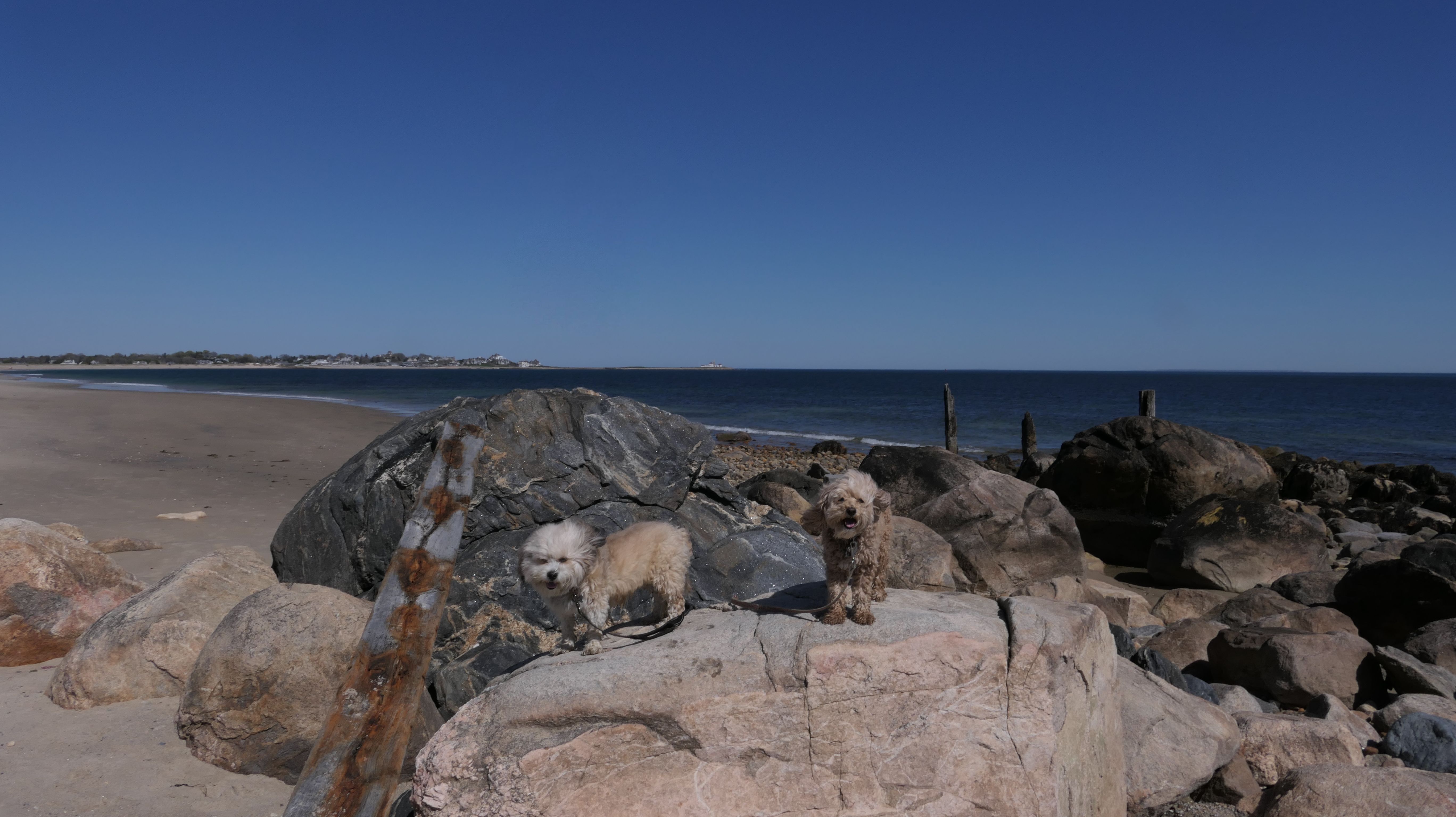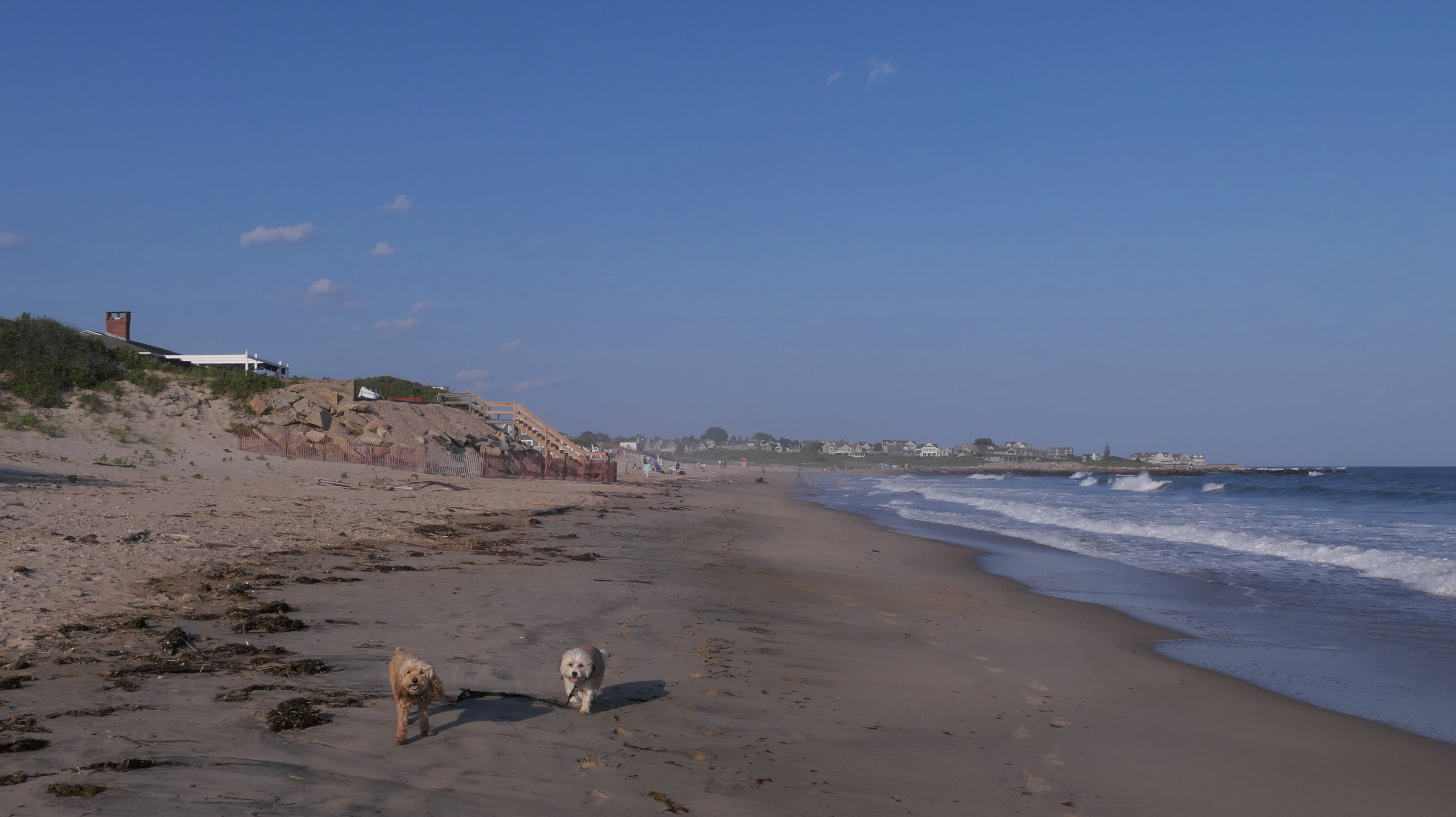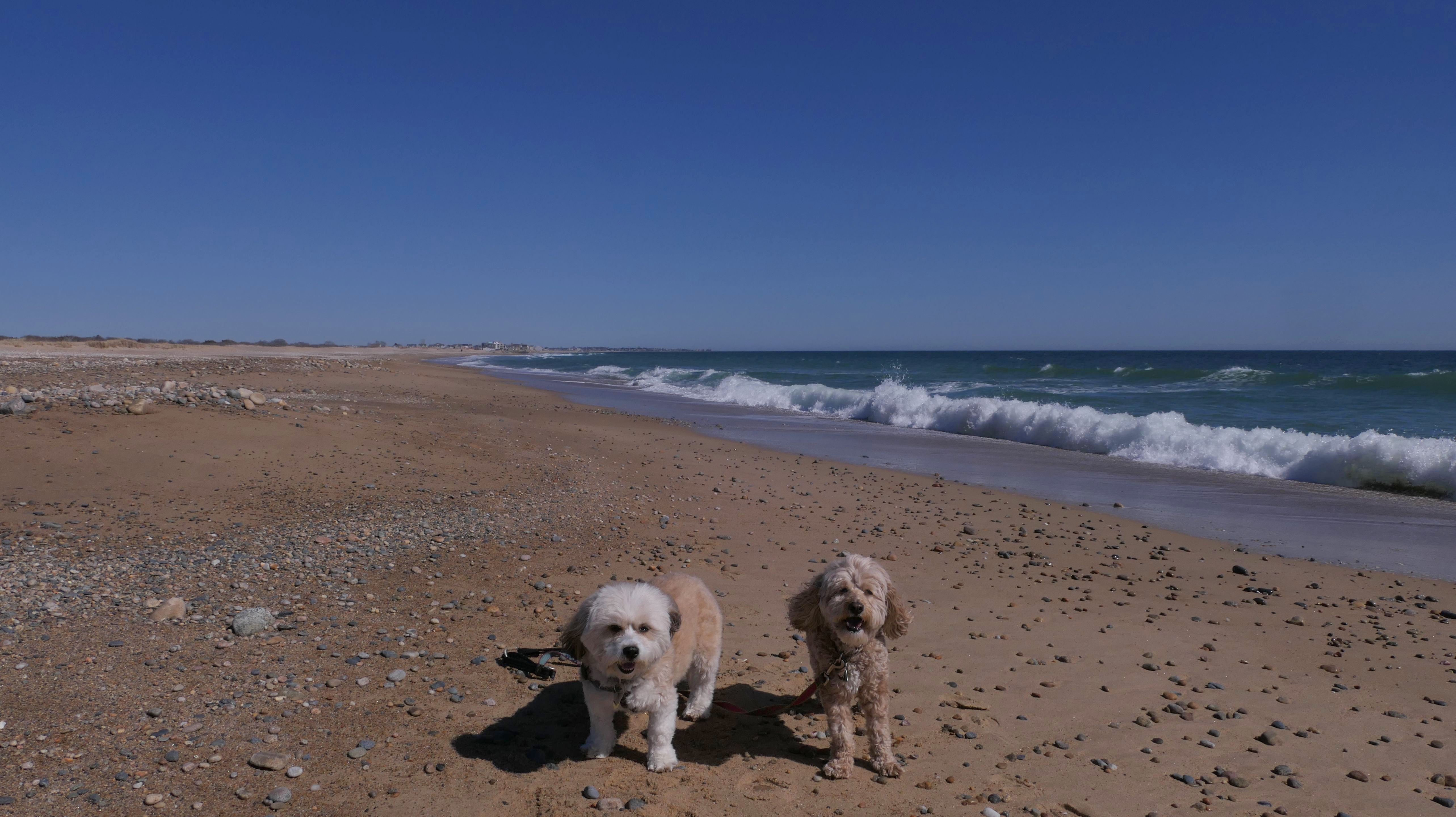 This is a public beach in the Watch Hill section of Westerly. The "Watch Hill Lighthouse Village Loop" in the All-Trails app utilizes a short section of this beach. There's a sign that says "No Pets", but you can ignore it. There is another sign that specifies that dogs are allowed in the off-season any time, and before 8 AM and after 6 PM during the summer months (May 2nd through Labor Day). This corresponds to what it says on the Town of Westerly's website. There's no dedicated parking for this beach. You have to park at Watch Hill and then access it through one of the right-of-way paths. We visited here a second time, and walked more of the beach. It's about two miles long and we probably walked about half of the total length before turning around. This time, it was an usually warm day in April. It had made it up to 90 degrees inland, but down here it was about 15 degrees cooler (just like the summer), and was very nice.