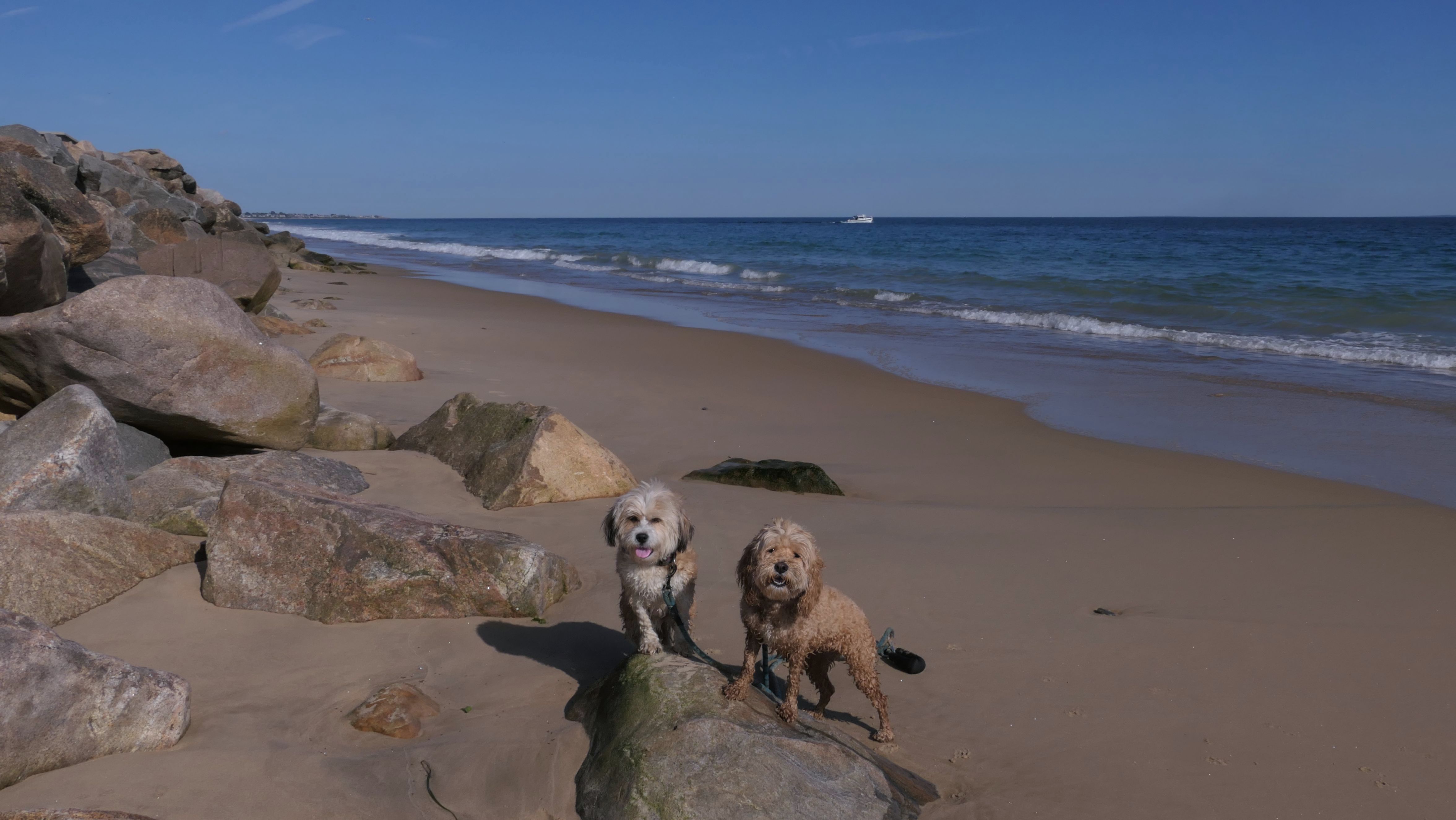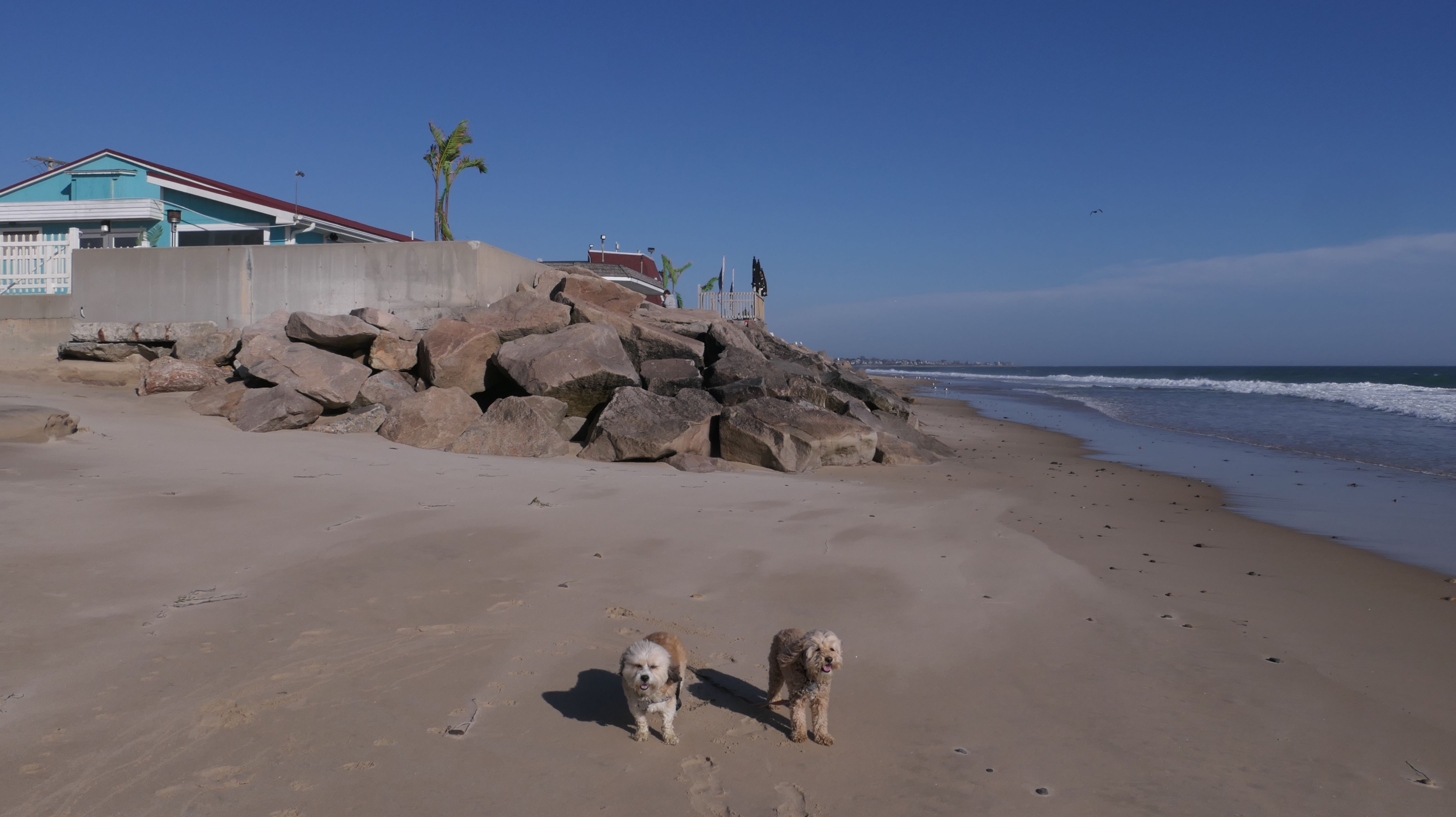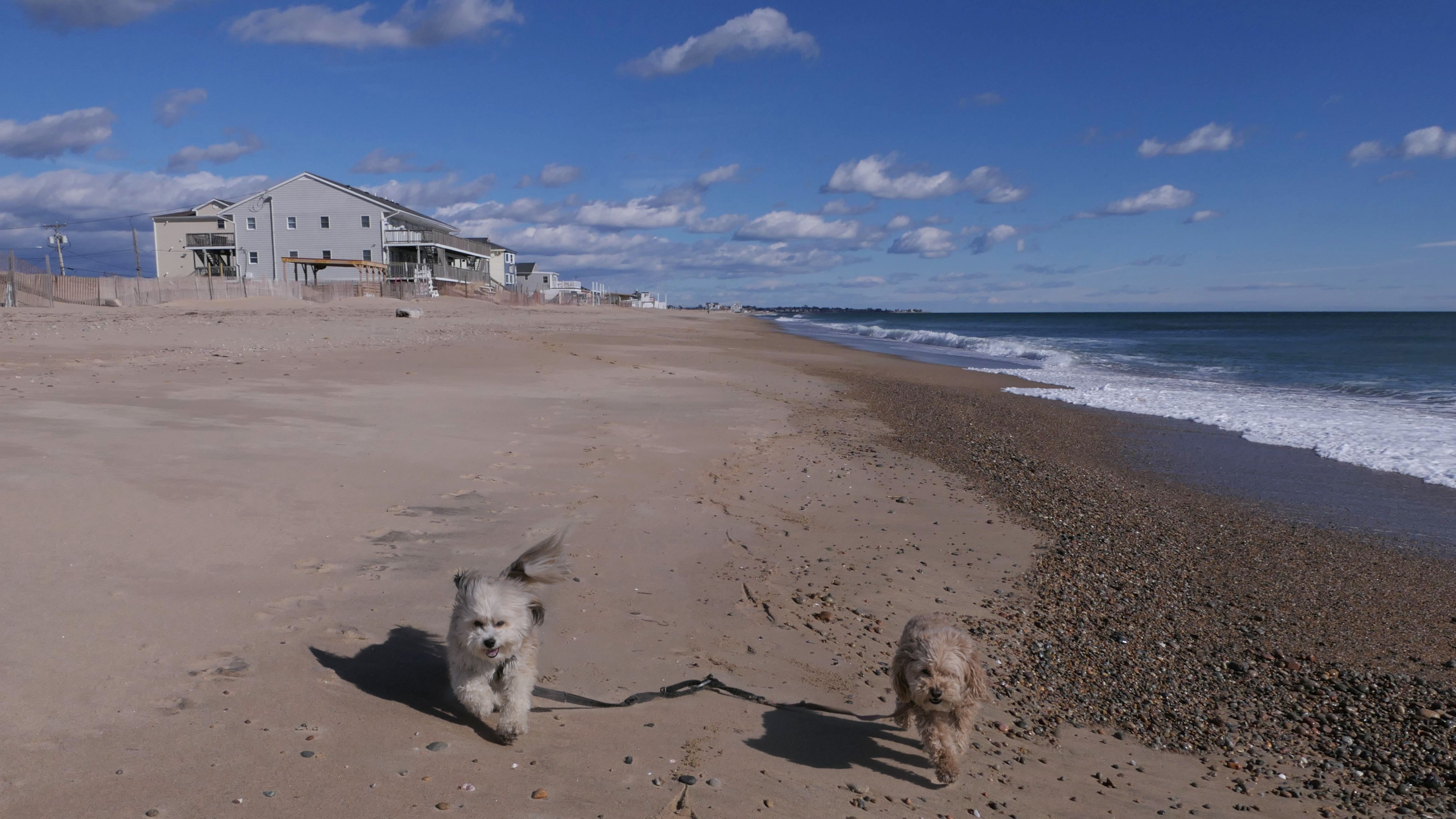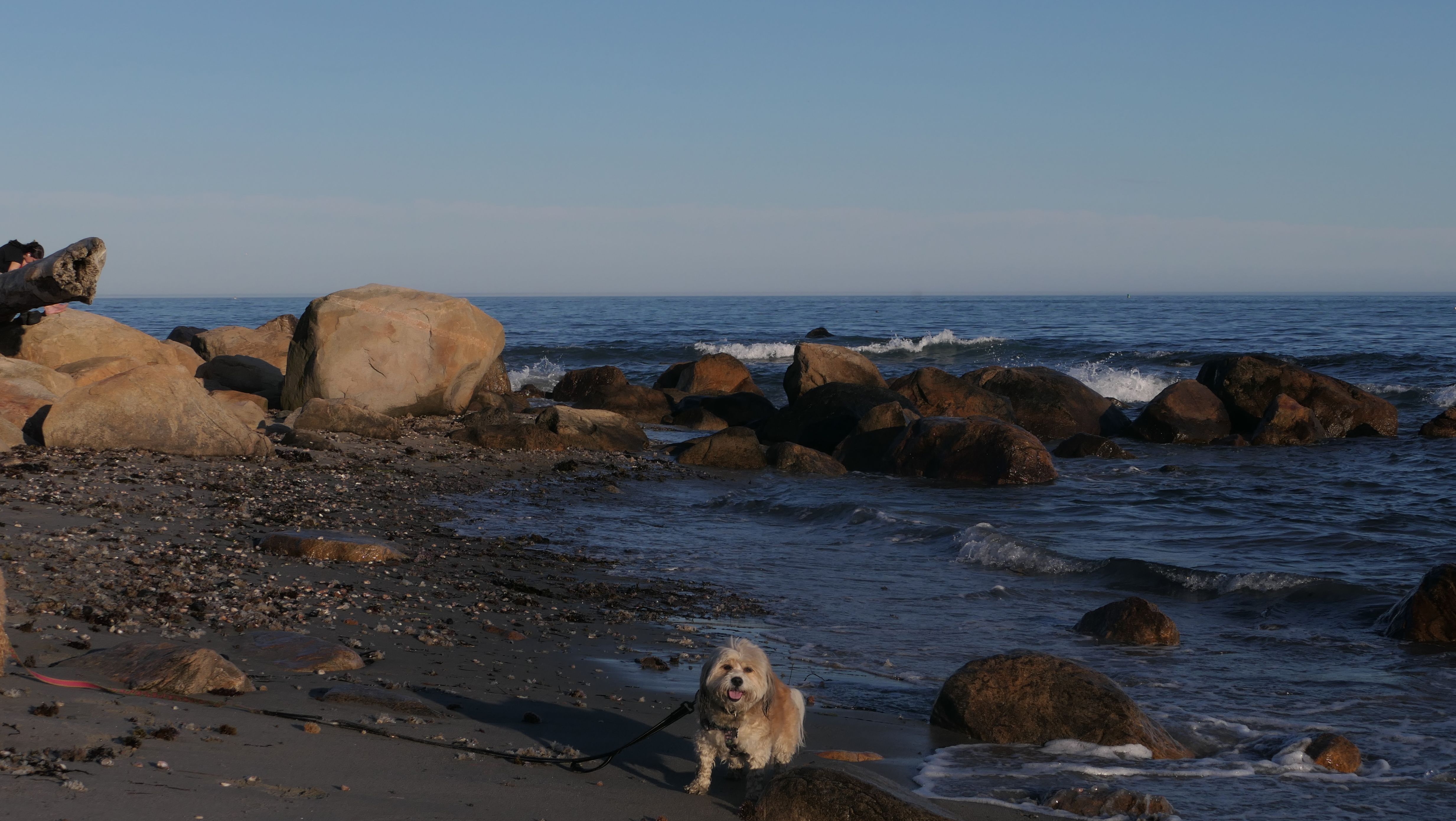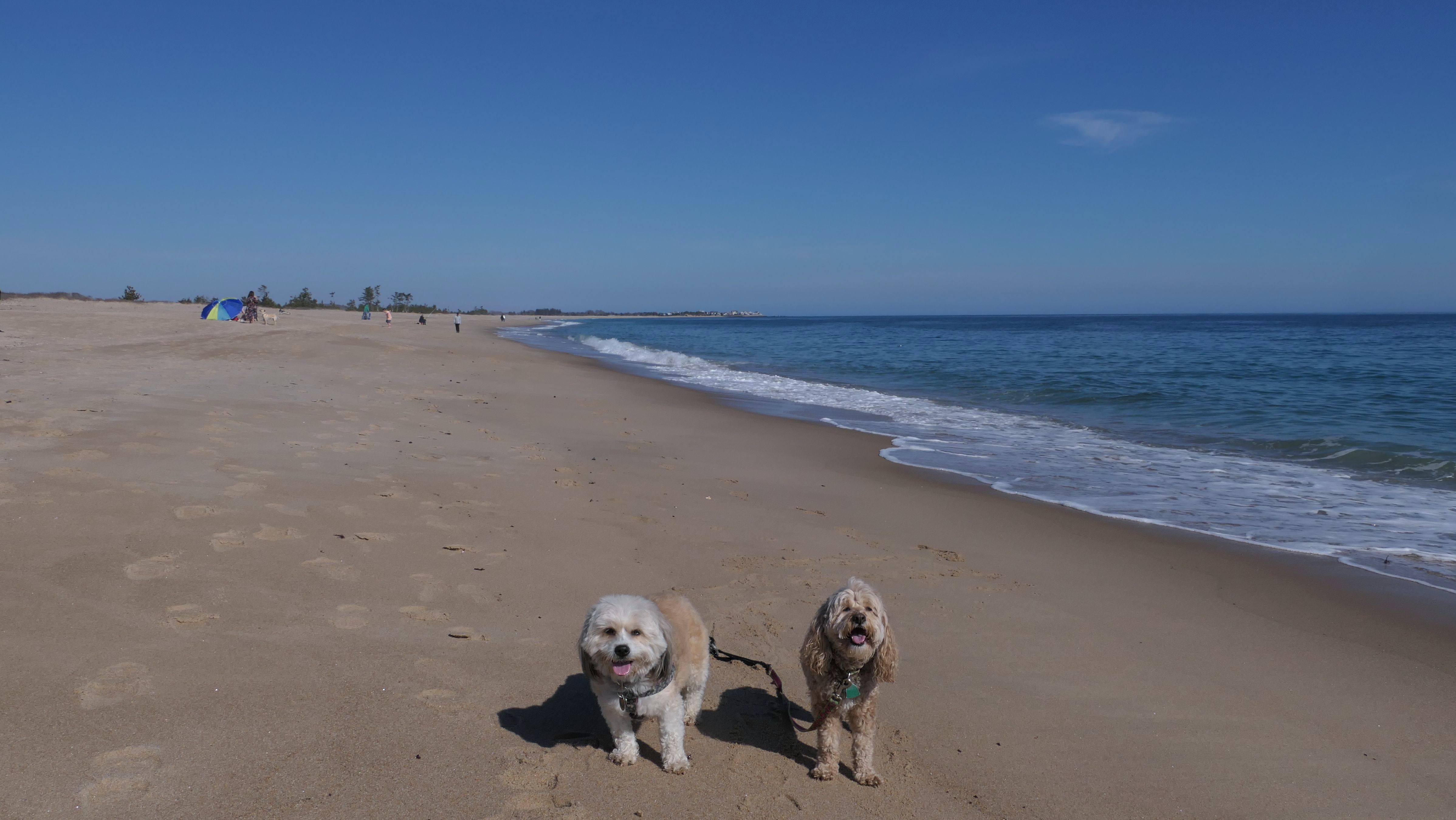 This is a public beach in the Watch Hill section of Westerly. The "Watch Hill Lighthouse Village Loop" in the All-Trails app utilizes a short section of this beach. There's a sign that says "No Pets", but you can ignore it. There is another sign that specifies that dogs are allowed in the off-season any time, and before 8 AM and after 6 PM during the summer months (May 2nd through Labor Day). This corresponds to what it says on the Town of Westerly's website. There's no dedicated parking for this beach. You have to park at Watch Hill and then access it through one of the right-of-way paths. We visited here a second time, and walked more of the beach. It's about two miles long and we probably walked about half of the total length before turning around. This time, it was an usually warm day in April. It had made it up to 90 degrees inland, but down here it was about 15 degrees cooler (just like the summer), and was very nice.