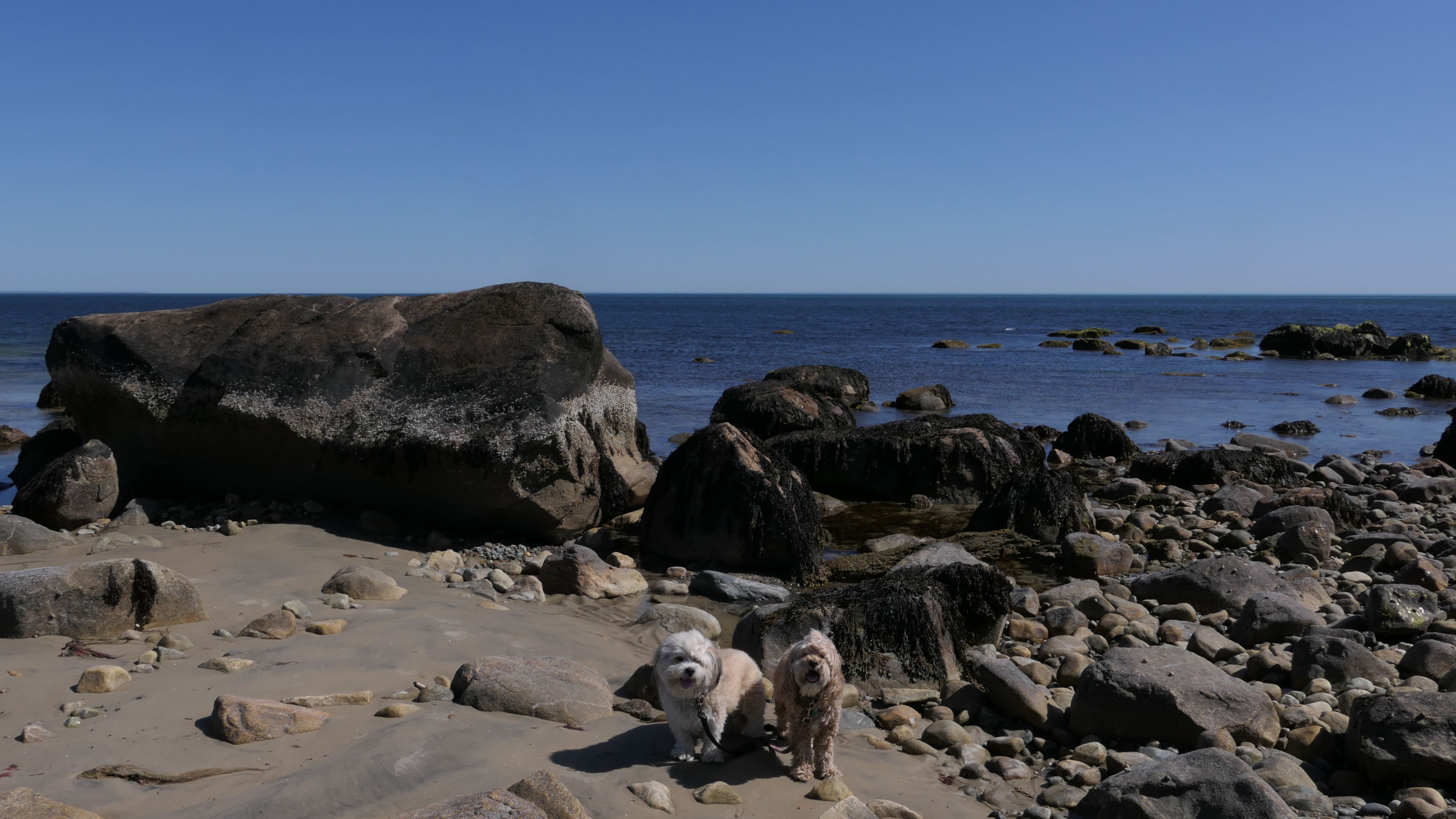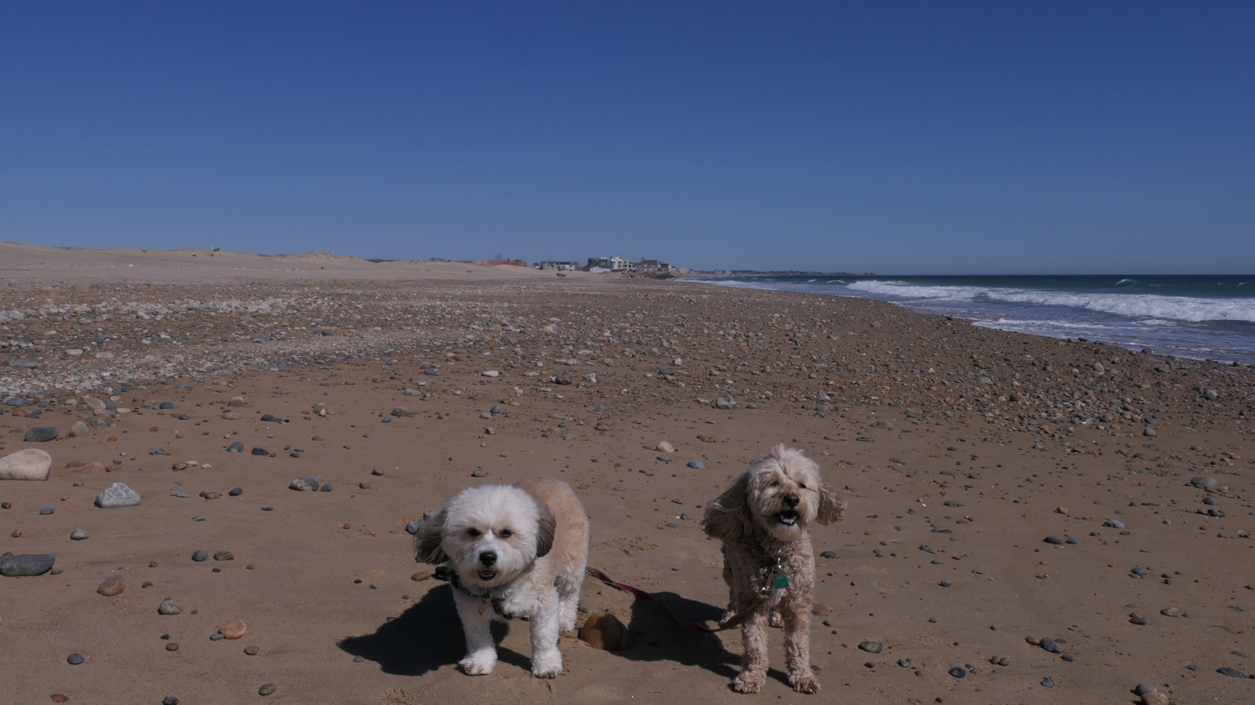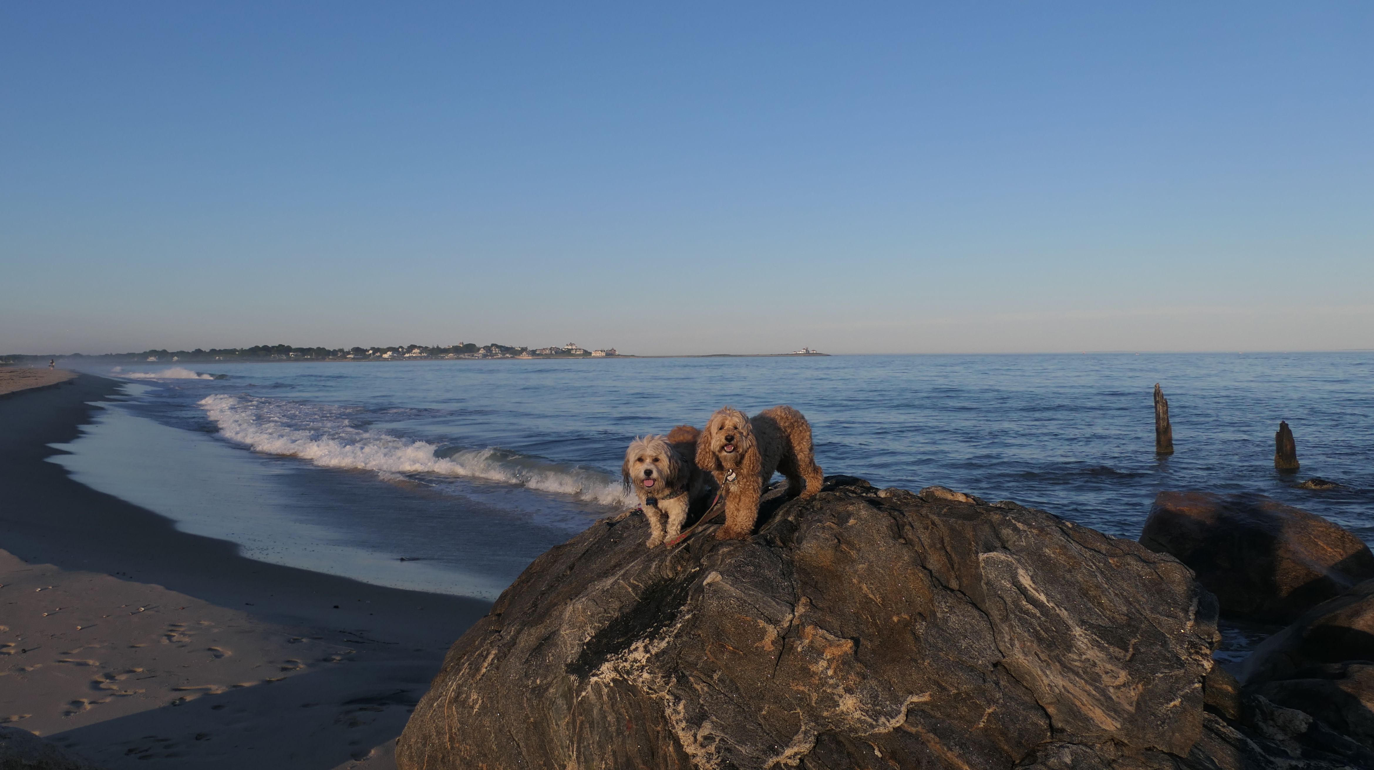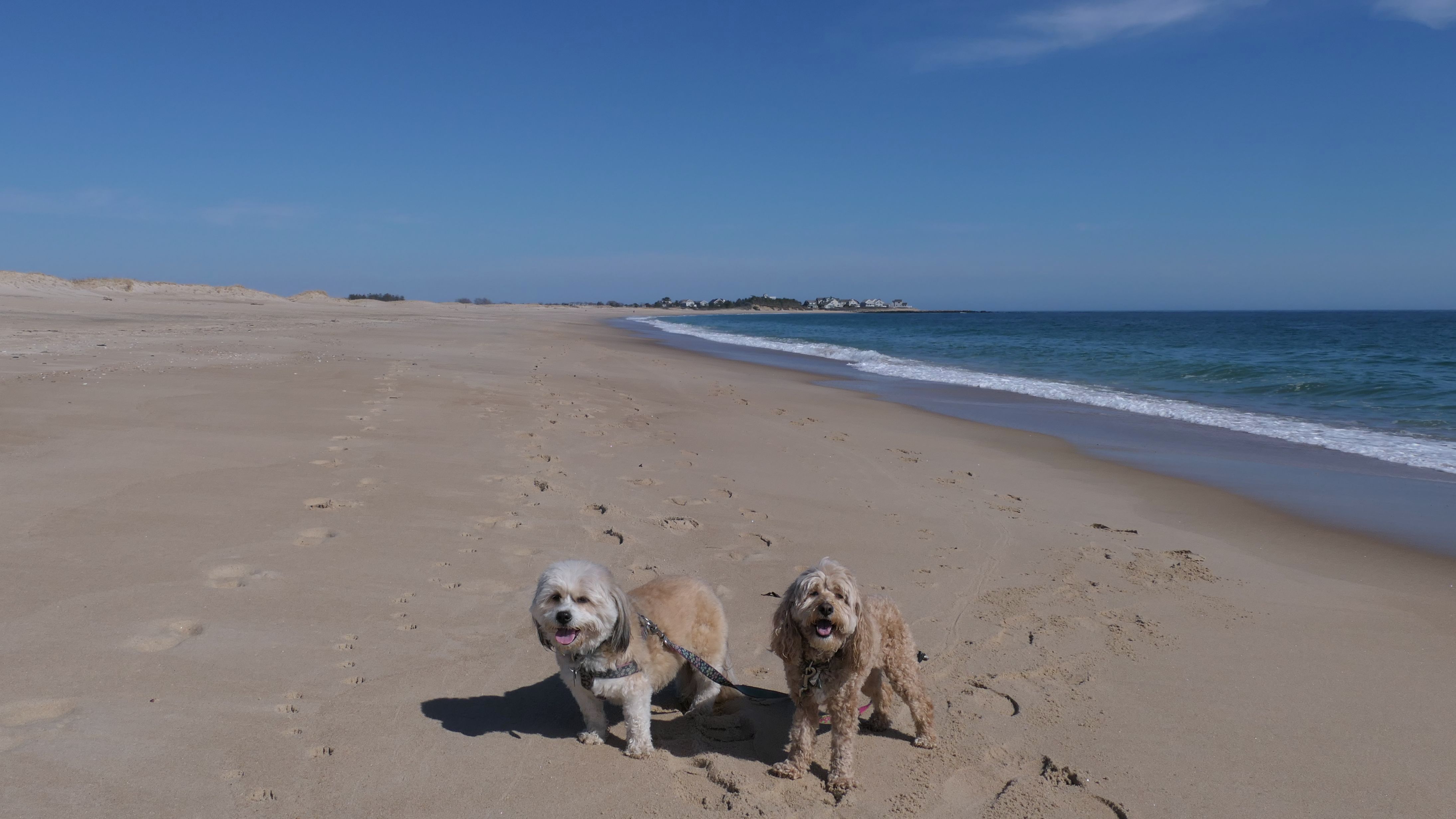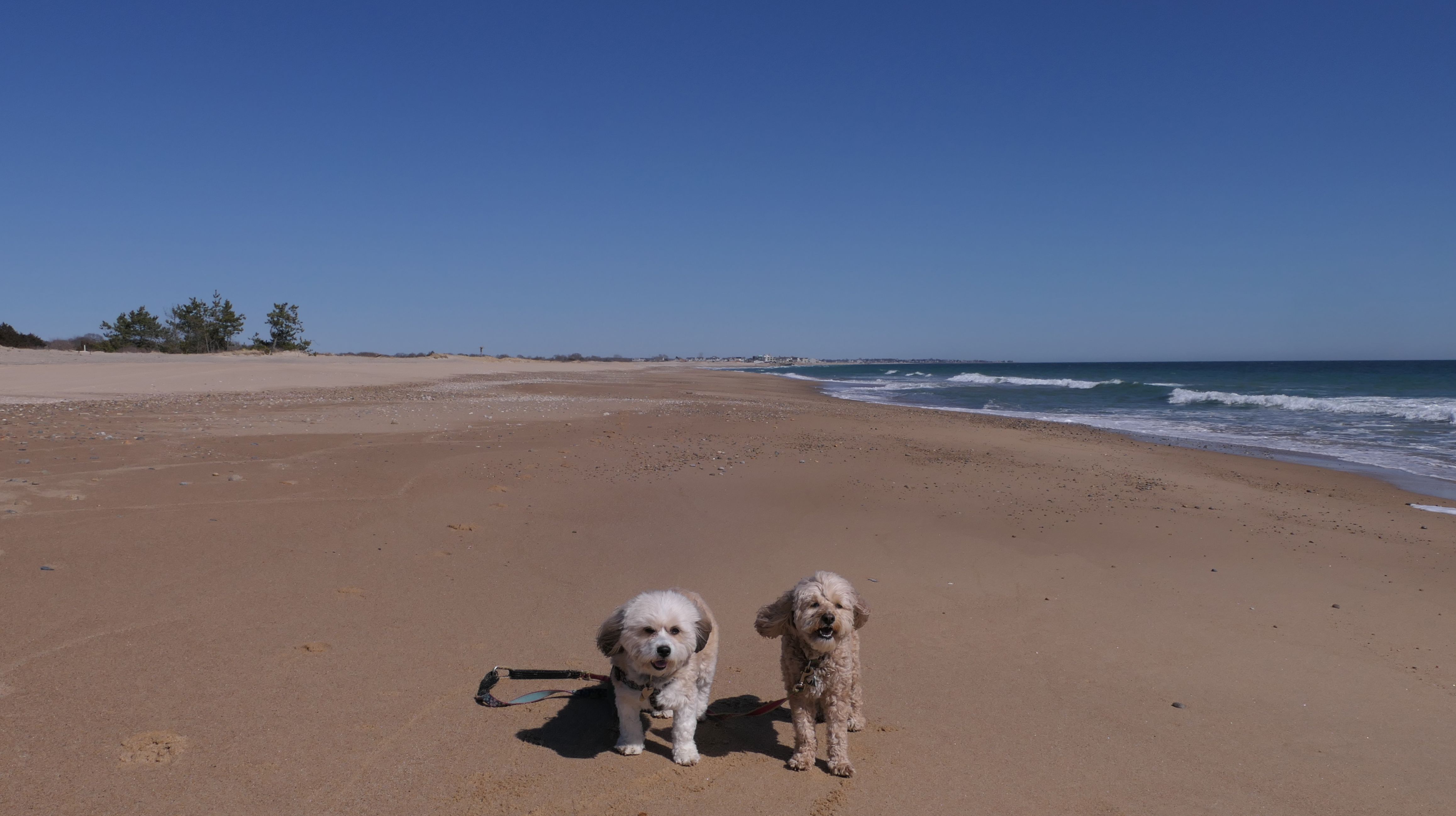 This is a public beach in the Watch Hill section of Westerly. The "Watch Hill Lighthouse Village Loop" in the All-Trails app utilizes a short section of this beach. There's a sign that says "No Pets", but you can ignore it. There is another sign that specifies that dogs are allowed in the off-season any time, and before 8 AM and after 6 PM during the summer months (May 2nd through Labor Day). This corresponds to what it says on the Town of Westerly's website. There's no dedicated parking for this beach. You have to park at Watch Hill and then access it through one of the right-of-way paths. We visited here a second time, and walked more of the beach. It's about two miles long and we probably walked about half of the total length before turning around. This time, it was an usually warm day in April. It had made it up to 90 degrees inland, but down here it was about 15 degrees cooler (just like the summer), and was very nice.