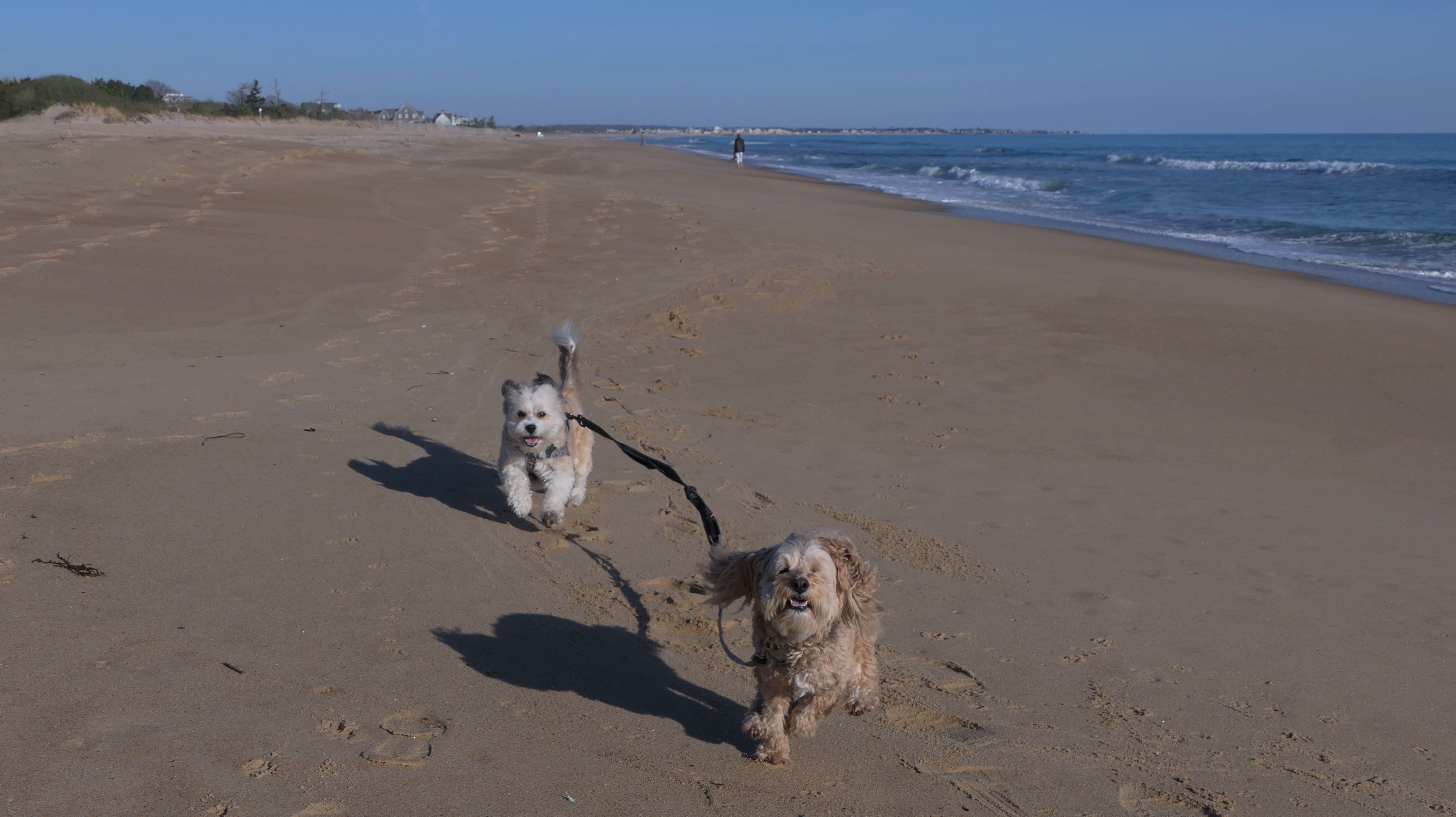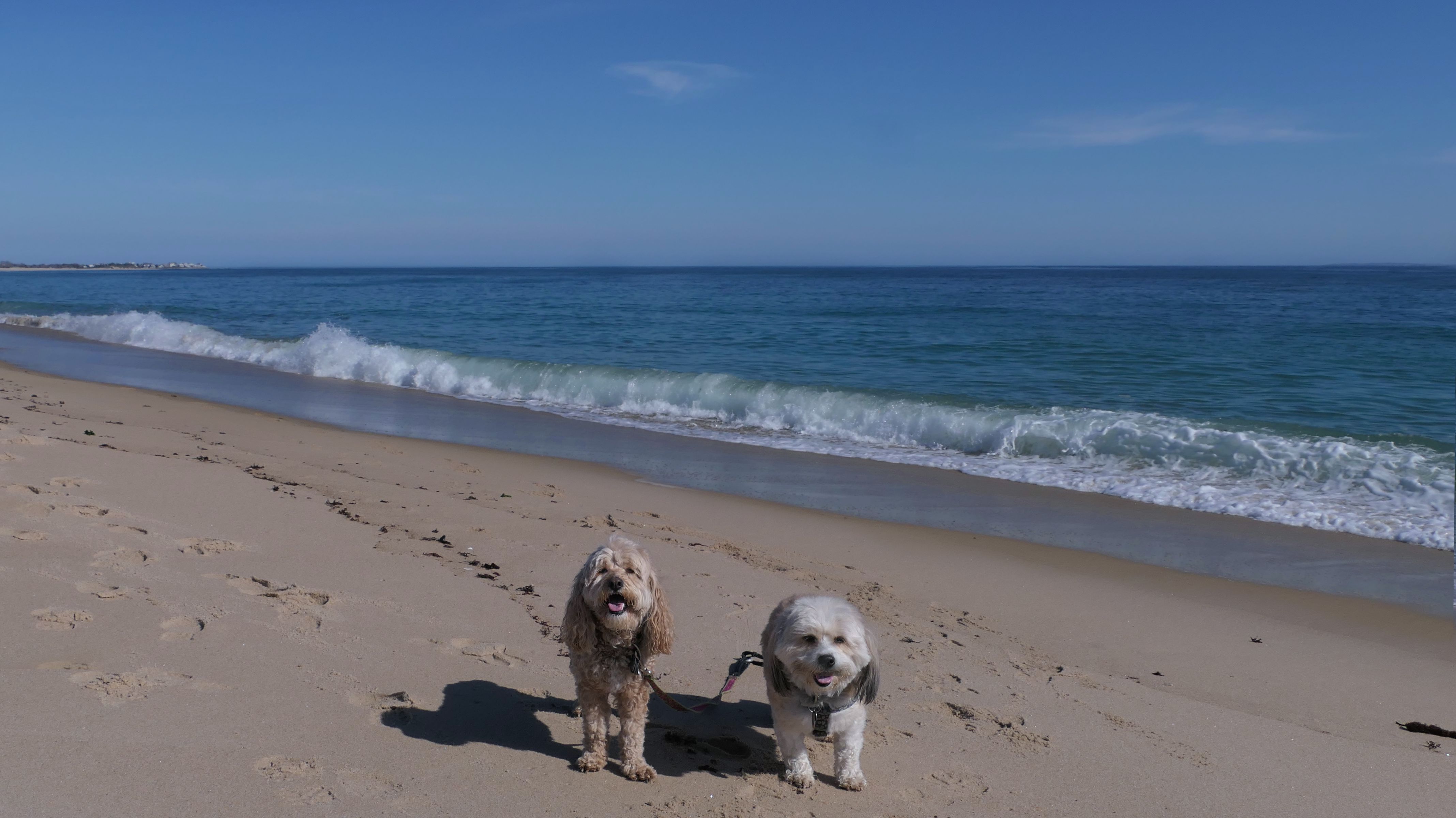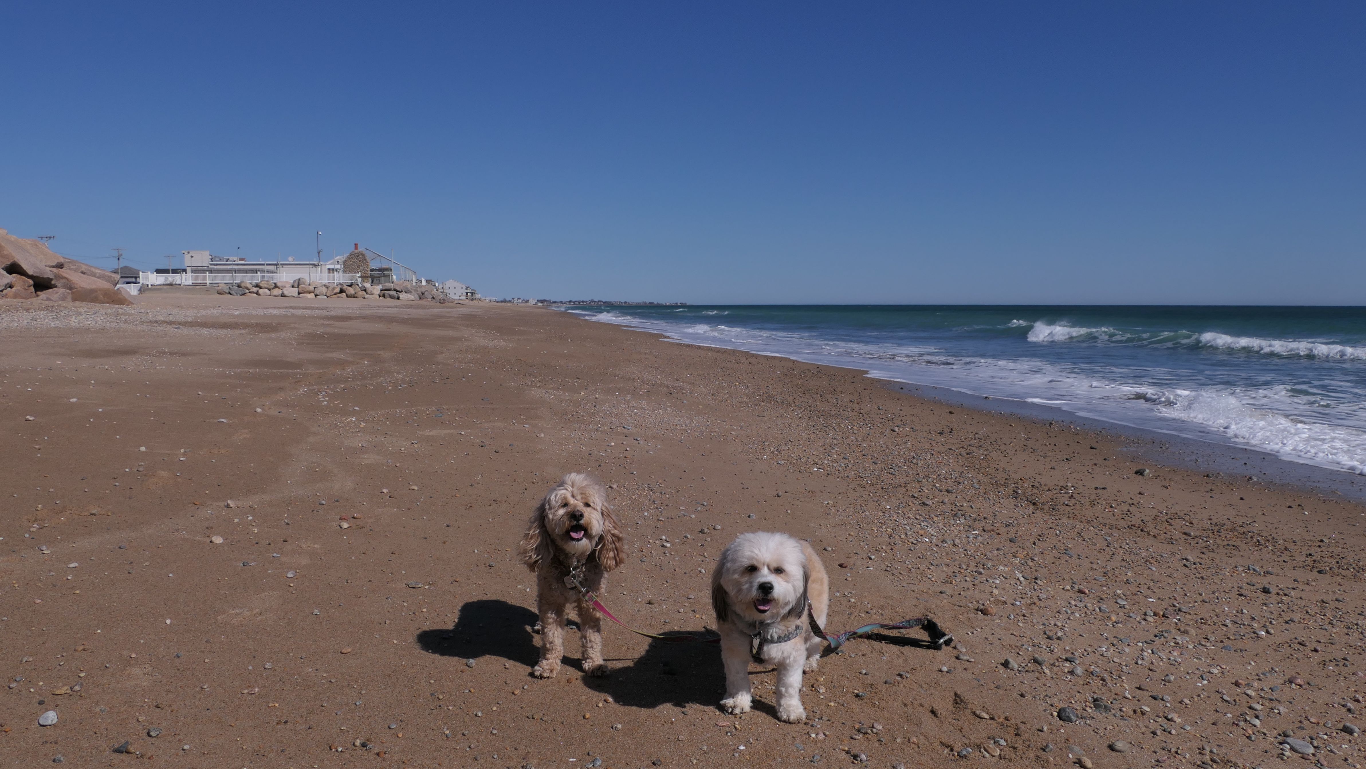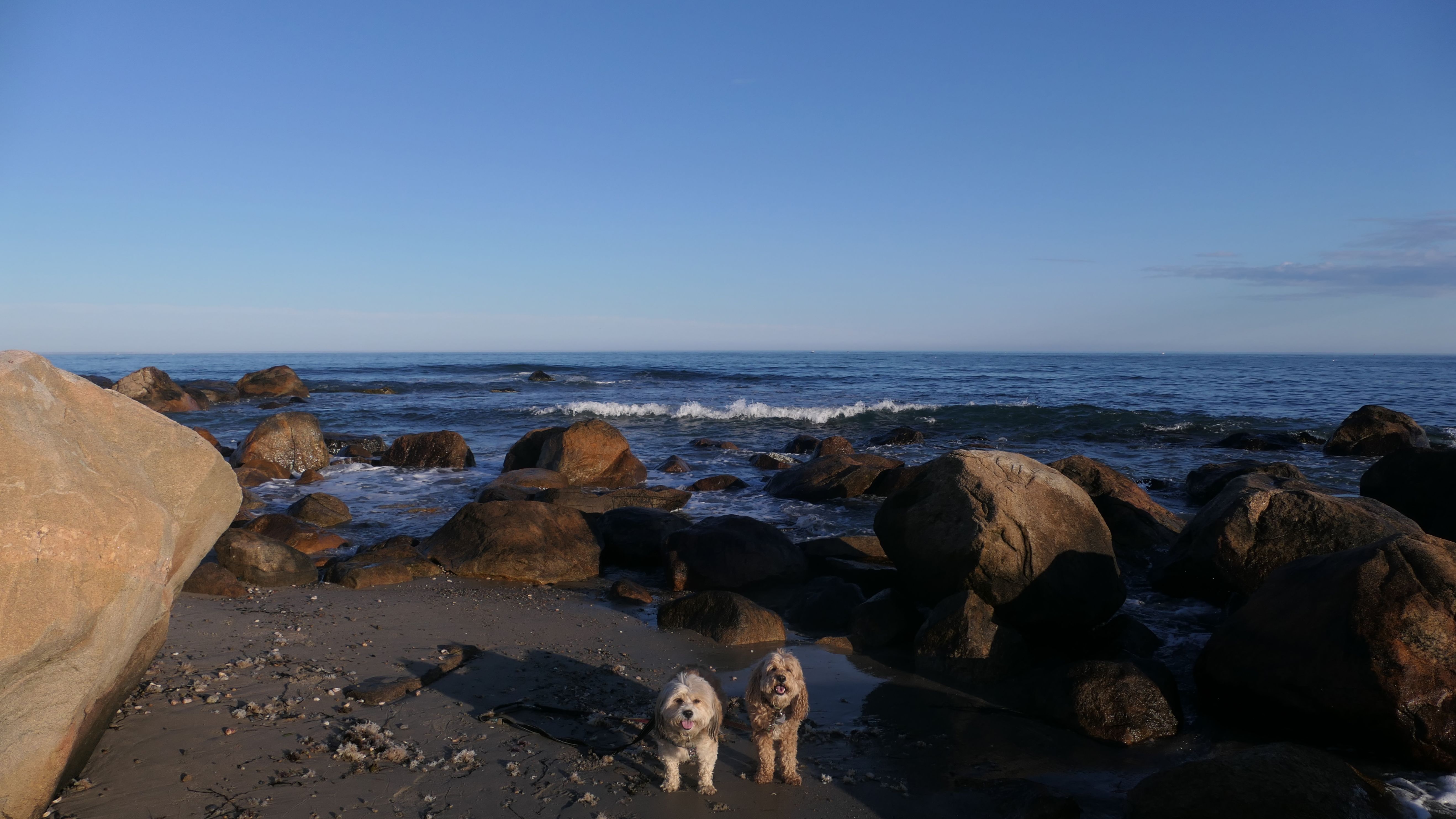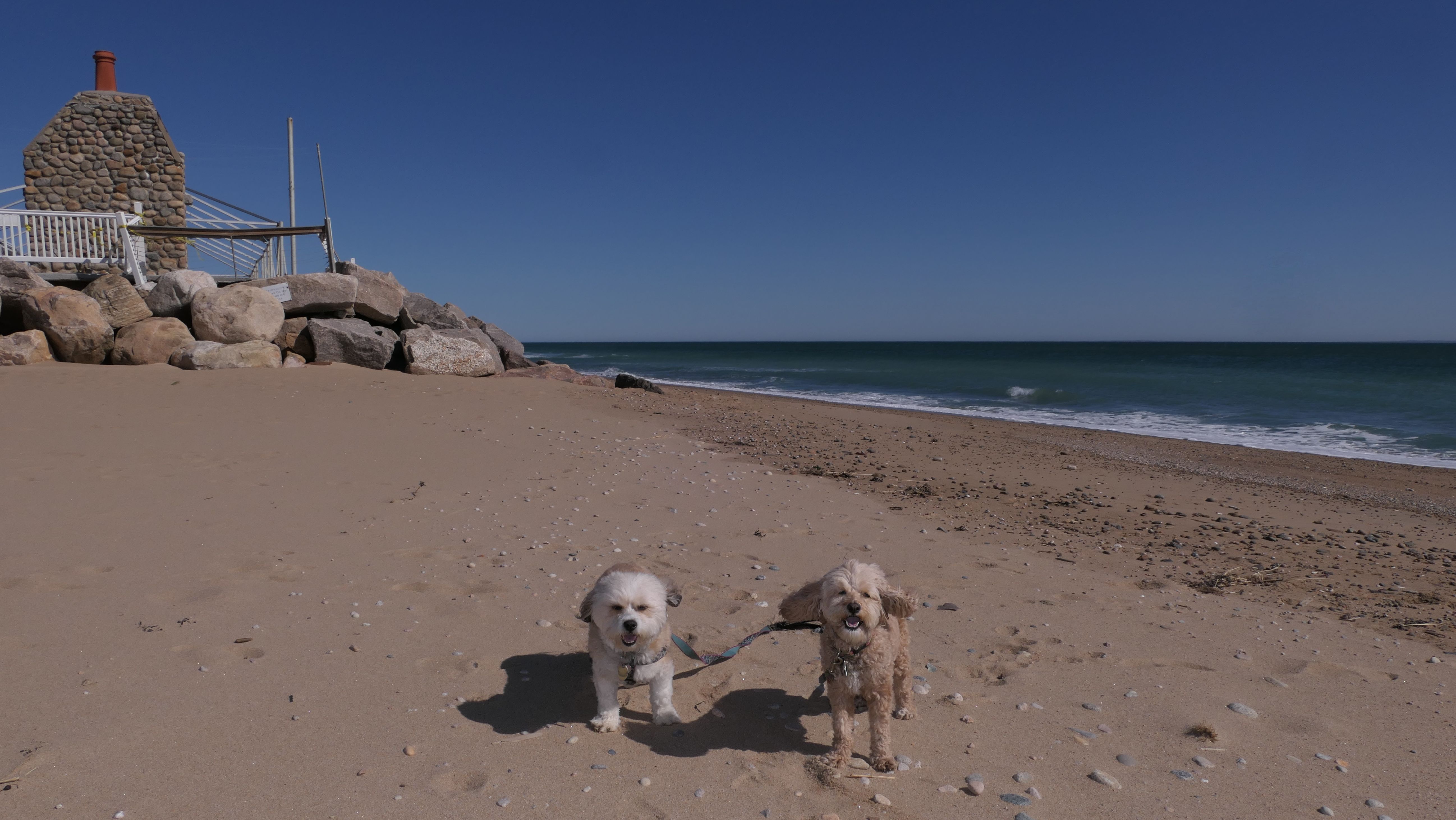 This is a public beach in the Watch Hill section of Westerly. The "Watch Hill Lighthouse Village Loop" in the All-Trails app utilizes a short section of this beach. There's a sign that says "No Pets", but you can ignore it. There is another sign that specifies that dogs are allowed in the off-season any time, and before 8 AM and after 6 PM during the summer months (May 2nd through Labor Day). This corresponds to what it says on the Town of Westerly's website. There's no dedicated parking for this beach. You have to park at Watch Hill and then access it through one of the right-of-way paths. We visited here a second time, and walked more of the beach. It's about two miles long and we probably walked about half of the total length before turning around. This time, it was an usually warm day in April. It had made it up to 90 degrees inland, but down here it was about 15 degrees cooler (just like the summer), and was very nice.