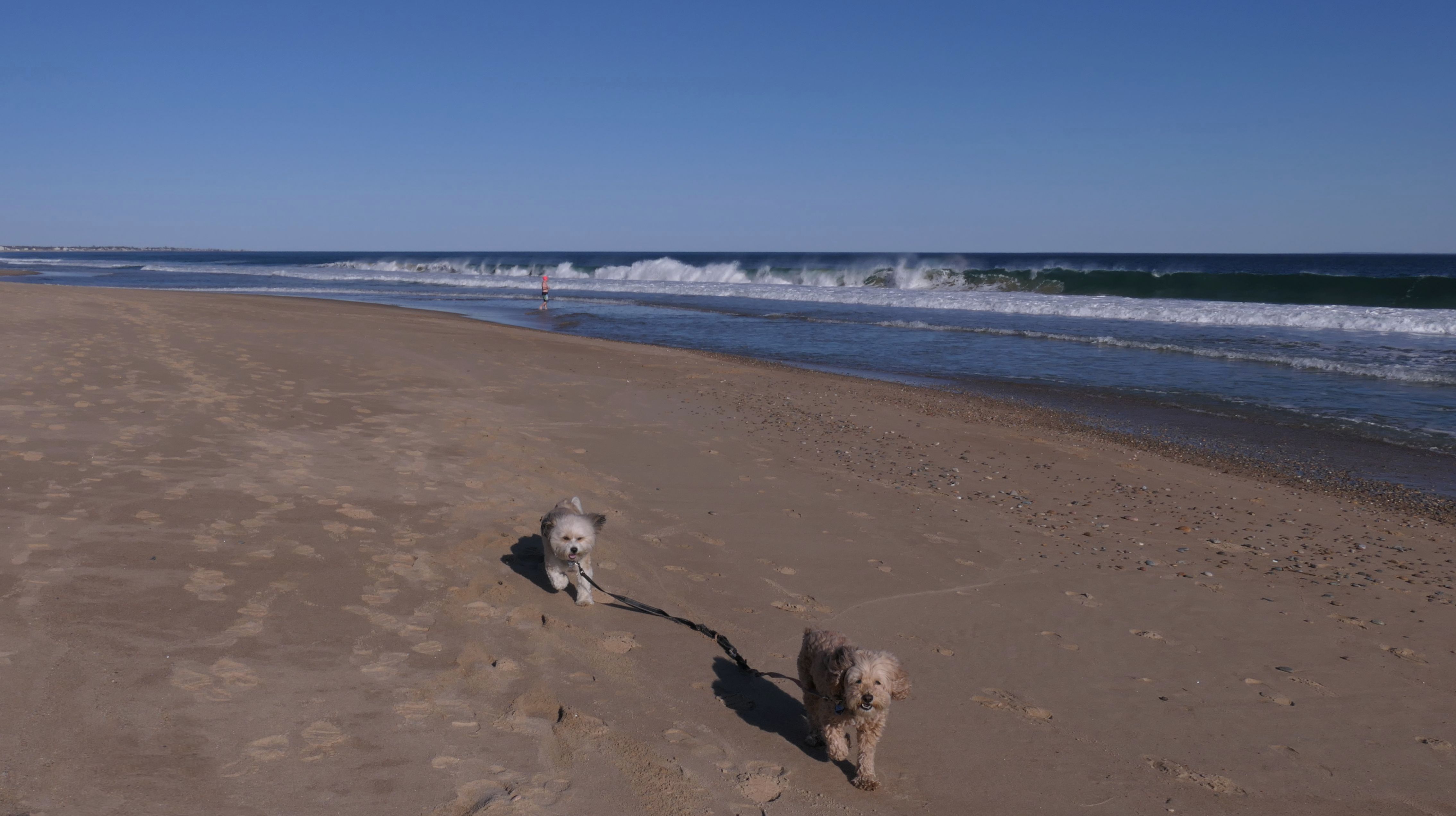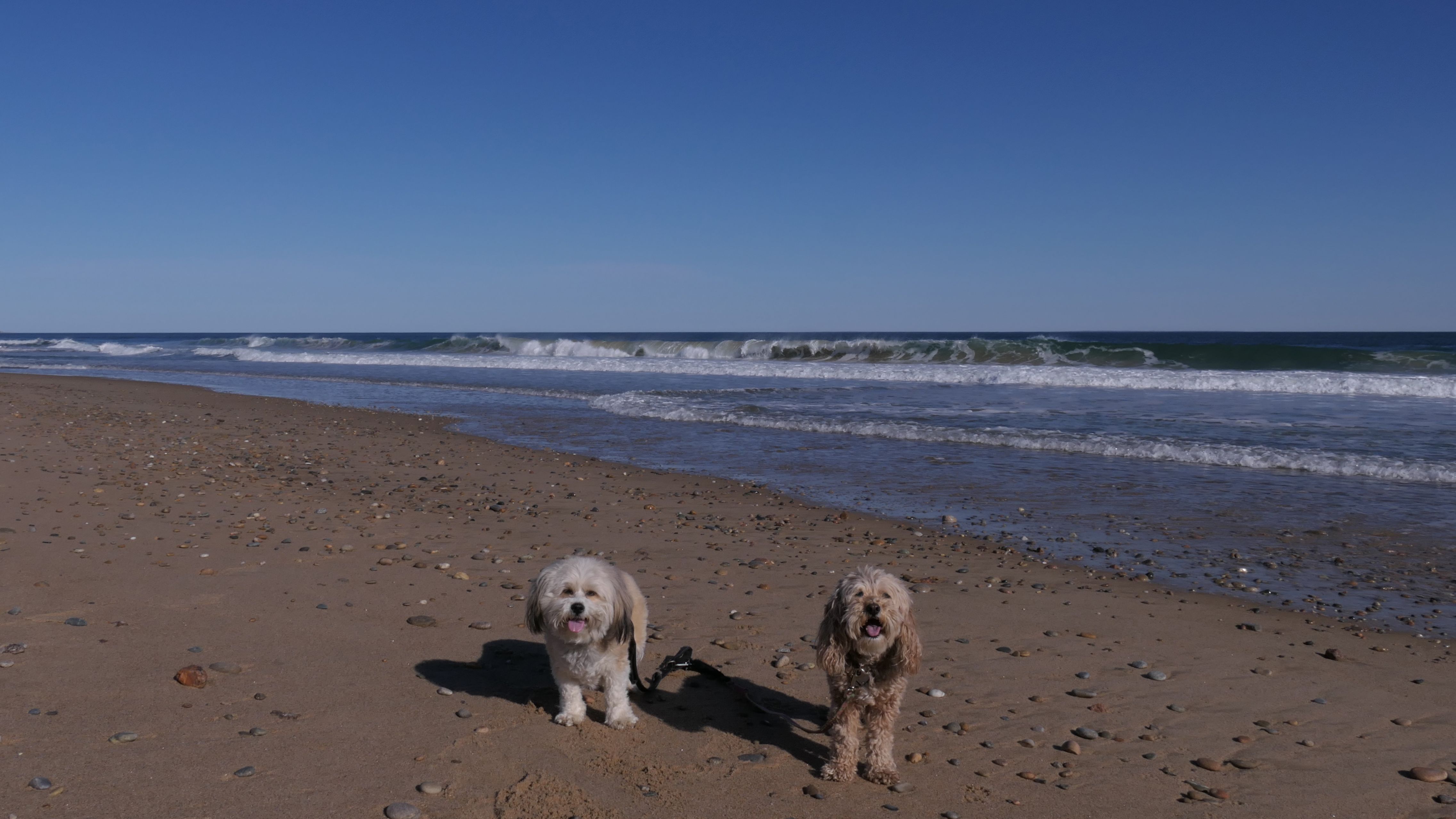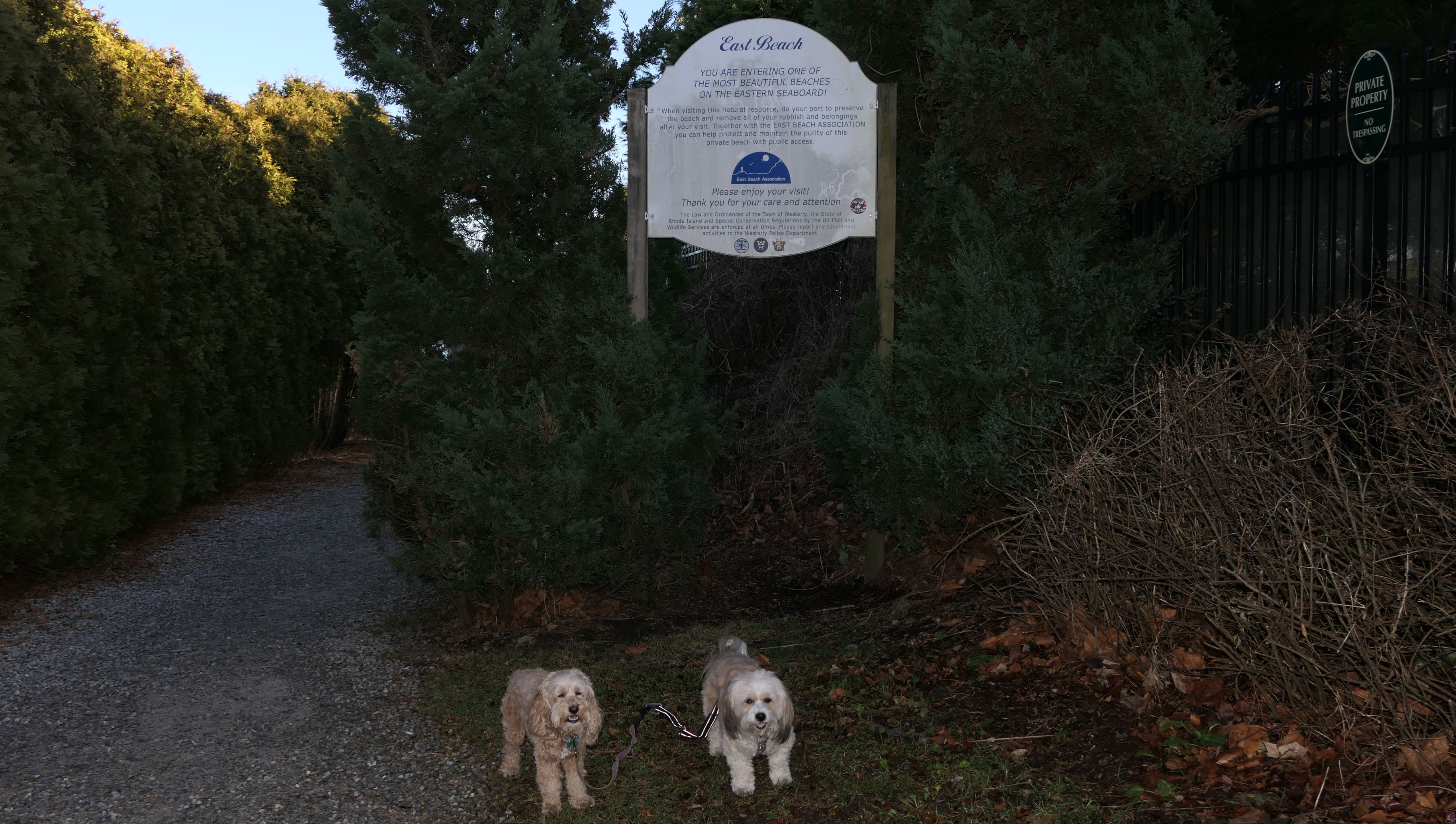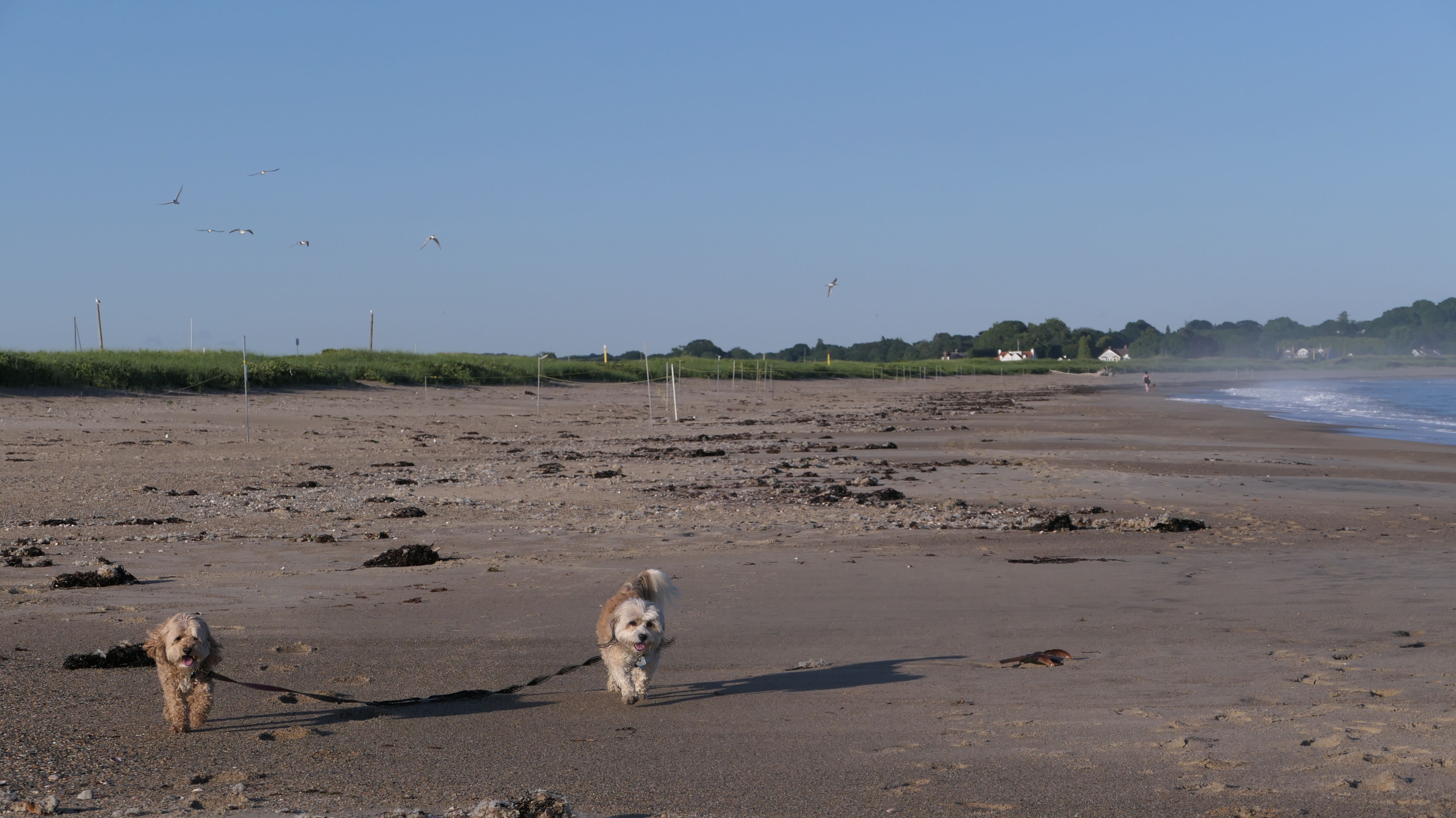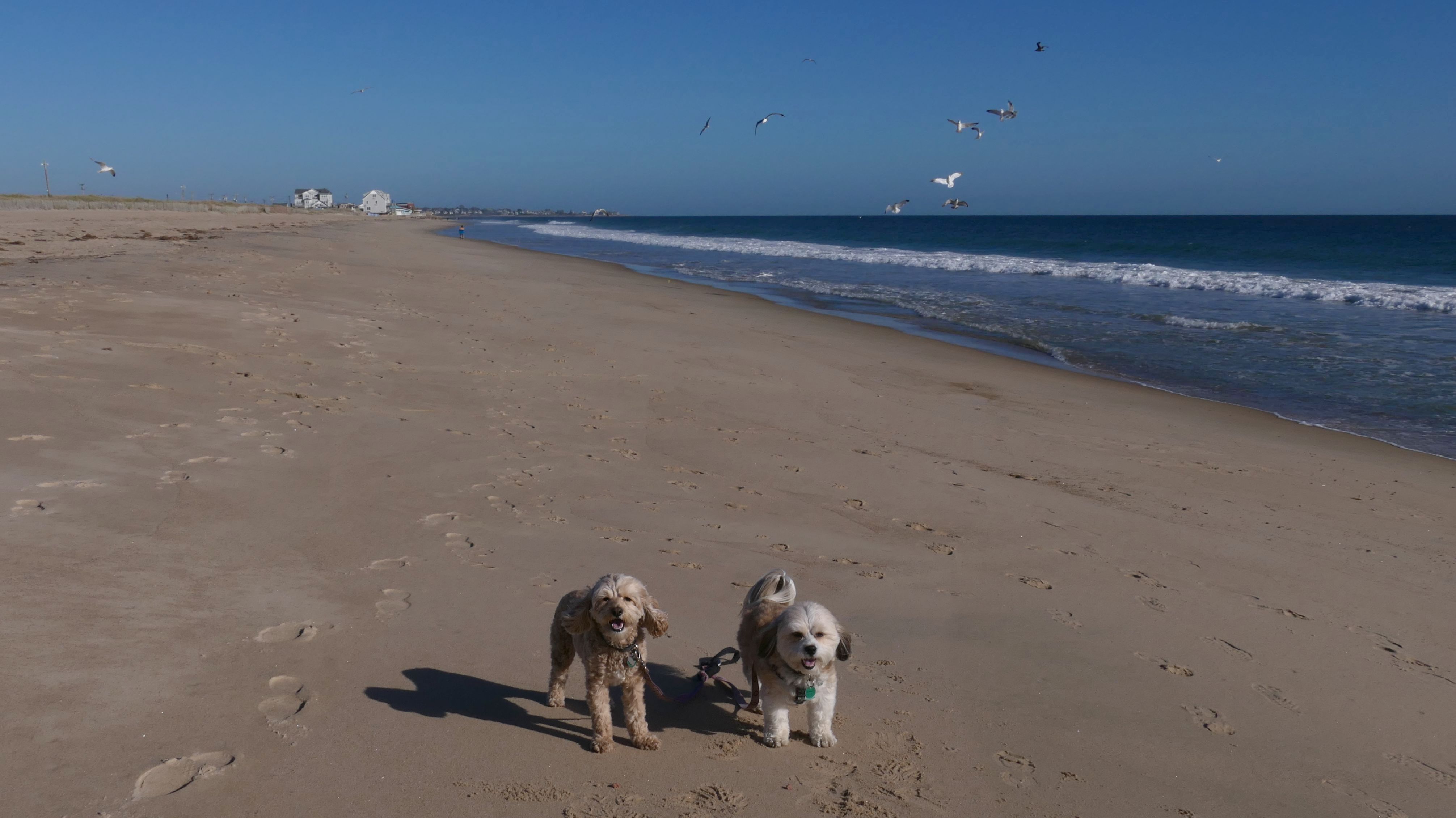 This is a public beach in the Watch Hill section of Westerly. The "Watch Hill Lighthouse Village Loop" in the All-Trails app utilizes a short section of this beach. There's a sign that says "No Pets", but you can ignore it. There is another sign that specifies that dogs are allowed in the off-season any time, and before 8 AM and after 6 PM during the summer months (May 2nd through Labor Day). This corresponds to what it says on the Town of Westerly's website. There's no dedicated parking for this beach. You have to park at Watch Hill and then access it through one of the right-of-way paths. We visited here a second time, and walked more of the beach. It's about two miles long and we probably walked about half of the total length before turning around. This time, it was an usually warm day in April. It had made it up to 90 degrees inland, but down here it was about 15 degrees cooler (just like the summer), and was very nice.