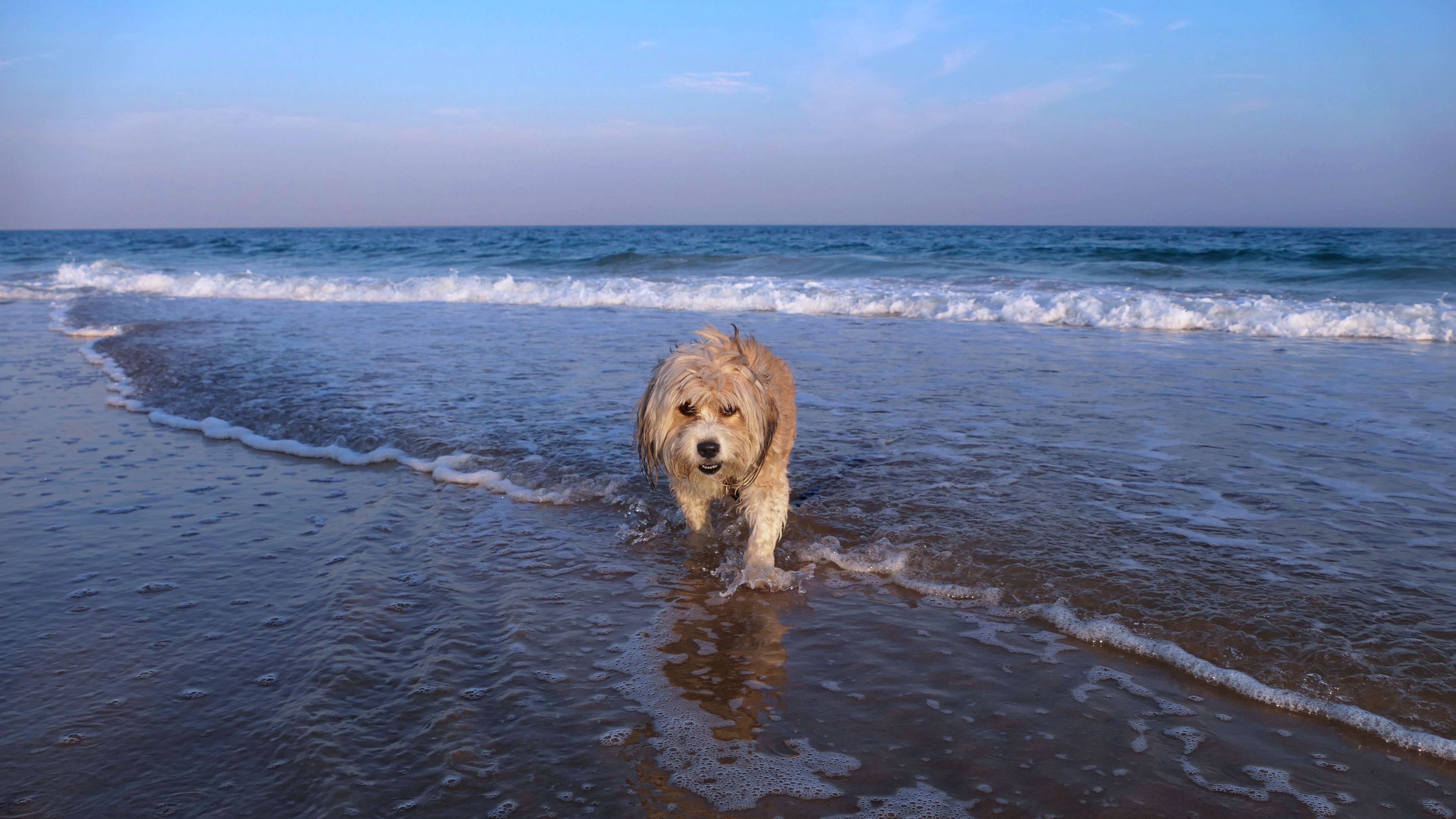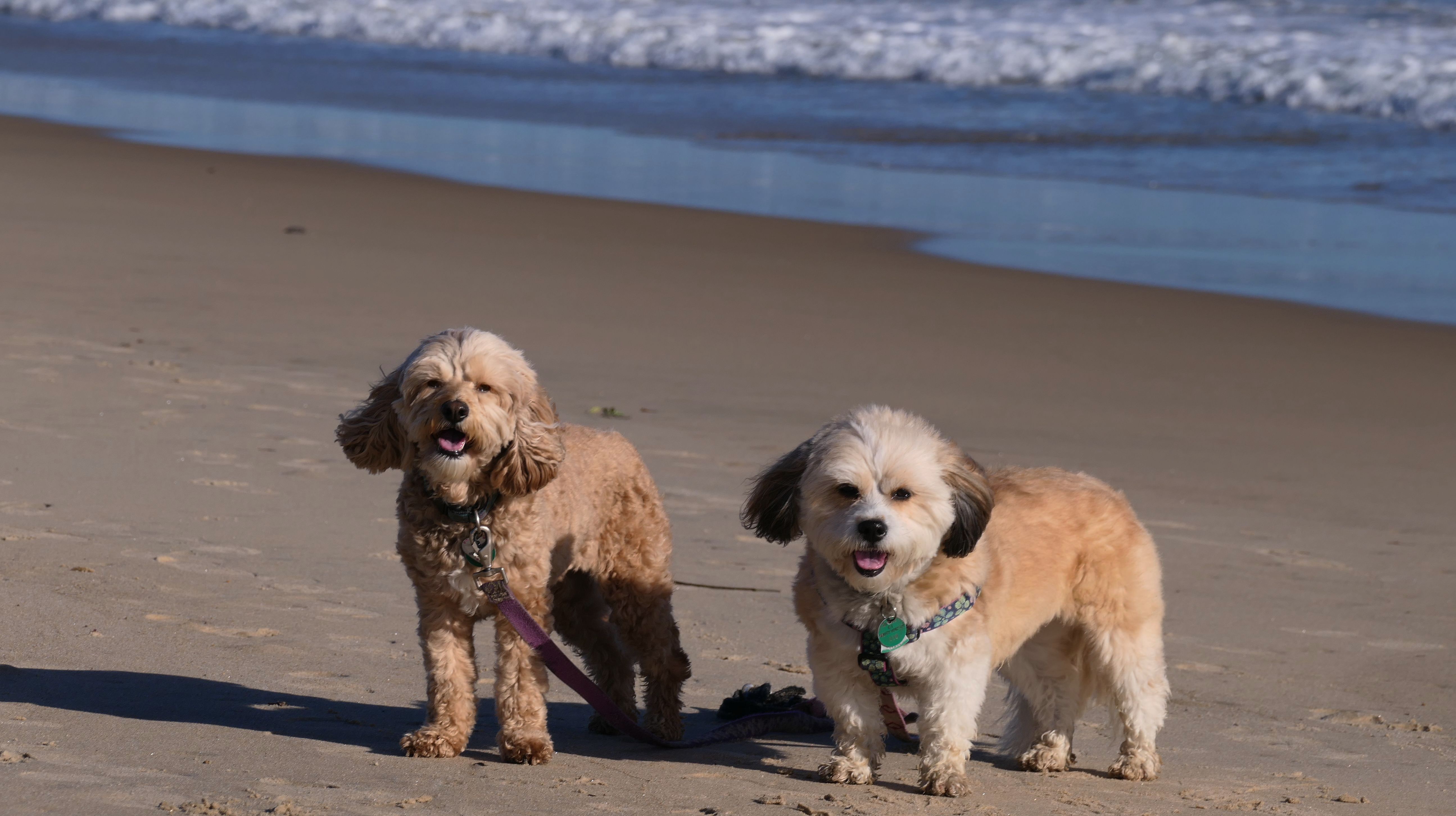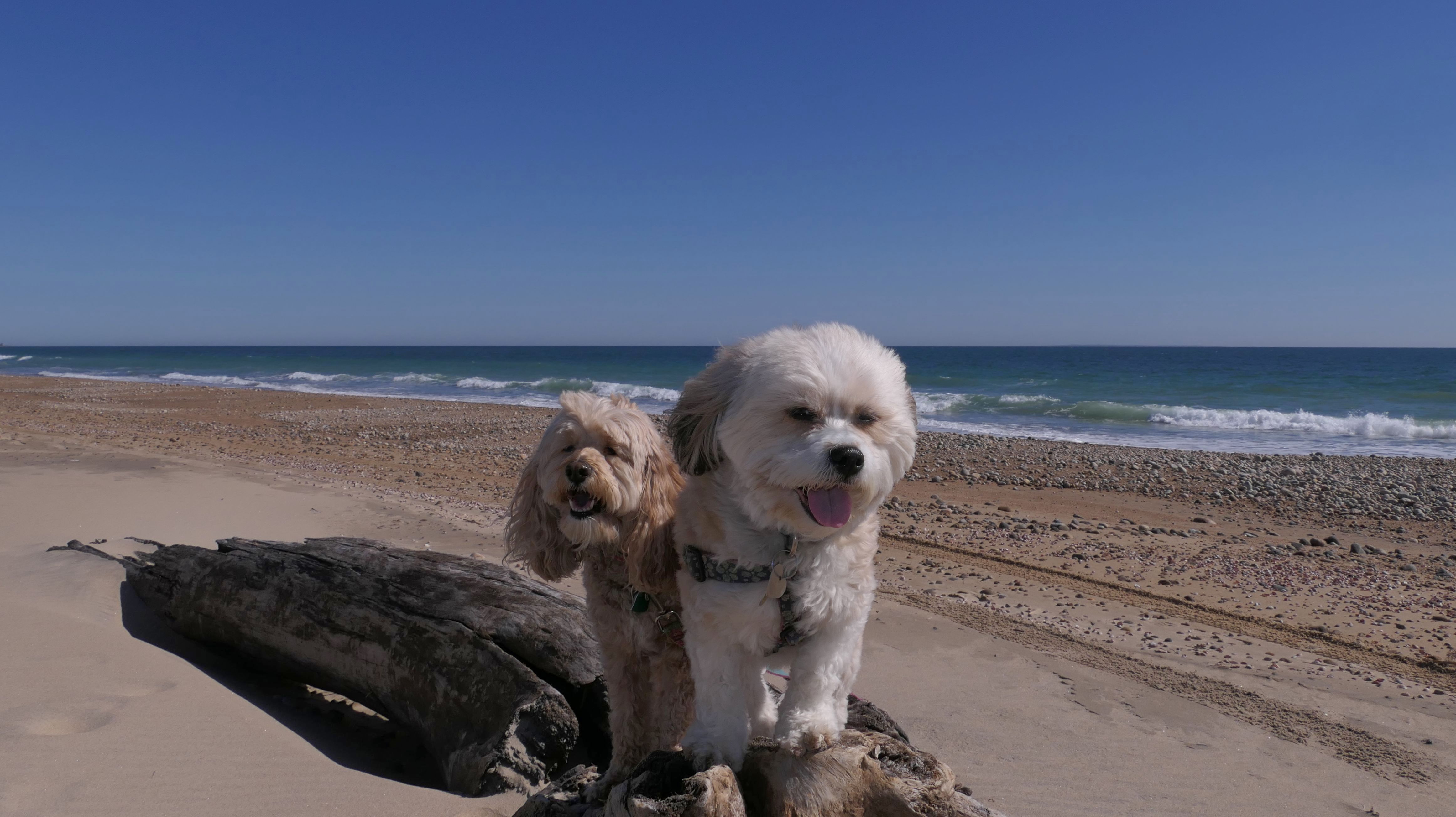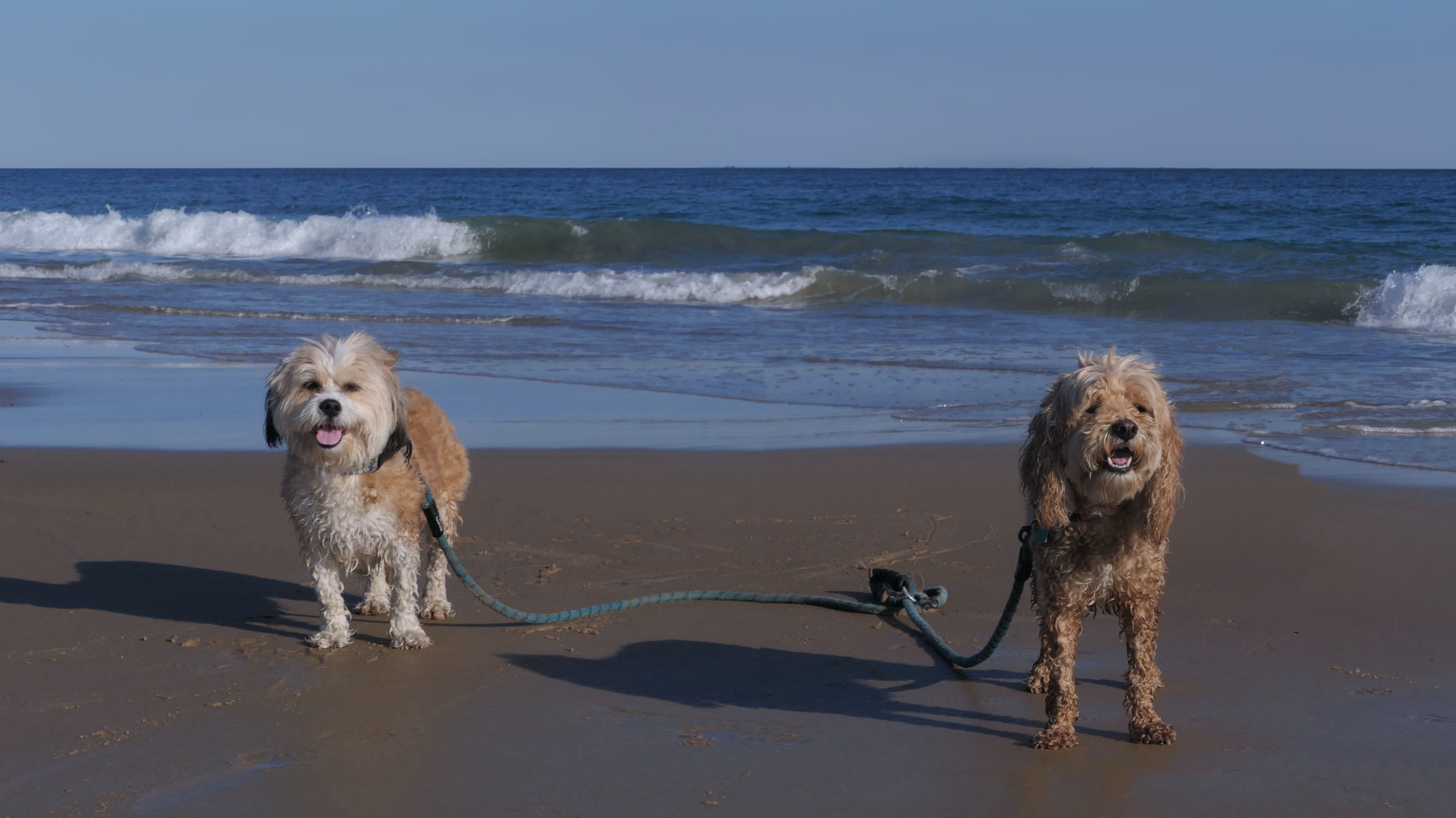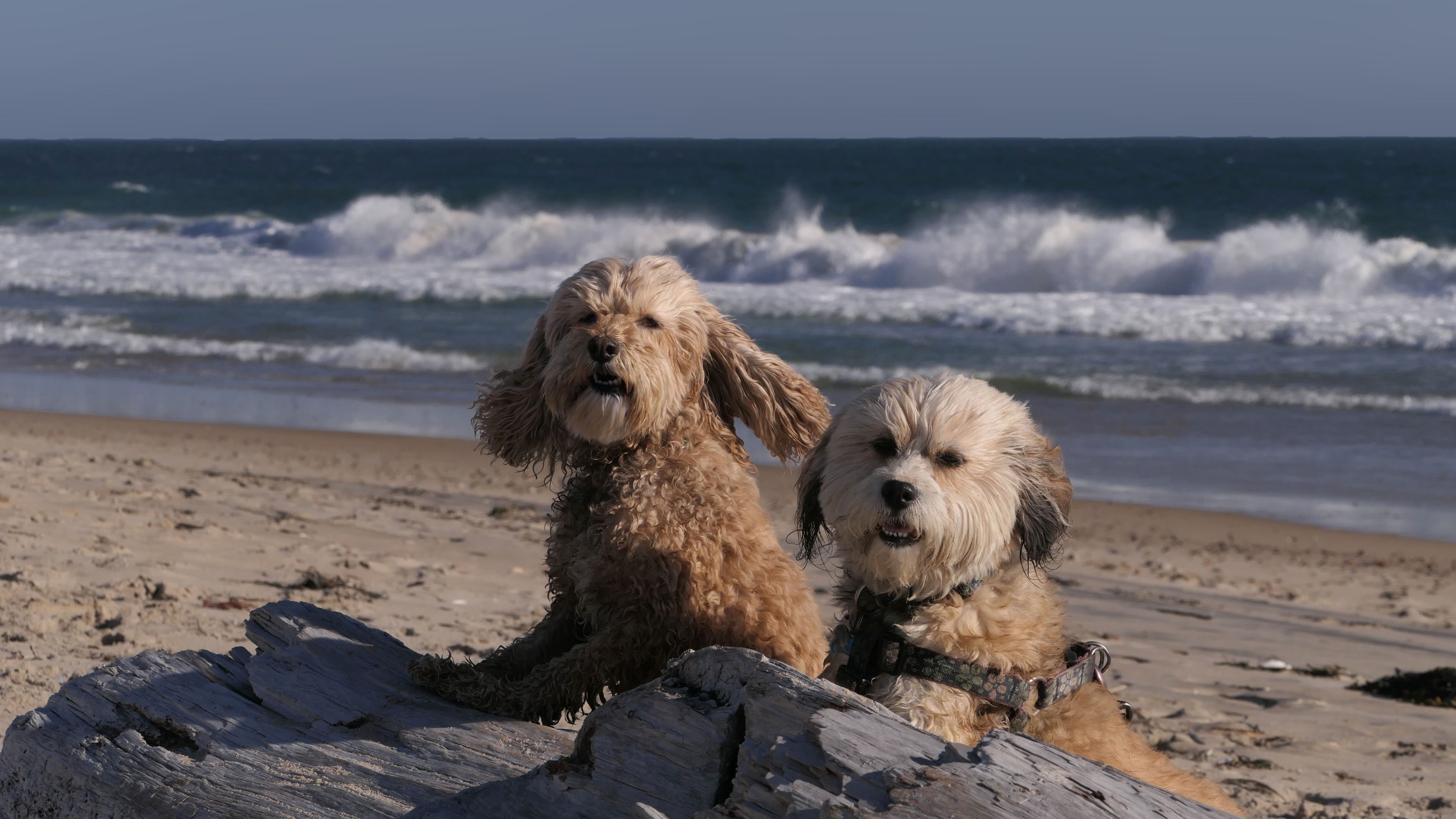 This was a cold and windy day at the beach. We walked the loop around the beach. We got two thirds of the way through the loop, and came to a point where we either had to pass through an inlet, or turn around and go back. Keep in mind, it was about 30 degrees and windy, so naturally we walked through the inlet. The dogs didn't seem to care. I was wearing sneakers, but fortunately had wool socks that kept my feet from freezing. The first picture below is one of my all time favorite pictures I've taken of the dogs.