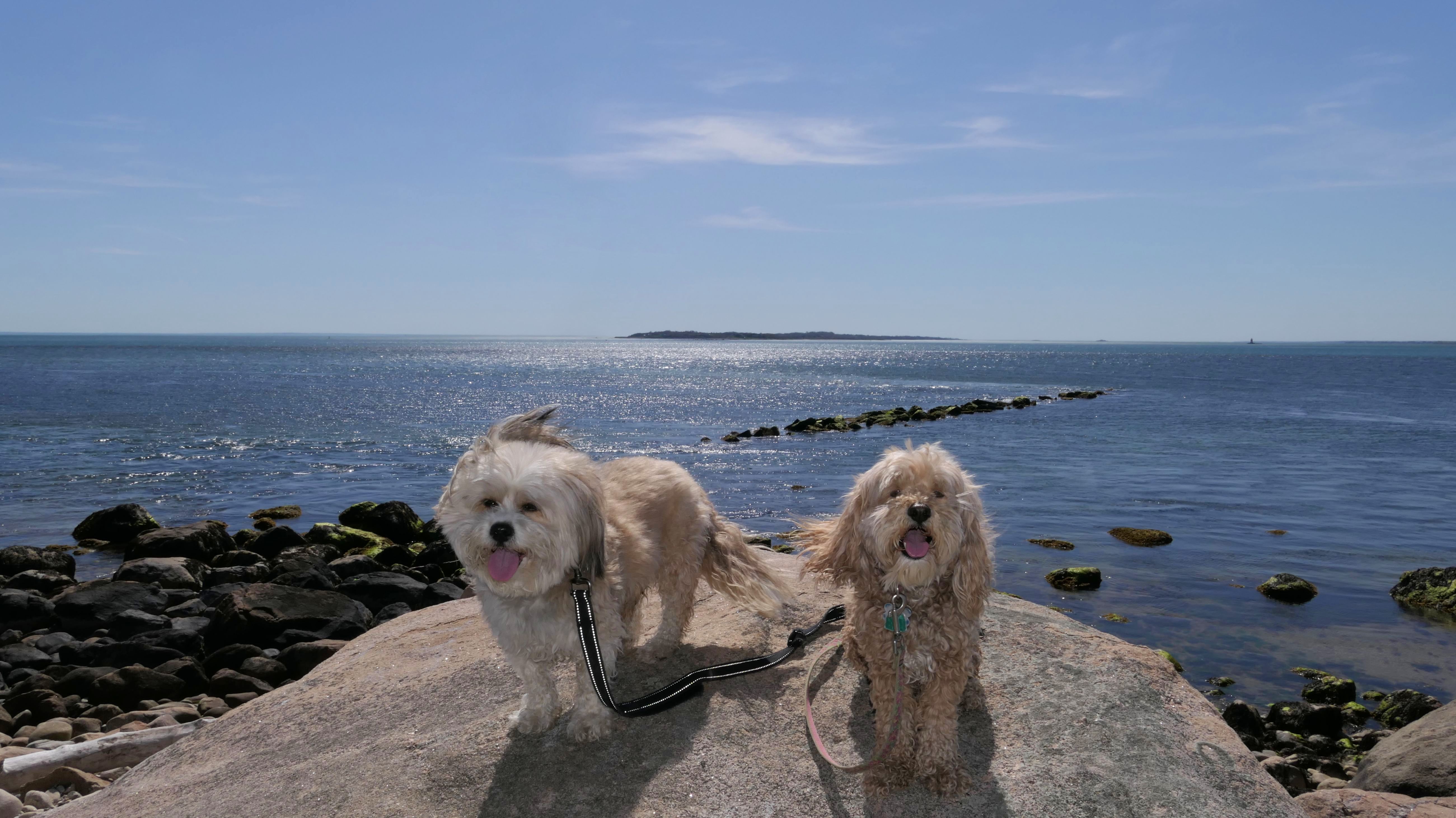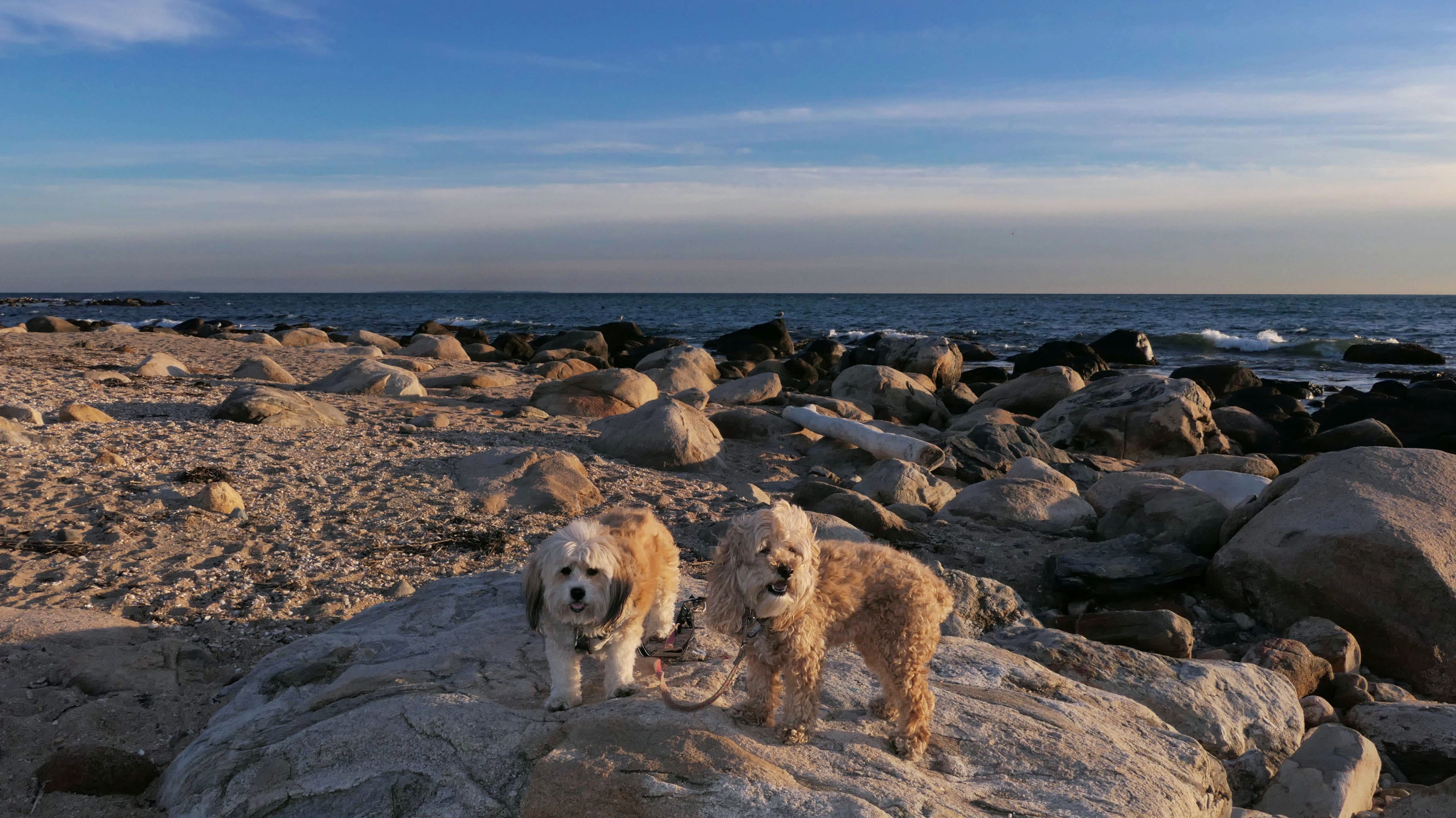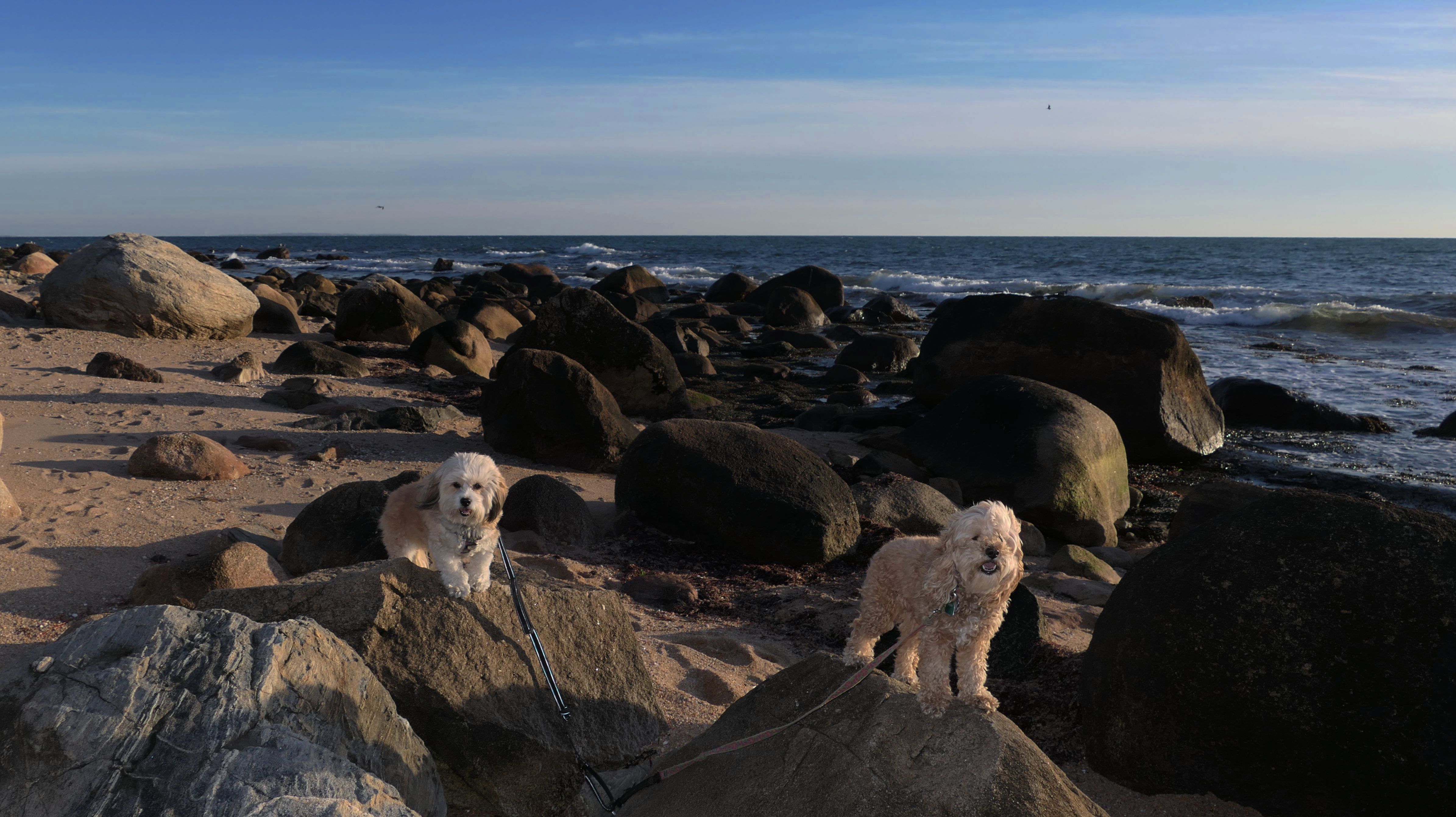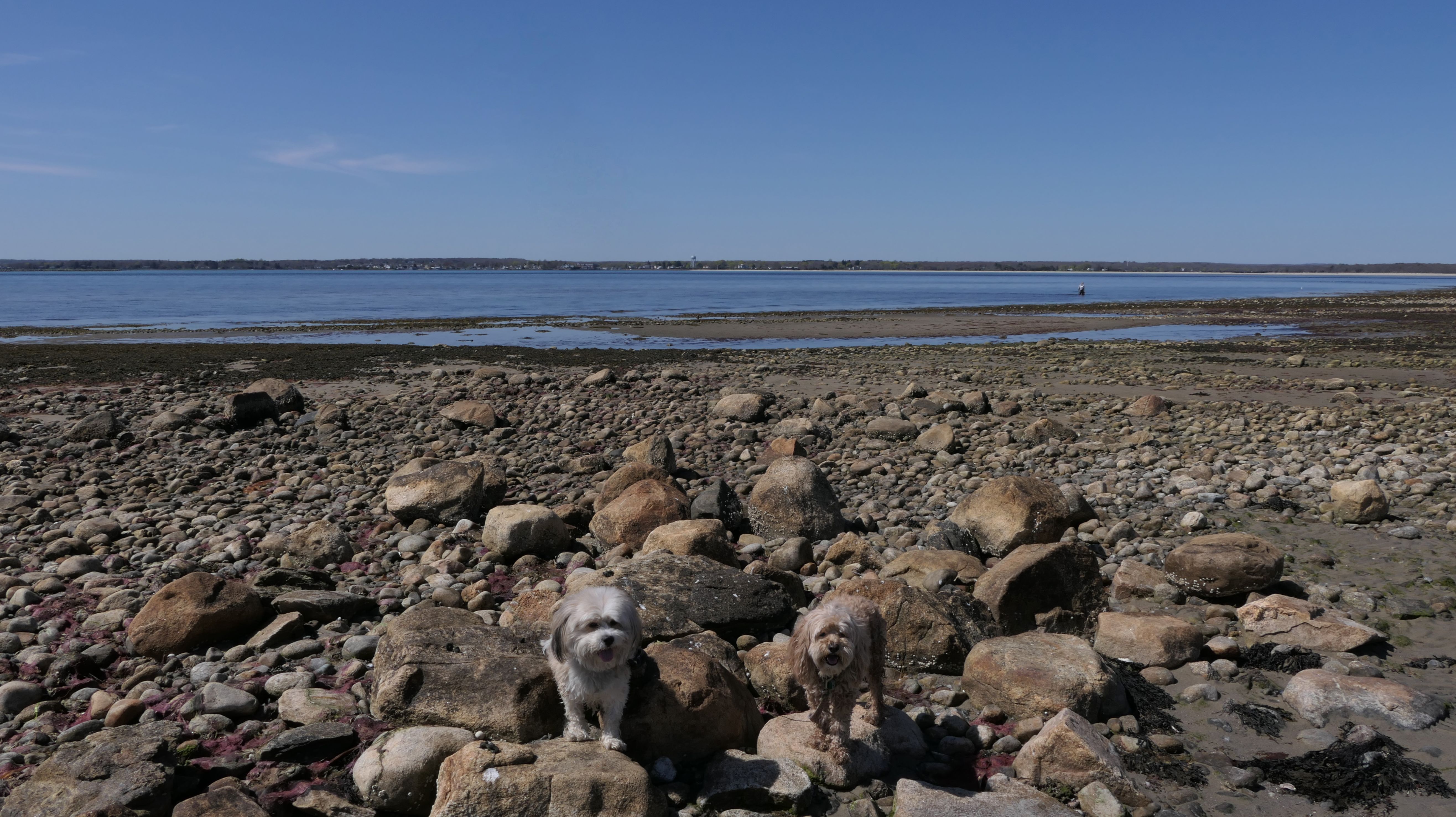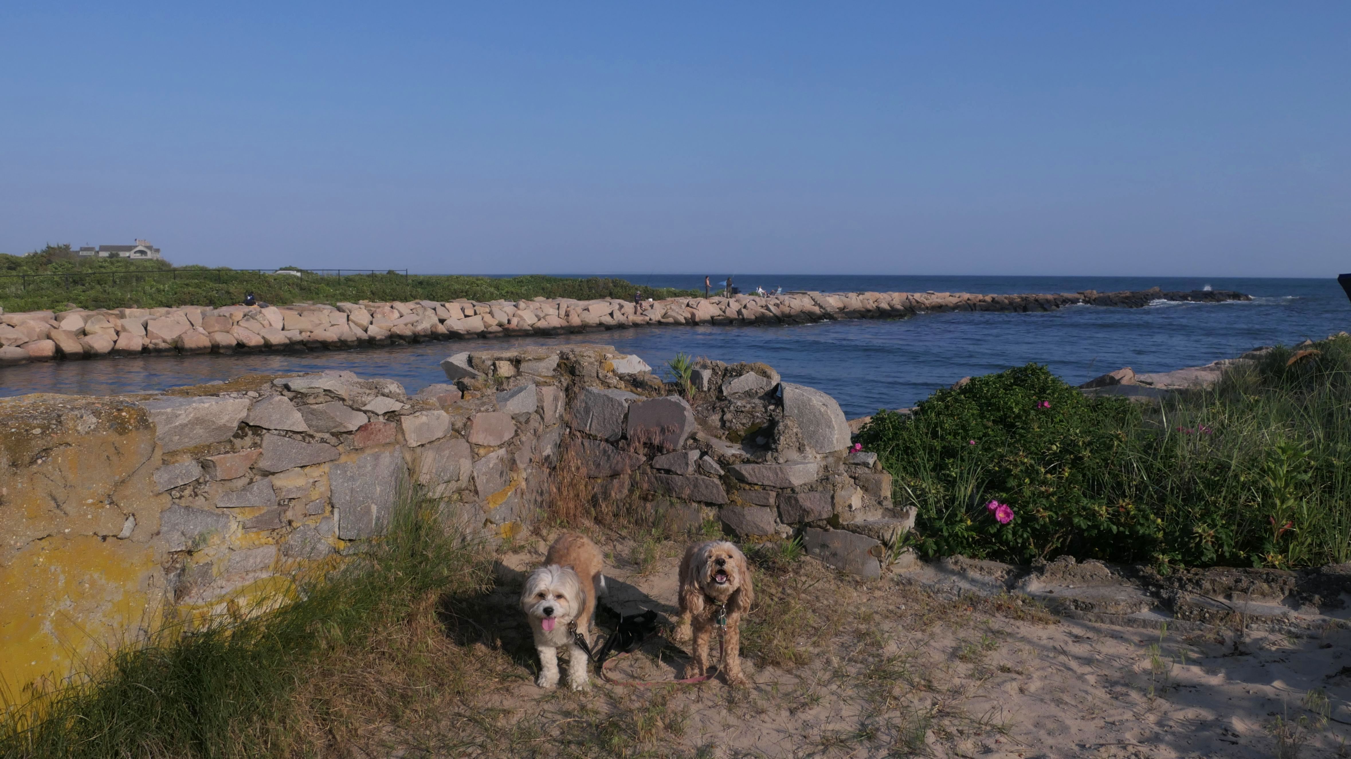 We've been here many times before, but this was only the second time we managed to complete the full loop. The first was during our very first trip to Westerly, way back in December 2020. We attempted it again last summer, but high tide and overgrown trails around the rocks stopped us short. This time, we arrived right at low tide and started out on the bay side. The dogs love this part—it's calm, and they enjoy splashing around in the gentle water. Near the tip of the point, there's a small stream we have to cross to finish the loop. Back in 2020, it was cold and windy, and I had to wade through the stream to avoid turning back. Today, I still had to cross it, but the water was so low it felt more like stepping through a puddle. For the first time, we made it up to the ruins—remnants of an old military fort hidden among the dunes. The narrow trails leading there were just barely passable, and they'll be even tougher to navigate later in the summer when growth thickens. It was exciting to explore something new in a place we thought we knew well. (In 2020, we had skirted the rocks to complete the loop—I didn't even know the ruins existed then.) We wrapped up the walk along the ocean side, where the views of Block Island were strikingly clear. Usually, the waves on that side are pounding, but today the sea was surprisingly calm. With the seasonal dog restrictions starting May 2nd—when pups are only allowed after 6 PM—this was one of the last afternoons we could enjoy this walk freely. All in all, it was a great three mile loop on a beautiful spring day.