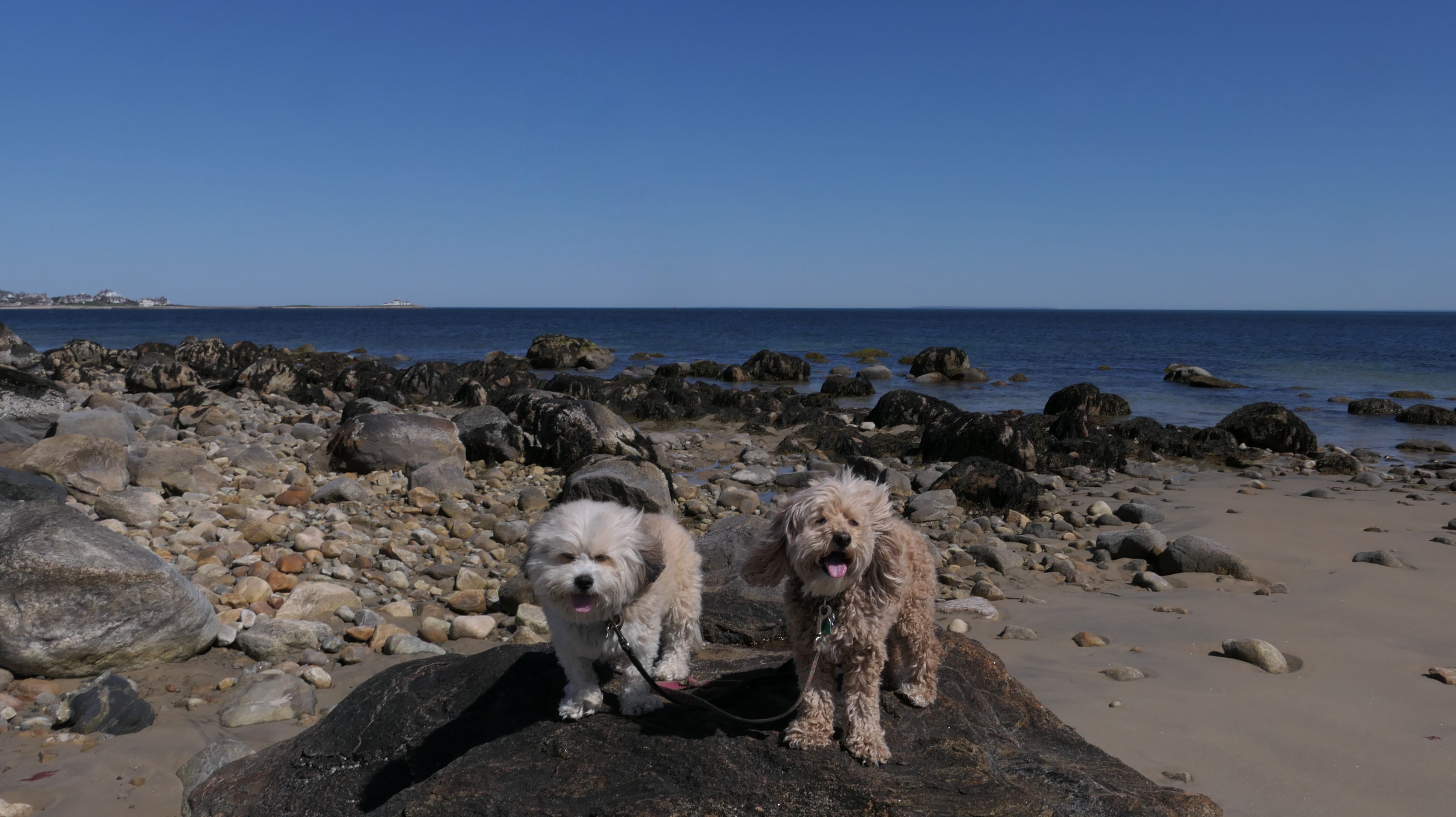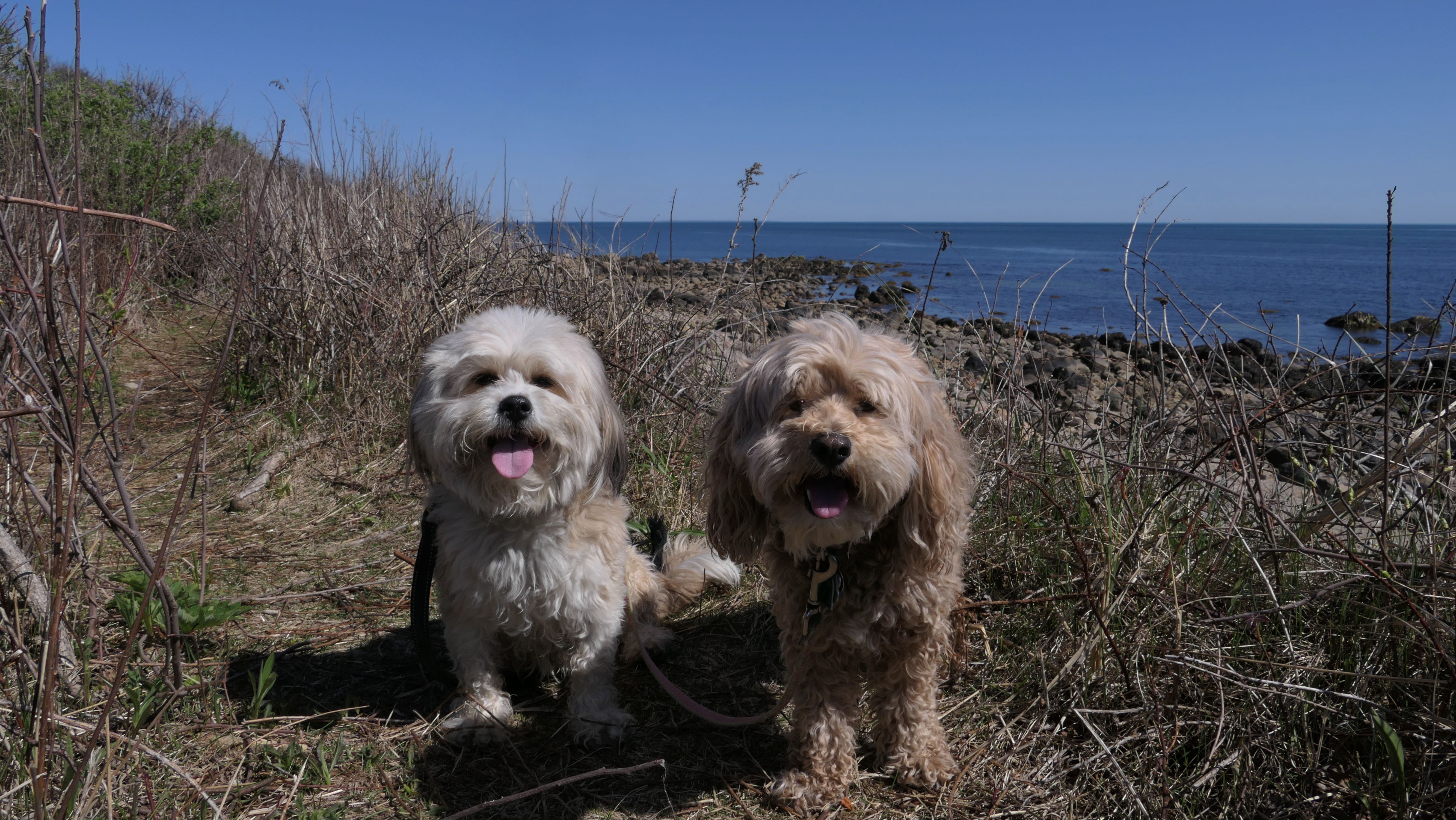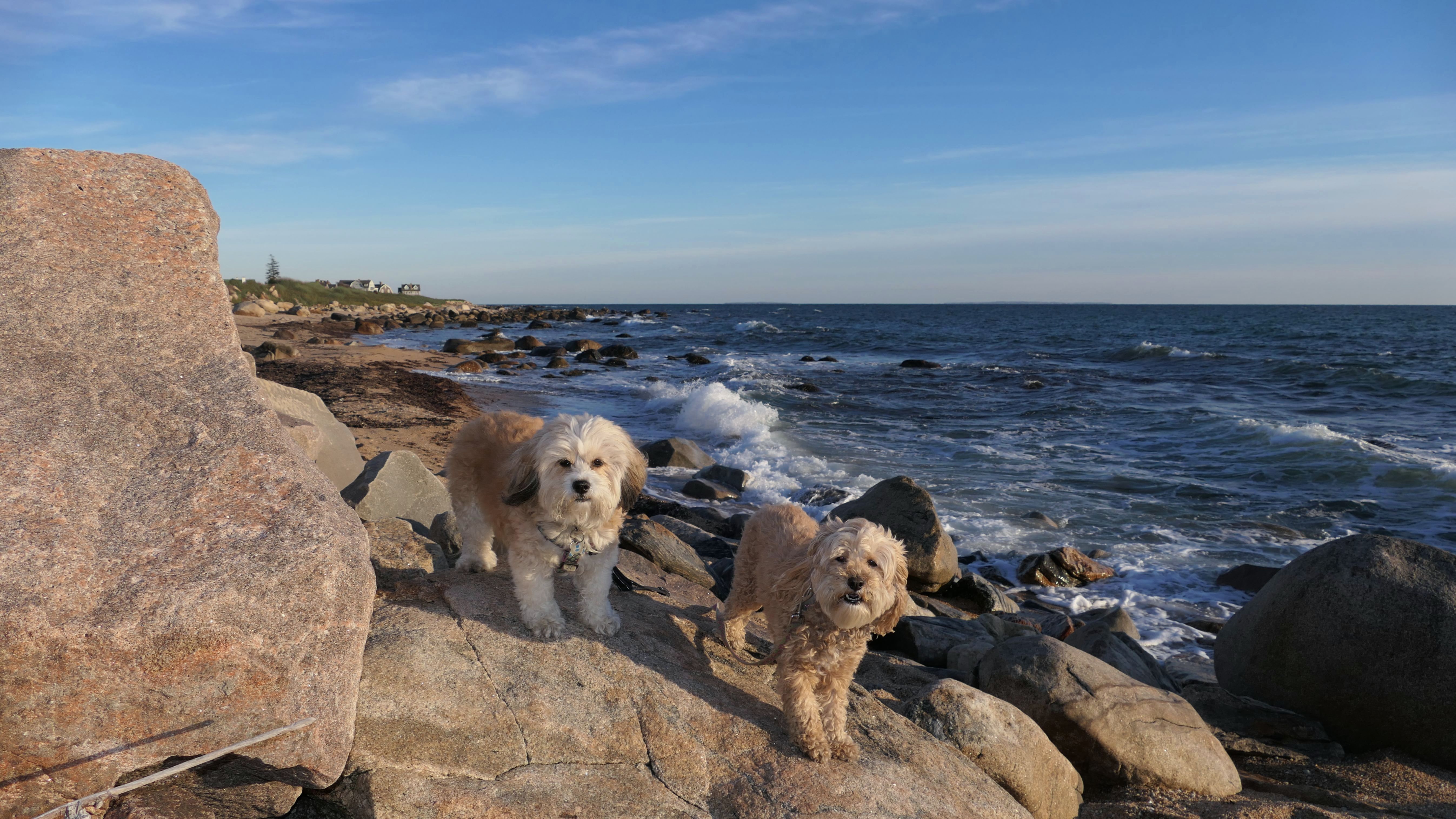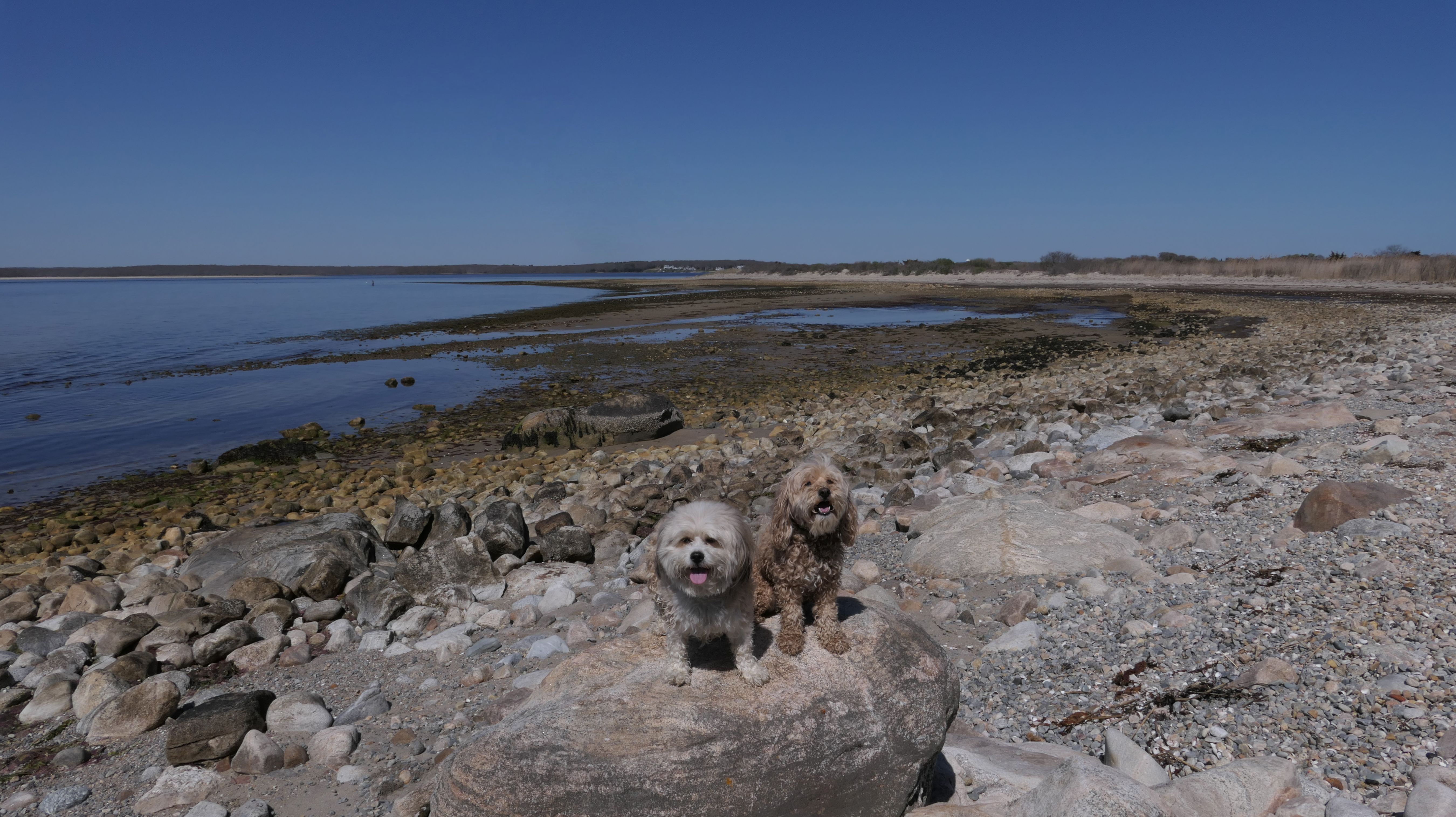 We've been here many times before, but this was only the second time we managed to complete the full loop. The first was during our very first trip to Westerly, way back in December 2020. We attempted it again last summer, but high tide and overgrown trails around the rocks stopped us short. This time, we arrived right at low tide and started out on the bay side. The dogs love this part—it's calm, and they enjoy splashing around in the gentle water. Near the tip of the point, there's a small stream we have to cross to finish the loop. Back in 2020, it was cold and windy, and I had to wade through the stream to avoid turning back. Today, I still had to cross it, but the water was so low it felt more like stepping through a puddle. For the first time, we made it up to the ruins—remnants of an old military fort hidden among the dunes. The narrow trails leading there were just barely passable, and they'll be even tougher to navigate later in the summer when growth thickens. It was exciting to explore something new in a place we thought we knew well. (In 2020, we had skirted the rocks to complete the loop—I didn't even know the ruins existed then.) We wrapped up the walk along the ocean side, where the views of Block Island were strikingly clear. Usually, the waves on that side are pounding, but today the sea was surprisingly calm. With the seasonal dog restrictions starting May 2nd—when pups are only allowed after 6 PM—this was one of the last afternoons we could enjoy this walk freely. All in all, it was a great three mile loop on a beautiful spring day.