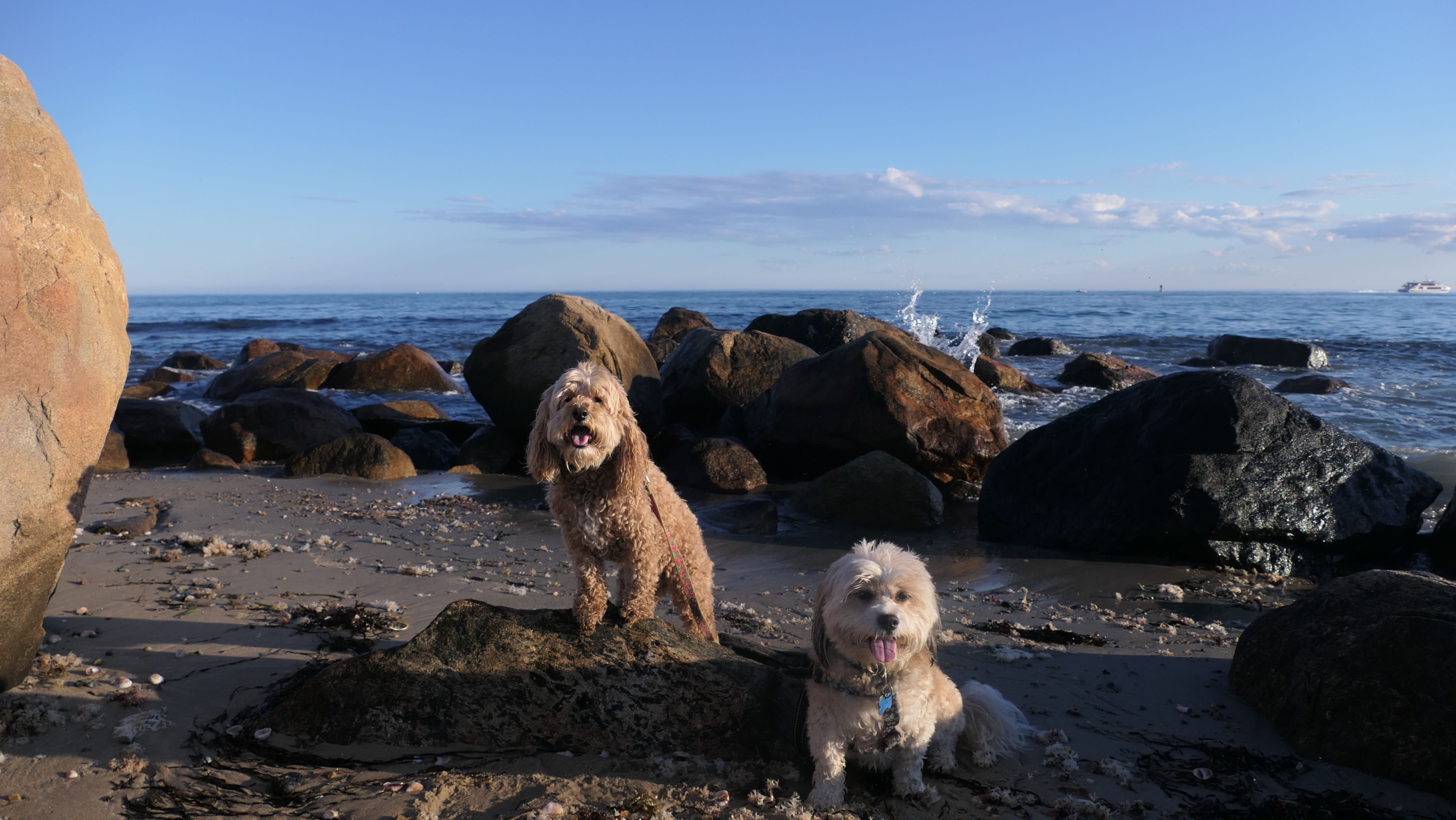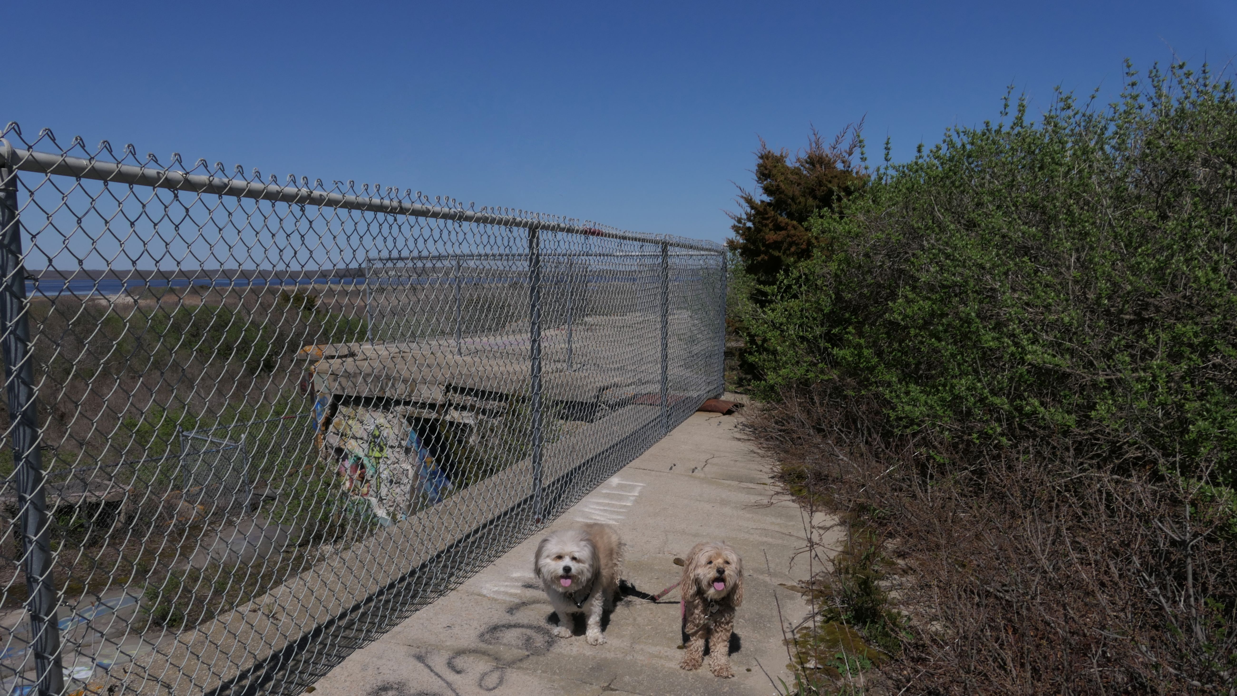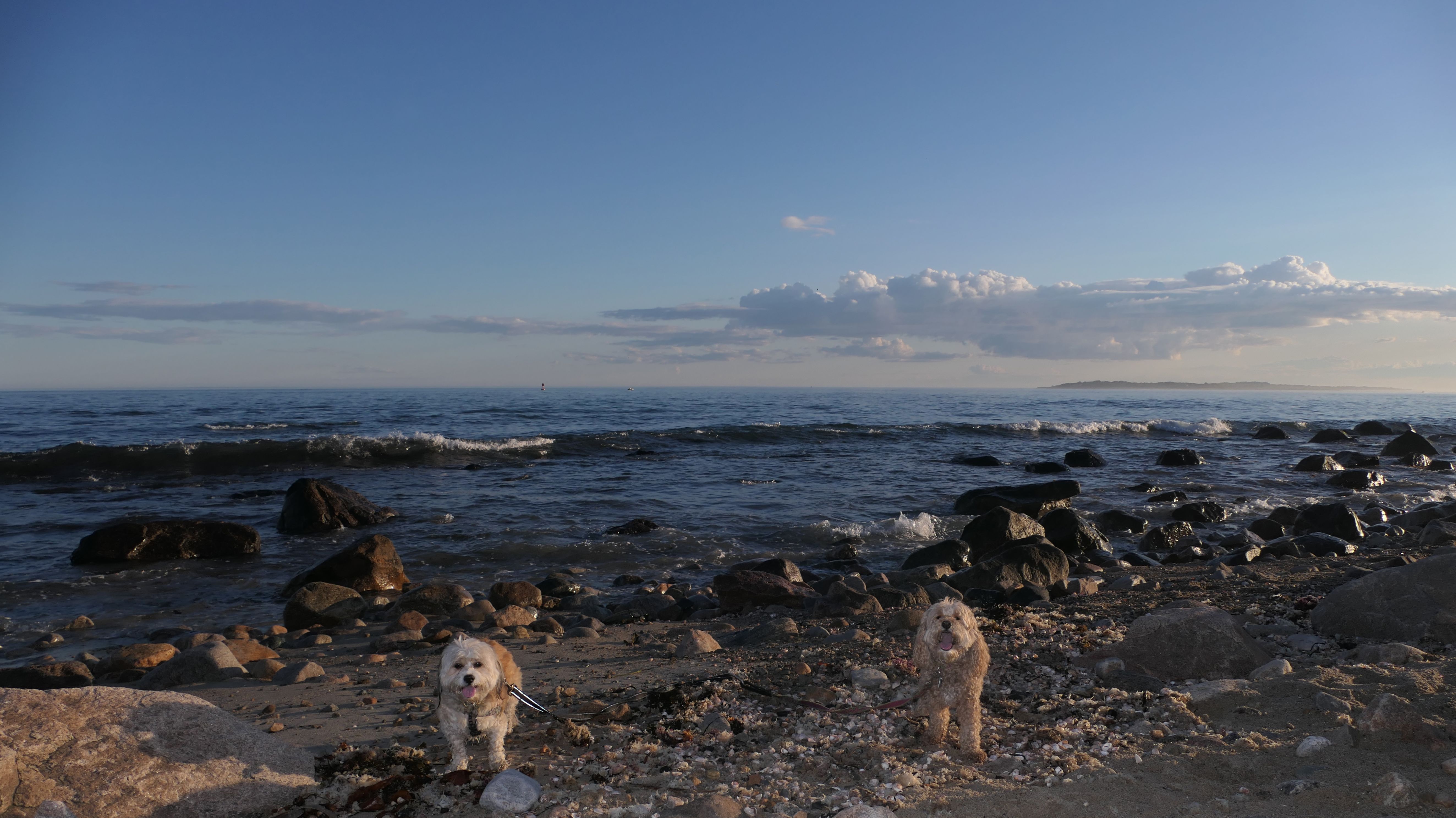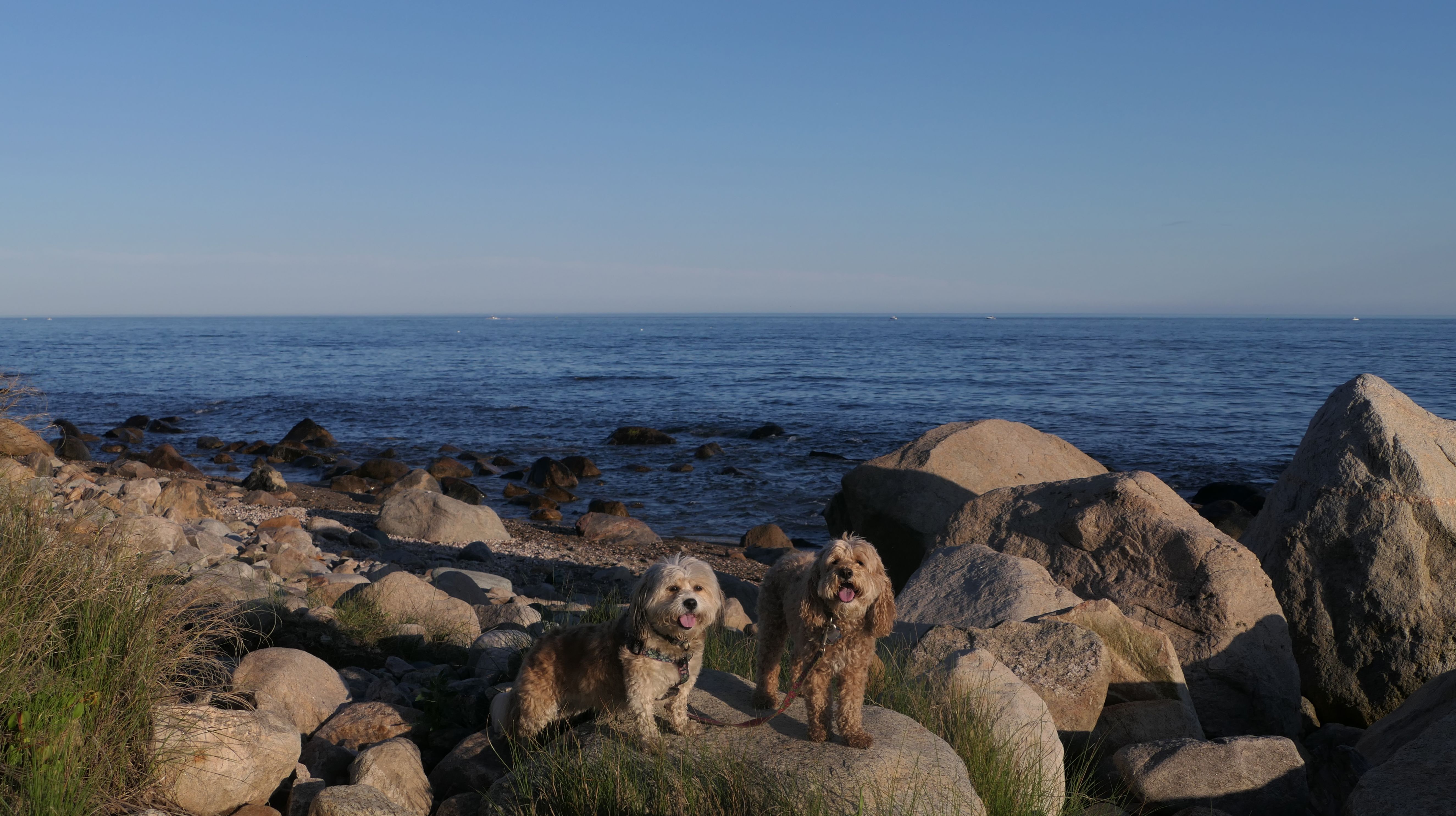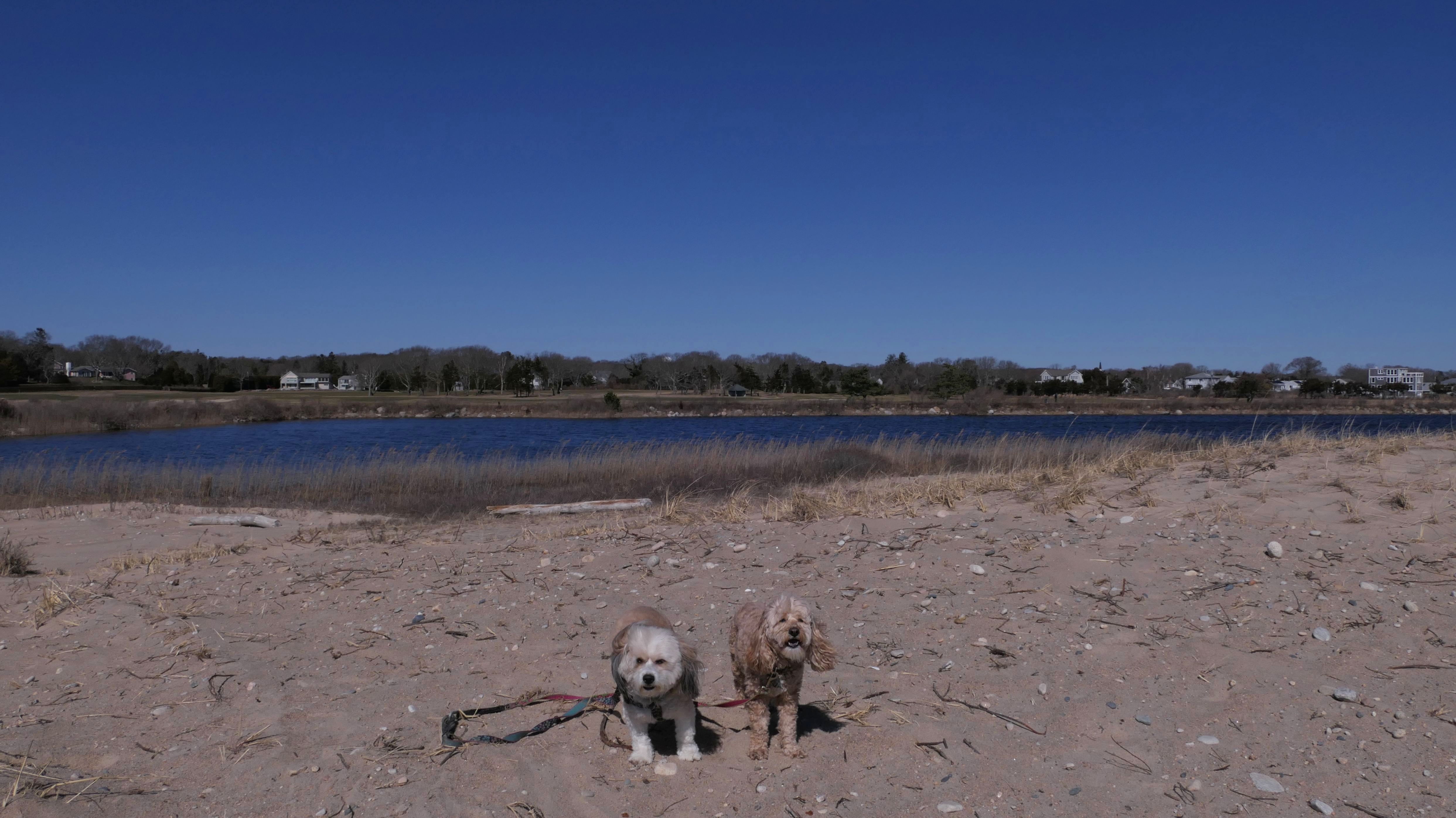 We've been here many times before, but this was only the second time we managed to complete the full loop. The first was during our very first trip to Westerly, way back in December 2020. We attempted it again last summer, but high tide and overgrown trails around the rocks stopped us short. This time, we arrived right at low tide and started out on the bay side. The dogs love this part—it's calm, and they enjoy splashing around in the gentle water. Near the tip of the point, there's a small stream we have to cross to finish the loop. Back in 2020, it was cold and windy, and I had to wade through the stream to avoid turning back. Today, I still had to cross it, but the water was so low it felt more like stepping through a puddle. For the first time, we made it up to the ruins—remnants of an old military fort hidden among the dunes. The narrow trails leading there were just barely passable, and they'll be even tougher to navigate later in the summer when growth thickens. It was exciting to explore something new in a place we thought we knew well. (In 2020, we had skirted the rocks to complete the loop—I didn't even know the ruins existed then.) We wrapped up the walk along the ocean side, where the views of Block Island were strikingly clear. Usually, the waves on that side are pounding, but today the sea was surprisingly calm. With the seasonal dog restrictions starting May 2nd—when pups are only allowed after 6 PM—this was one of the last afternoons we could enjoy this walk freely. All in all, it was a great three mile loop on a beautiful spring day.