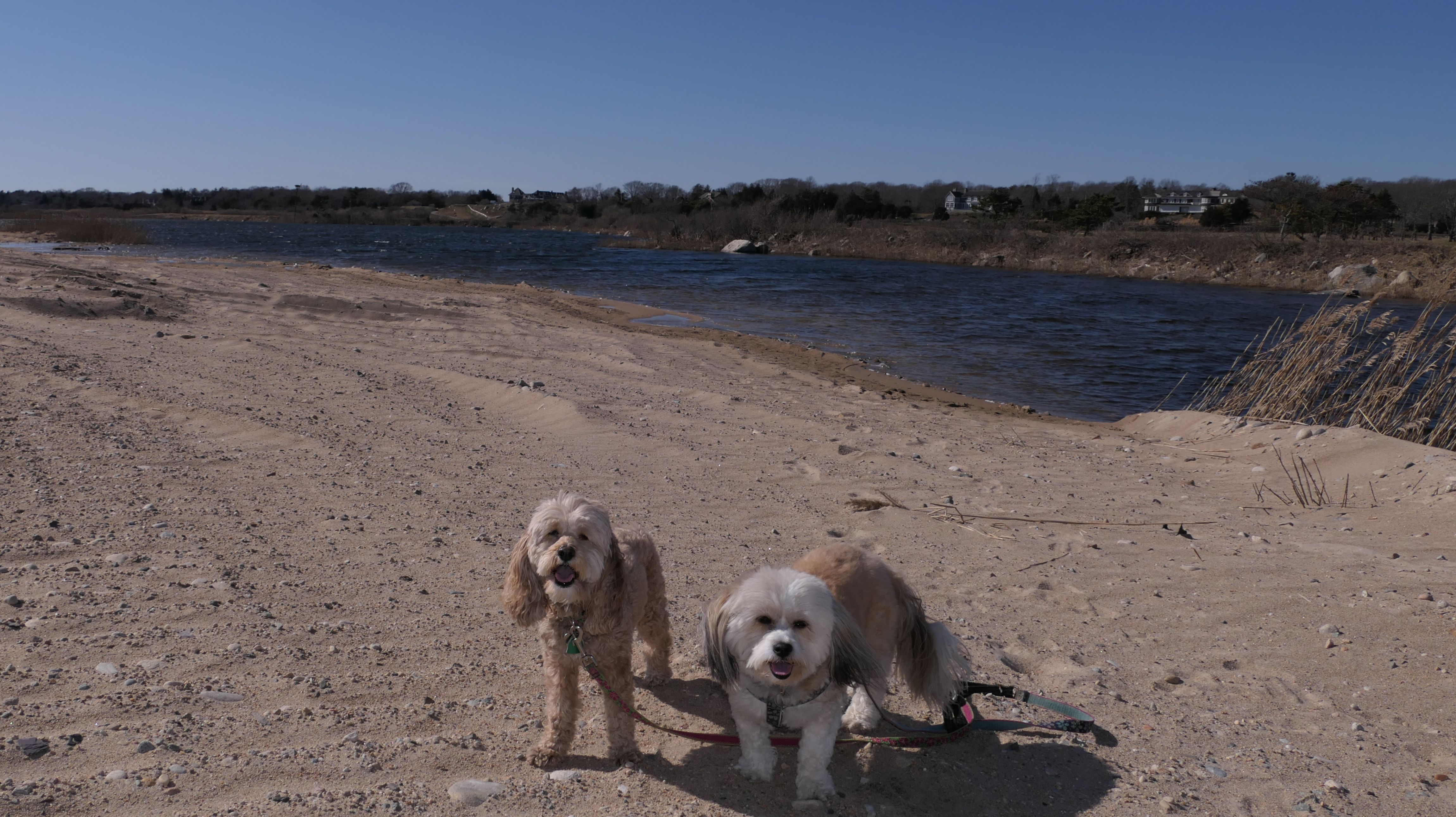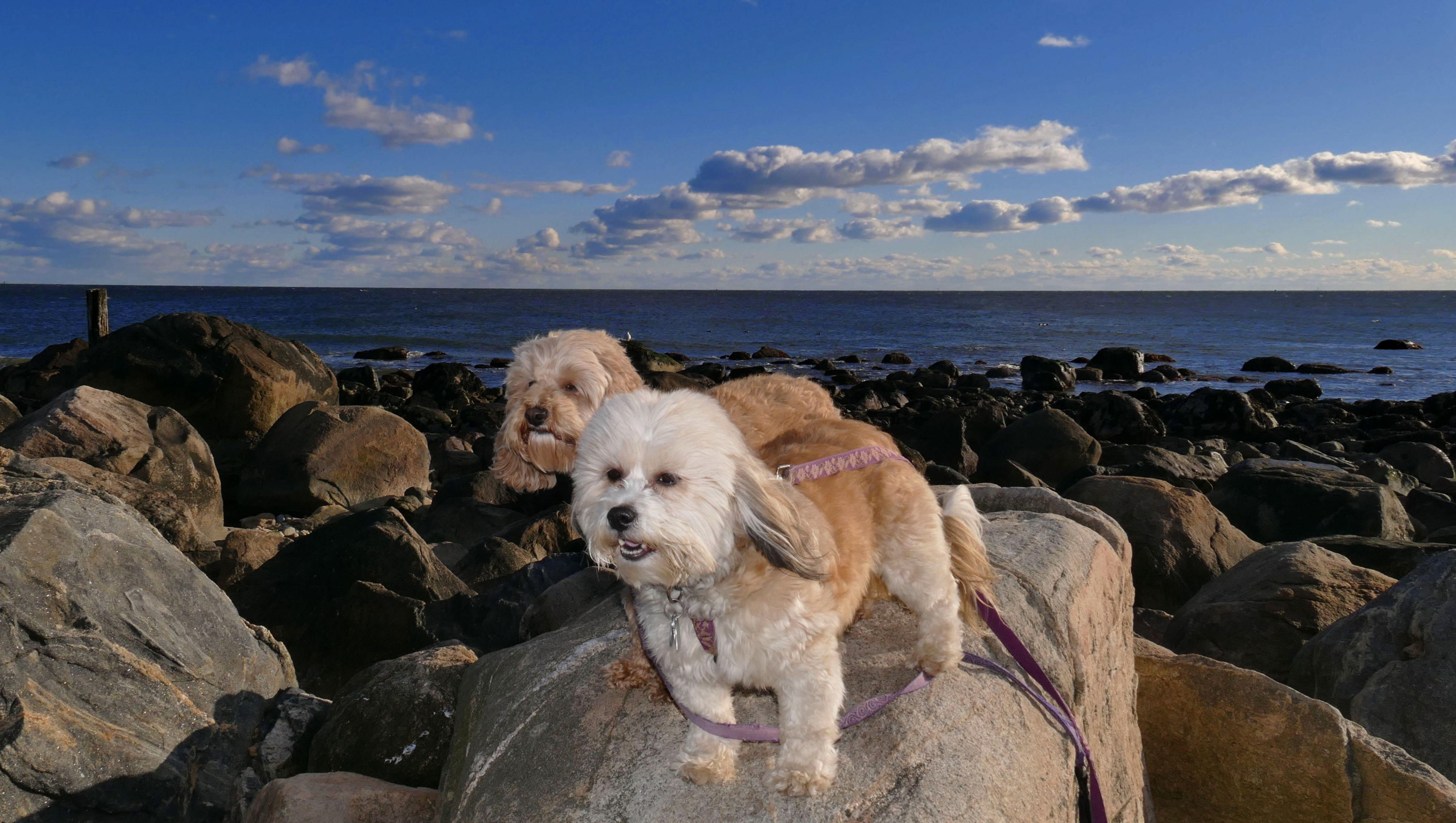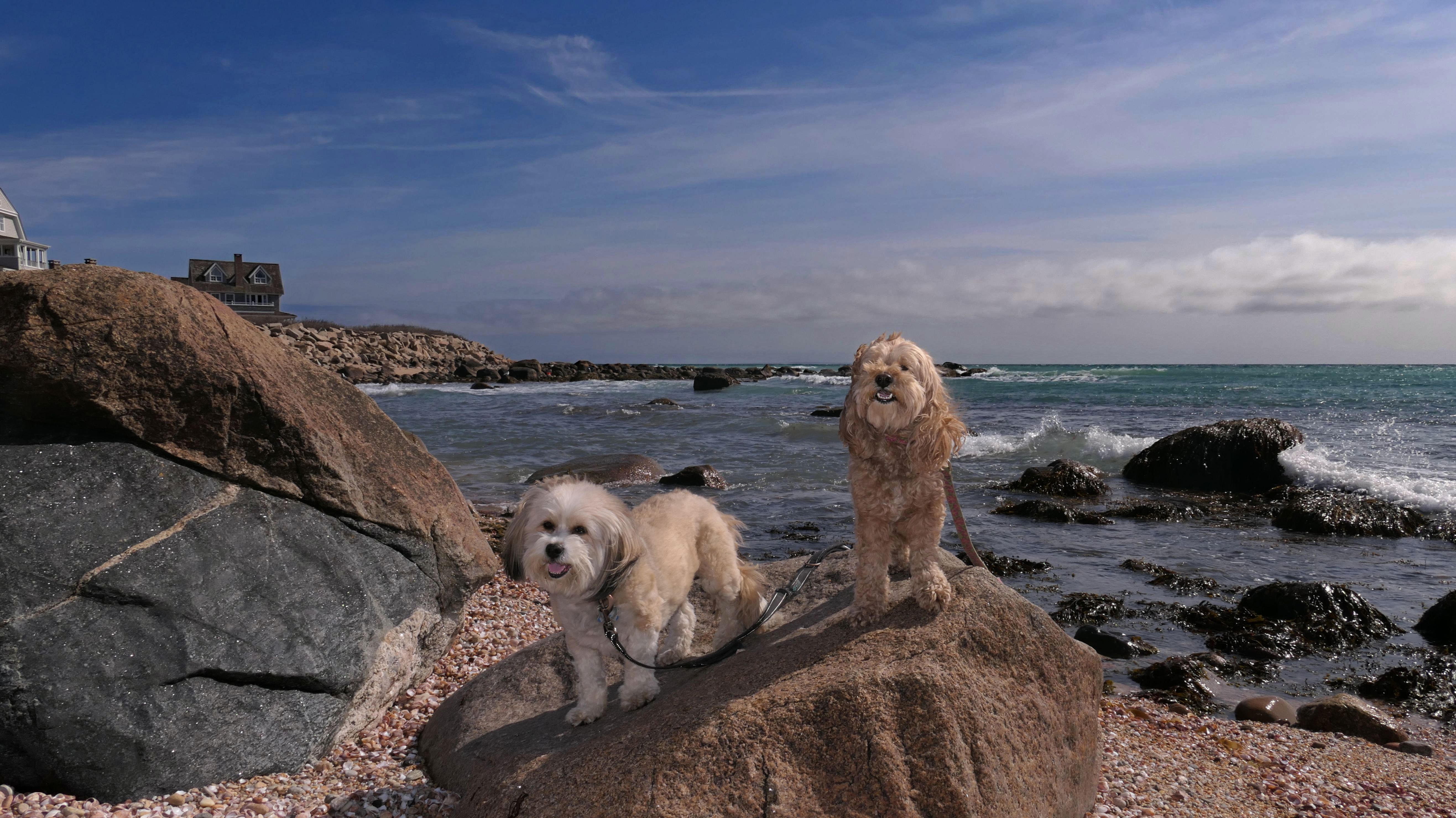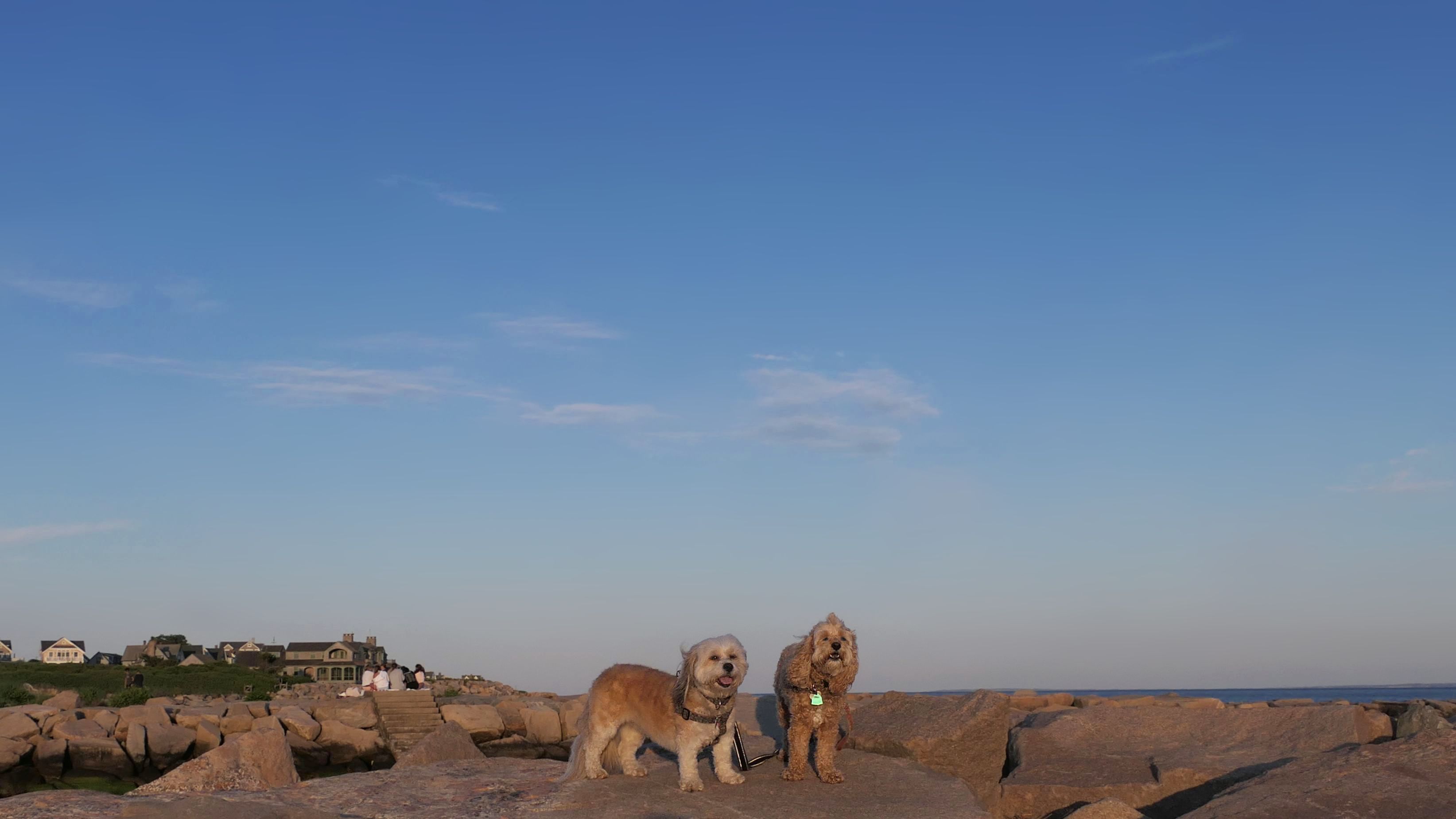 We've been here many times before, but this was only the second time we managed to complete the full loop. The first was during our very first trip to Westerly, way back in December 2020. We attempted it again last summer, but high tide and overgrown trails around the rocks stopped us short. This time, we arrived right at low tide and started out on the bay side. The dogs love this part—it's calm, and they enjoy splashing around in the gentle water. Near the tip of the point, there's a small stream we have to cross to finish the loop. Back in 2020, it was cold and windy, and I had to wade through the stream to avoid turning back. Today, I still had to cross it, but the water was so low it felt more like stepping through a puddle. For the first time, we made it up to the ruins—remnants of an old military fort hidden among the dunes. The narrow trails leading there were just barely passable, and they'll be even tougher to navigate later in the summer when growth thickens. It was exciting to explore something new in a place we thought we knew well. (In 2020, we had skirted the rocks to complete the loop—I didn't even know the ruins existed then.) We wrapped up the walk along the ocean side, where the views of Block Island were strikingly clear. Usually, the waves on that side are pounding, but today the sea was surprisingly calm. With the seasonal dog restrictions starting May 2nd—when pups are only allowed after 6 PM—this was one of the last afternoons we could enjoy this walk freely. All in all, it was a great three mile loop on a beautiful spring day.