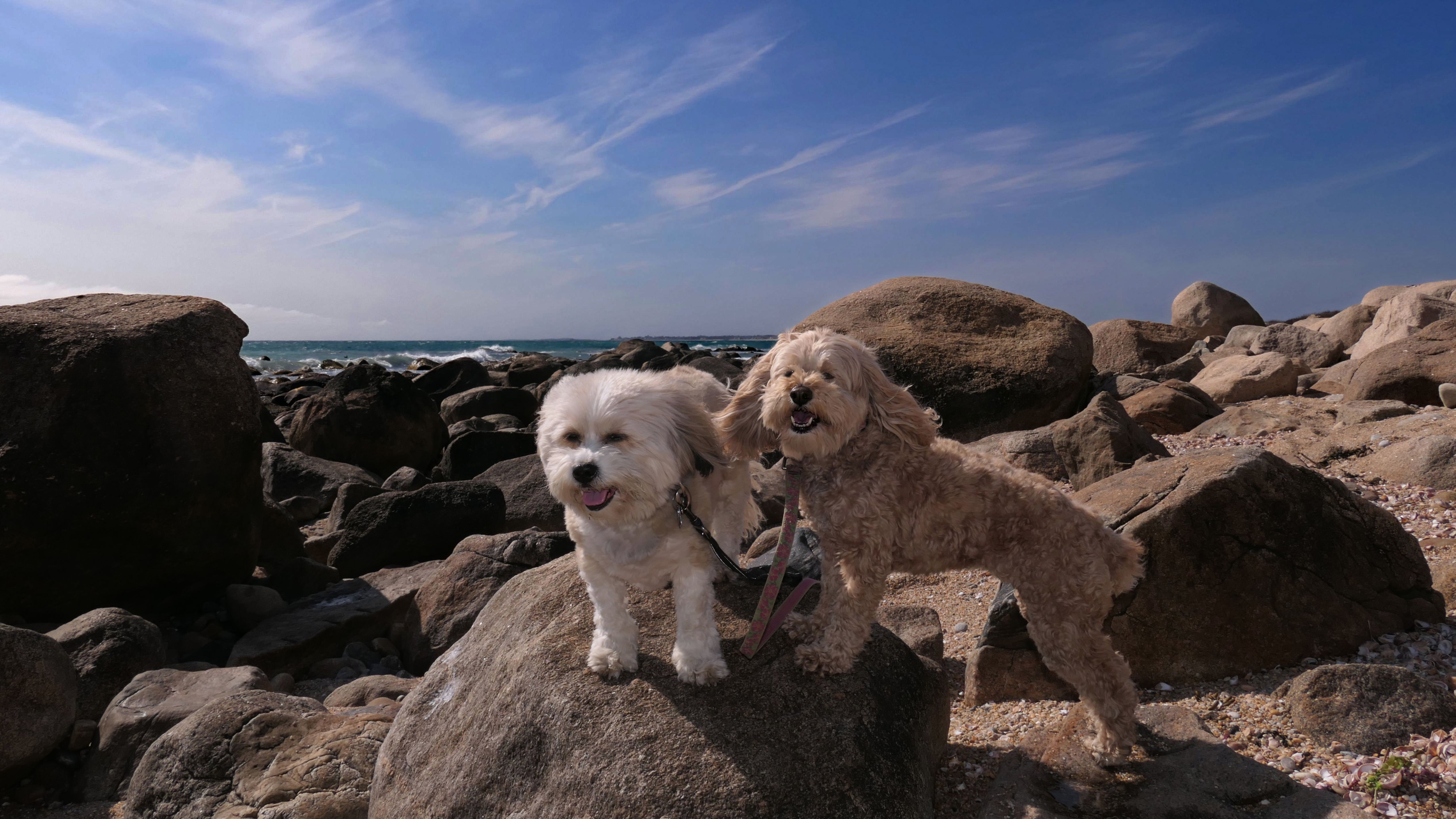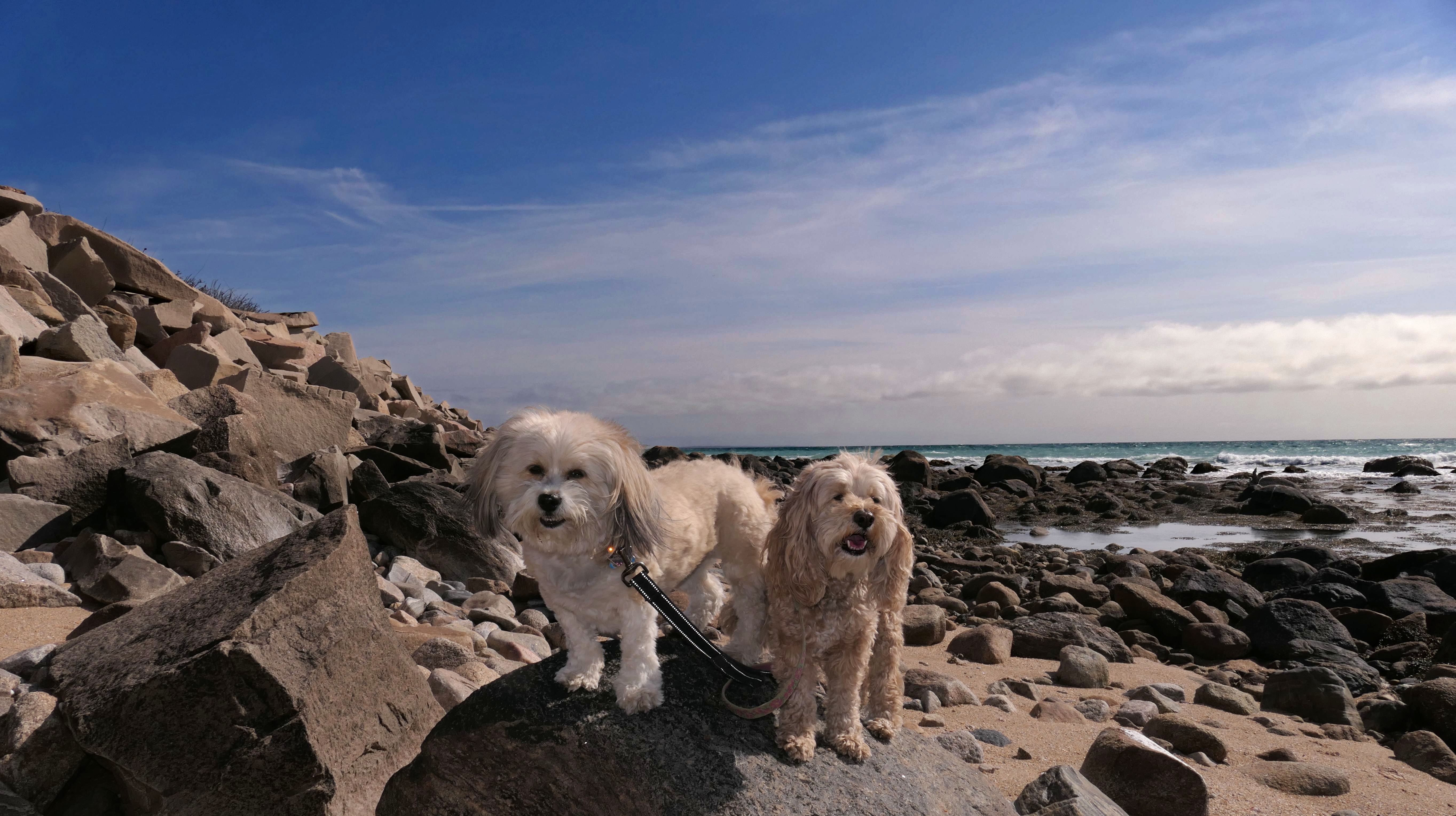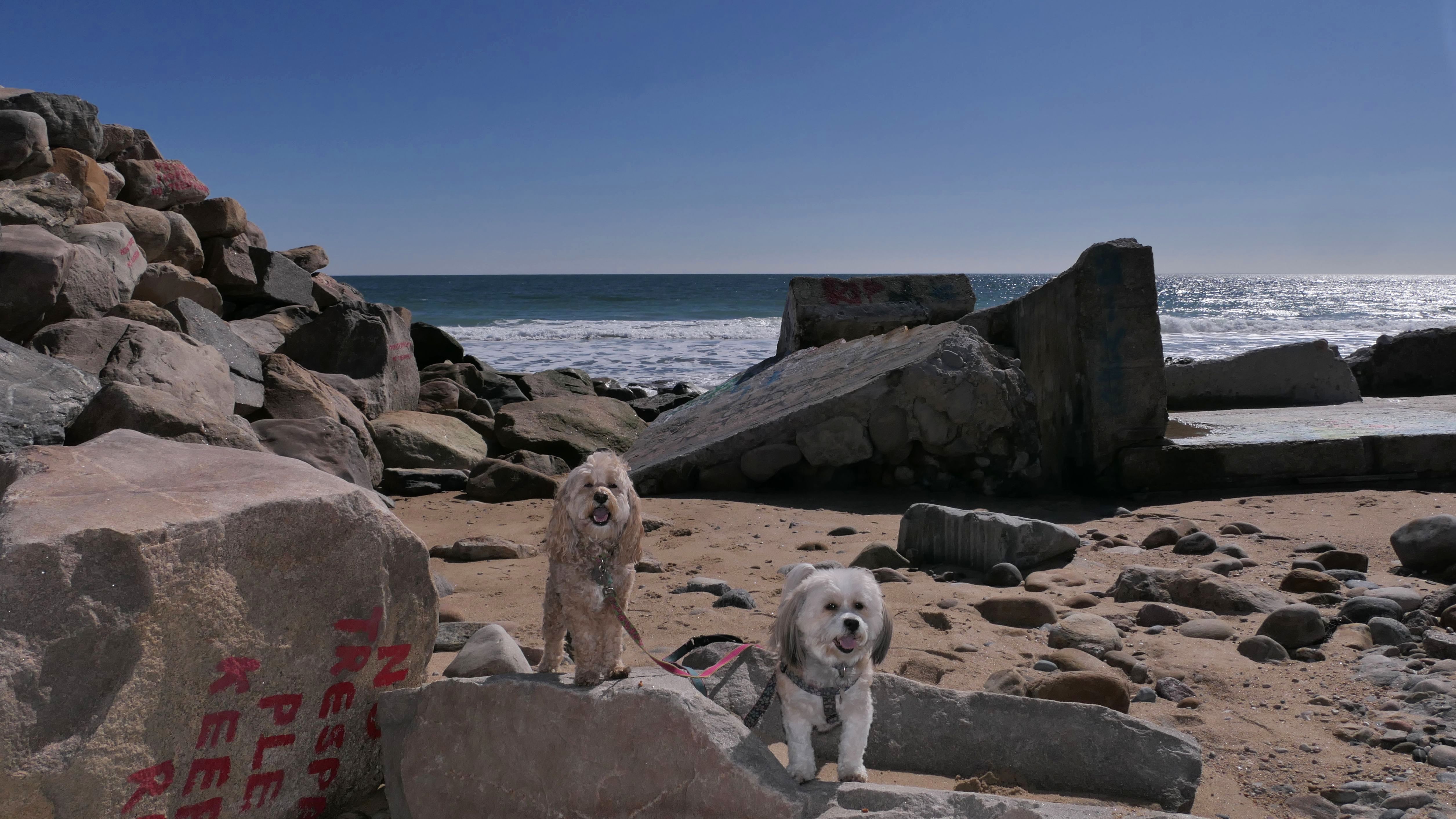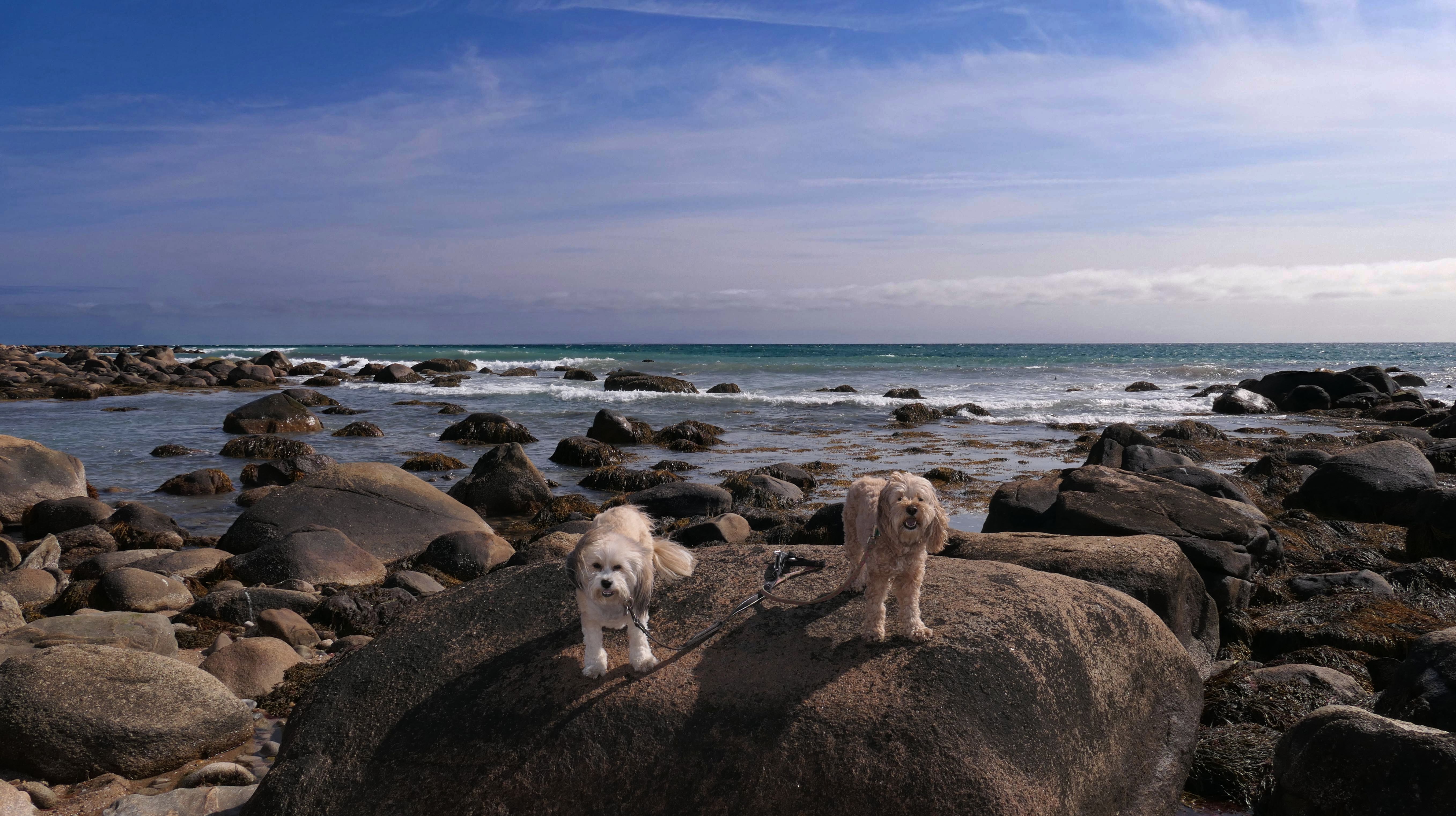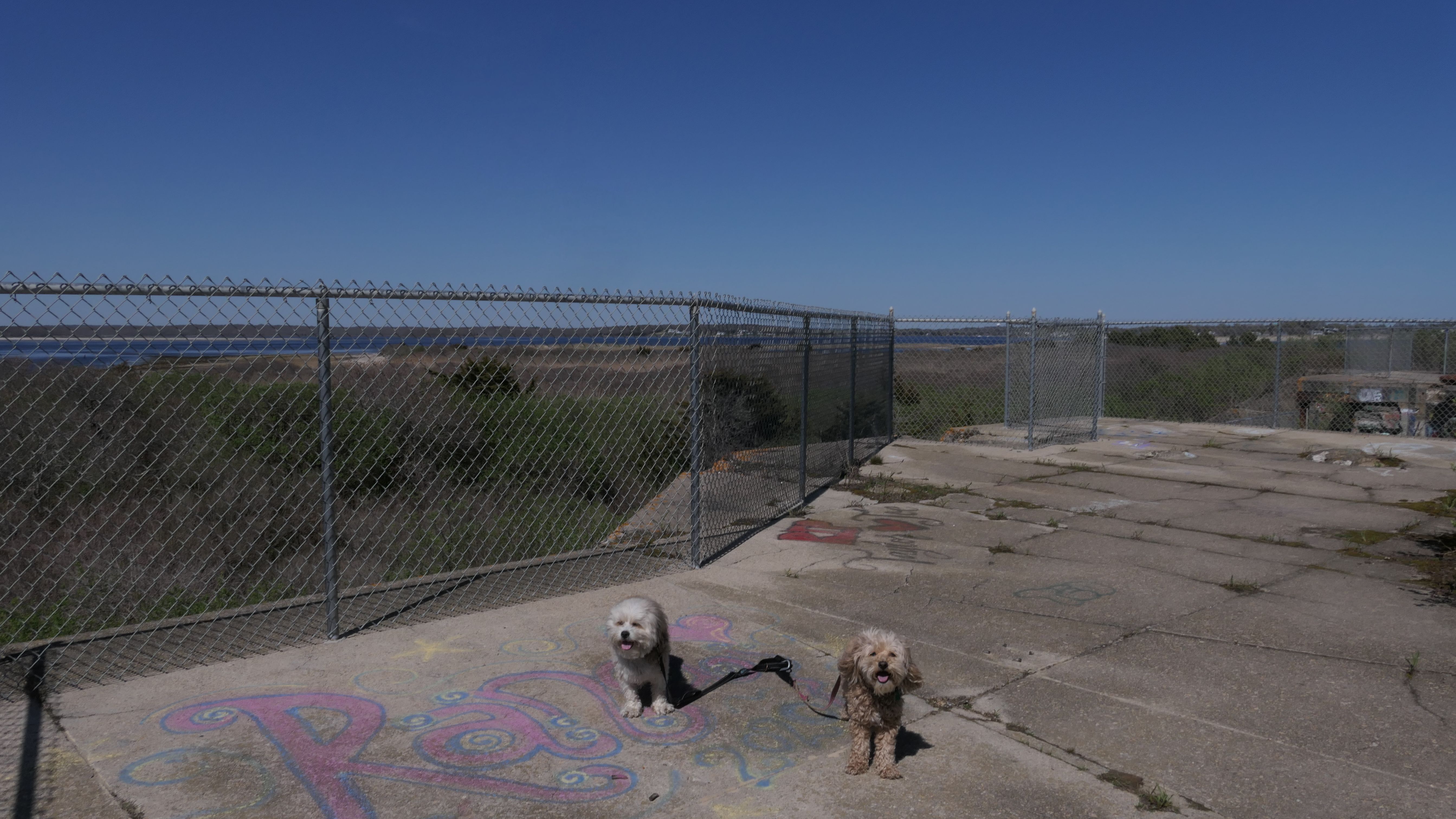 We've been here many times before, but this was only the second time we managed to complete the full loop. The first was during our very first trip to Westerly, way back in December 2020. We attempted it again last summer, but high tide and overgrown trails around the rocks stopped us short. This time, we arrived right at low tide and started out on the bay side. The dogs love this part—it's calm, and they enjoy splashing around in the gentle water. Near the tip of the point, there's a small stream we have to cross to finish the loop. Back in 2020, it was cold and windy, and I had to wade through the stream to avoid turning back. Today, I still had to cross it, but the water was so low it felt more like stepping through a puddle. For the first time, we made it up to the ruins—remnants of an old military fort hidden among the dunes. The narrow trails leading there were just barely passable, and they'll be even tougher to navigate later in the summer when growth thickens. It was exciting to explore something new in a place we thought we knew well. (In 2020, we had skirted the rocks to complete the loop—I didn't even know the ruins existed then.) We wrapped up the walk along the ocean side, where the views of Block Island were strikingly clear. Usually, the waves on that side are pounding, but today the sea was surprisingly calm. With the seasonal dog restrictions starting May 2nd—when pups are only allowed after 6 PM—this was one of the last afternoons we could enjoy this walk freely. All in all, it was a great three mile loop on a beautiful spring day.