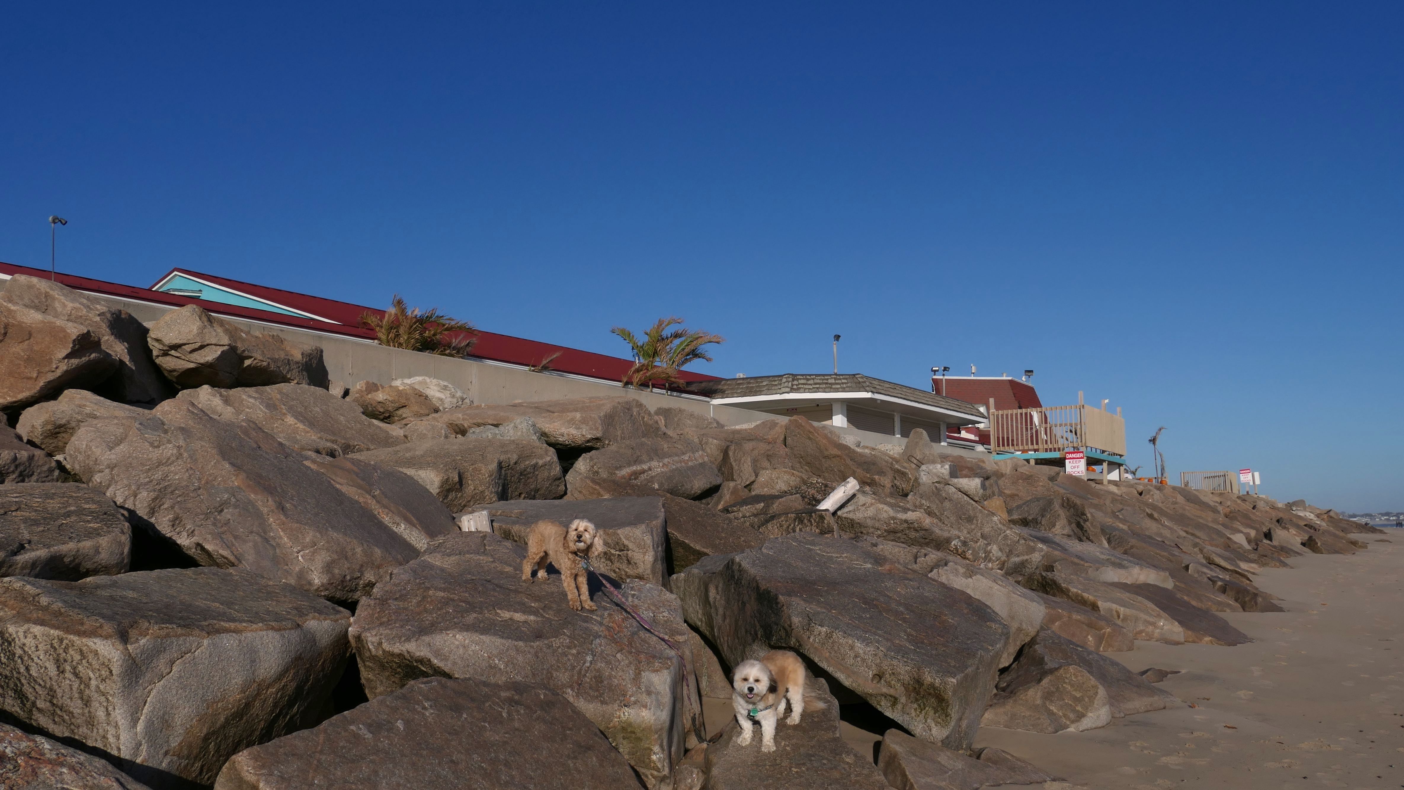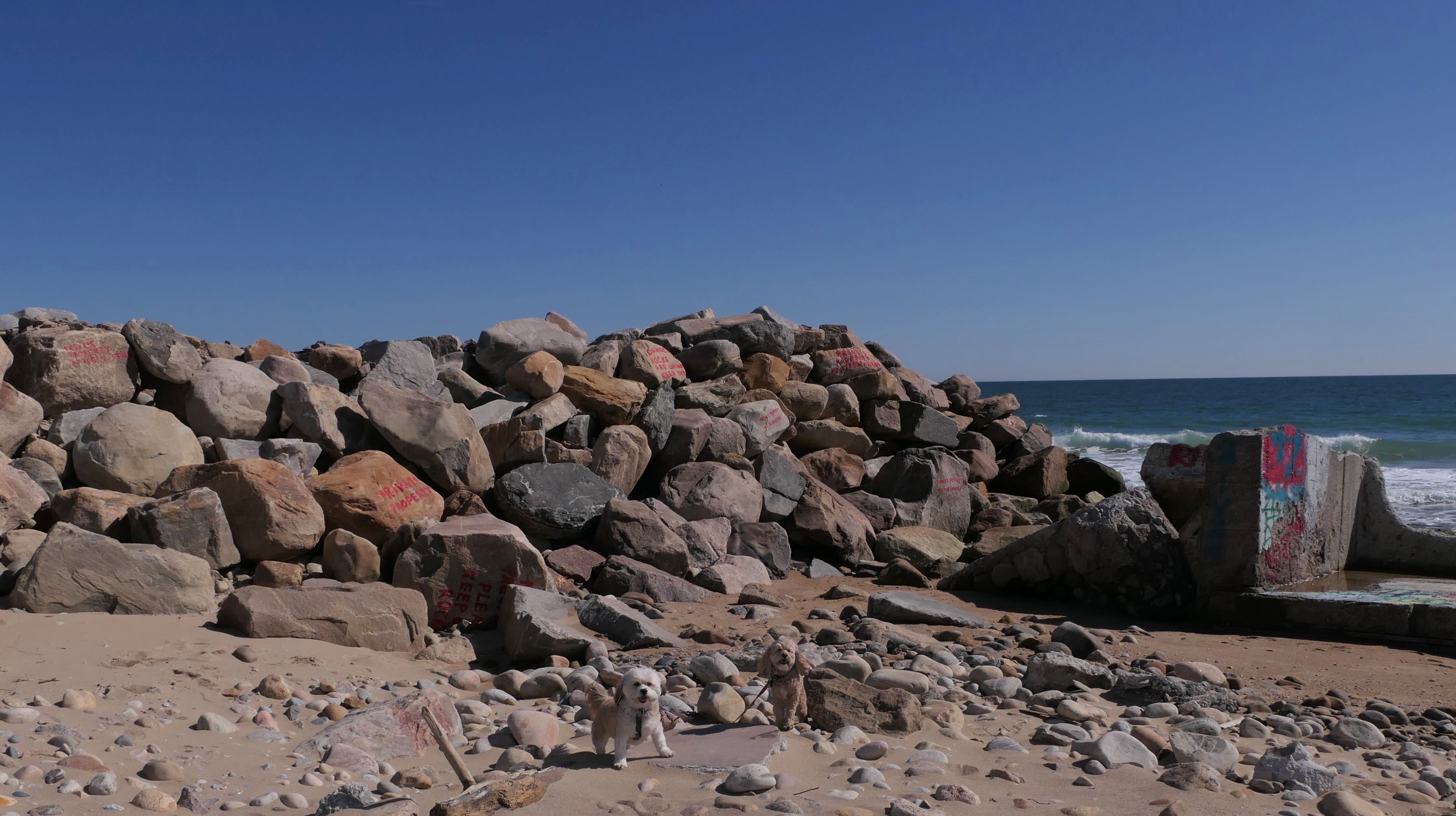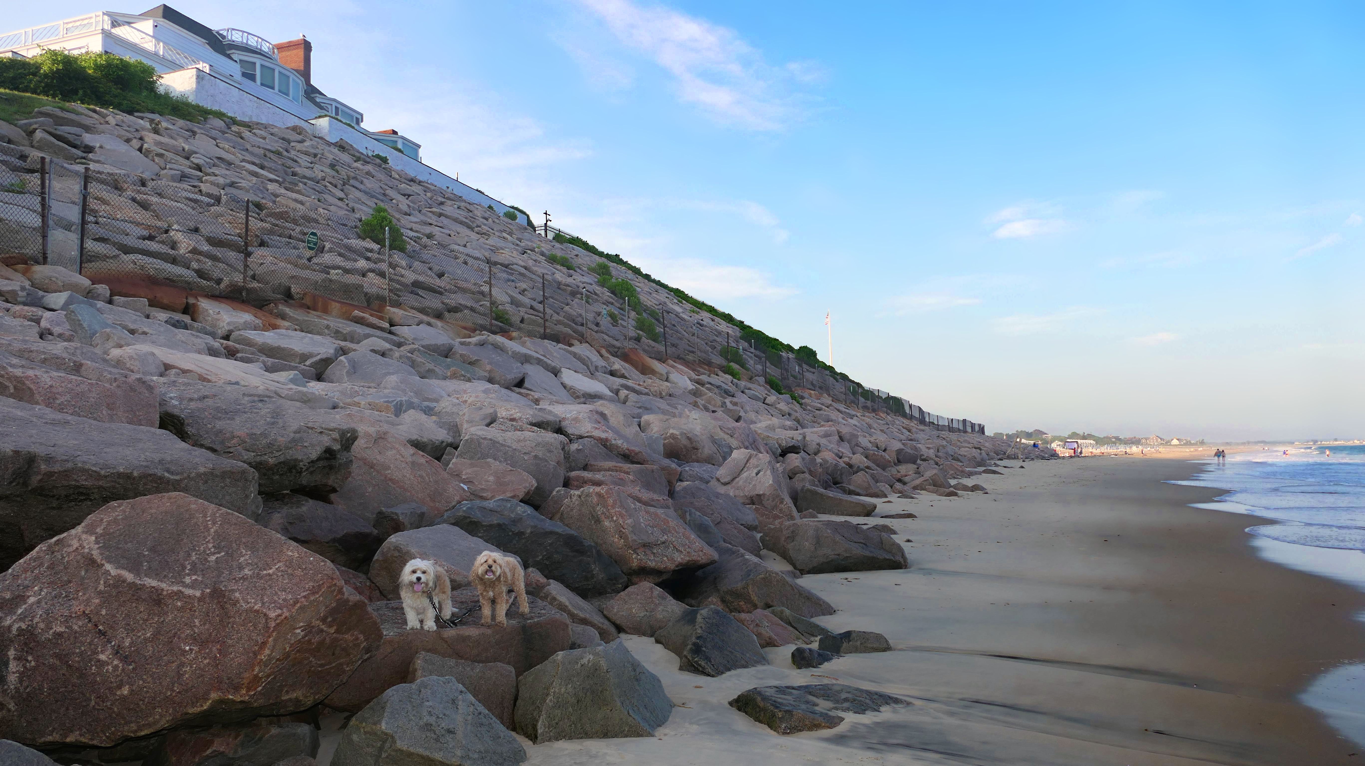 This was a continuation of our walk that started at Misquamicut State Beach. It was low tide, so we could walk on the ocean side of the rocks at the western end of the beach, right before it connects to East Beach.