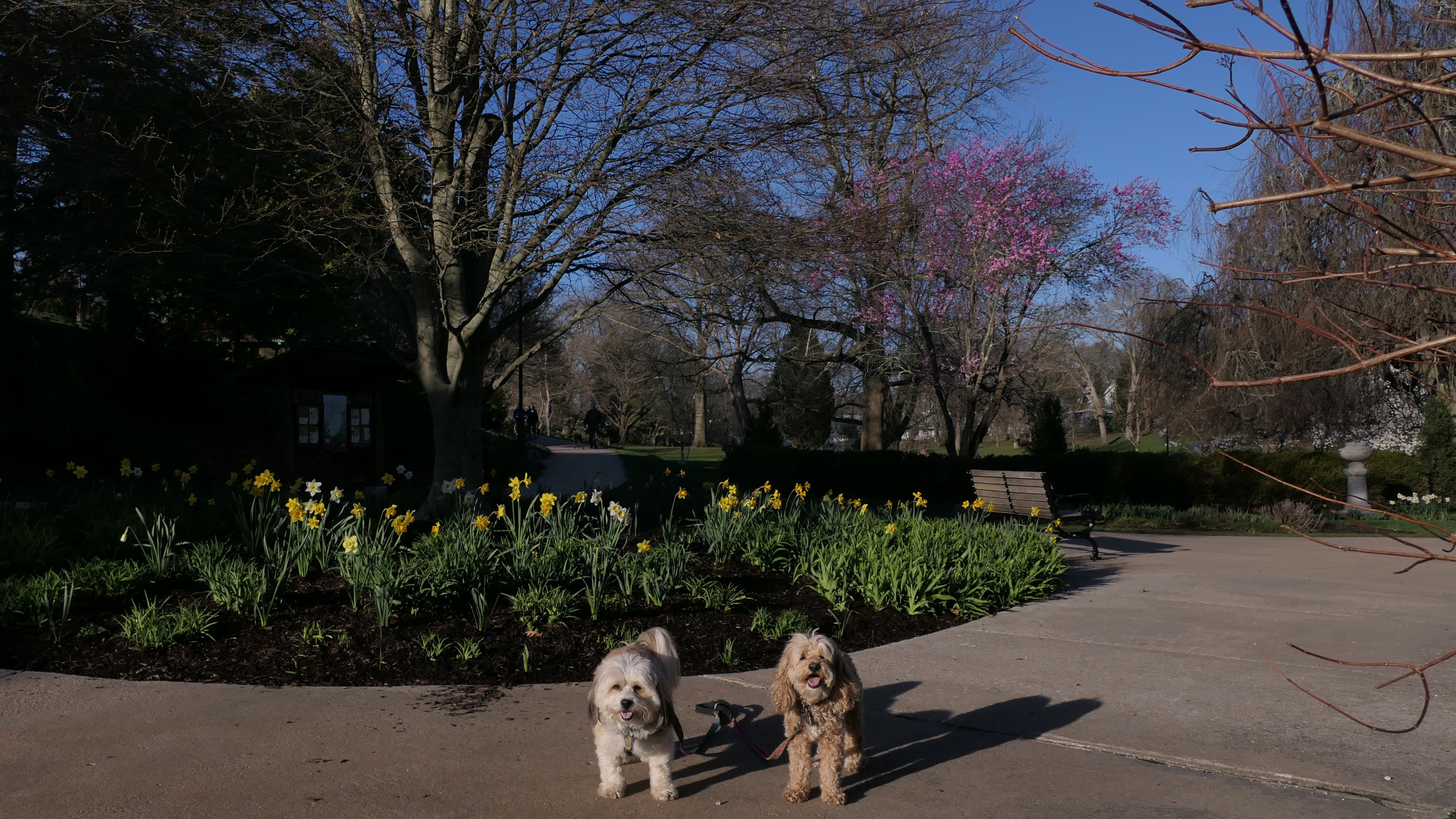 It's hard to believe with all the trips we made to Rhode Island over the last few years, that we haven't been to this park yet. This is a beautiful park, in the historic downtown section of Westerly. This area is just over the Pawcatuck River bridge, that connects Westerly to the Pawcatuck section of Stonington, CT. The park is privately owned by the Memorial and Library Association of Westerly. It looks really wonderful in the spring time, with all sorts of trees and flowers blooming. In addition to the pictures in the park, some pictures below are from the area immediately surrounding the park. We lucked out with the weather. It had poured all day, even during our drive here, but by the time reached the park, there wasn't a cloud in the sky. This was a fun walk on what turned out to be a beautiful spring evening.