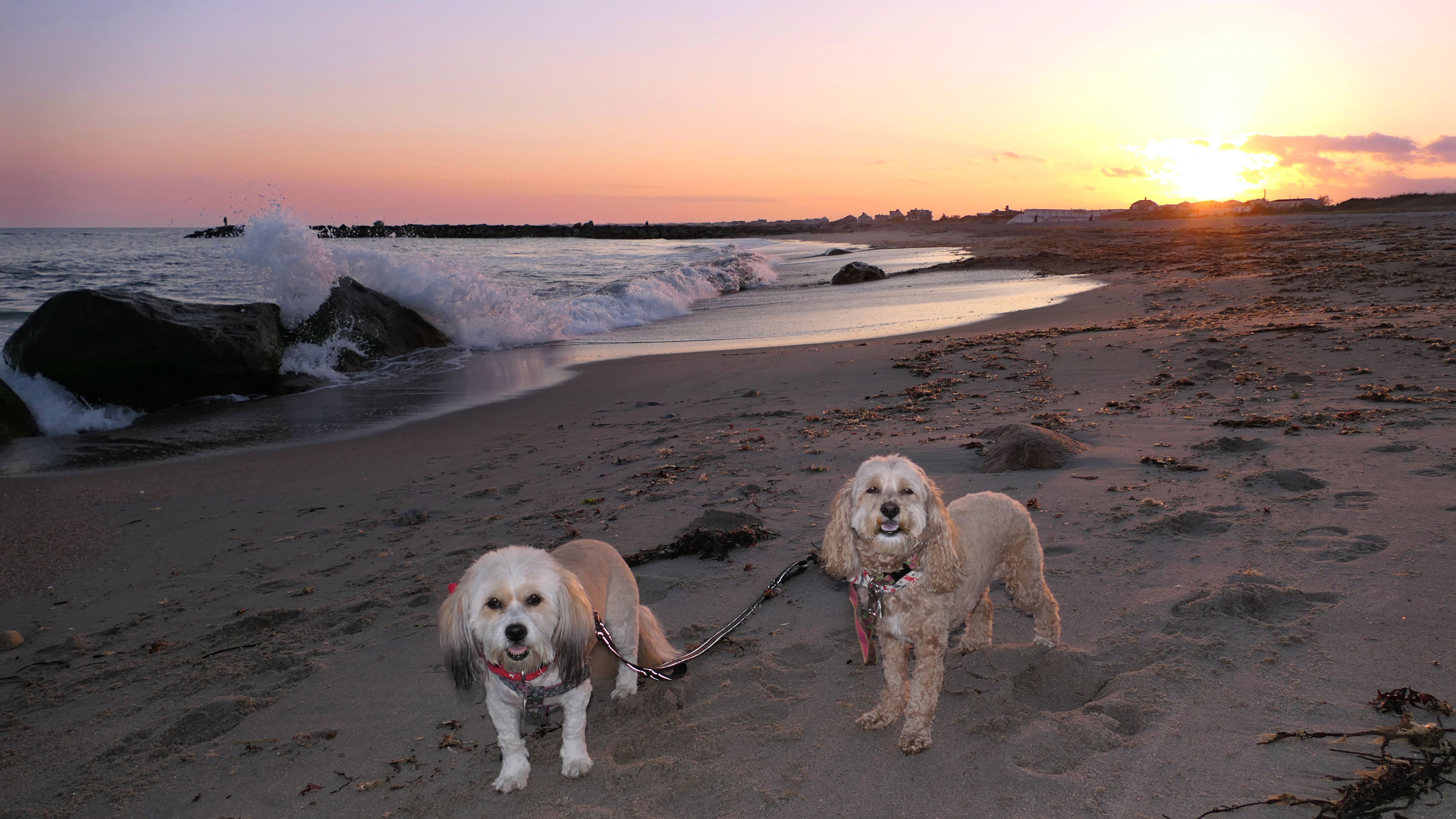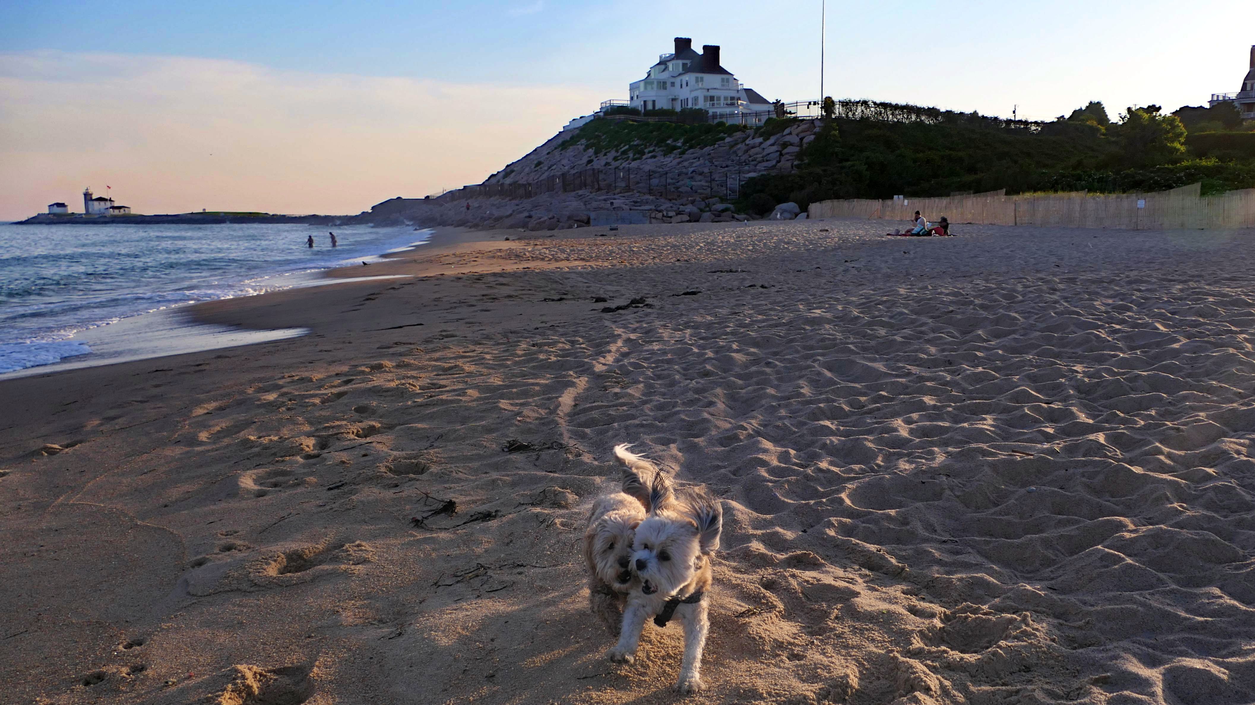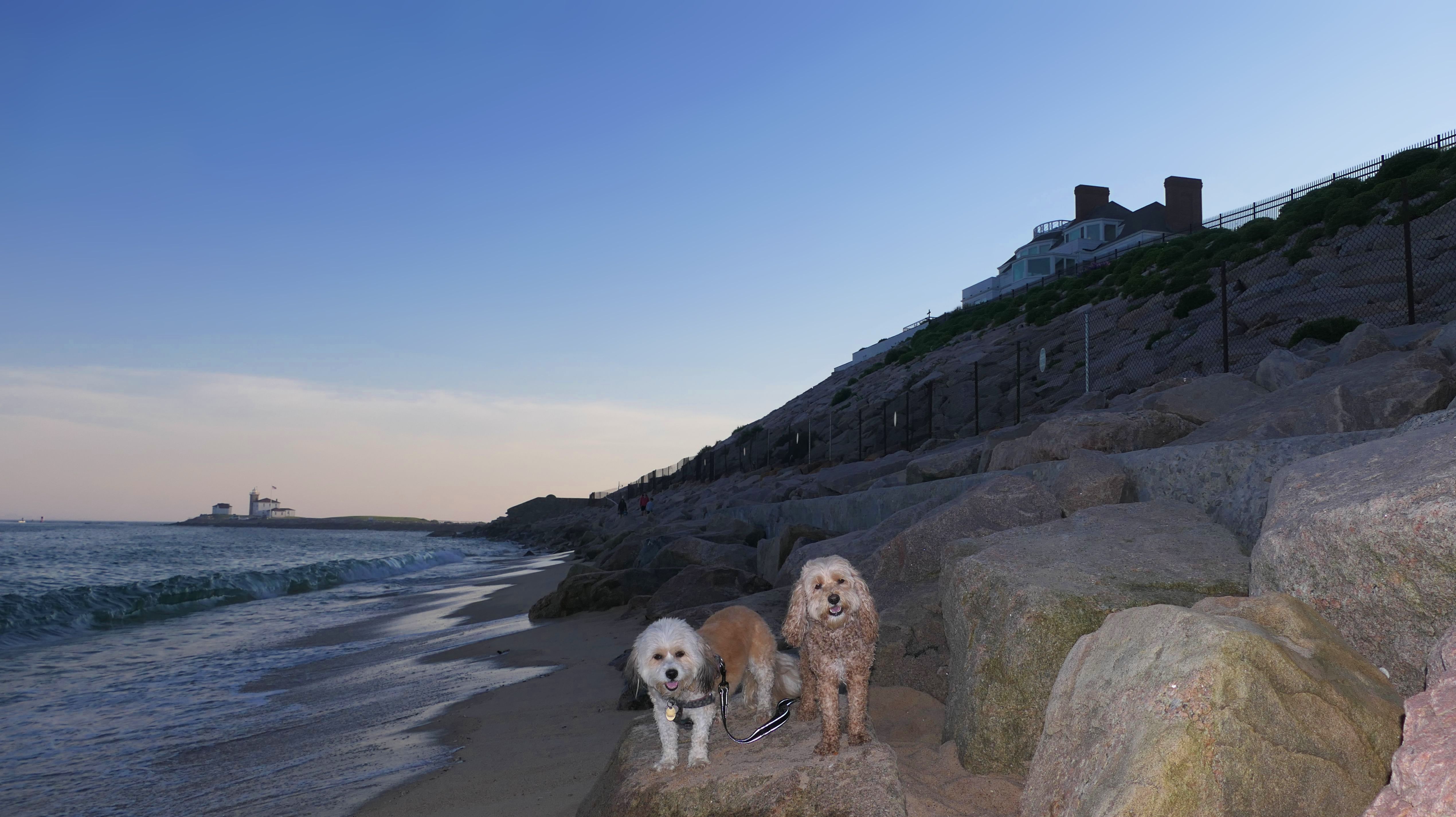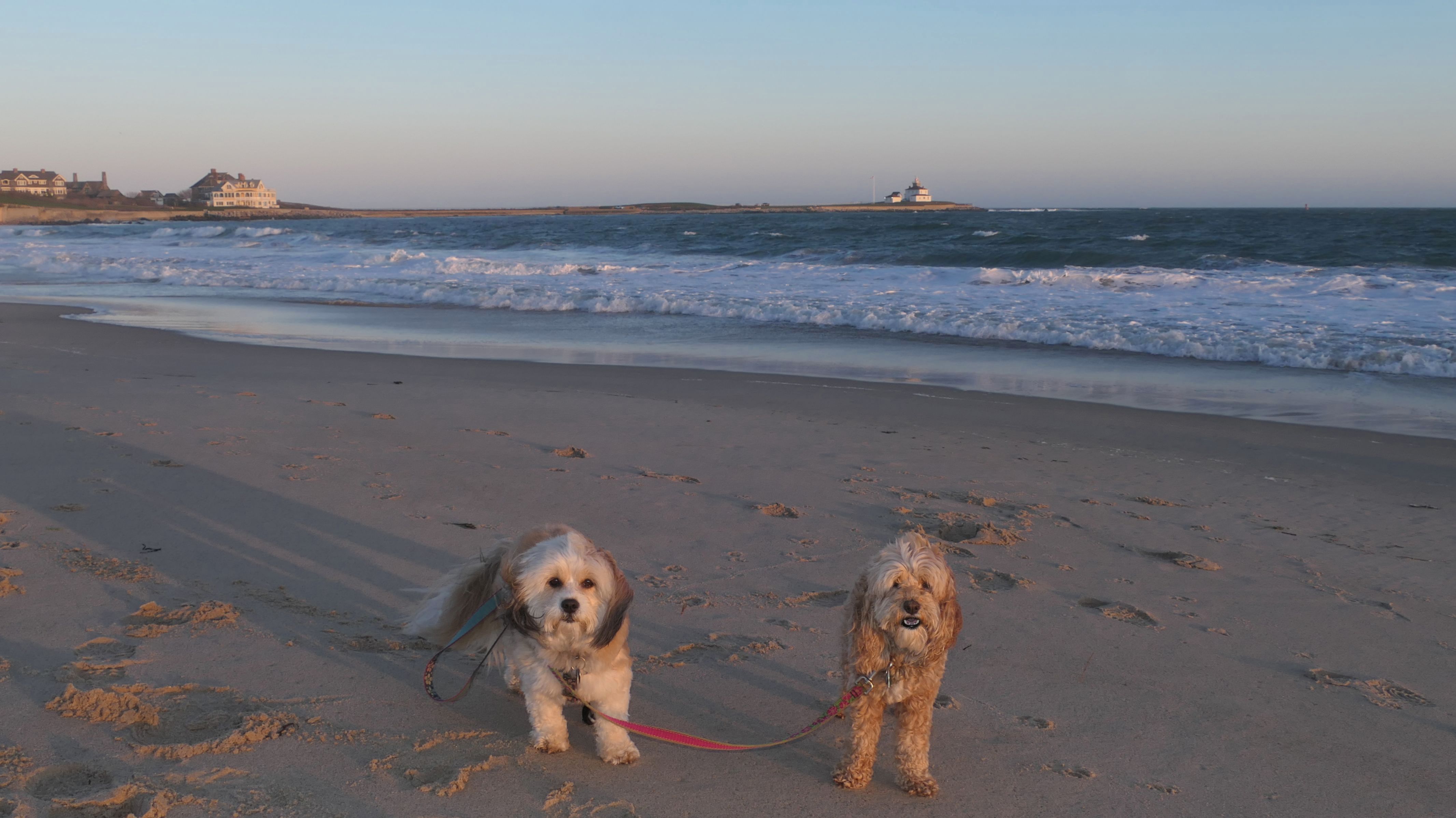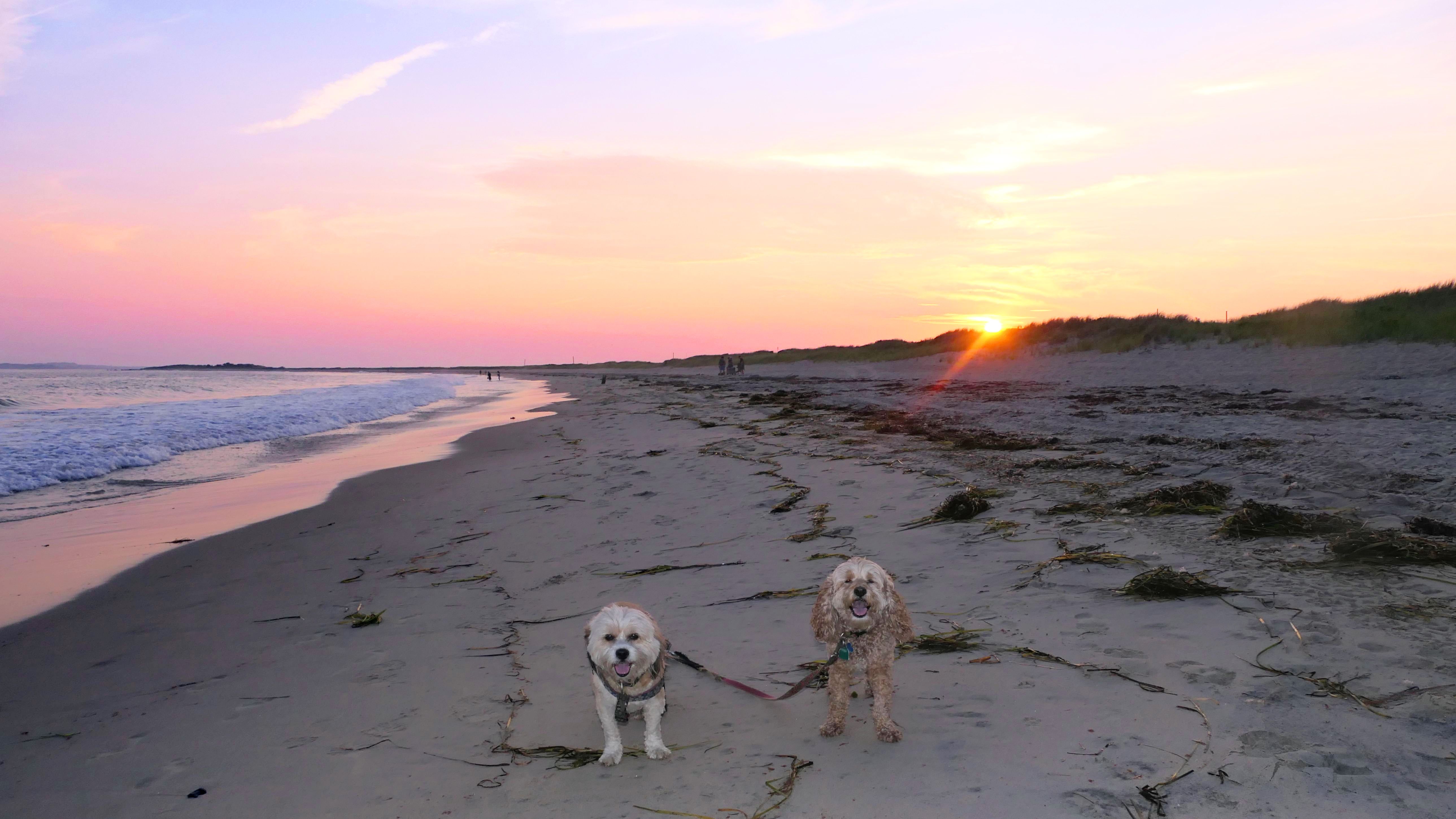 This is a small beach, wedged in between Napatree Point Conservation Area and the Watch Hill Lighthouse. I'm pretty sure this is a "private" beach for Watch Hill Association members. There is an entrance near the carousel that is completely closed off and gated in the off-season. We reached the beach via a short trail from Napatree. The waves were absolutely ripping, as it had stormed most of the day and was still very windy at the shore. We came here after our Wilcox Park adventure, and arrived just in time to enjoy a beautiful sunset. On our walk back, the dogs decided it was playtime. They seem to enjoy the beach so much!