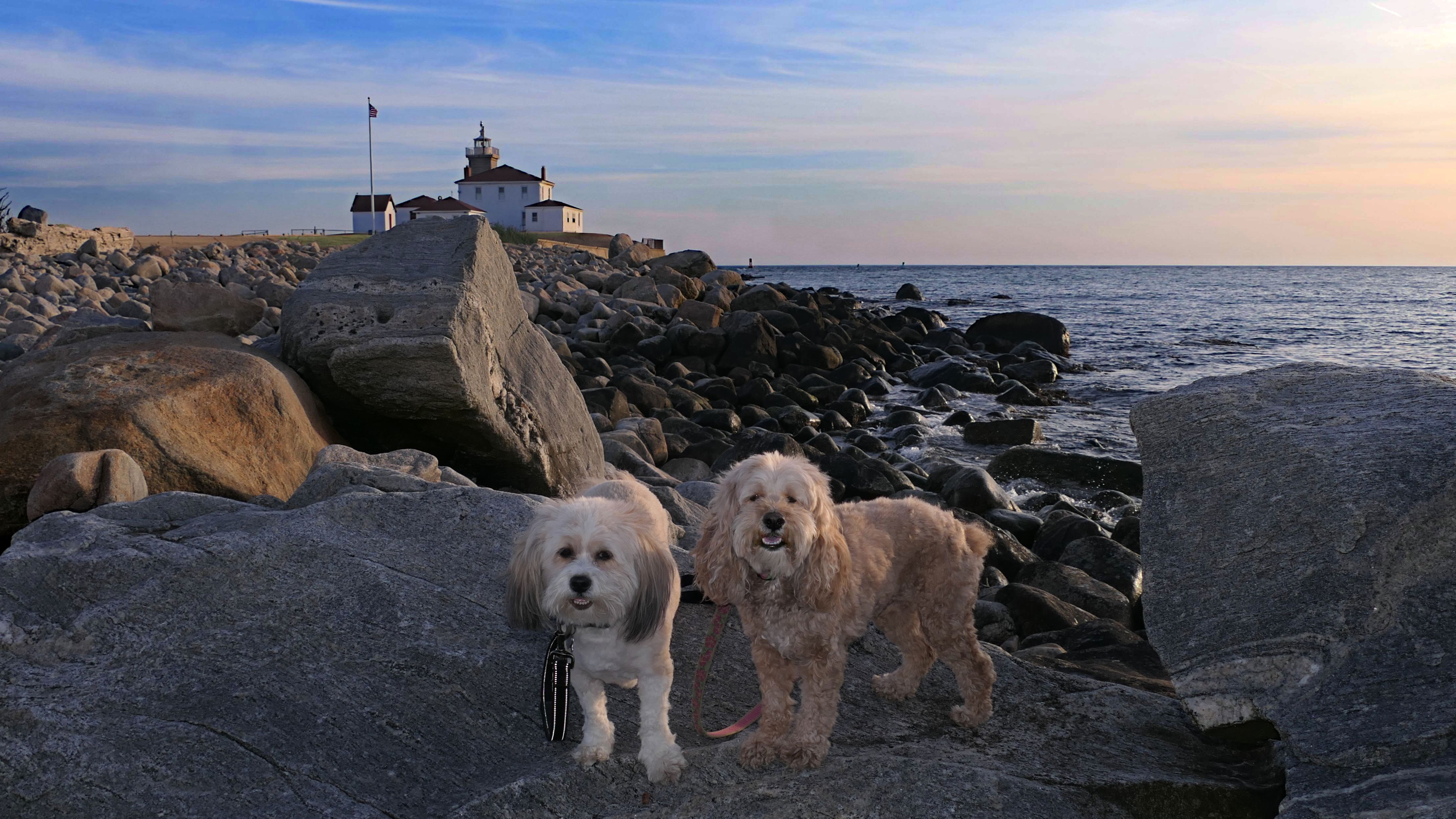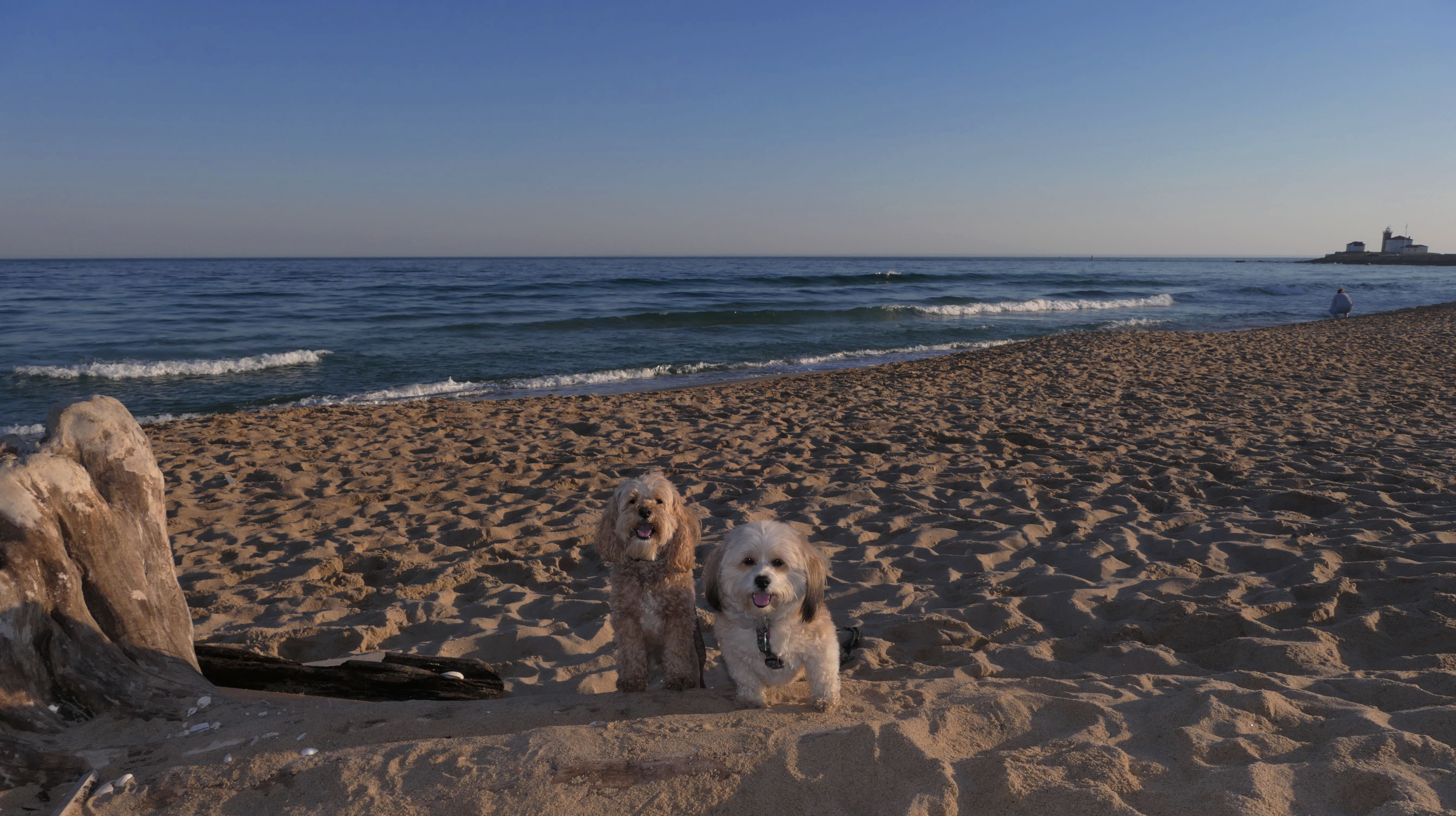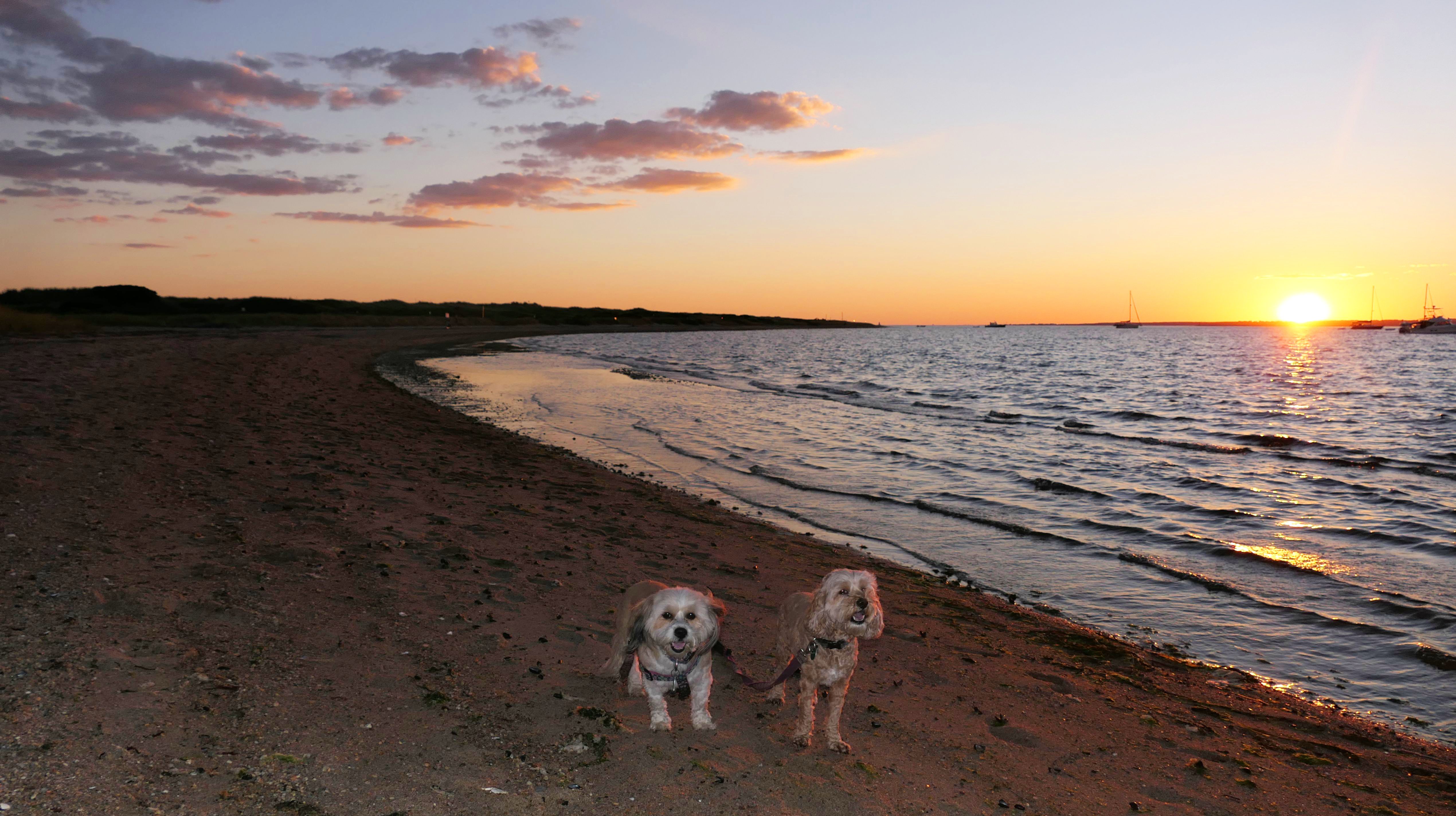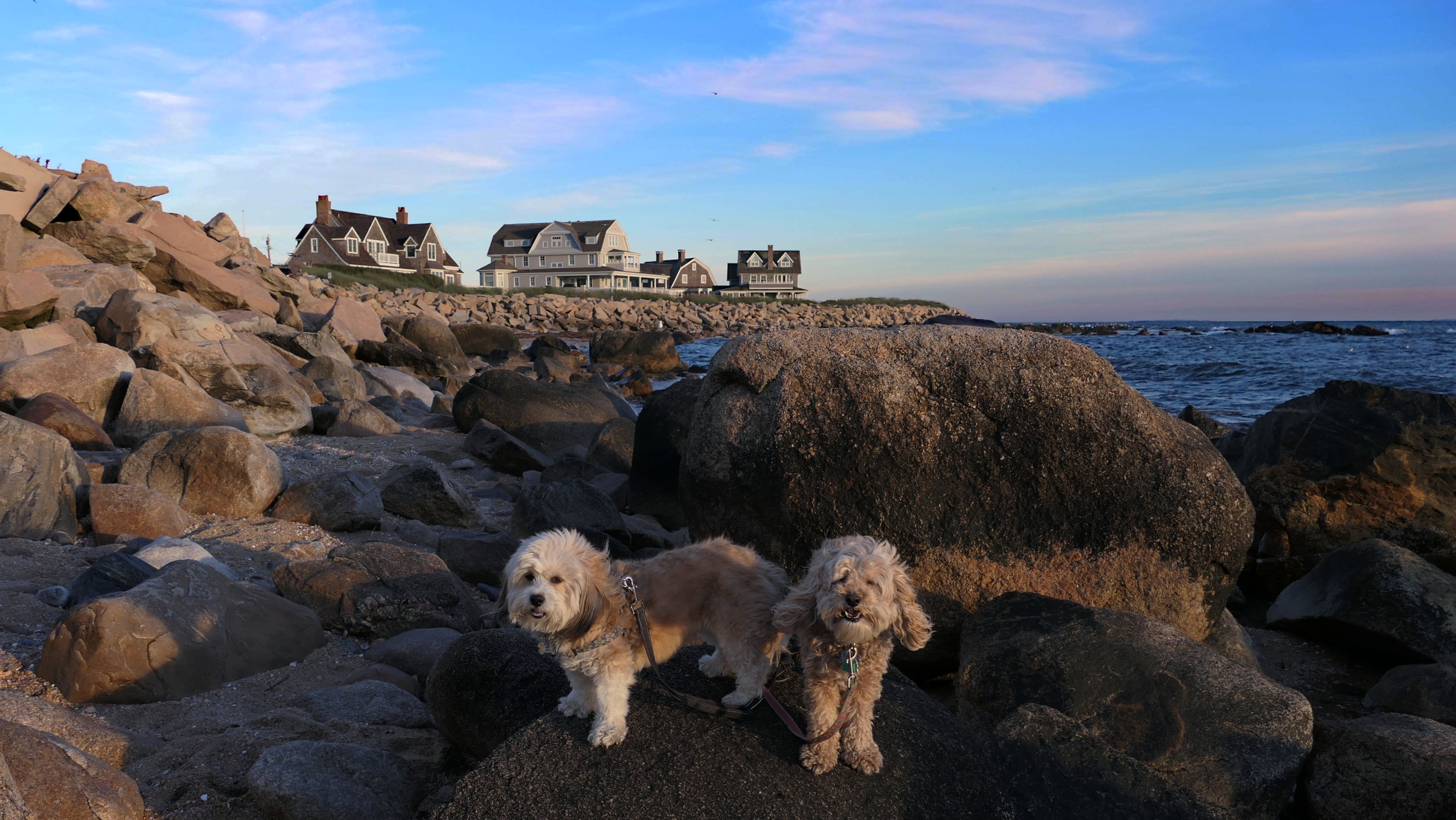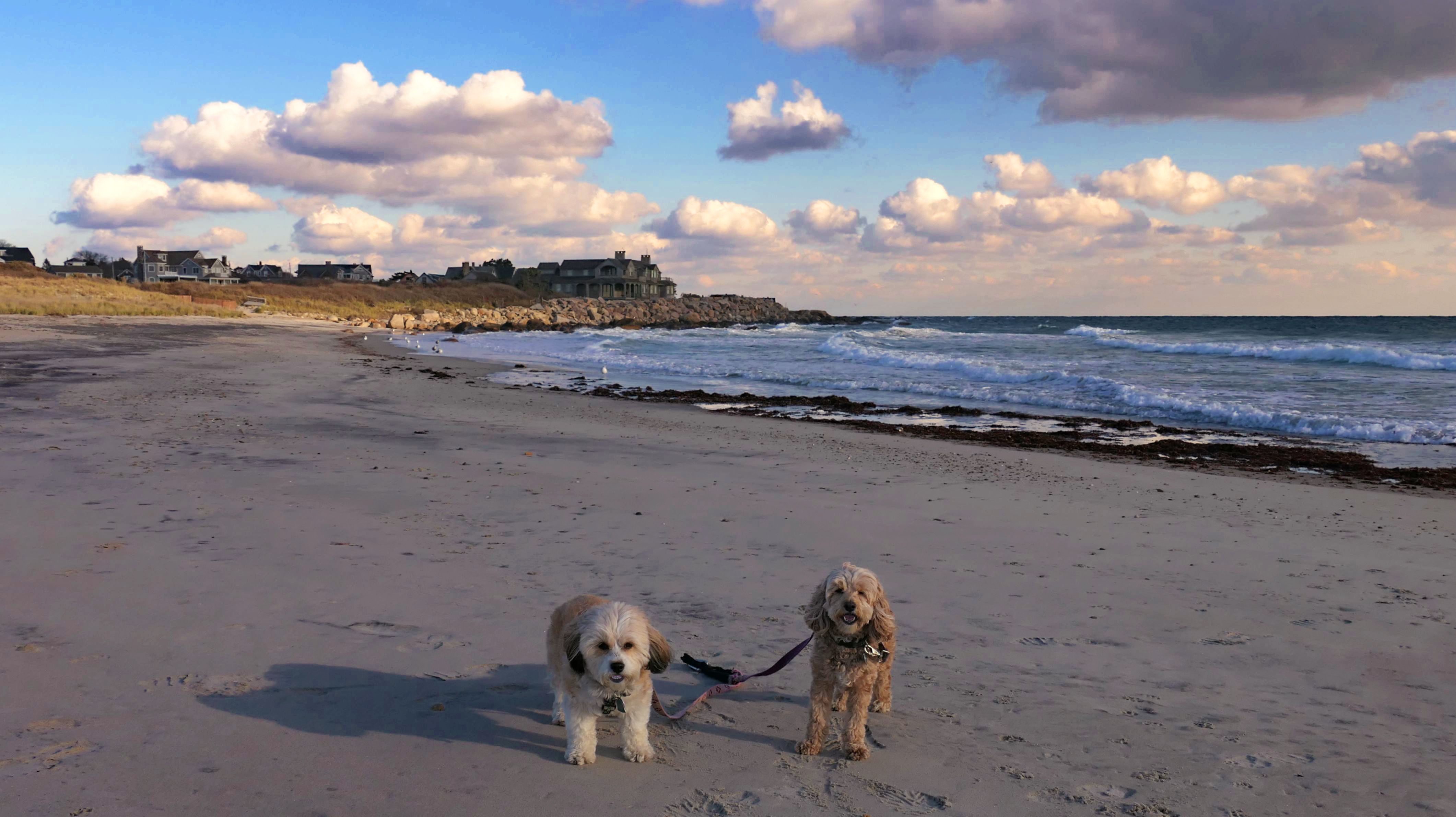 This is a small beach, wedged in between Napatree Point Conservation Area and the Watch Hill Lighthouse. I'm pretty sure this is a "private" beach for Watch Hill Association members. There is an entrance near the carousel that is completely closed off and gated in the off-season. We reached the beach via a short trail from Napatree. The waves were absolutely ripping, as it had stormed most of the day and was still very windy at the shore. We came here after our Wilcox Park adventure, and arrived just in time to enjoy a beautiful sunset. On our walk back, the dogs decided it was playtime. They seem to enjoy the beach so much!