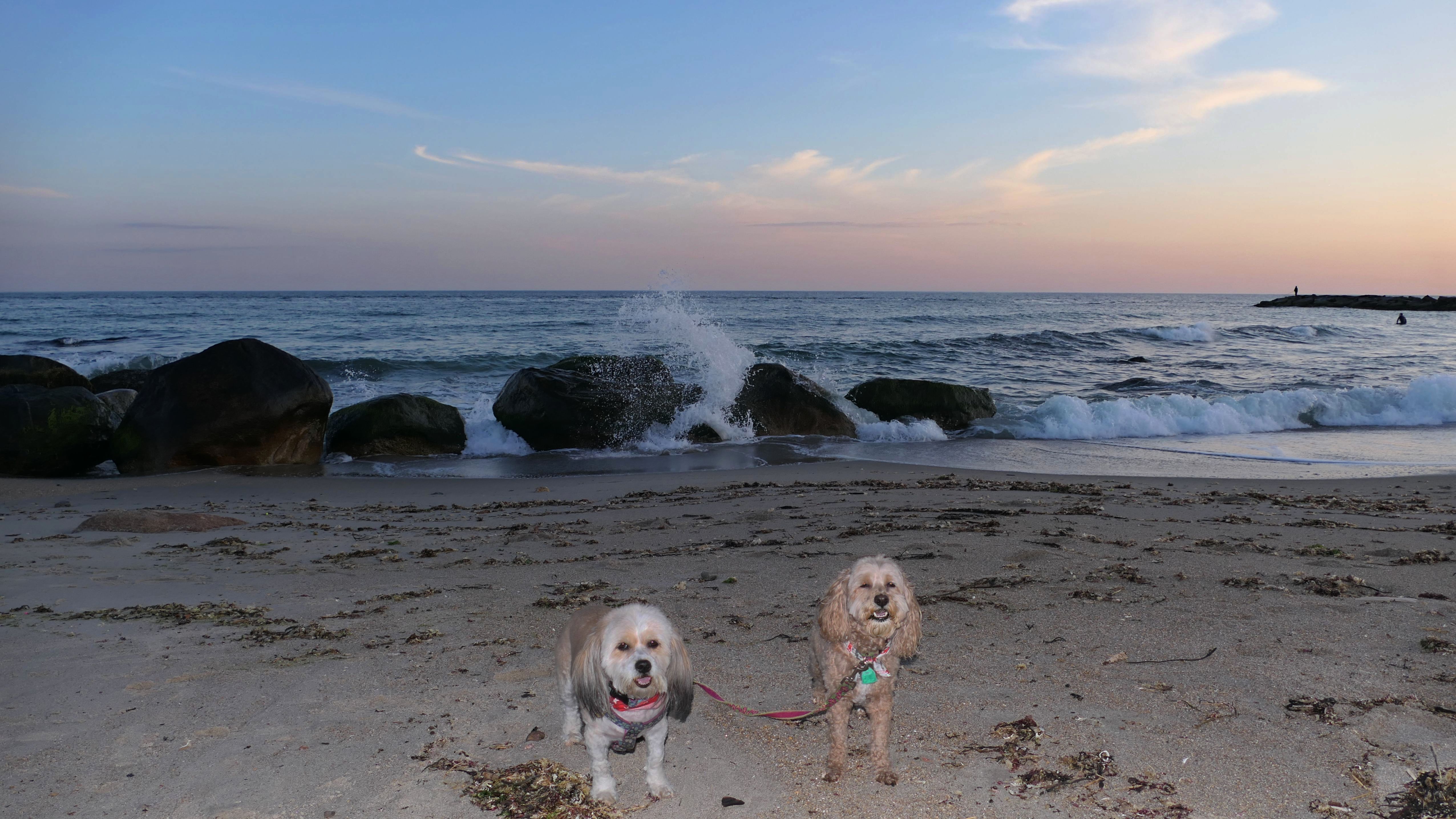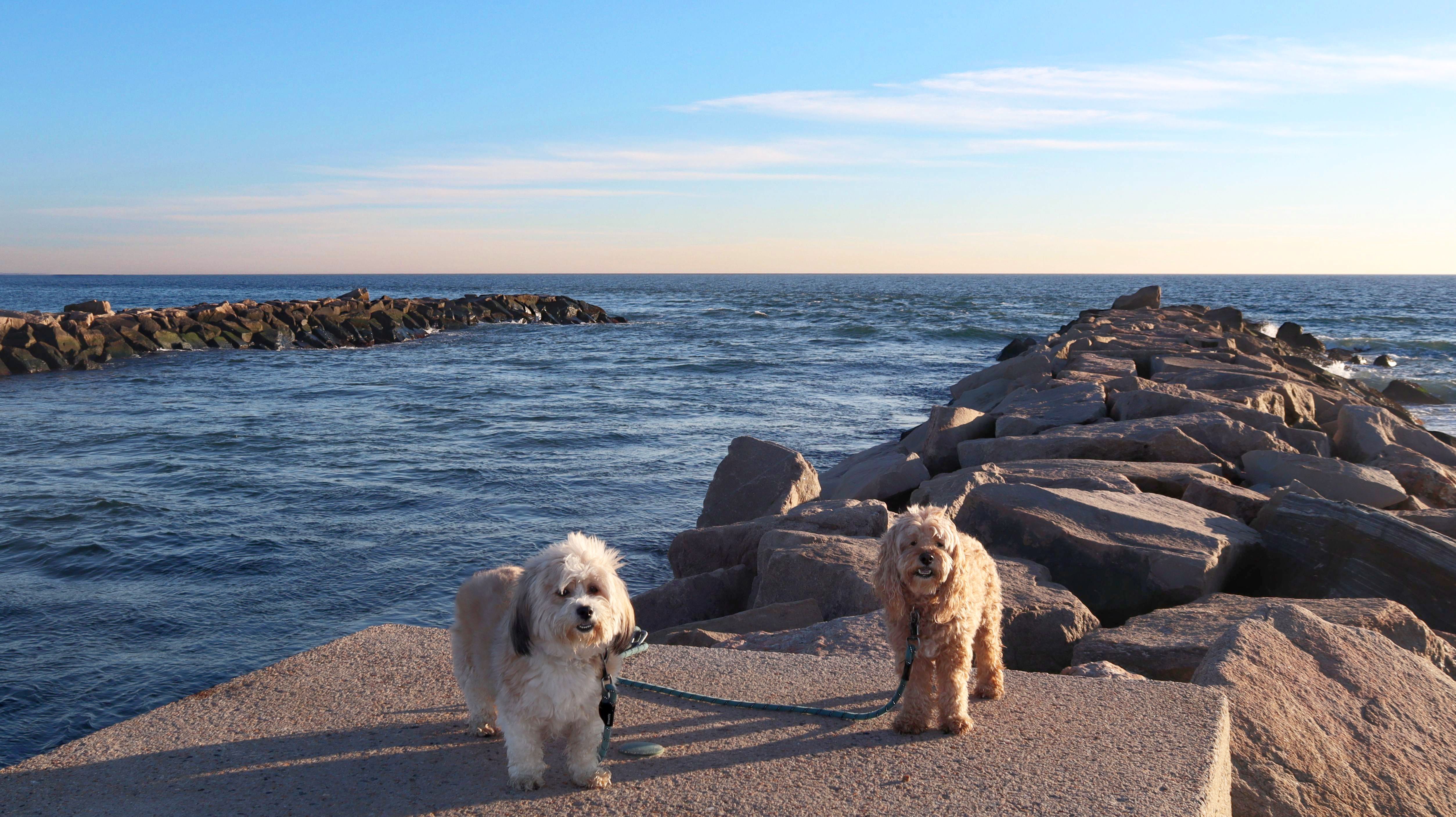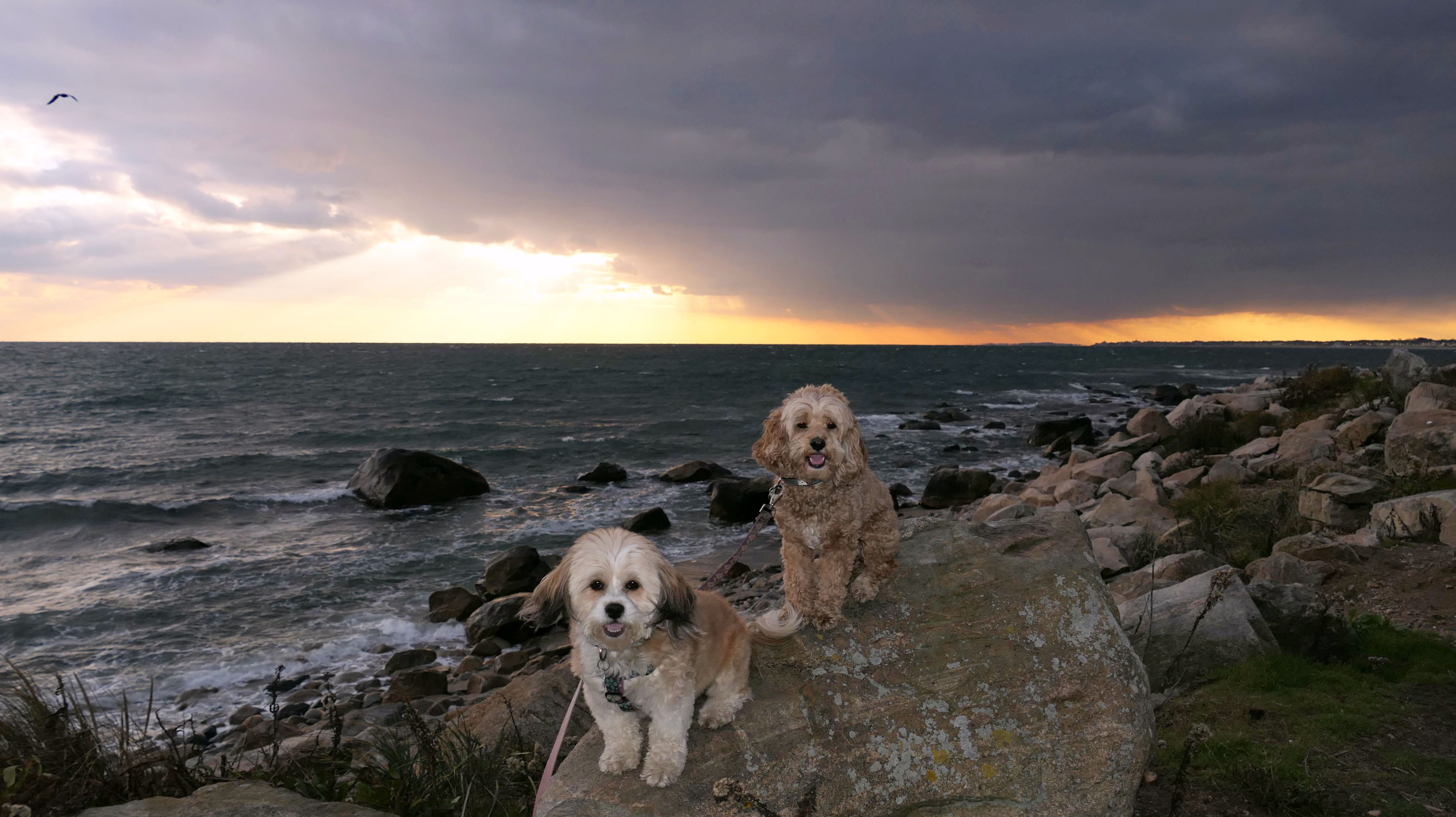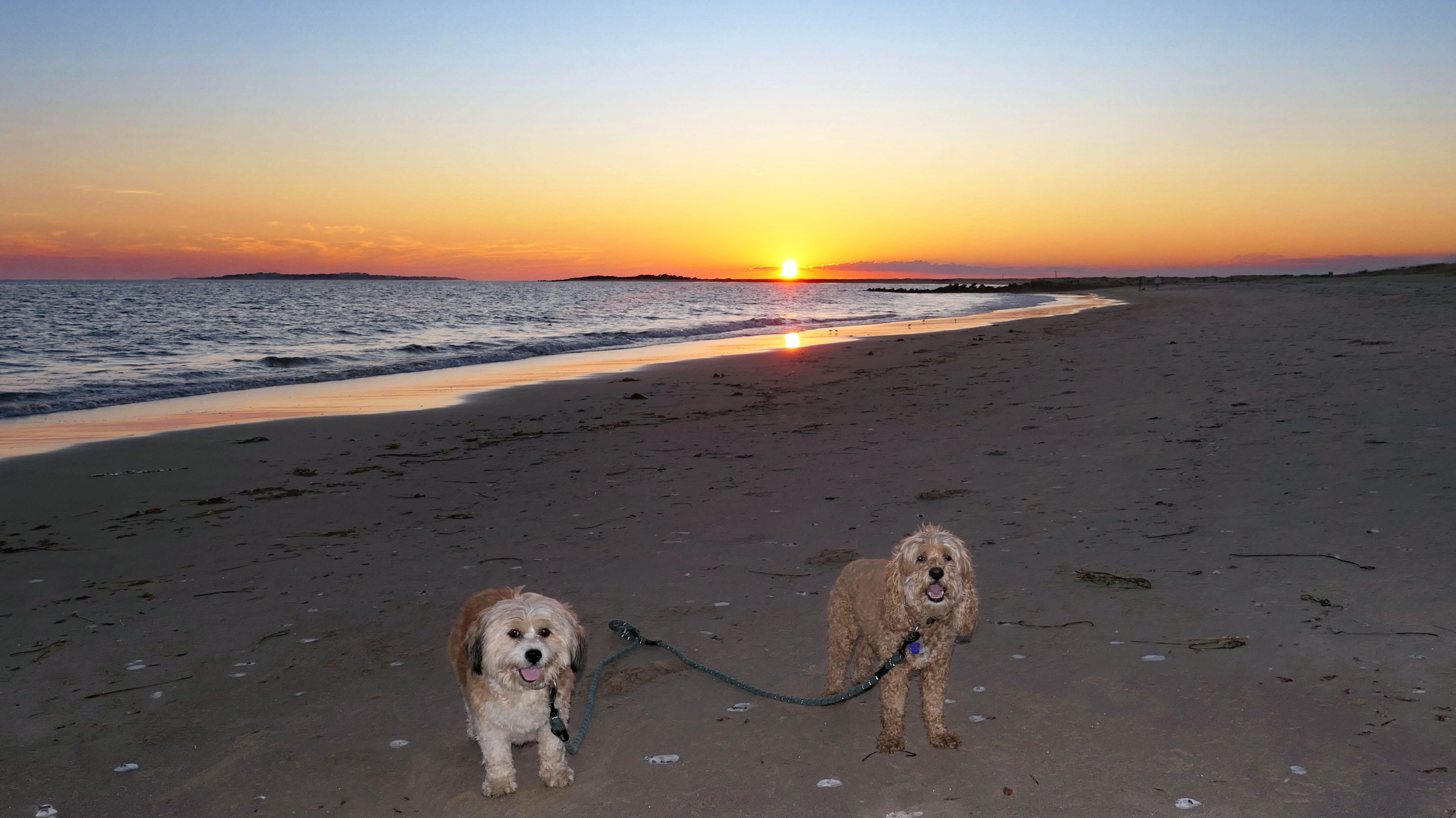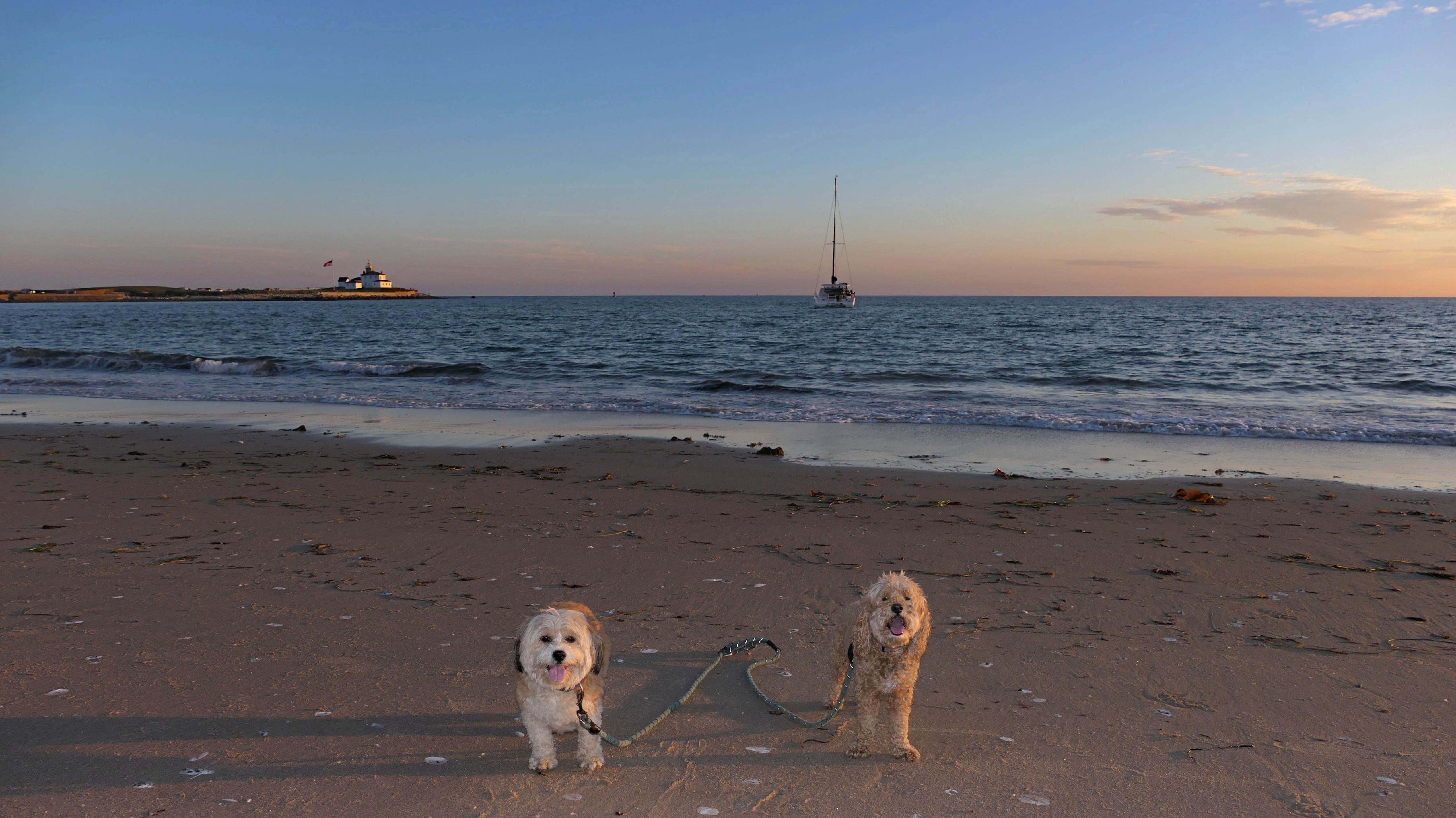 This is a small beach, wedged in between Napatree Point Conservation Area and the Watch Hill Lighthouse. I'm pretty sure this is a "private" beach for Watch Hill Association members. There is an entrance near the carousel that is completely closed off and gated in the off-season. We reached the beach via a short trail from Napatree. The waves were absolutely ripping, as it had stormed most of the day and was still very windy at the shore. We came here after our Wilcox Park adventure, and arrived just in time to enjoy a beautiful sunset. On our walk back, the dogs decided it was playtime. They seem to enjoy the beach so much!
