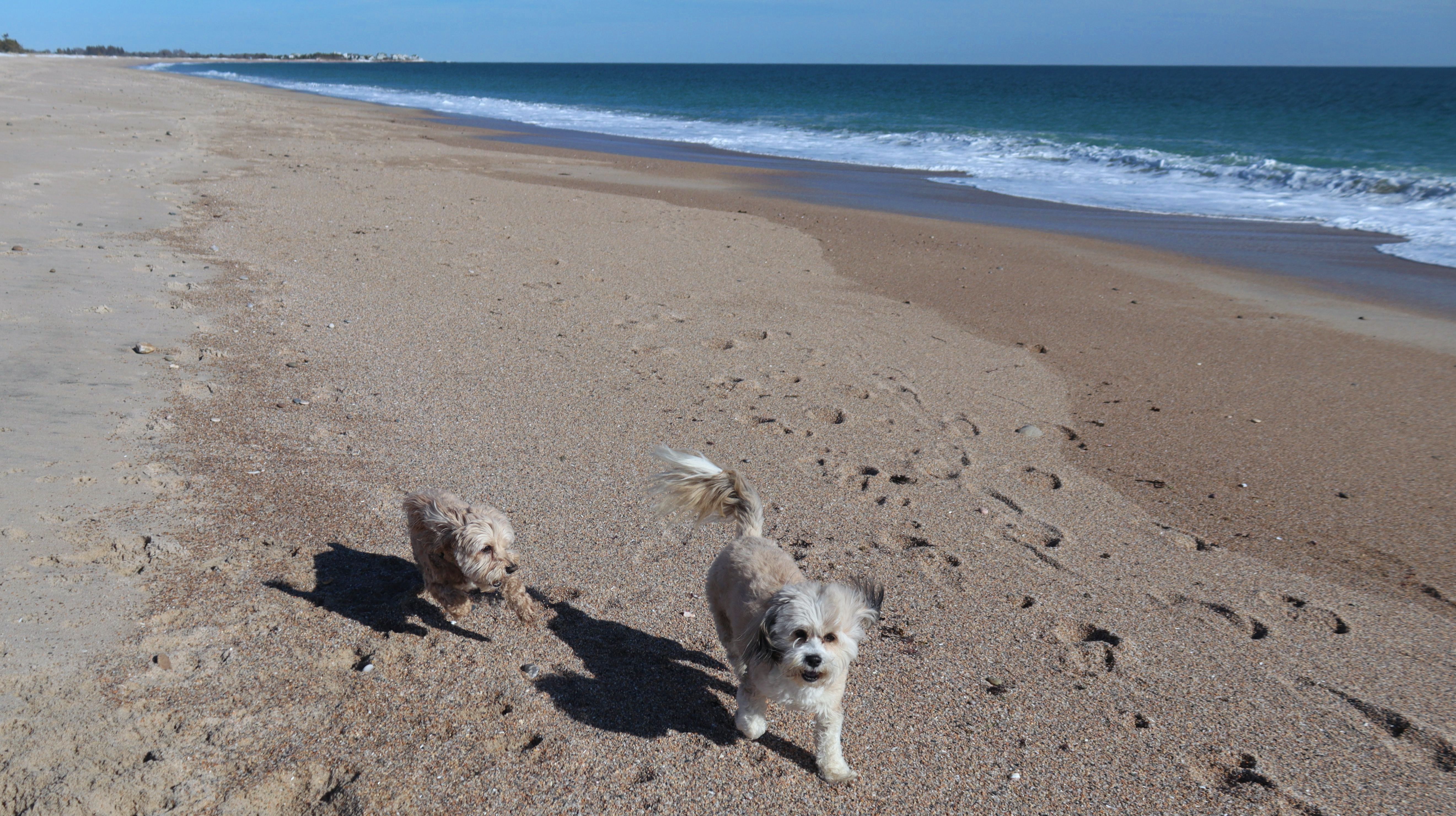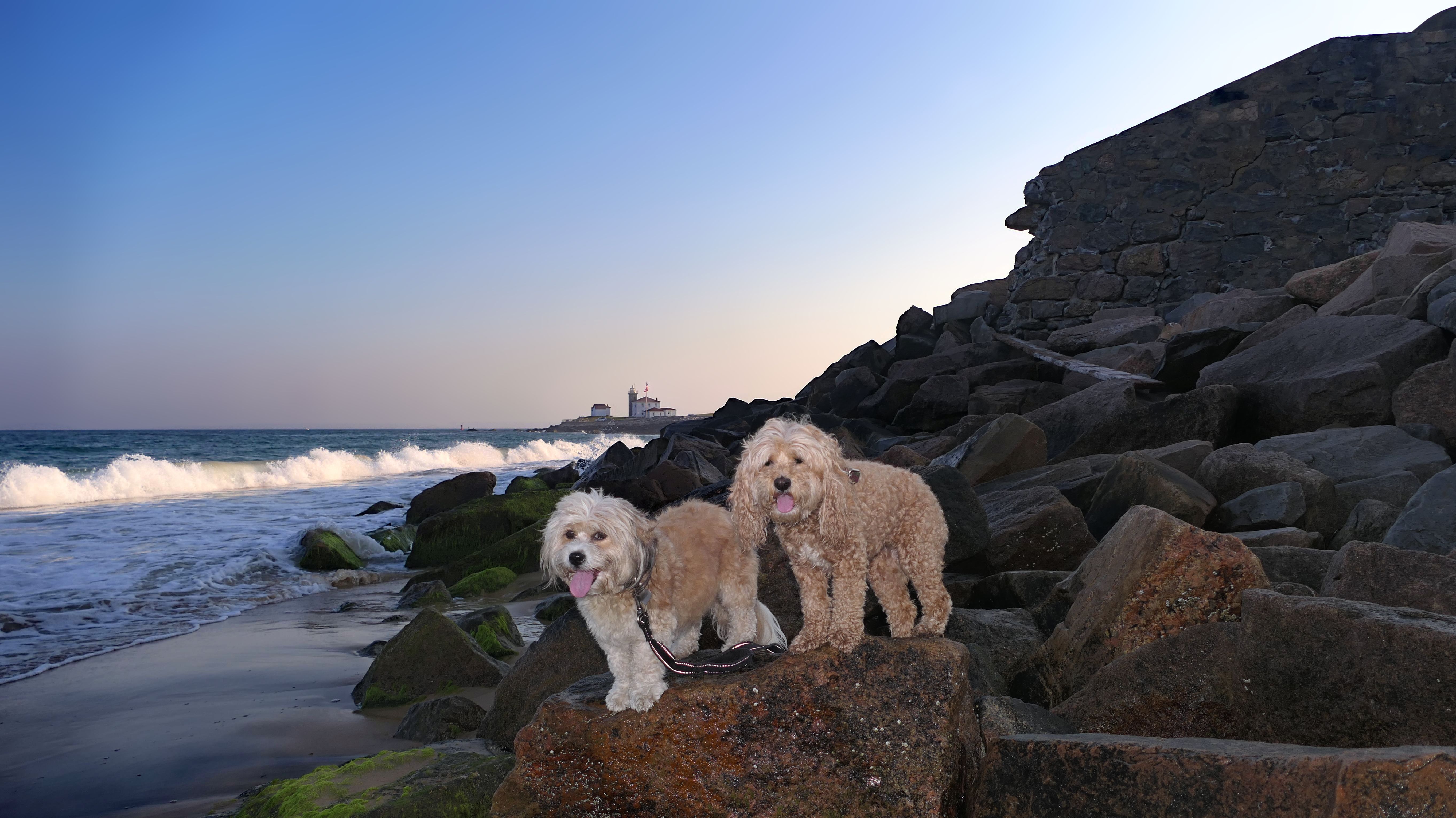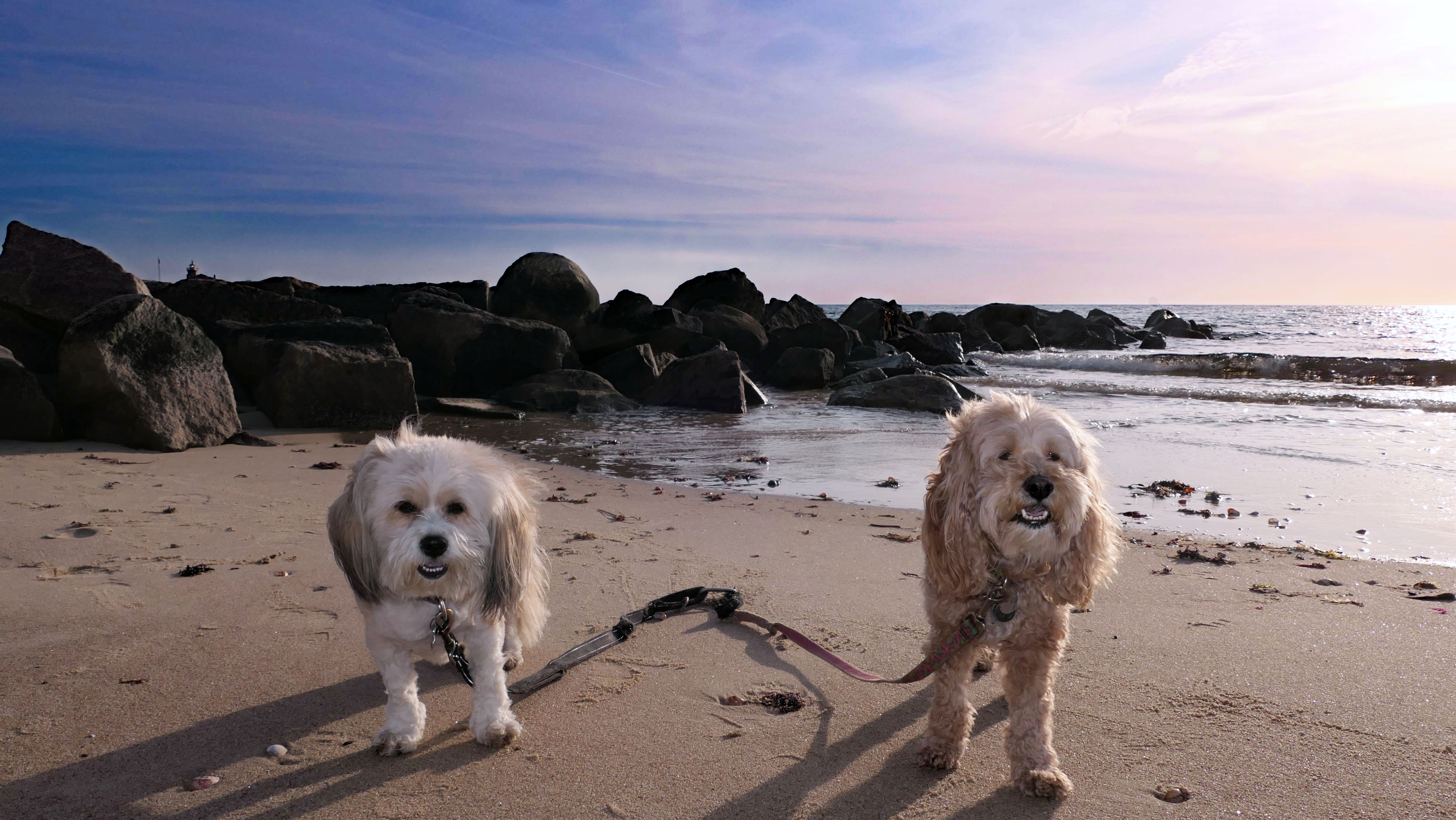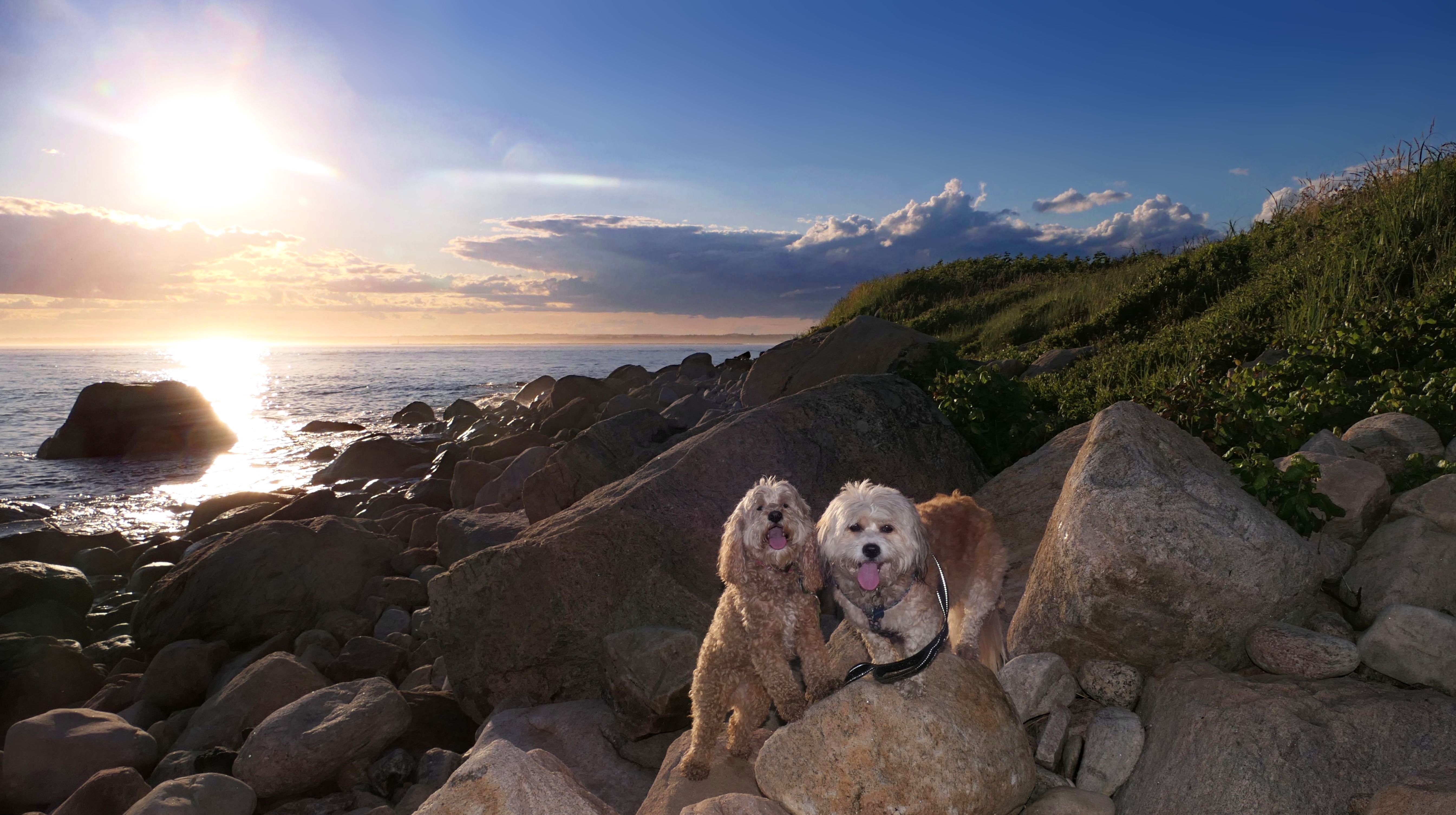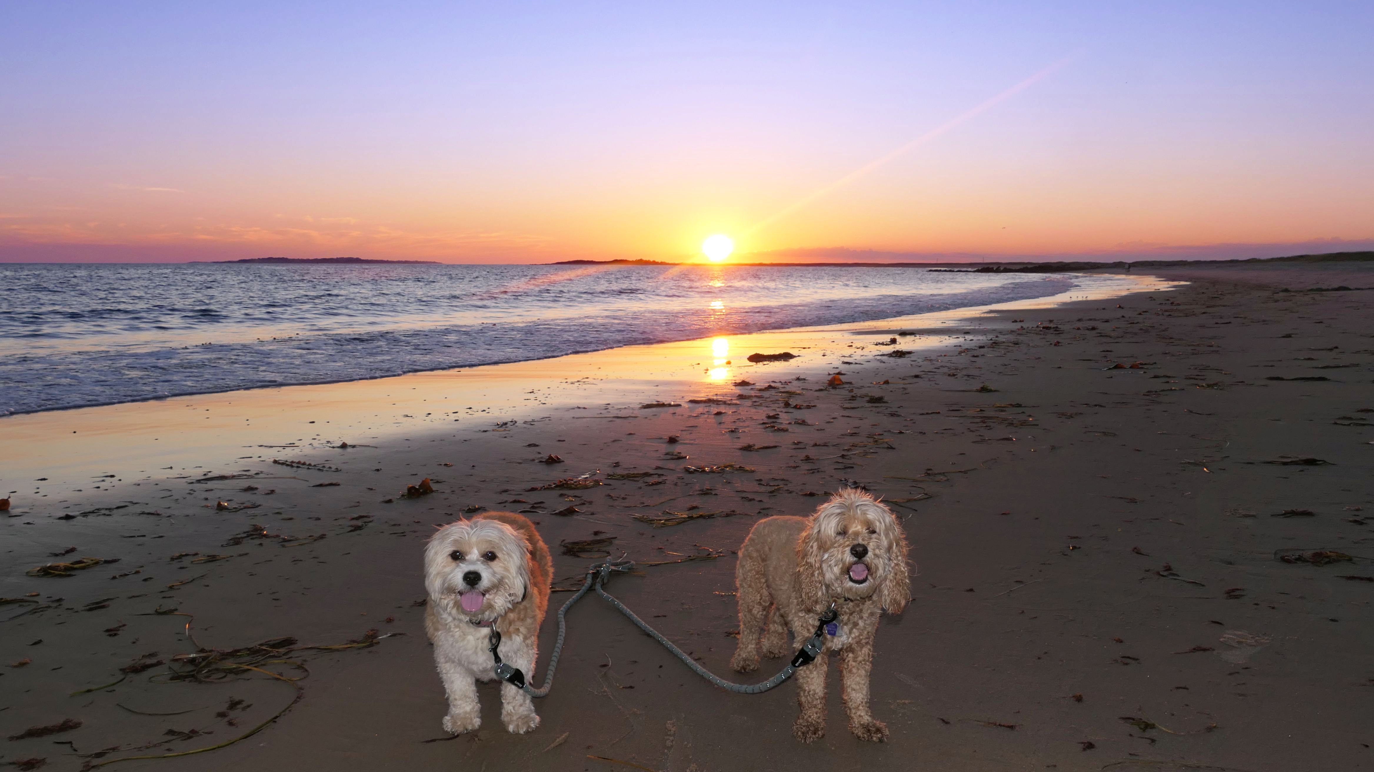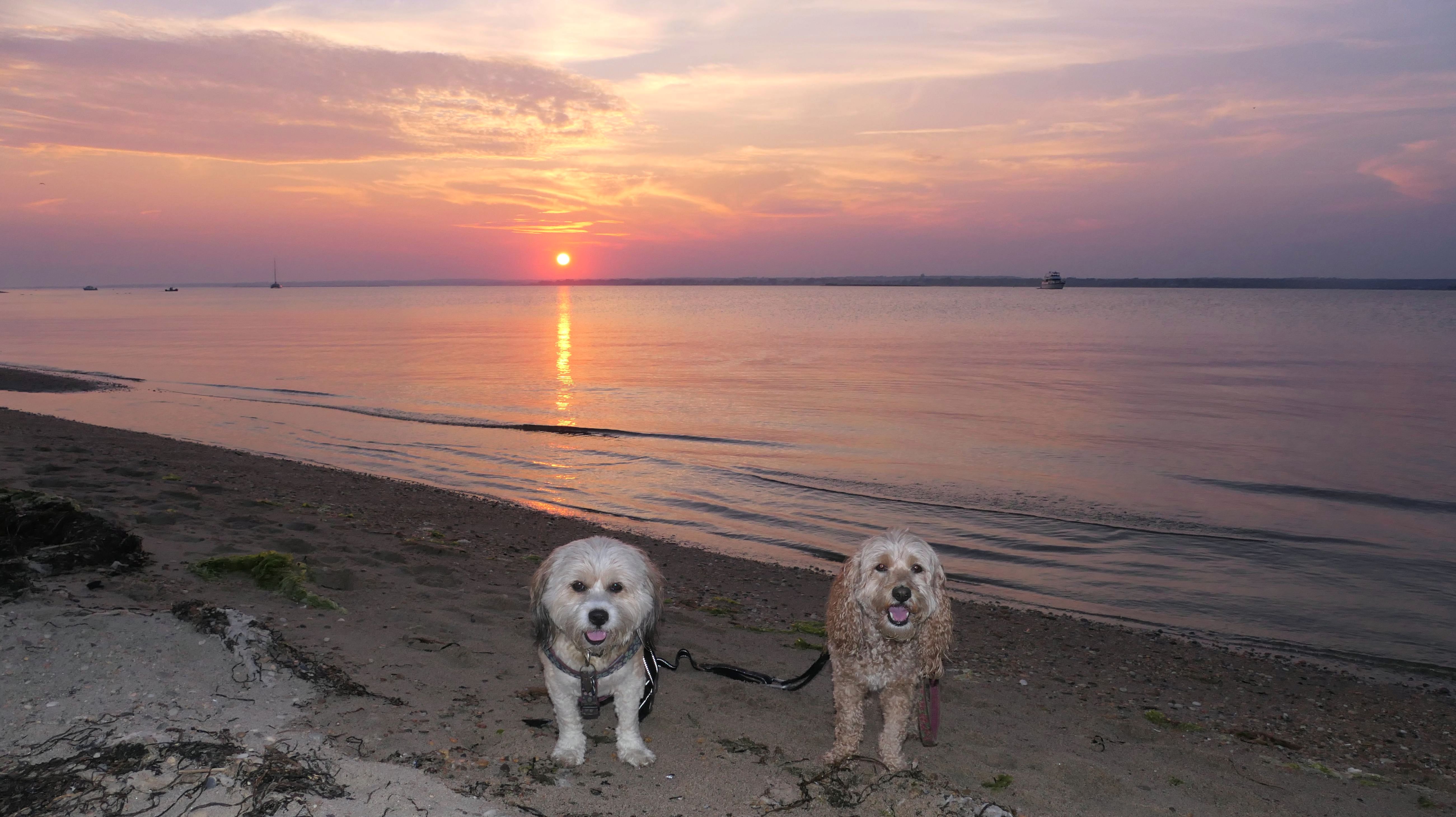 This is a small beach, wedged in between Napatree Point Conservation Area and the Watch Hill Lighthouse. I'm pretty sure this is a "private" beach for Watch Hill Association members. There is an entrance near the carousel that is completely closed off and gated in the off-season. We reached the beach via a short trail from Napatree. The waves were absolutely ripping, as it had stormed most of the day and was still very windy at the shore. We came here after our Wilcox Park adventure, and arrived just in time to enjoy a beautiful sunset. On our walk back, the dogs decided it was playtime. They seem to enjoy the beach so much!