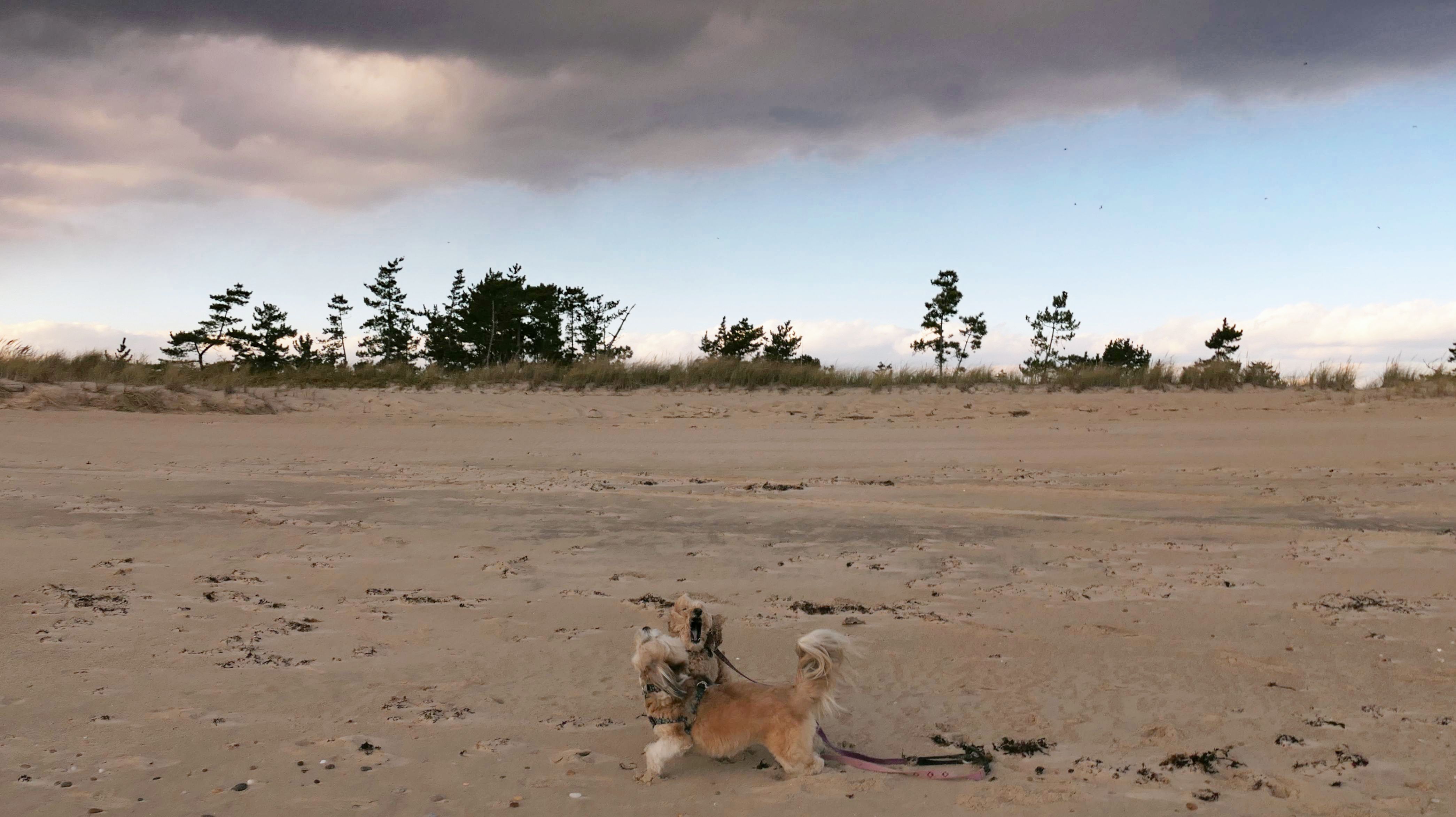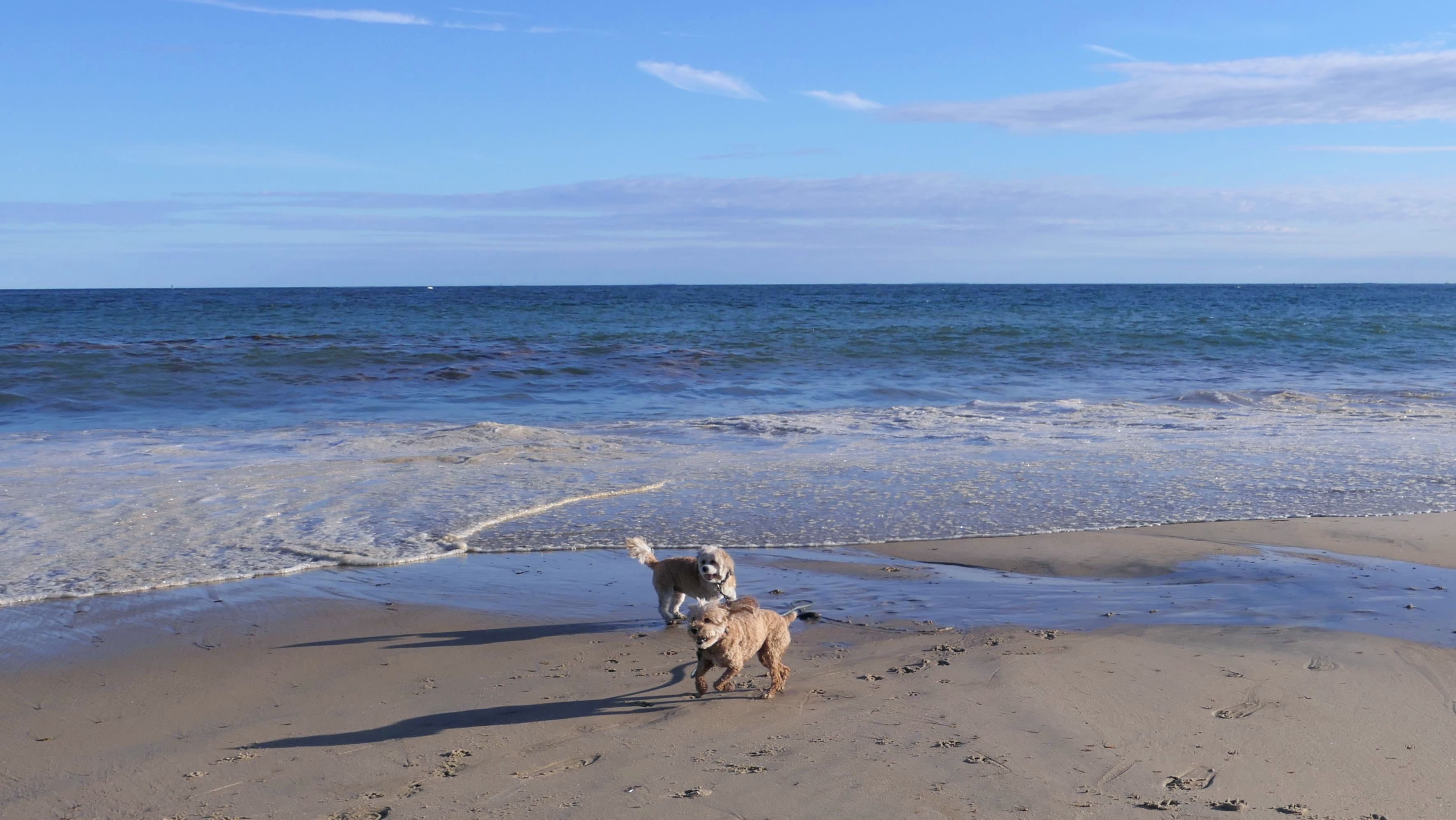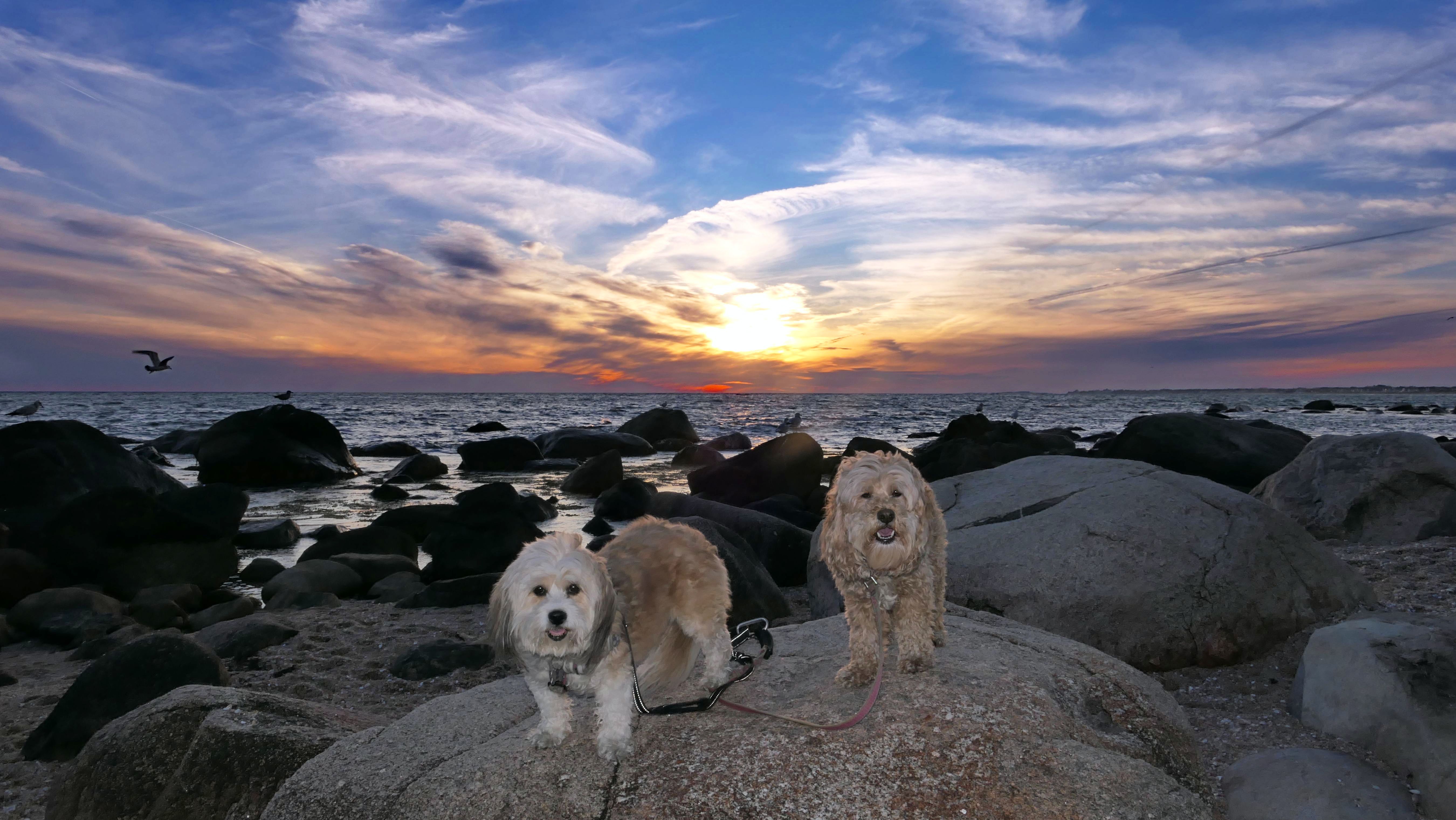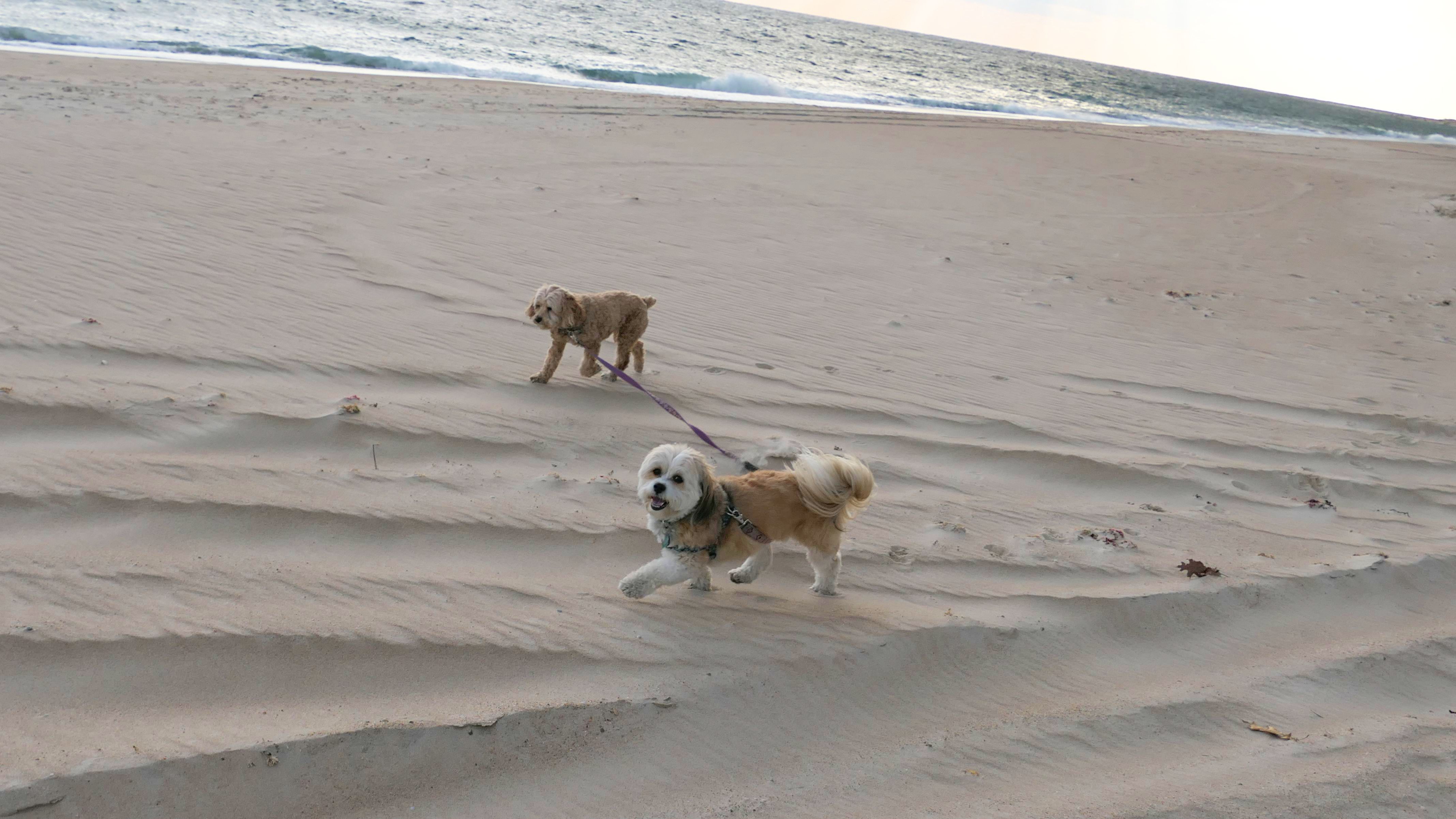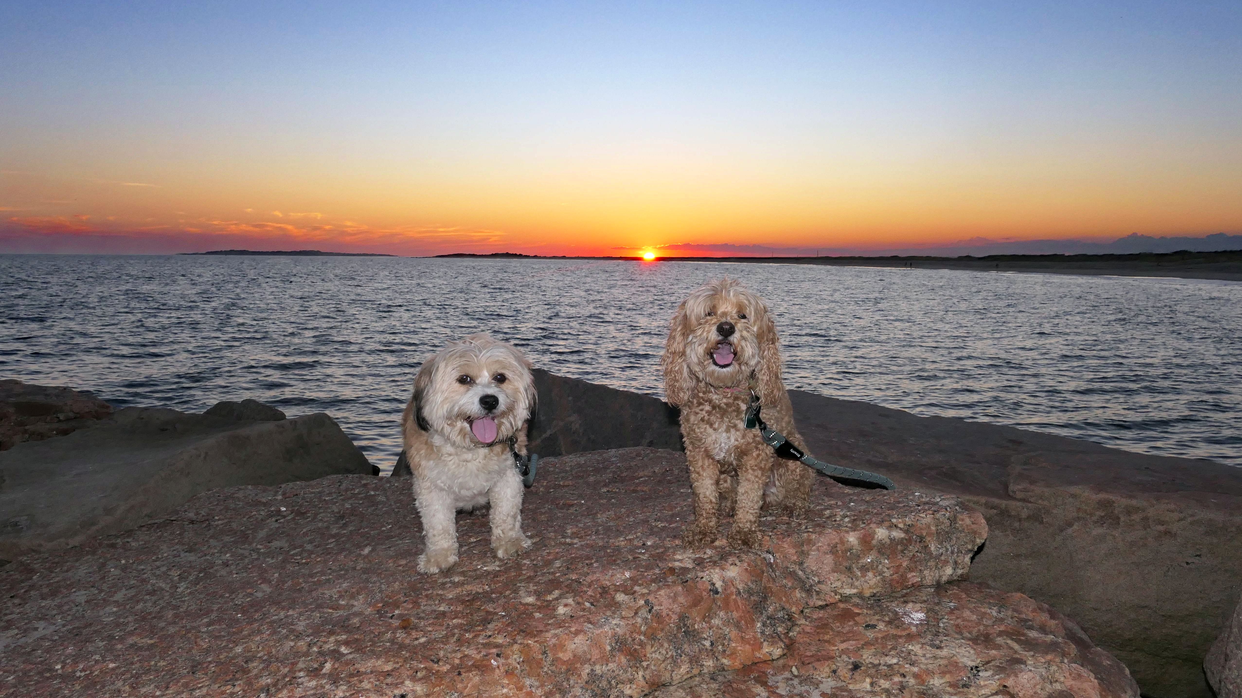 This is a small beach, wedged in between Napatree Point Conservation Area and the Watch Hill Lighthouse. I'm pretty sure this is a "private" beach for Watch Hill Association members. There is an entrance near the carousel that is completely closed off and gated in the off-season. We reached the beach via a short trail from Napatree. The waves were absolutely ripping, as it had stormed most of the day and was still very windy at the shore. We came here after our Wilcox Park adventure, and arrived just in time to enjoy a beautiful sunset. On our walk back, the dogs decided it was playtime. They seem to enjoy the beach so much!