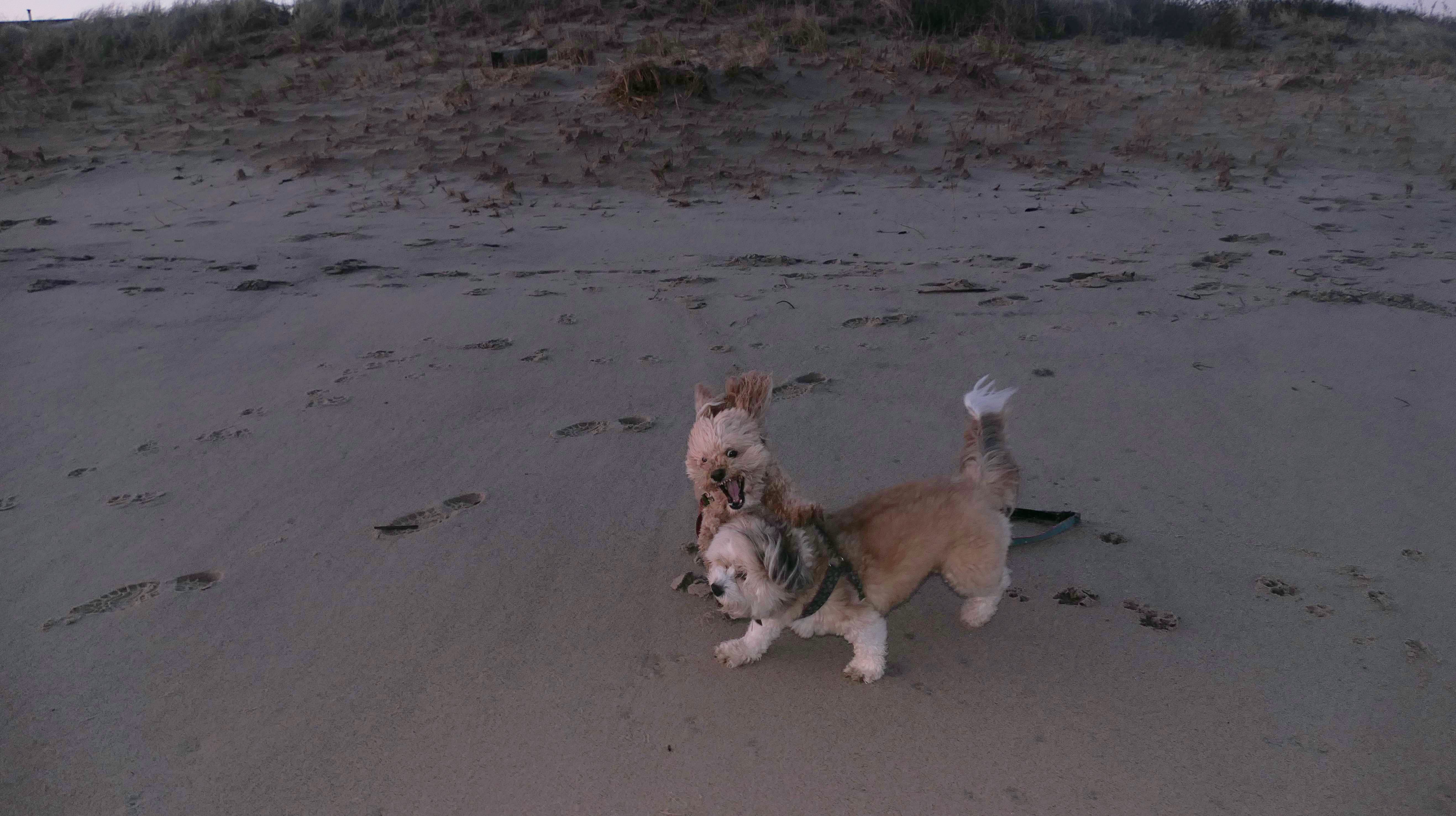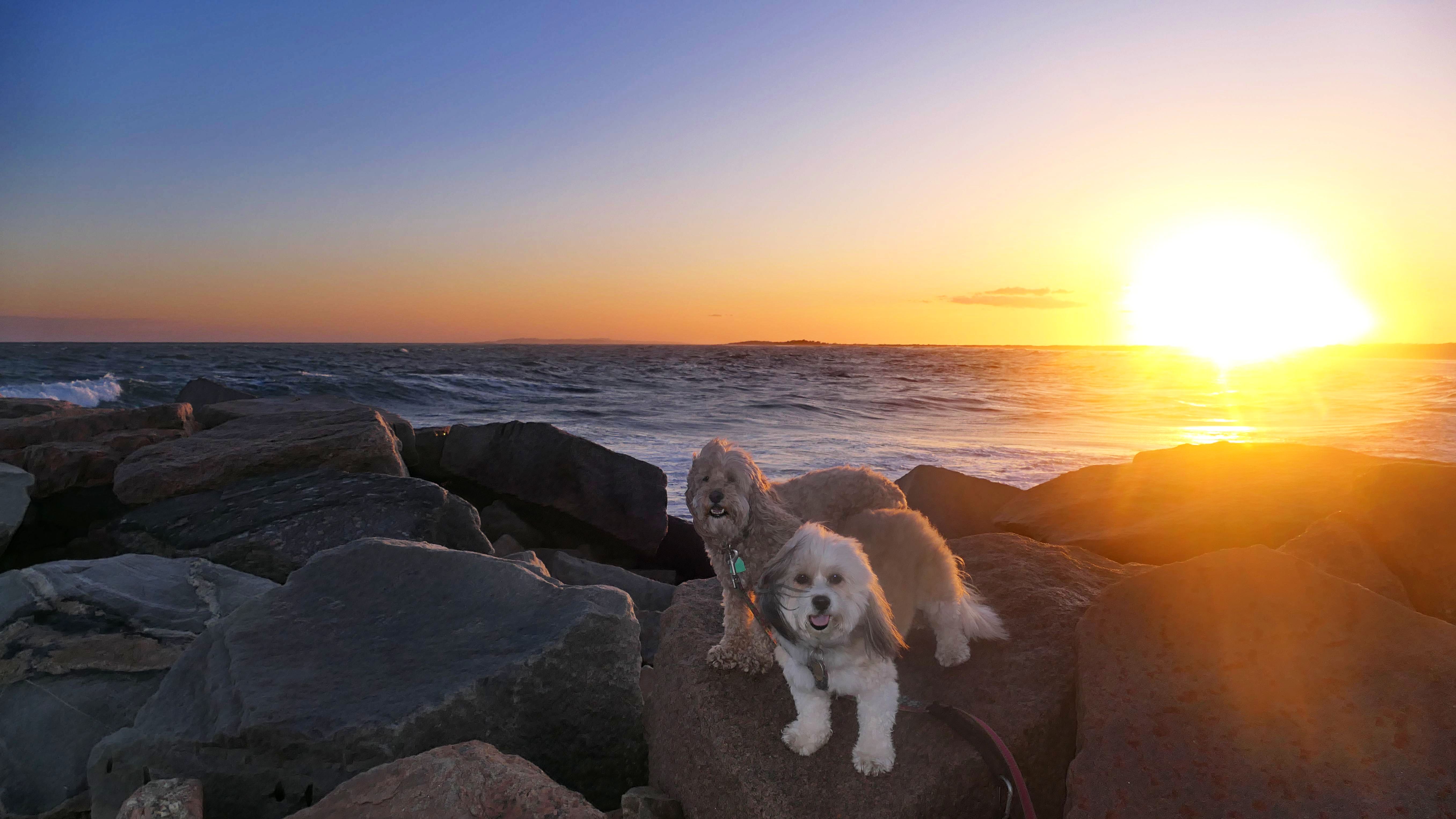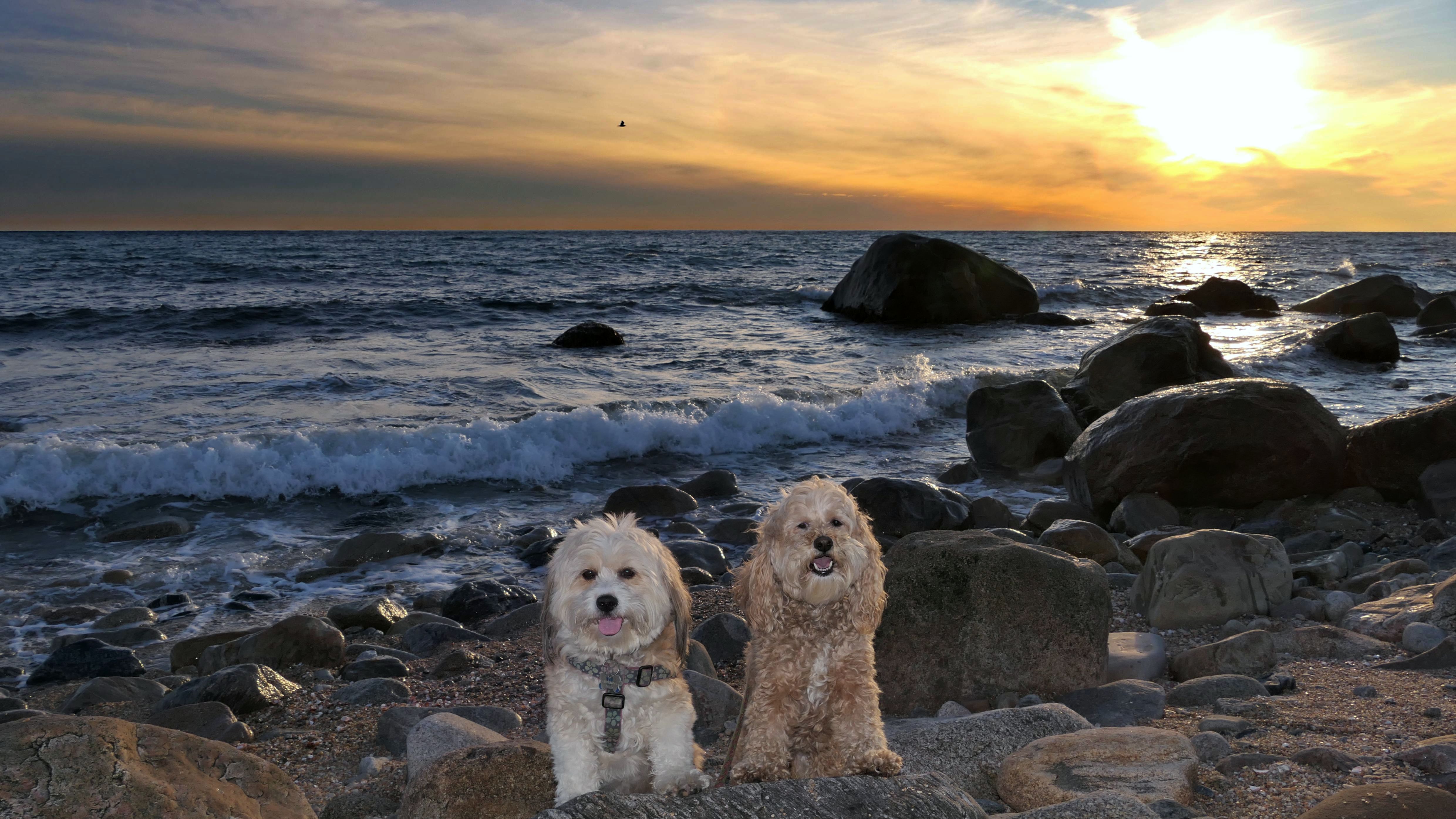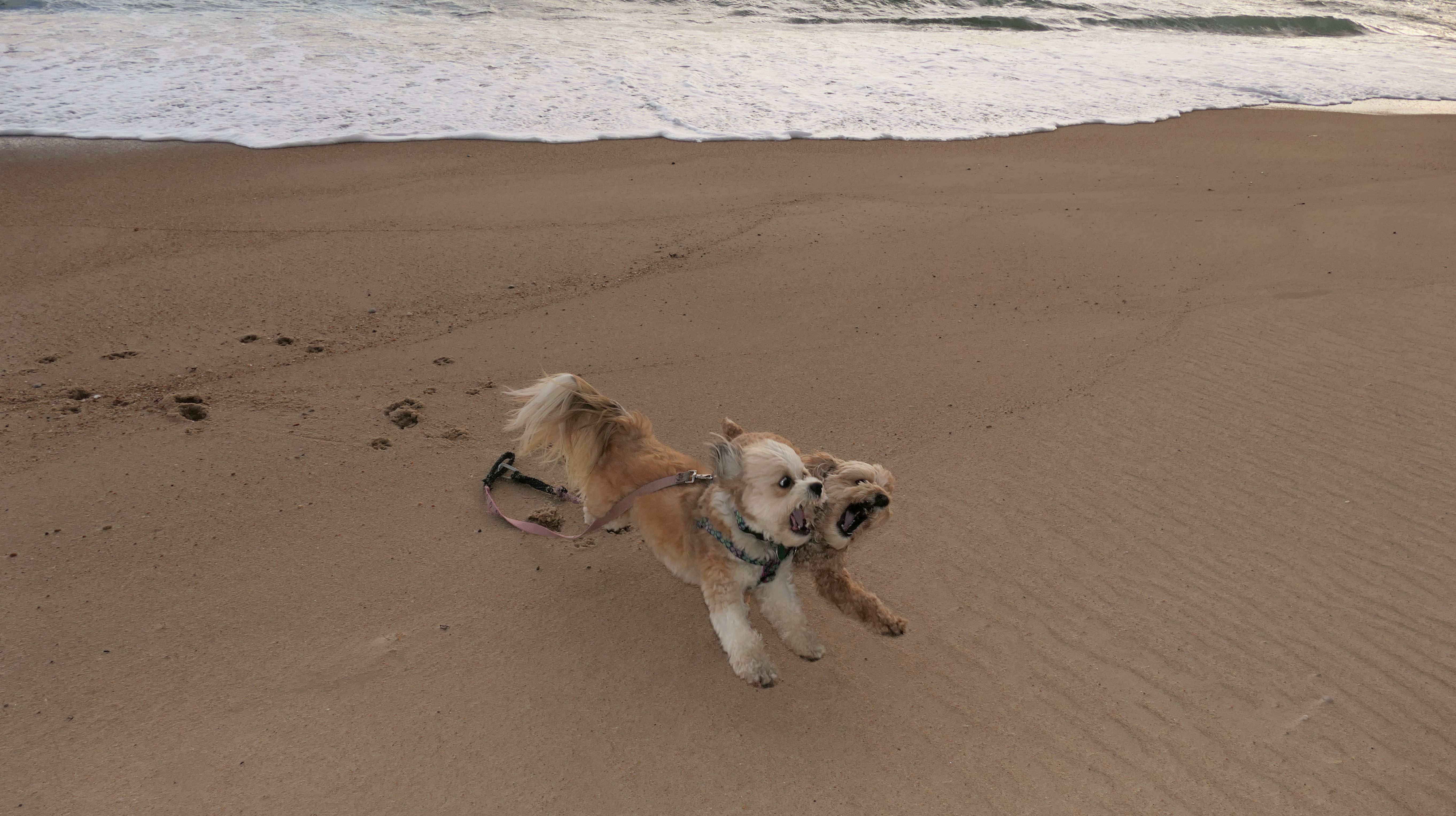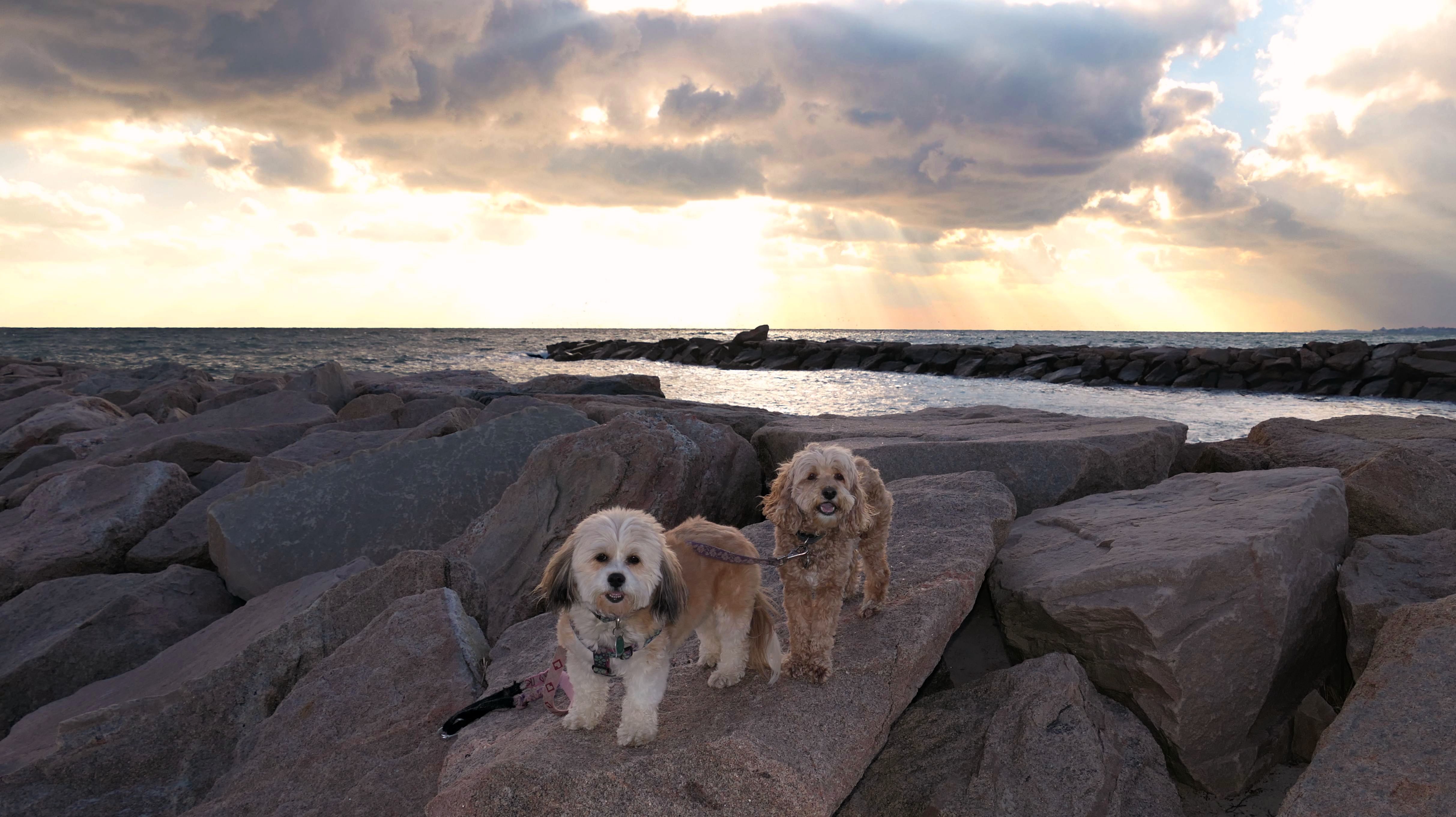 This is a small beach, wedged in between Napatree Point Conservation Area and the Watch Hill Lighthouse. I'm pretty sure this is a "private" beach for Watch Hill Association members. There is an entrance near the carousel that is completely closed off and gated in the off-season. We reached the beach via a short trail from Napatree. The waves were absolutely ripping, as it had stormed most of the day and was still very windy at the shore. We came here after our Wilcox Park adventure, and arrived just in time to enjoy a beautiful sunset. On our walk back, the dogs decided it was playtime. They seem to enjoy the beach so much!